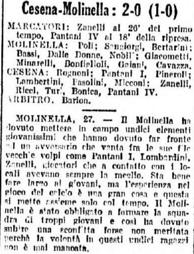 Fonte: “Cesena Calcio, una storia unica“, Geo Edizioni Articolo de La Gazzetta dello Sport CESENA-PRO ITALIA CORREGGIO 1940-41 (finali) CESENA-ALMA JUVENTUS FANO 1941-42