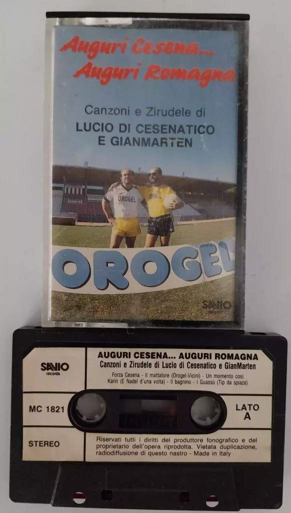 Tifoso Gianmarten (Giancarlo Martini). Folkloristico tifoso del Club Fedelissimi di Martorano con il presidente Manuzzi Gianmarten tra il presidente Manuzzi e l'allenatore Berselli (1973-74) Musicassetta di Lucio di Cesenatico e Gianmarten, Forza Cesena, Savio Records (1987) Indietro PrecedenteProssimo
