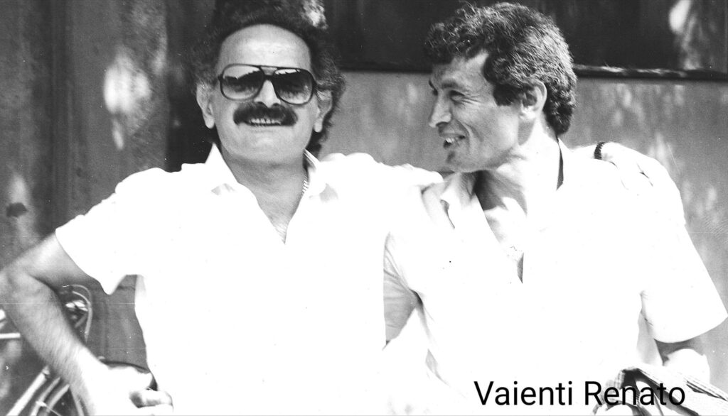 Francesco Sirotti detto Chino, tifoso e editore dell'Almanacco del calcio cesenate, Cesena Sport e Due Galli nel Pollaio, insieme a Ceccarelli (Foto Vaienti)
