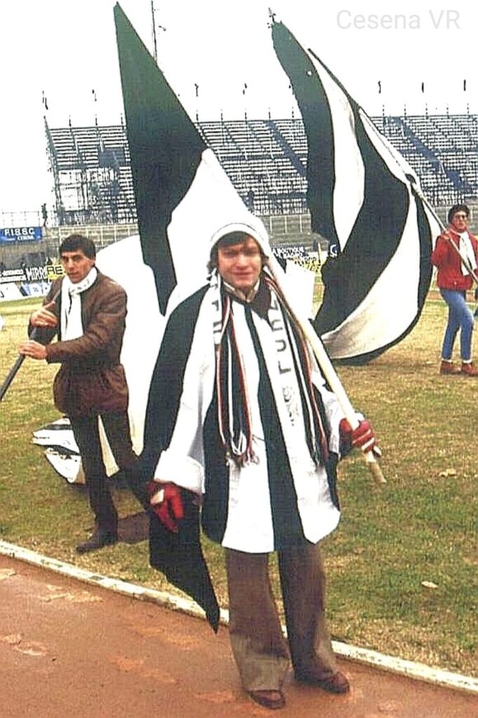 Massimo Tesei, tifoso speciale conosciuto da tutti come Cecca Cecca con la sua inconfondibile mantella (foto Vaienti)