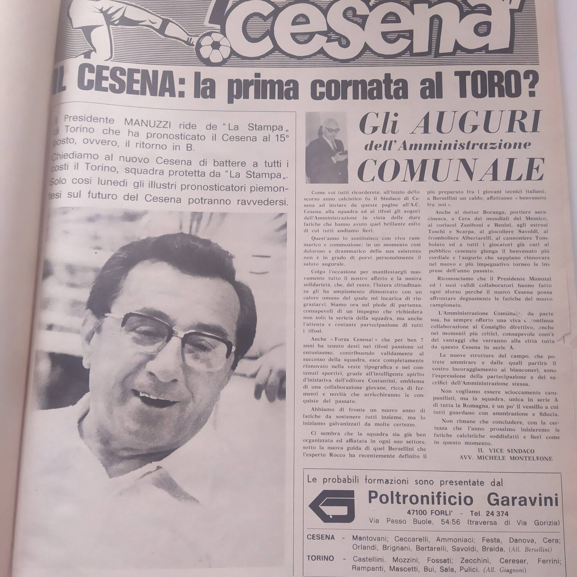Alè Toro novembre 1973, n. 11, copertina Cesena-Torino 1973-74