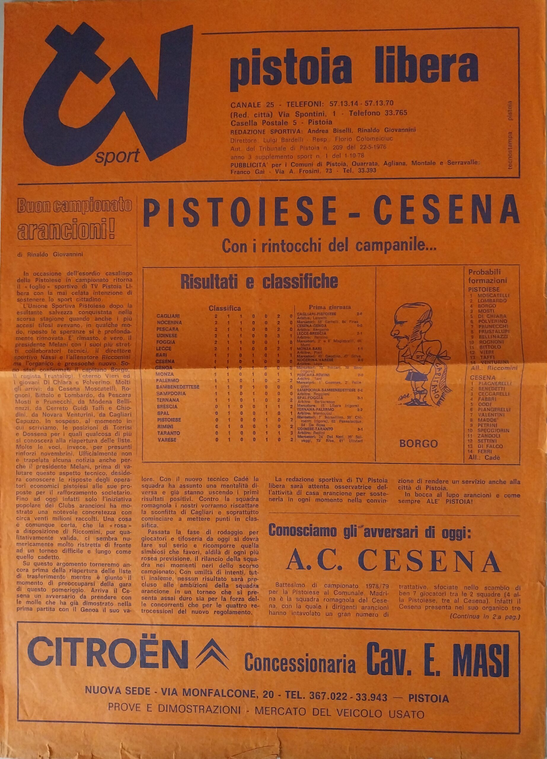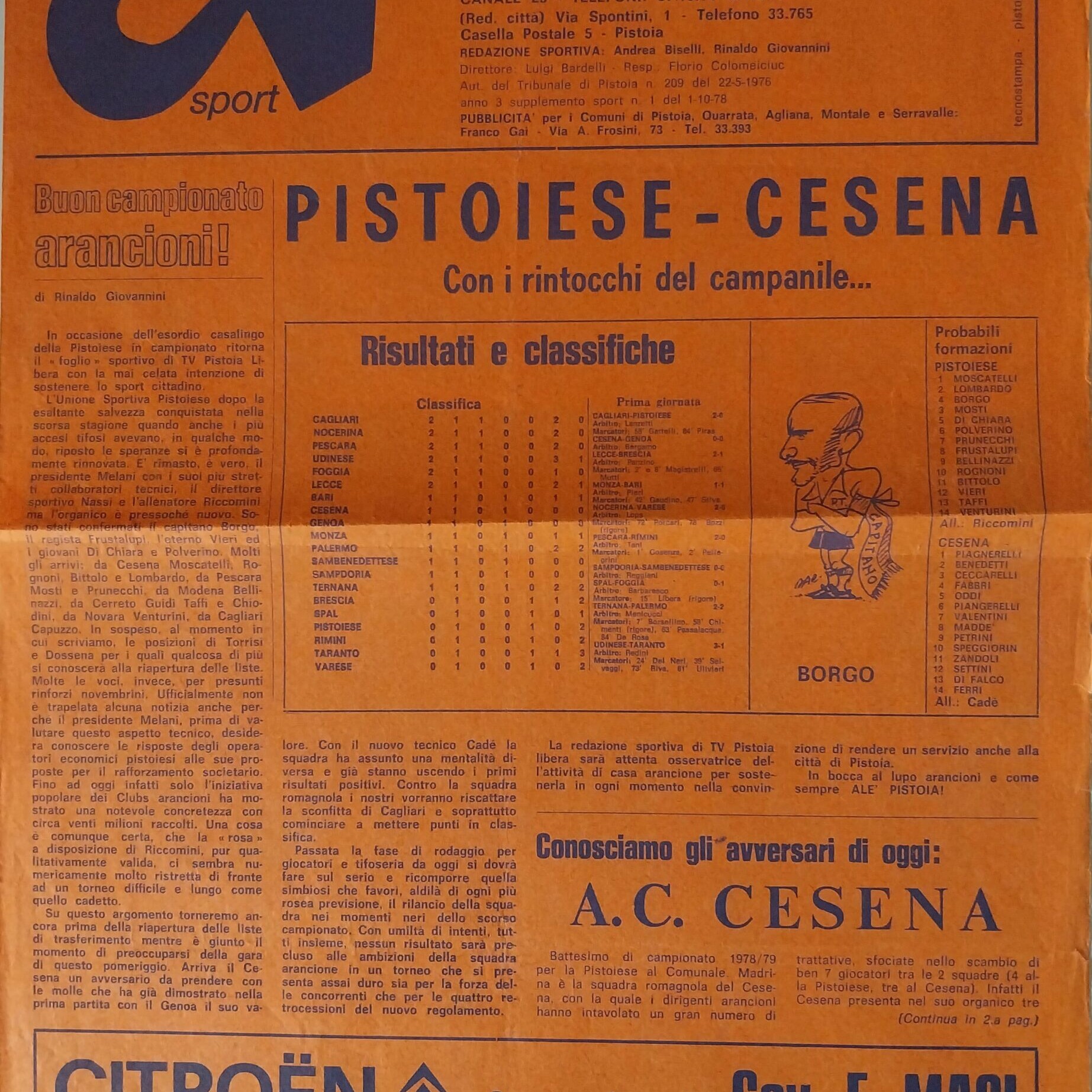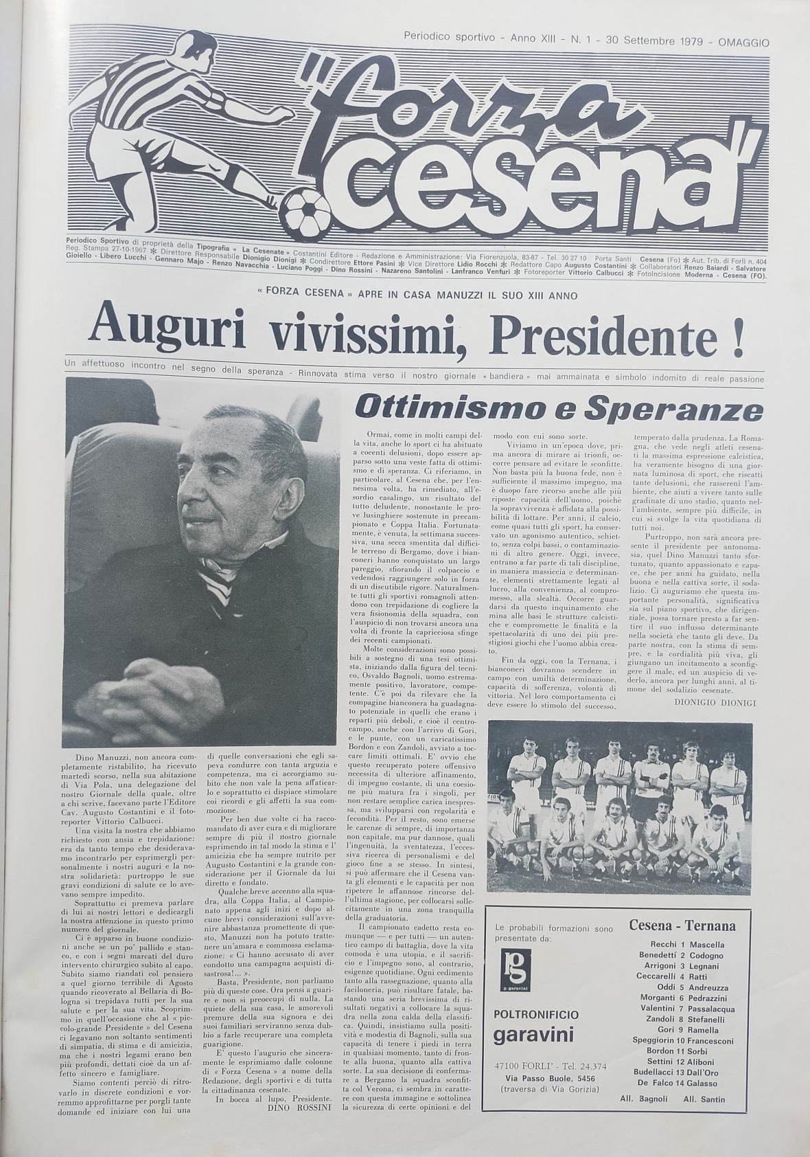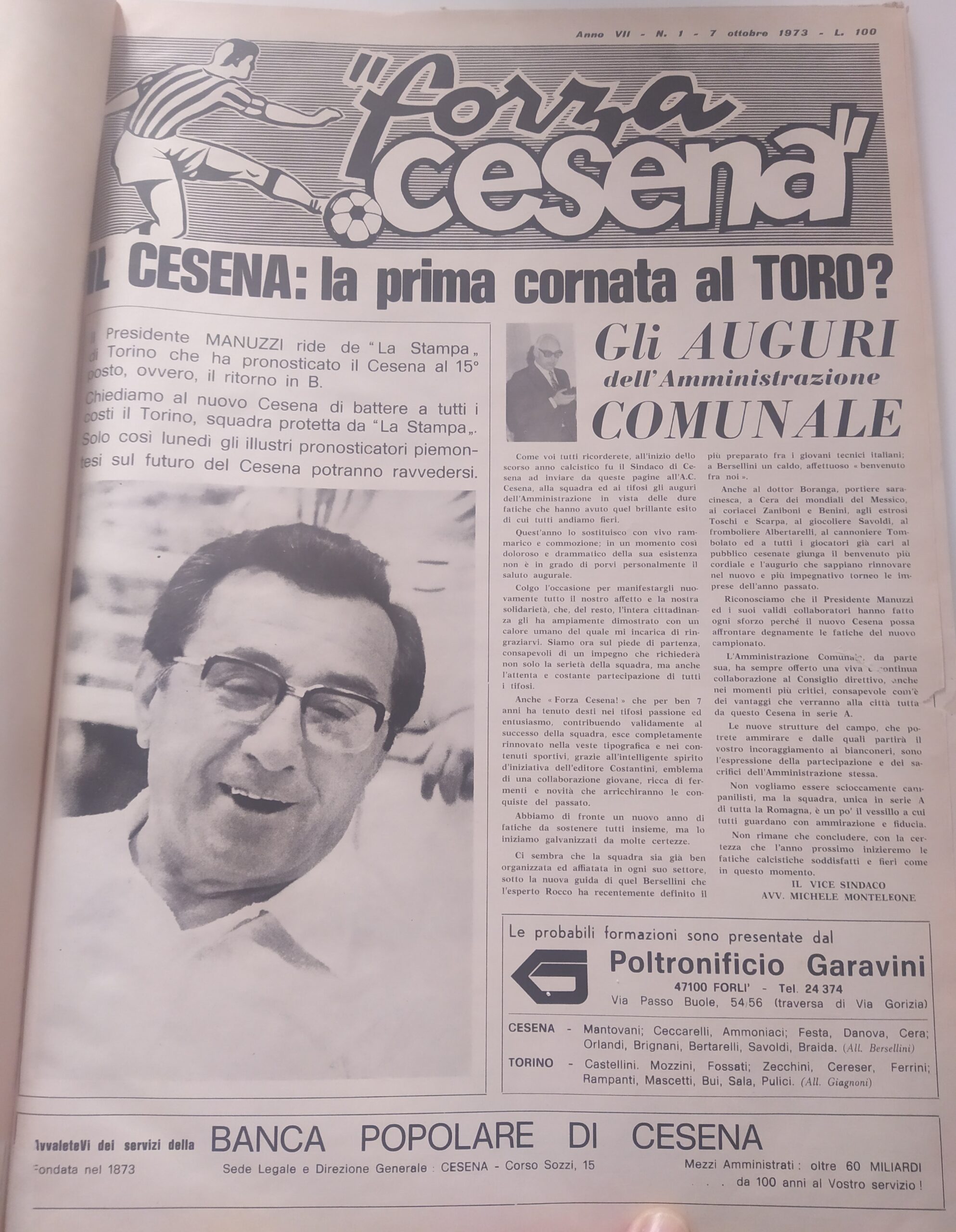 Theo Calì, Ottobre 1973, n. 1, quarta di copertina con scudetto Cesena