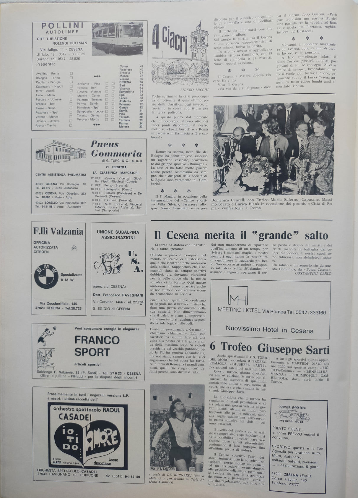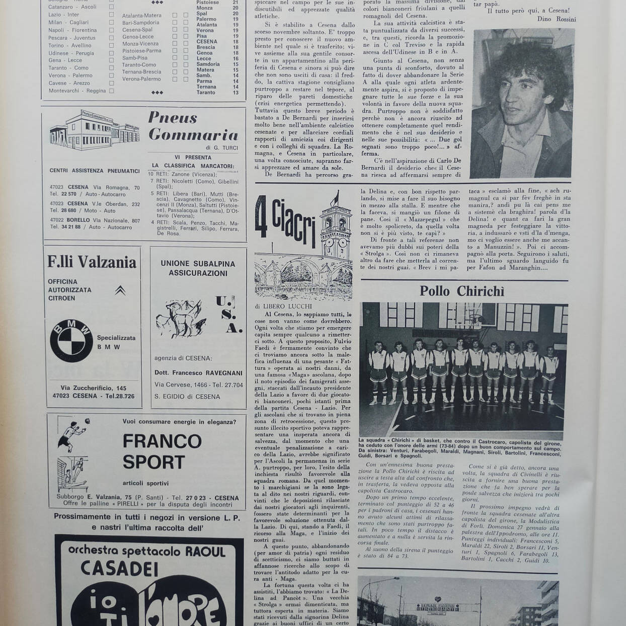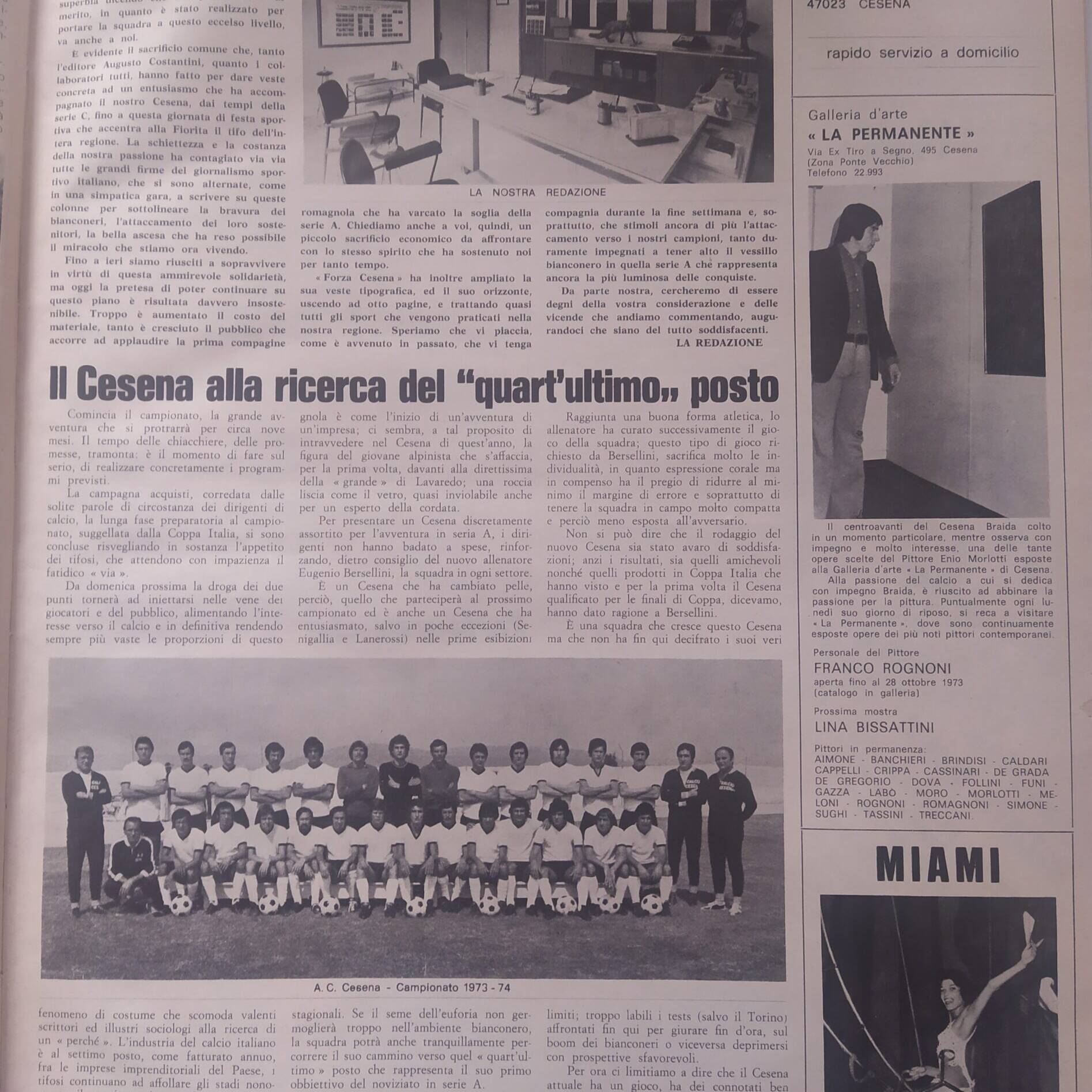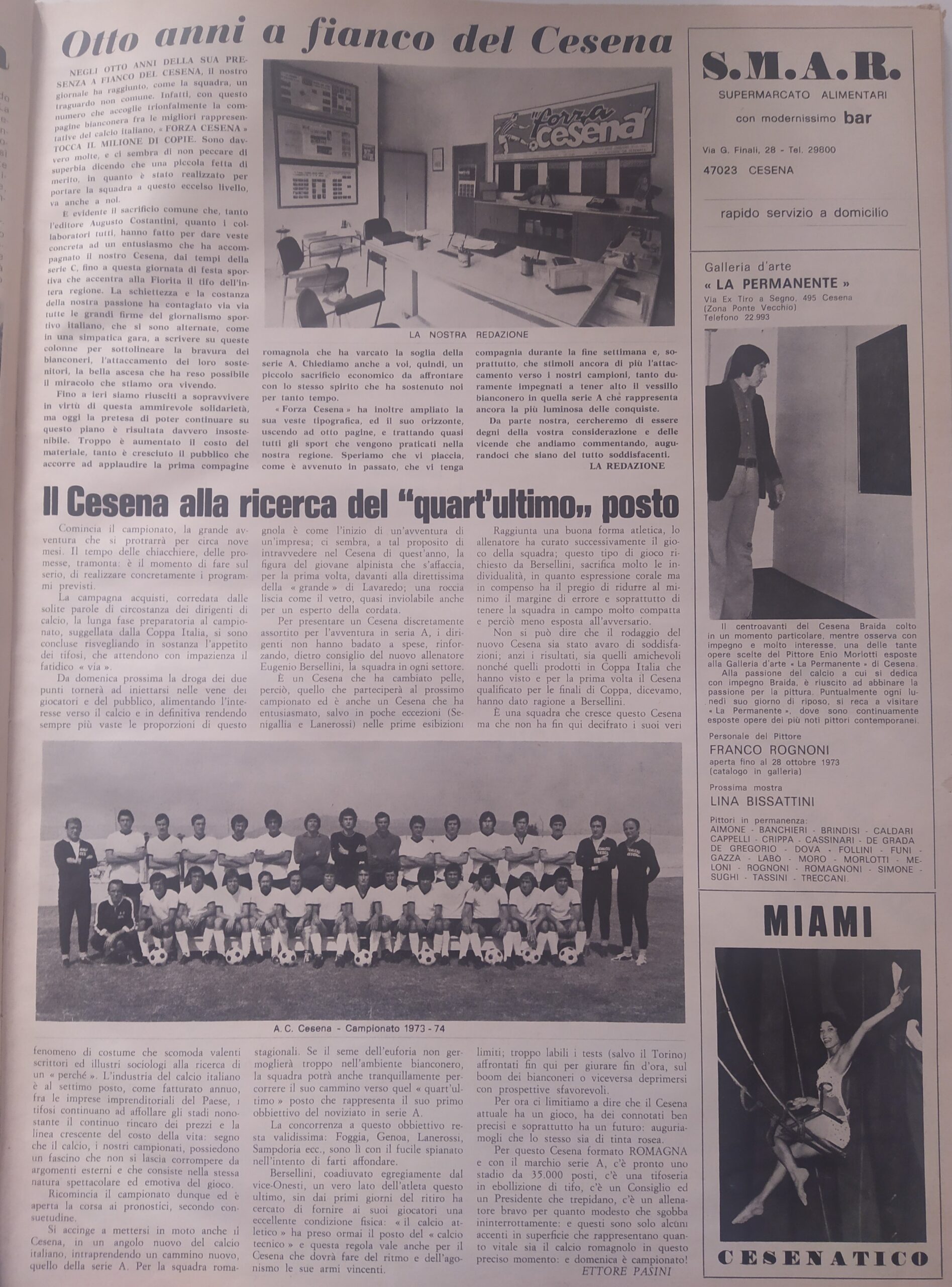Romagna maggio 1974, n. 5, p. 48, notizie in breve Cesena 1973-74