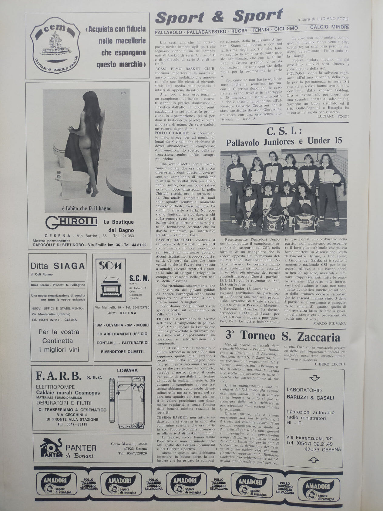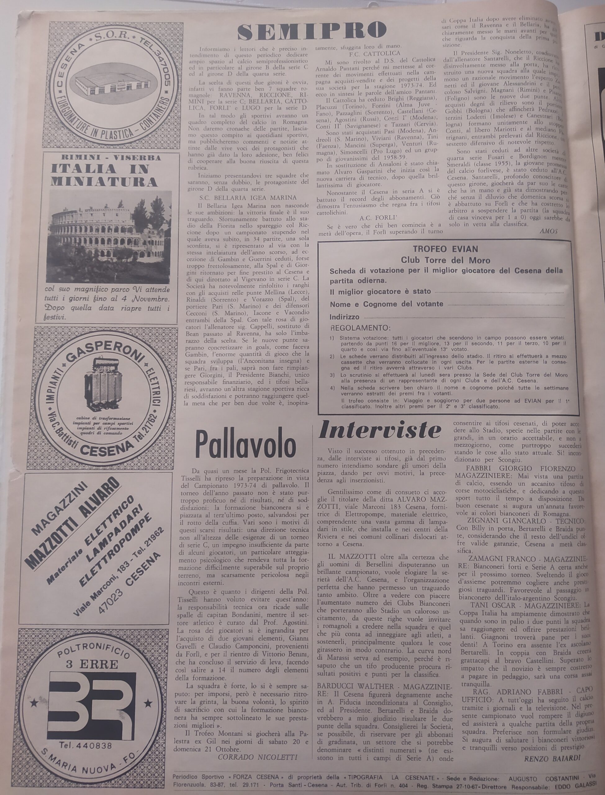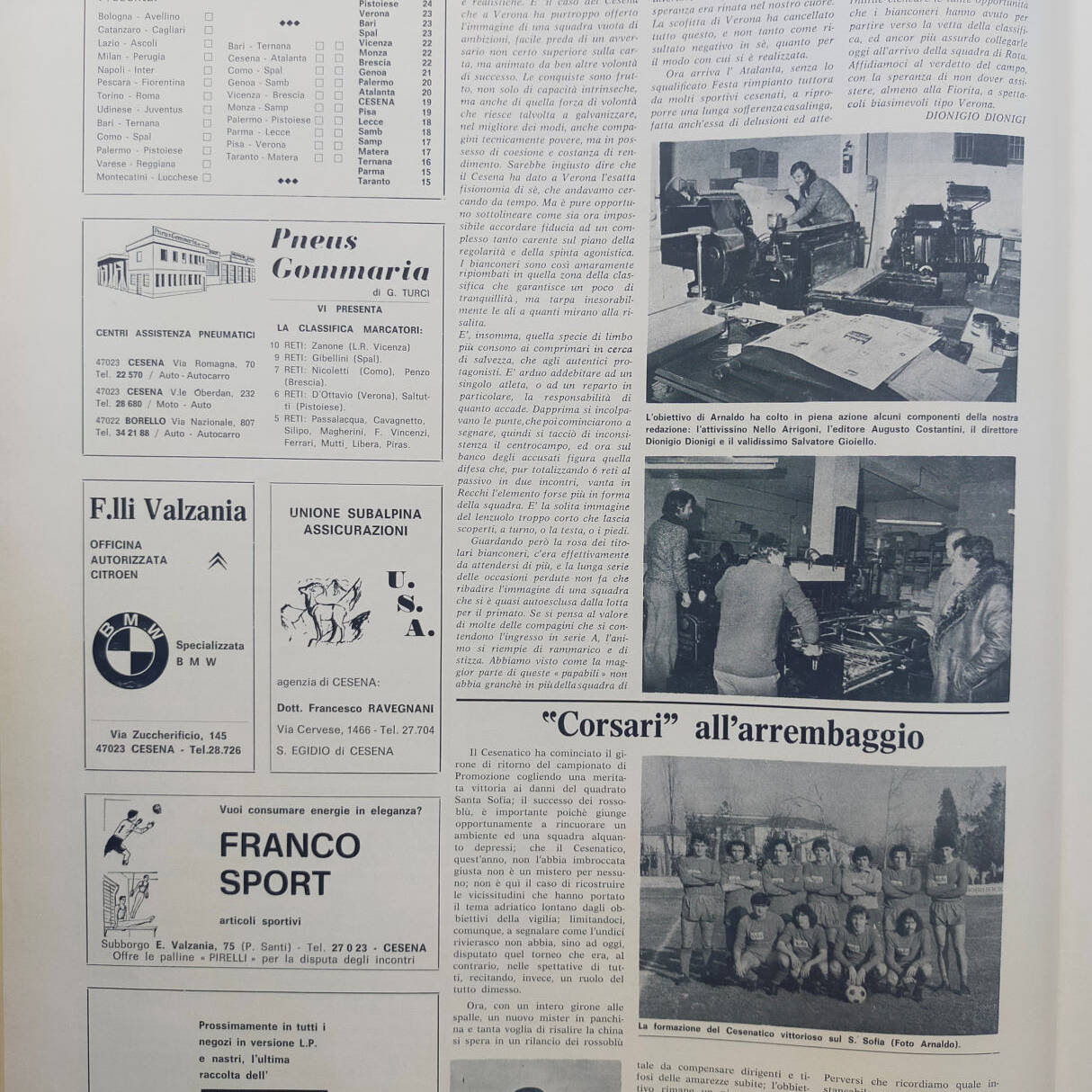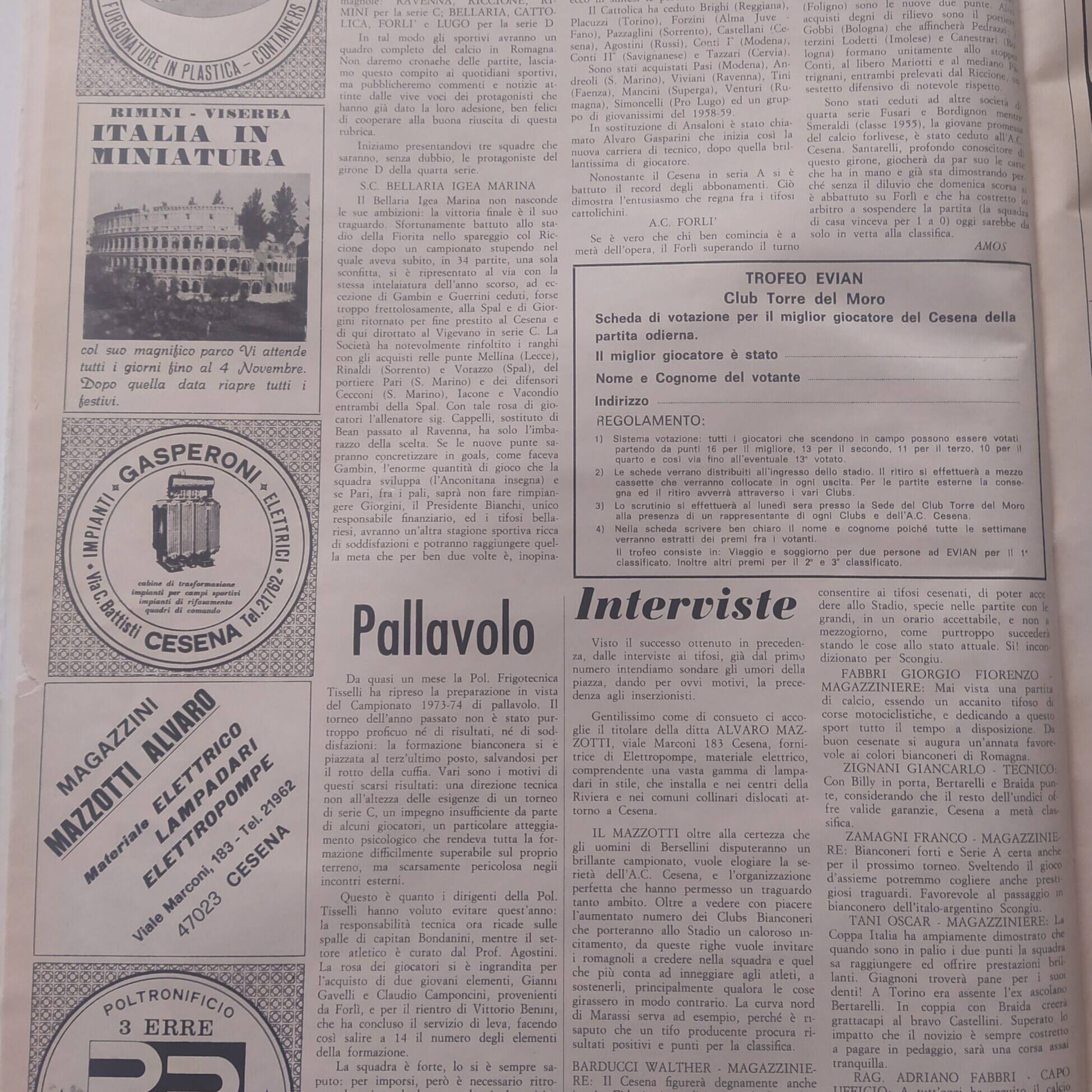 Romagna maggio 1974, n. 5, p. 48, notizie in breve Cesena 1973-74