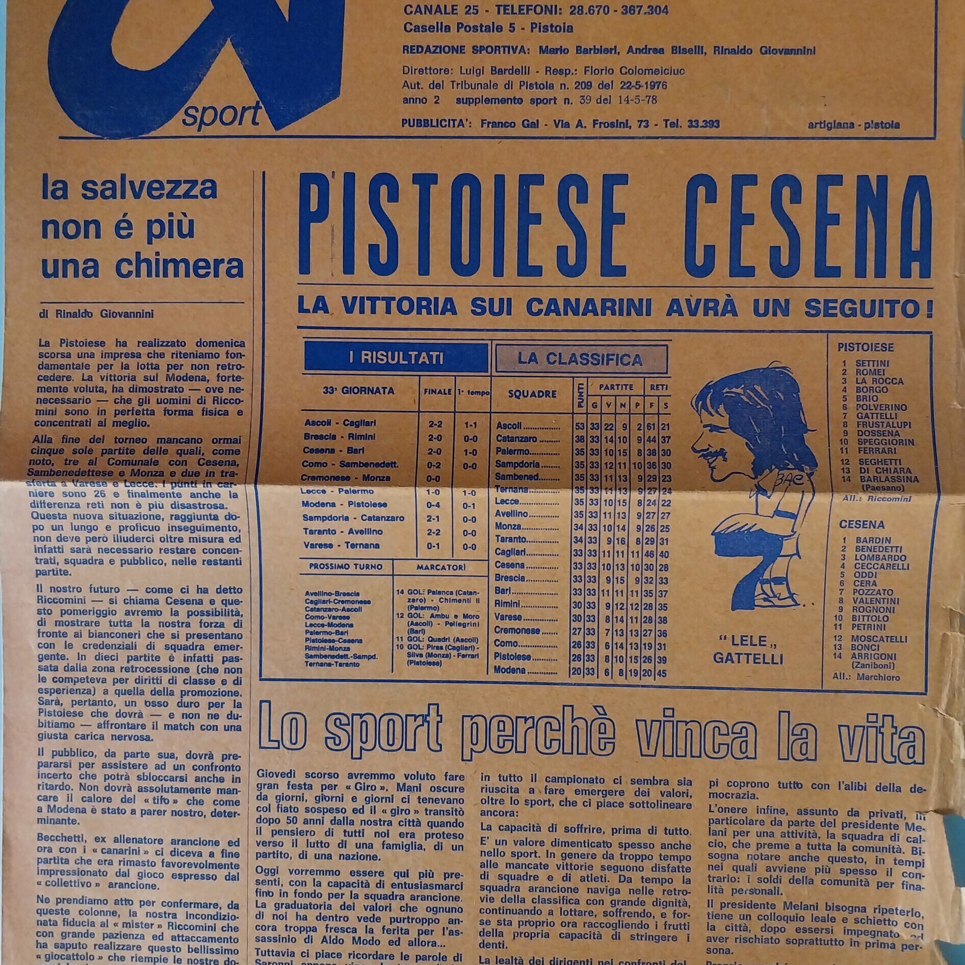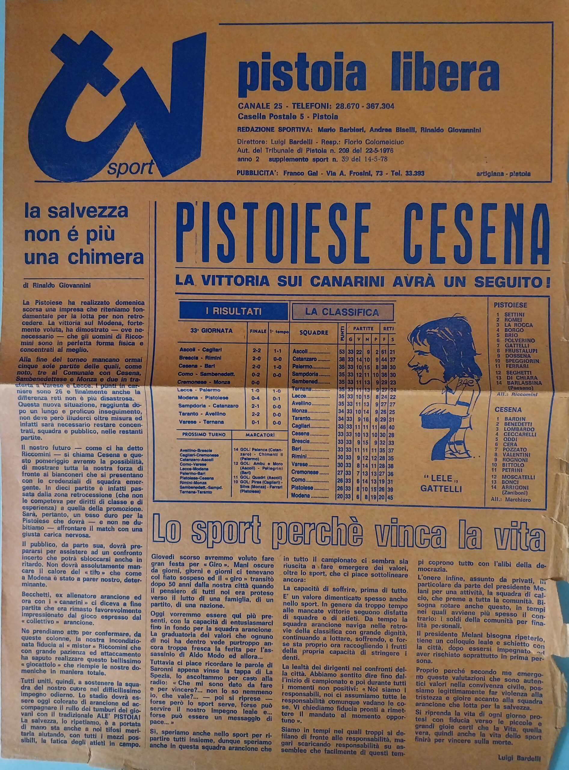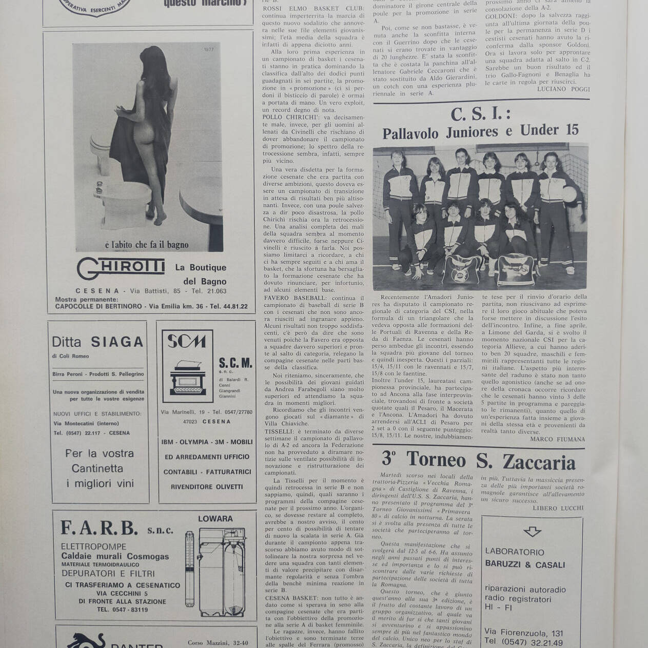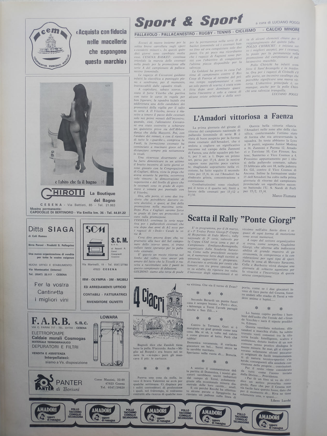 Romagna maggio 1974, n. 5, p. 48, notizie in breve Cesena 1973-74
