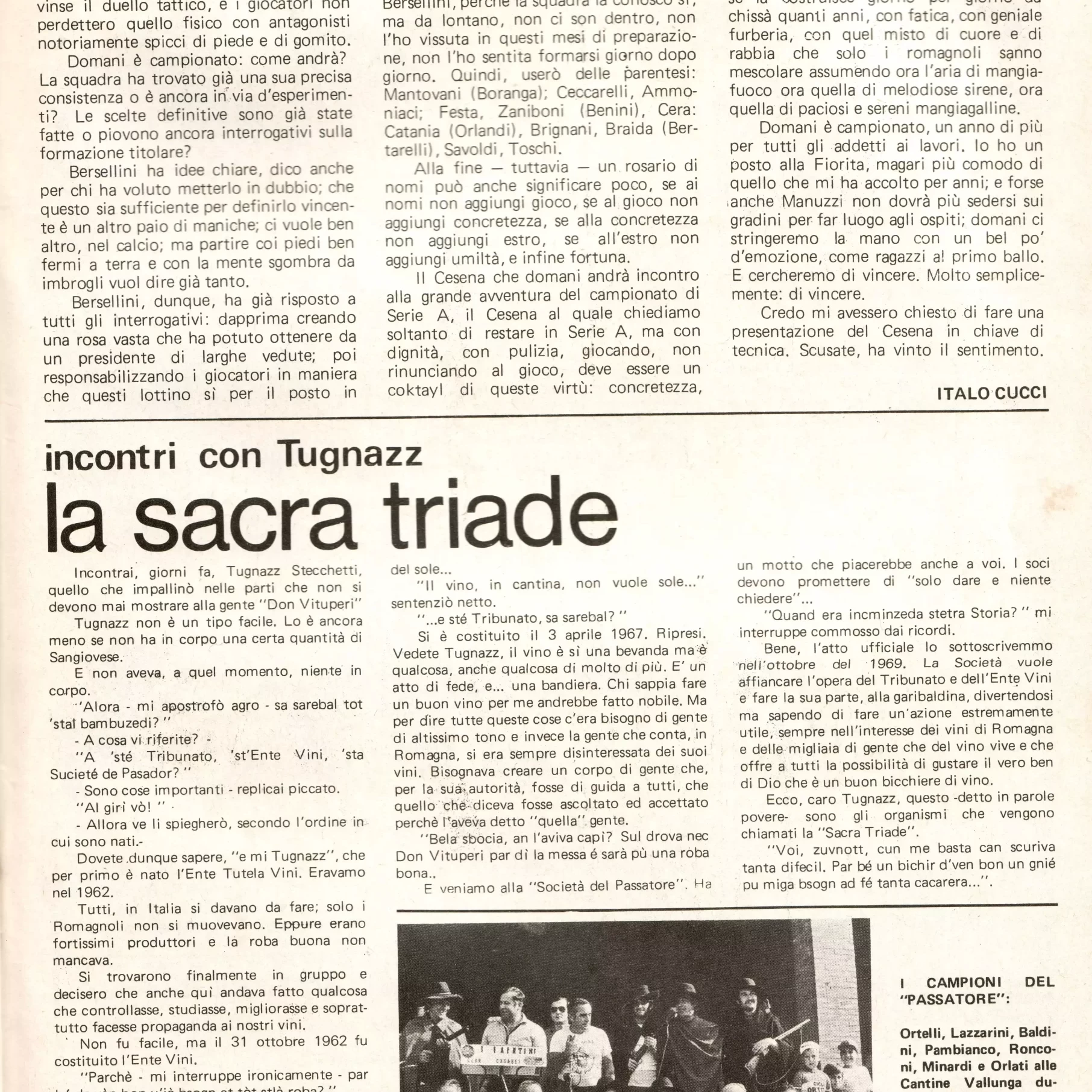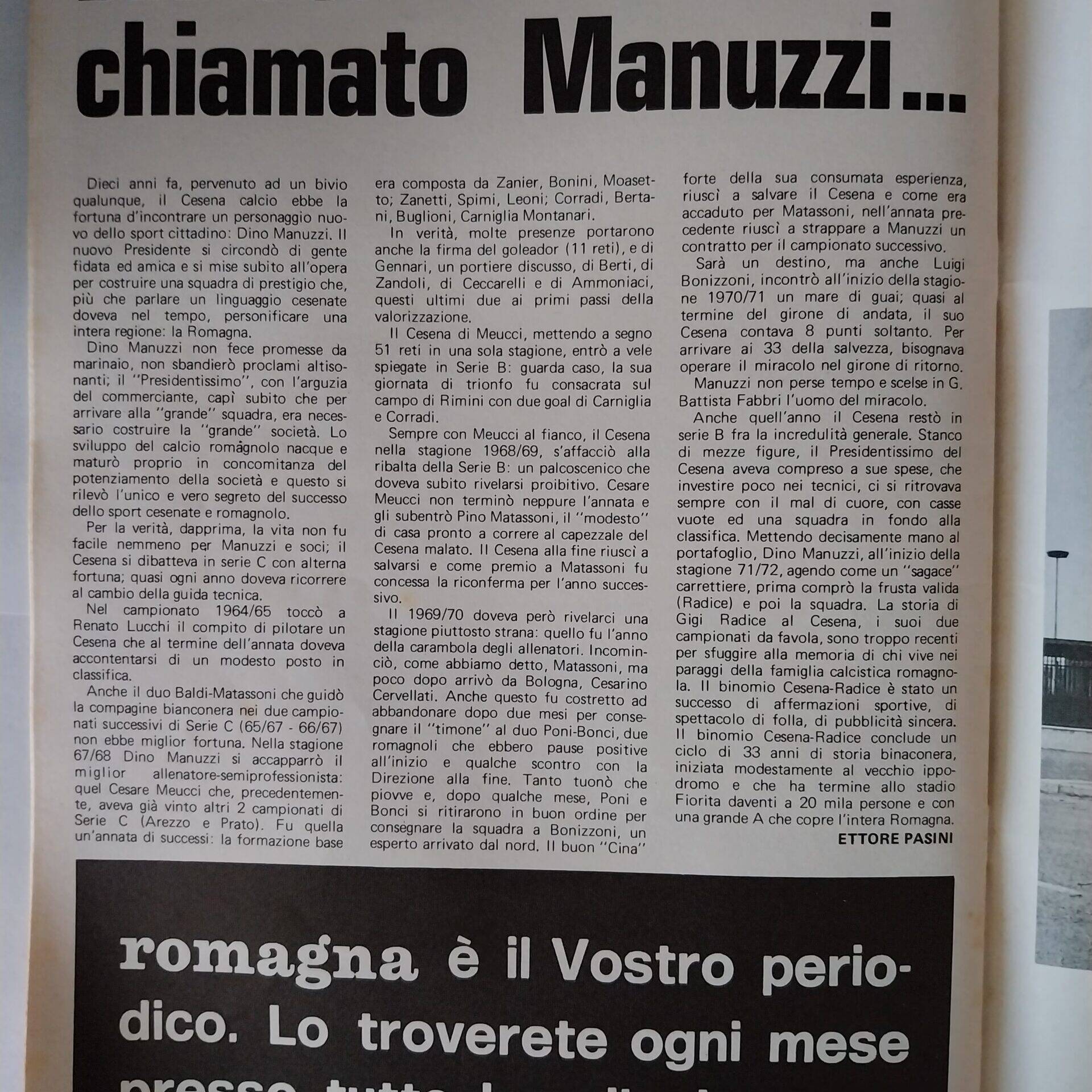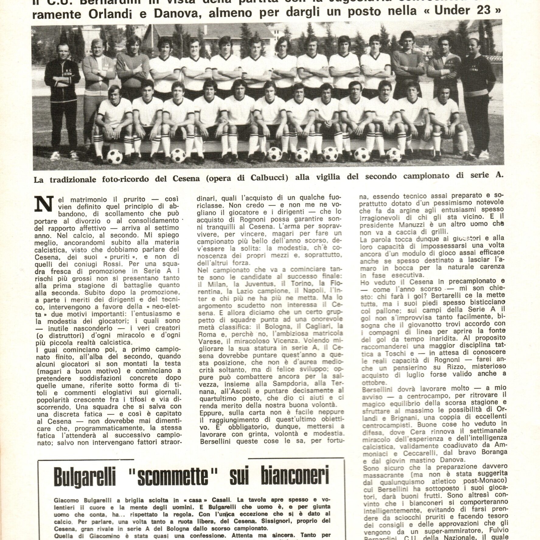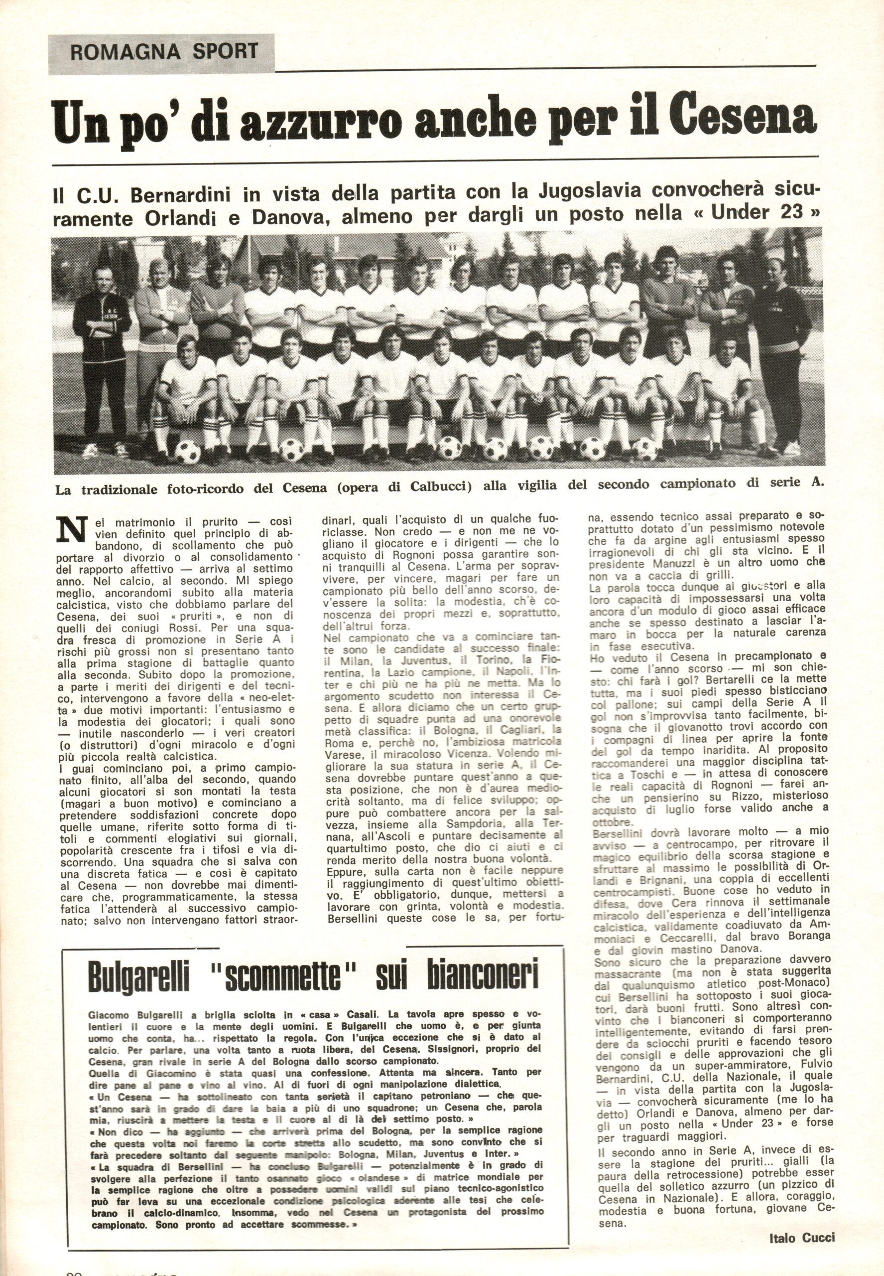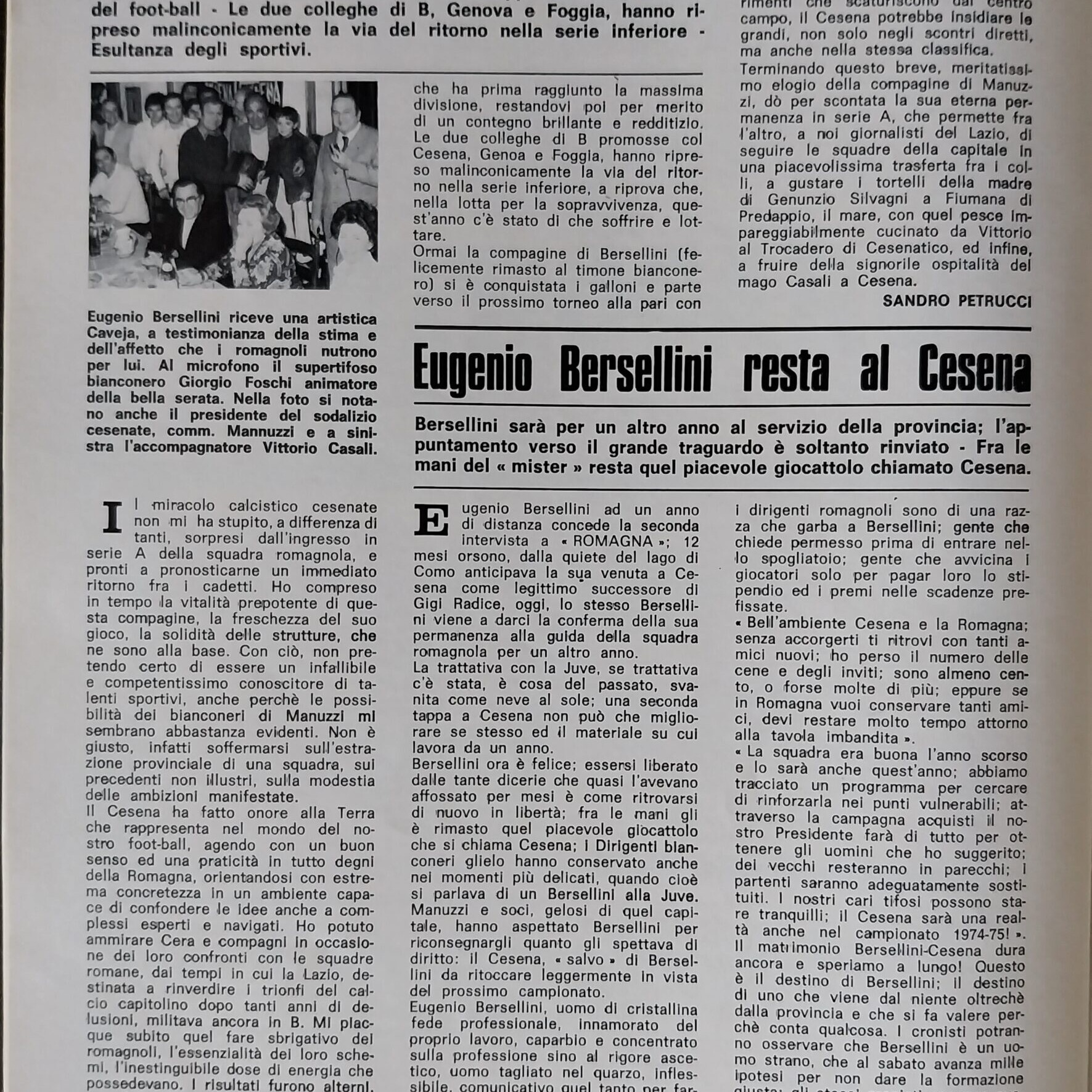 Romagna ottobre 1974, n. 10, p. 23, articolo Bersellini e Onesti 1974-75
