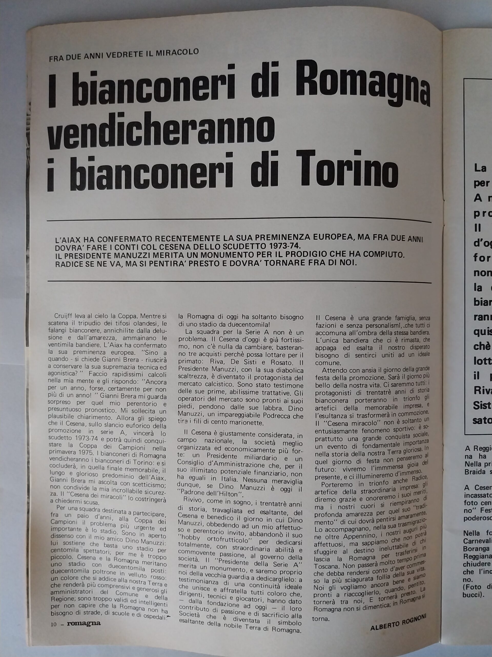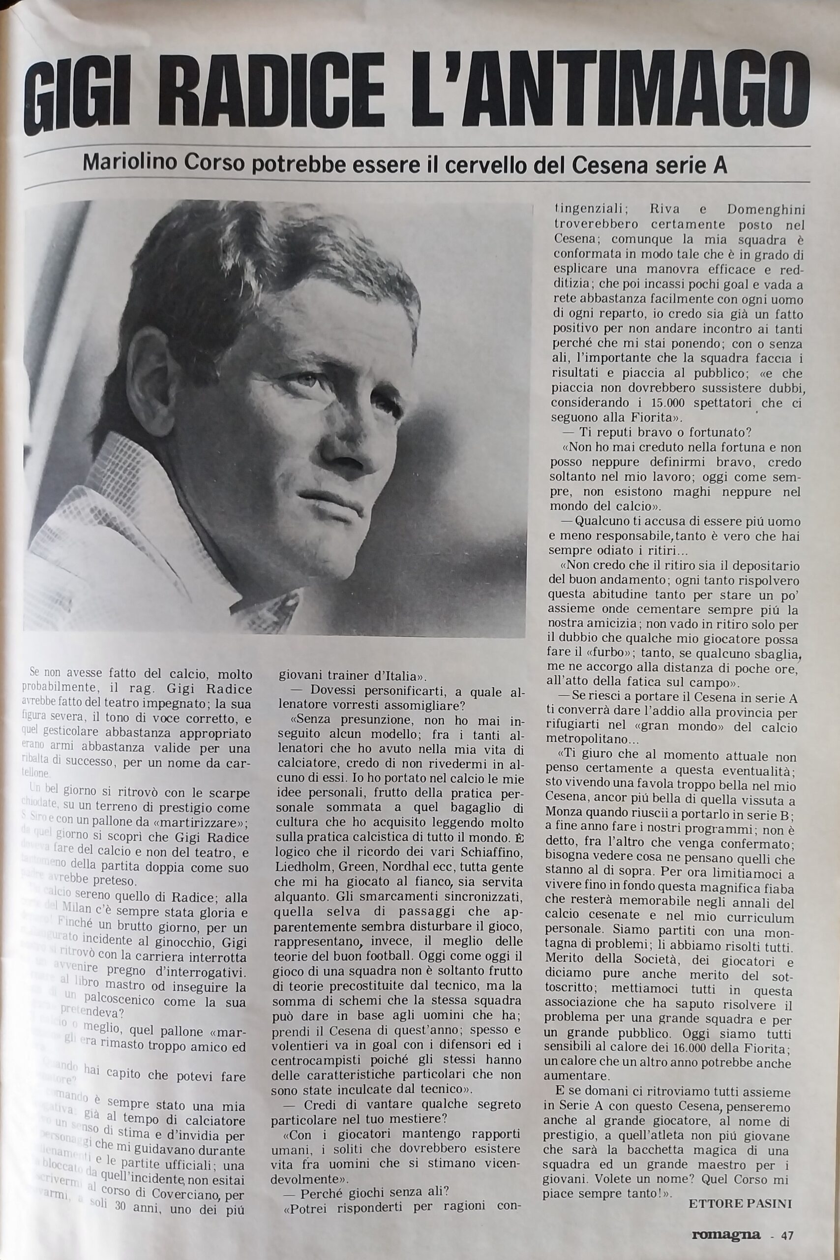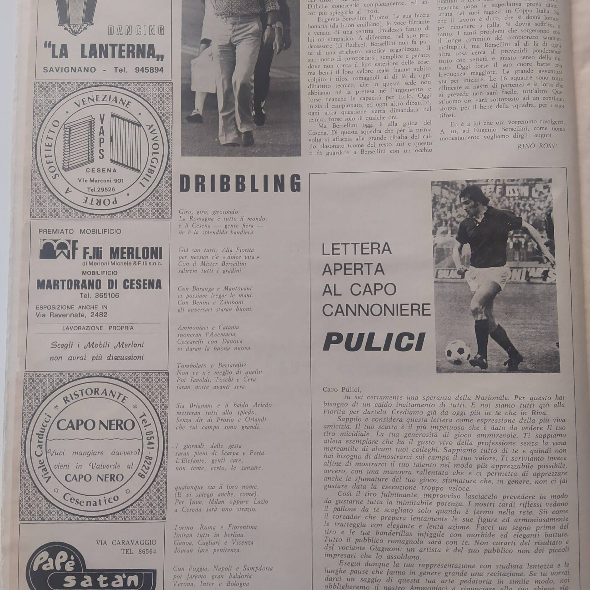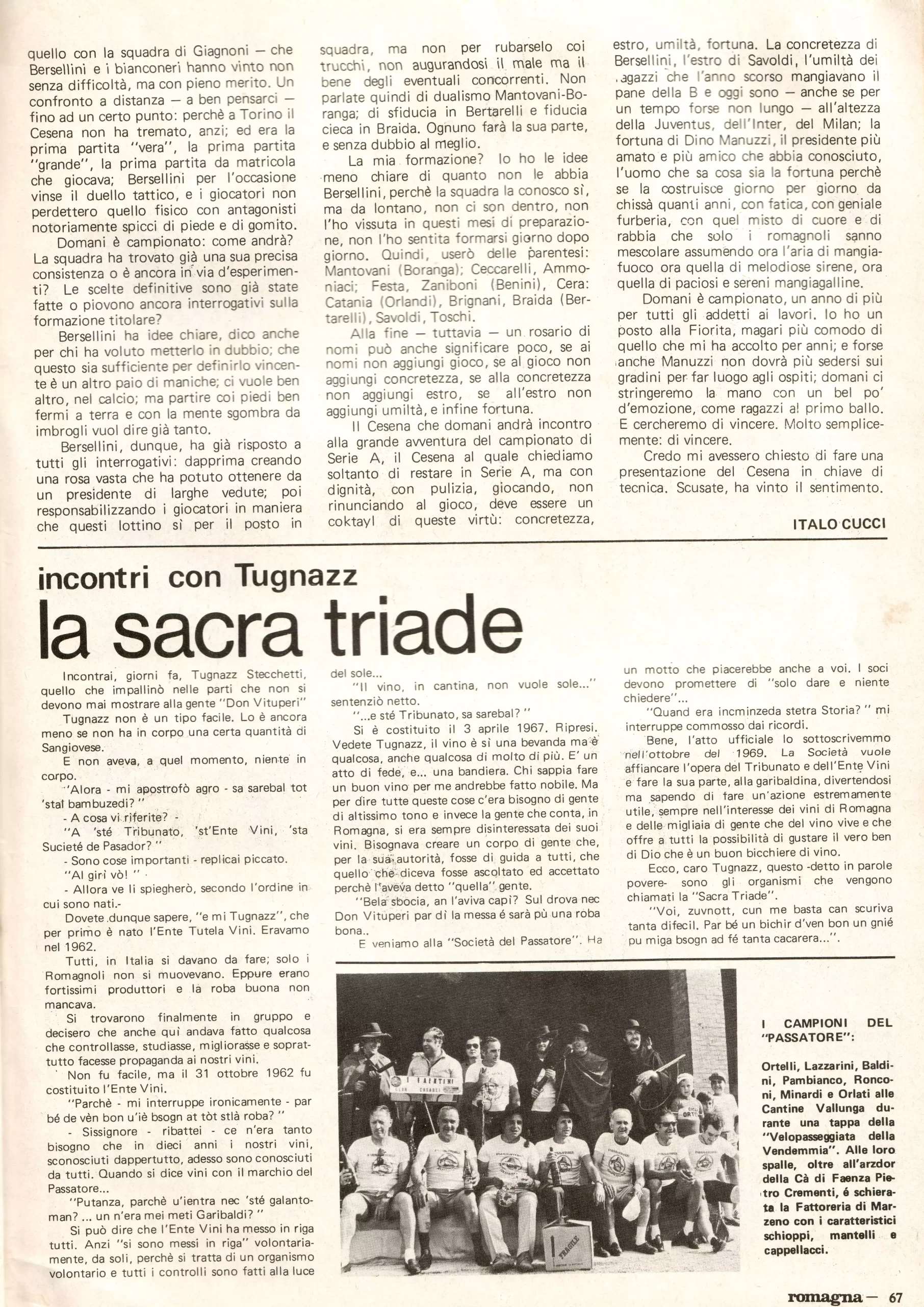 Romagna ottobre 1974, n. 10, p. 23, articolo Bersellini e Onesti 1974-75