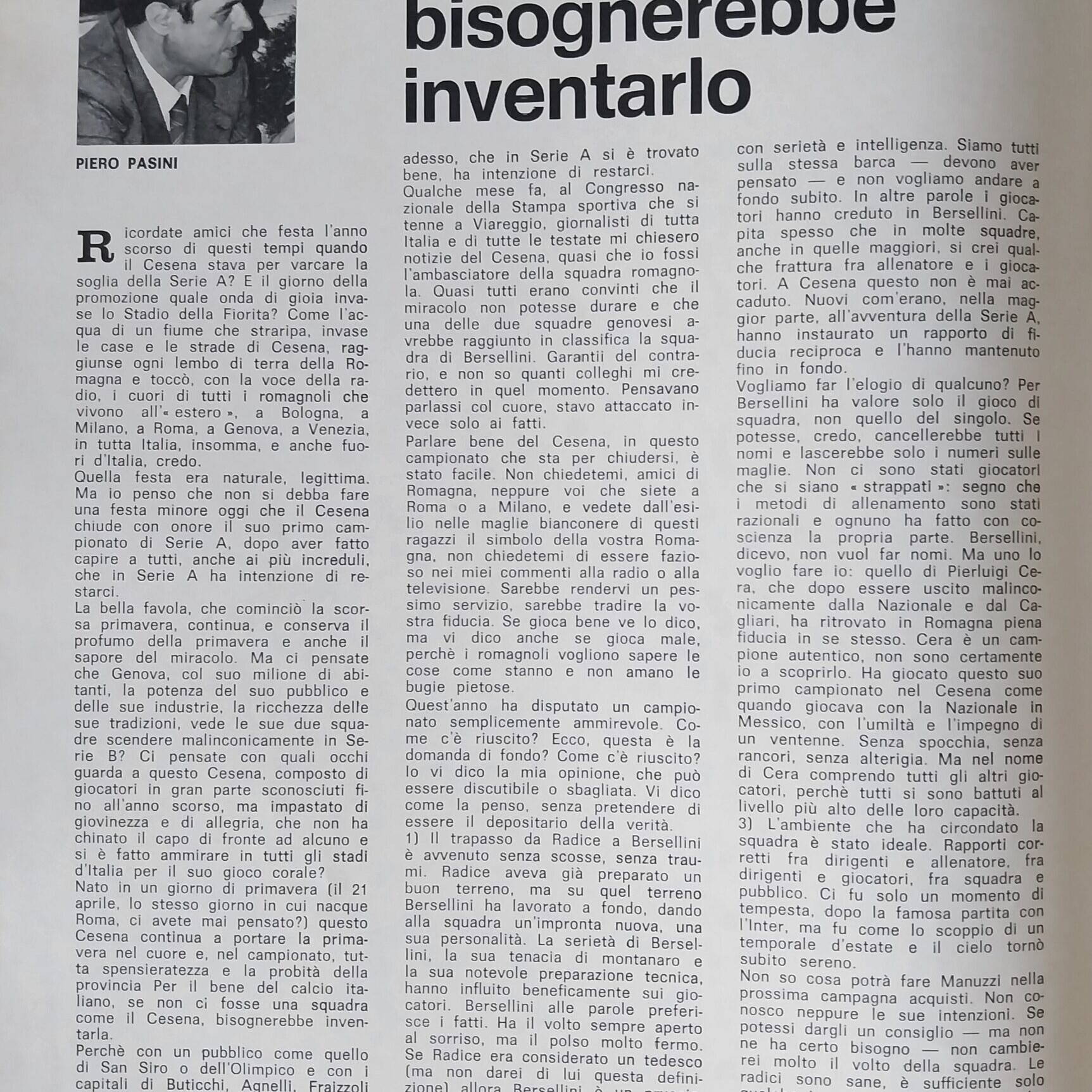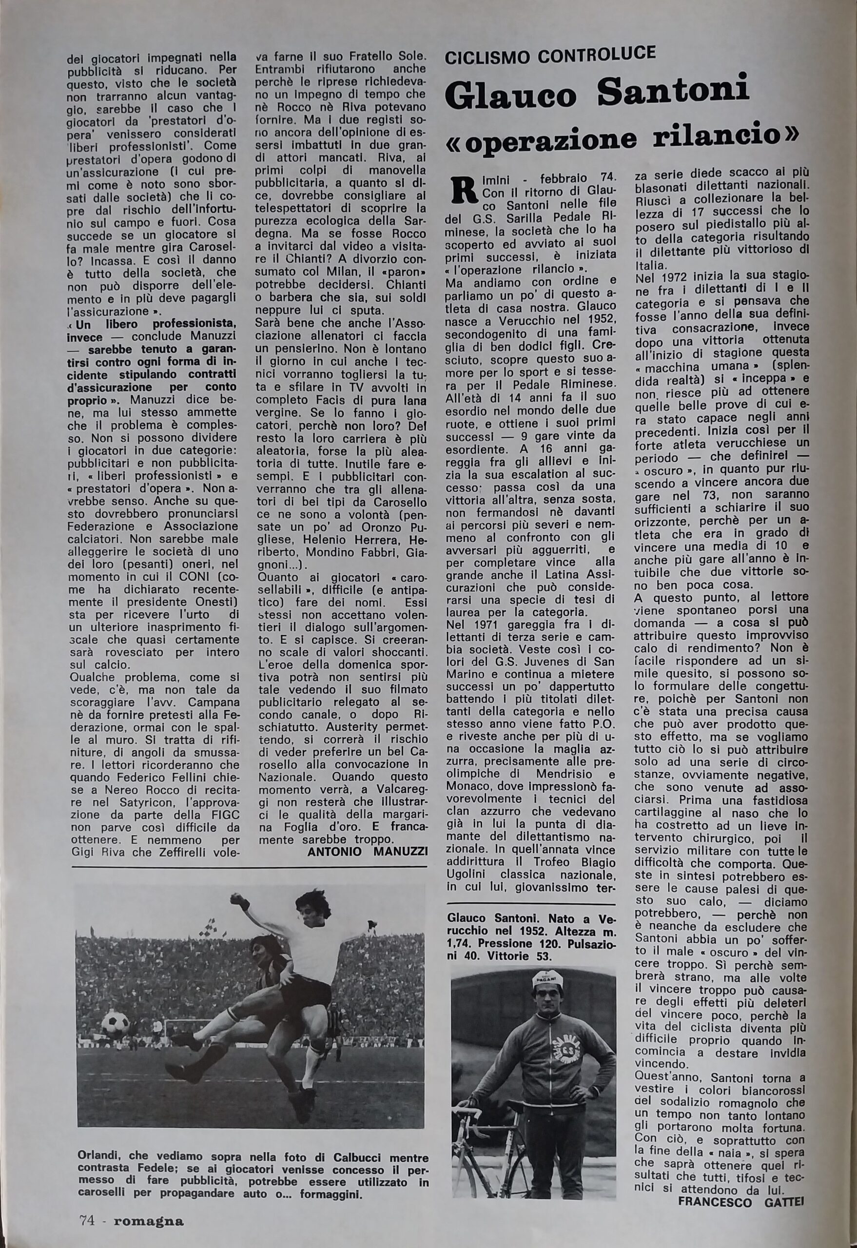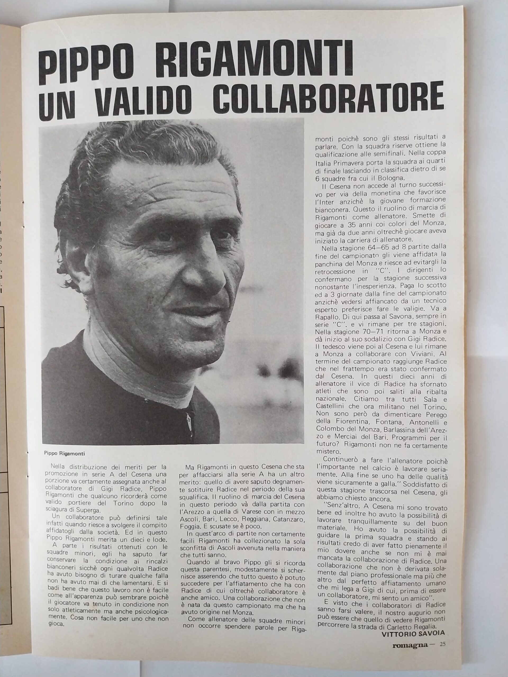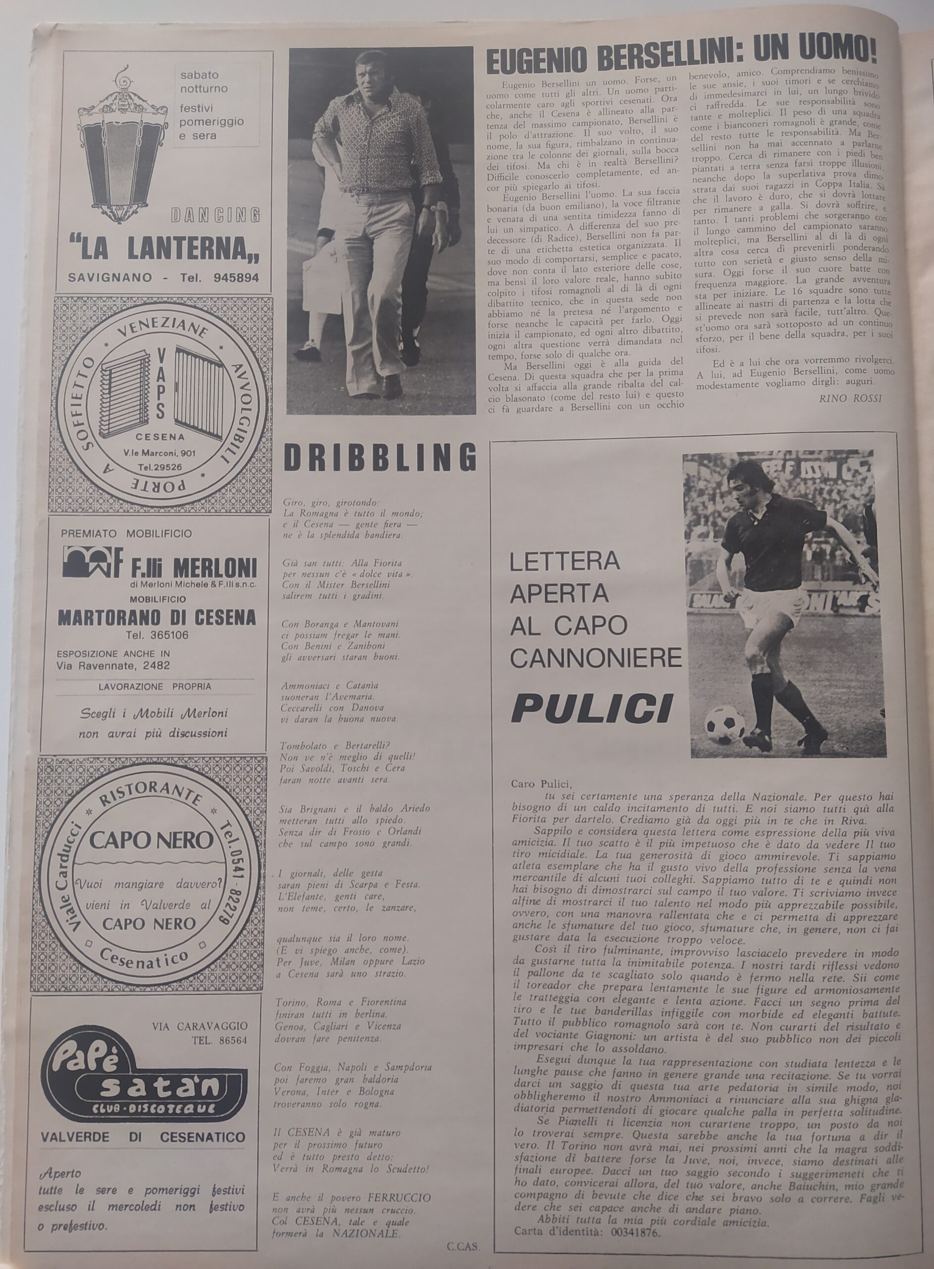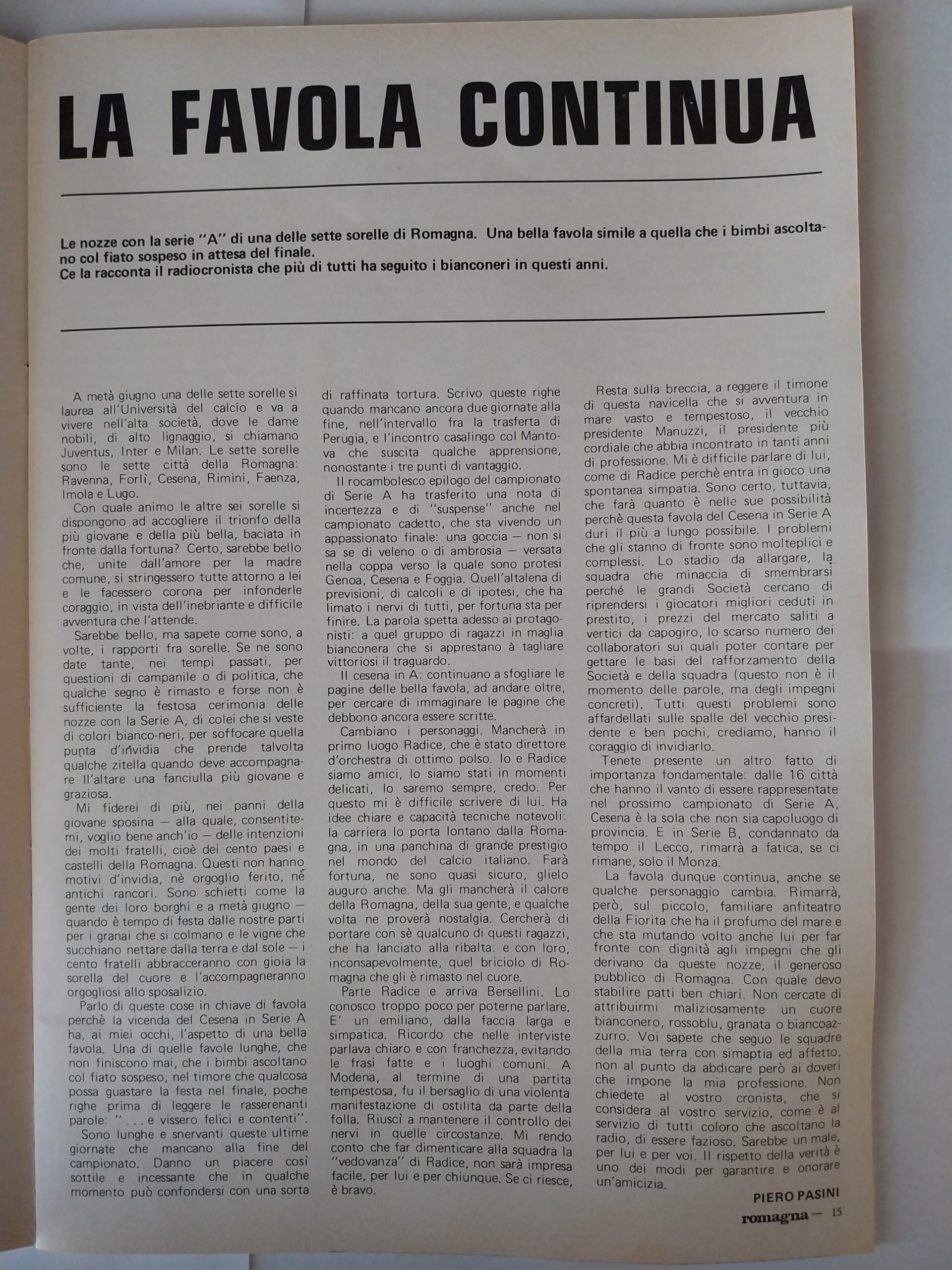 Romagna ottobre 1974, n. 10, p. 23, articolo Bersellini e Onesti 1974-75