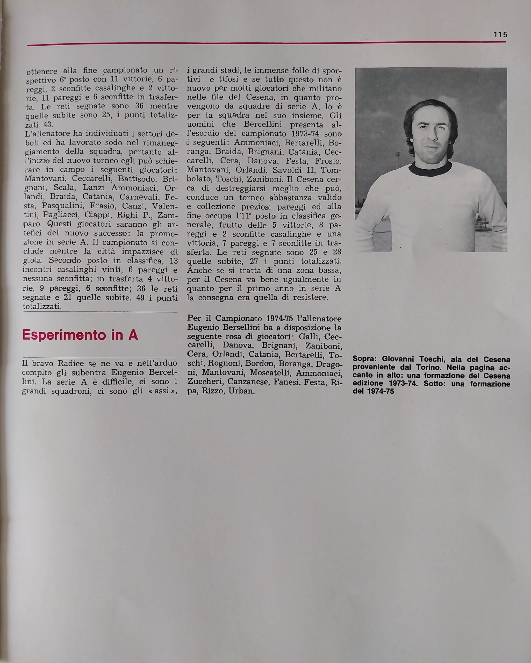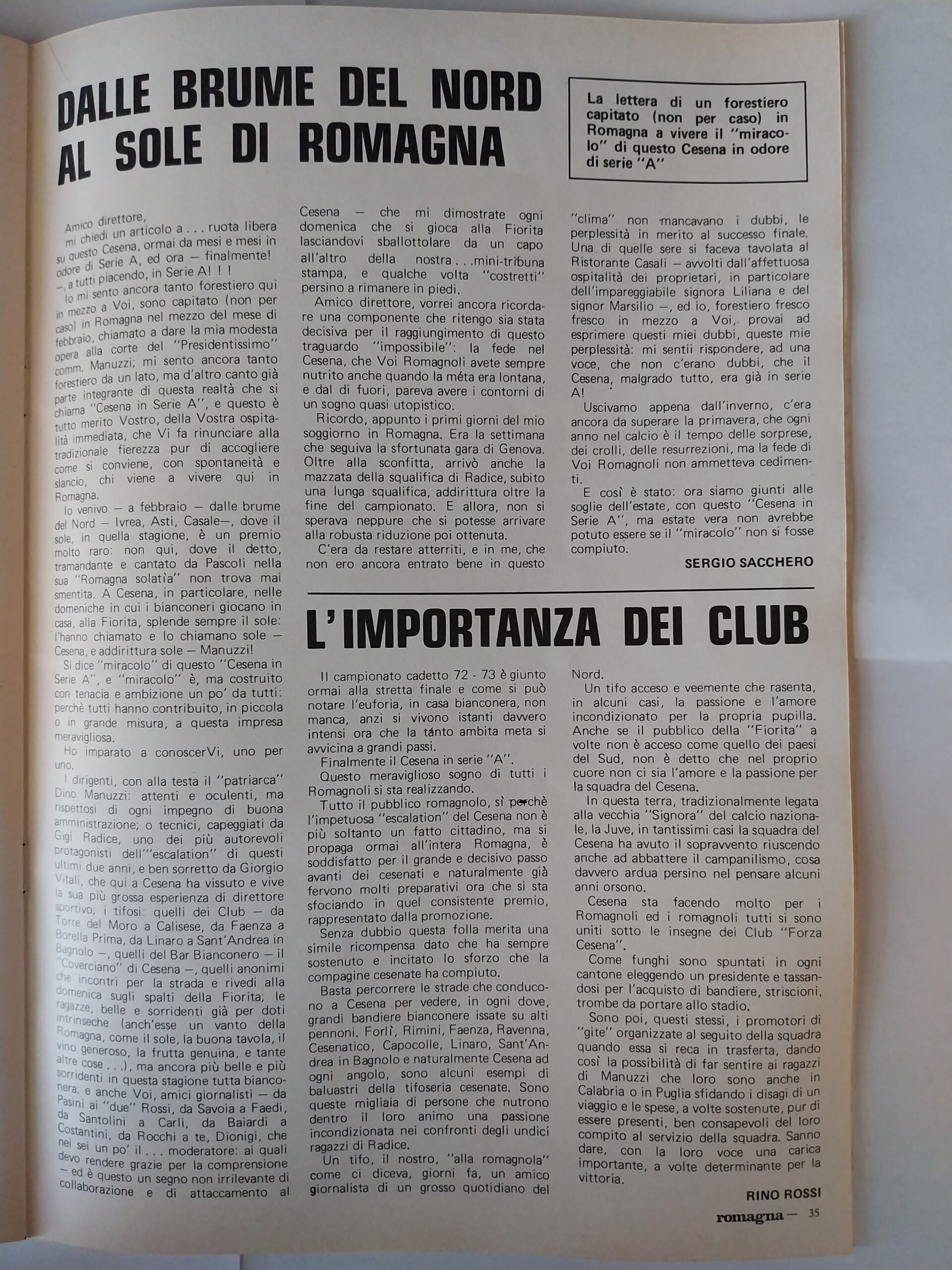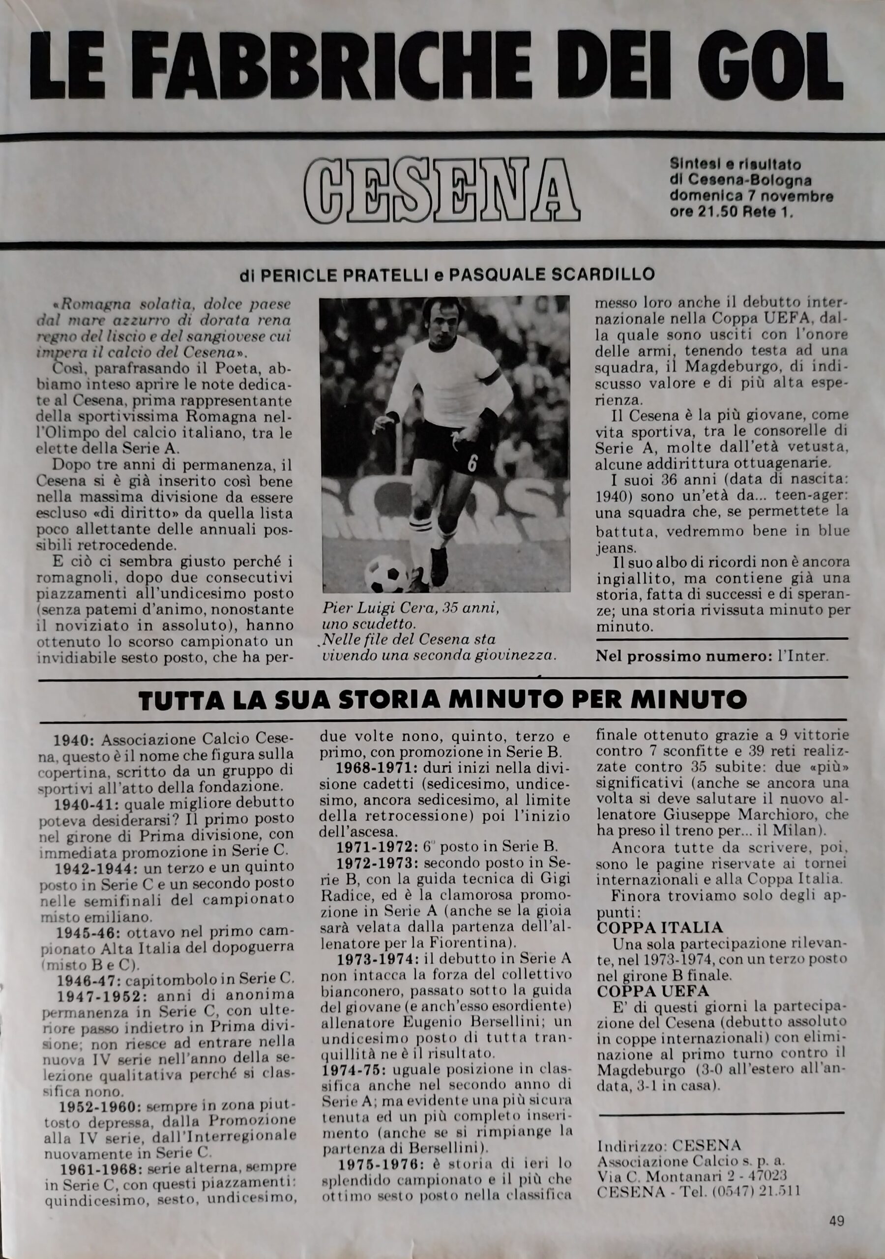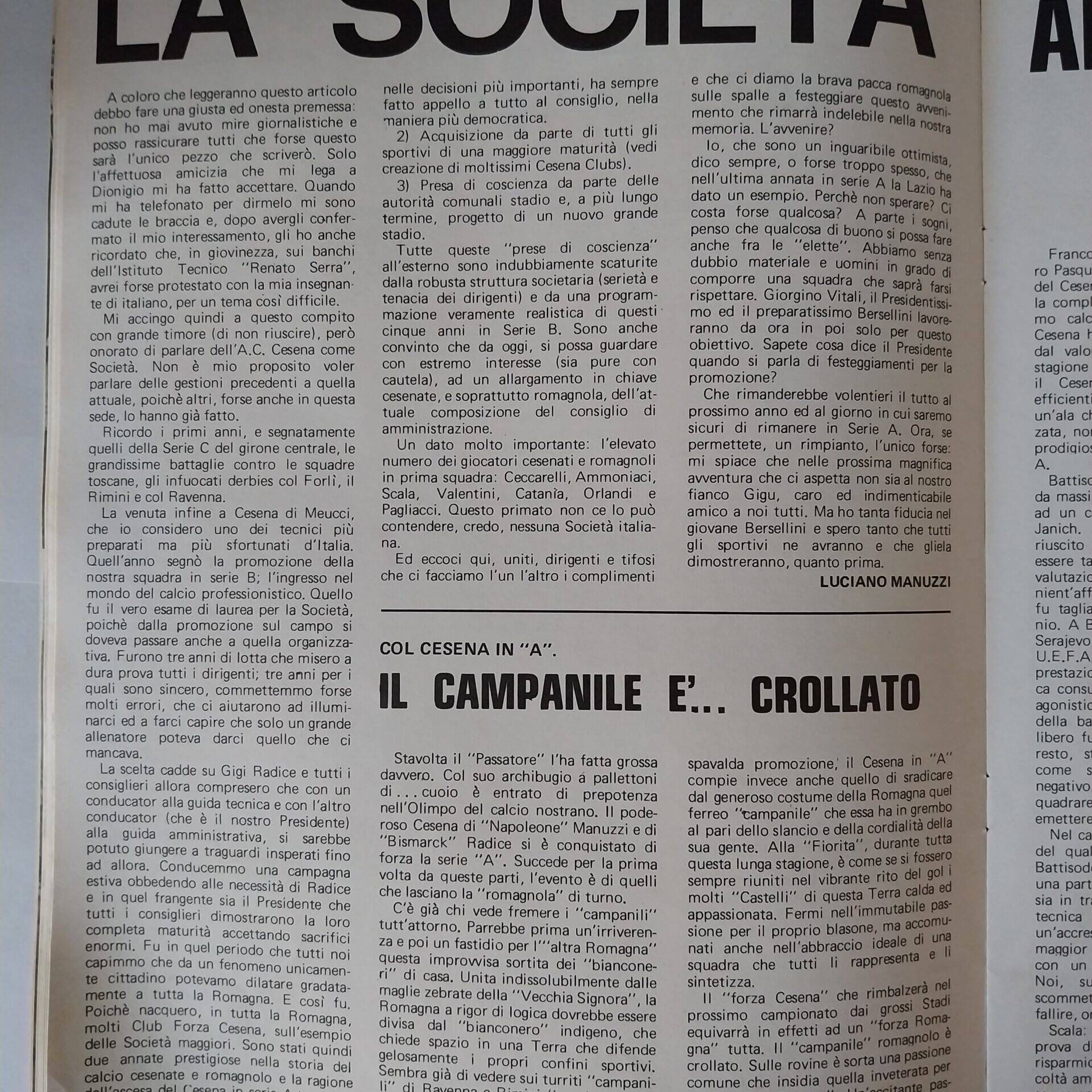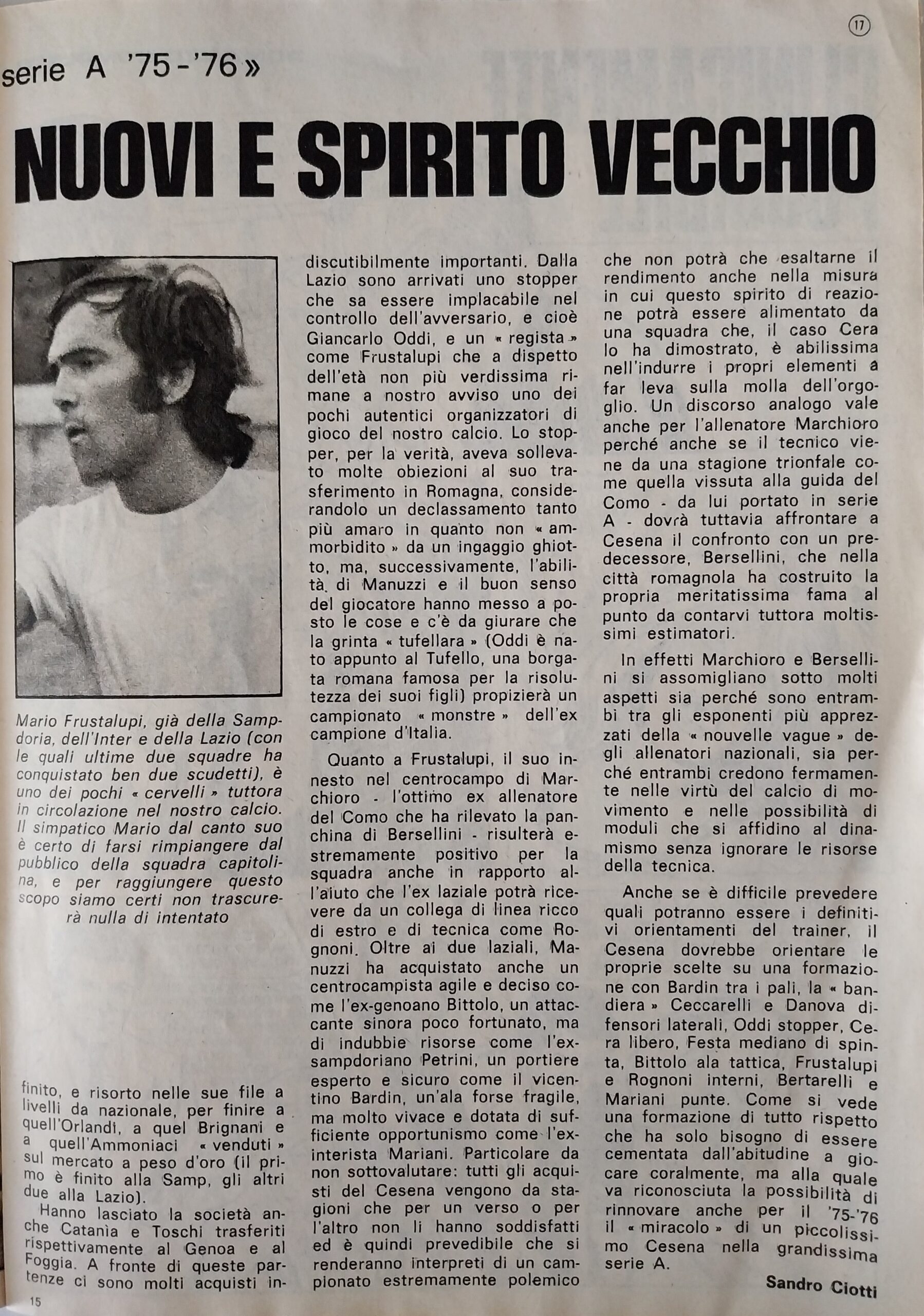 Romagna ottobre 1974, n. 10, p. 23, articolo Bersellini e Onesti 1974-75