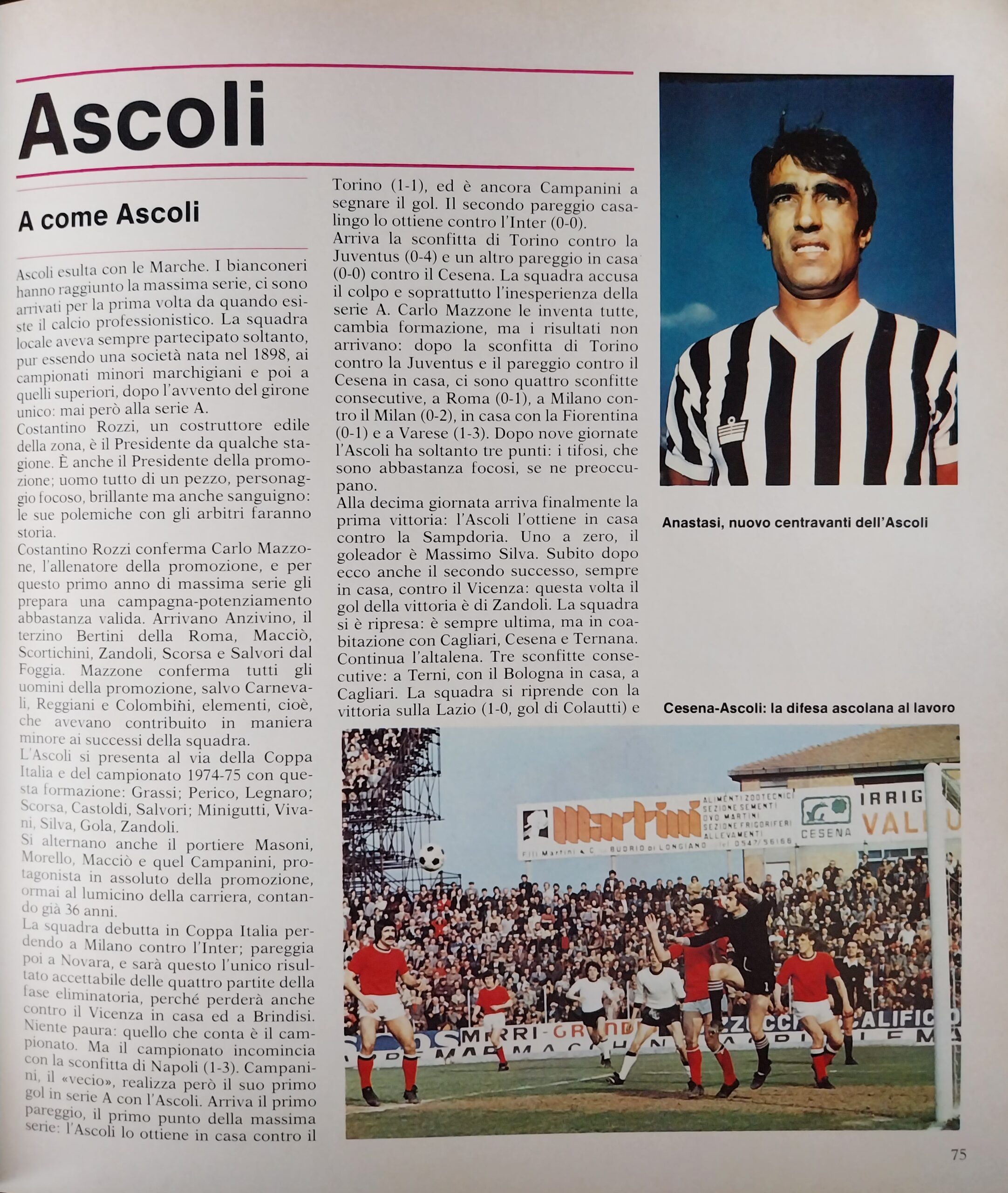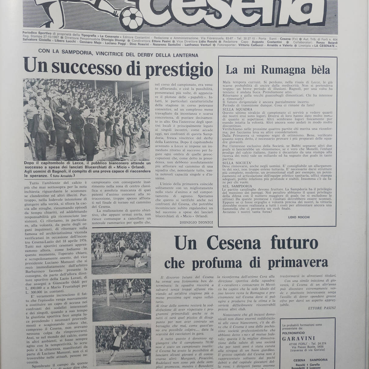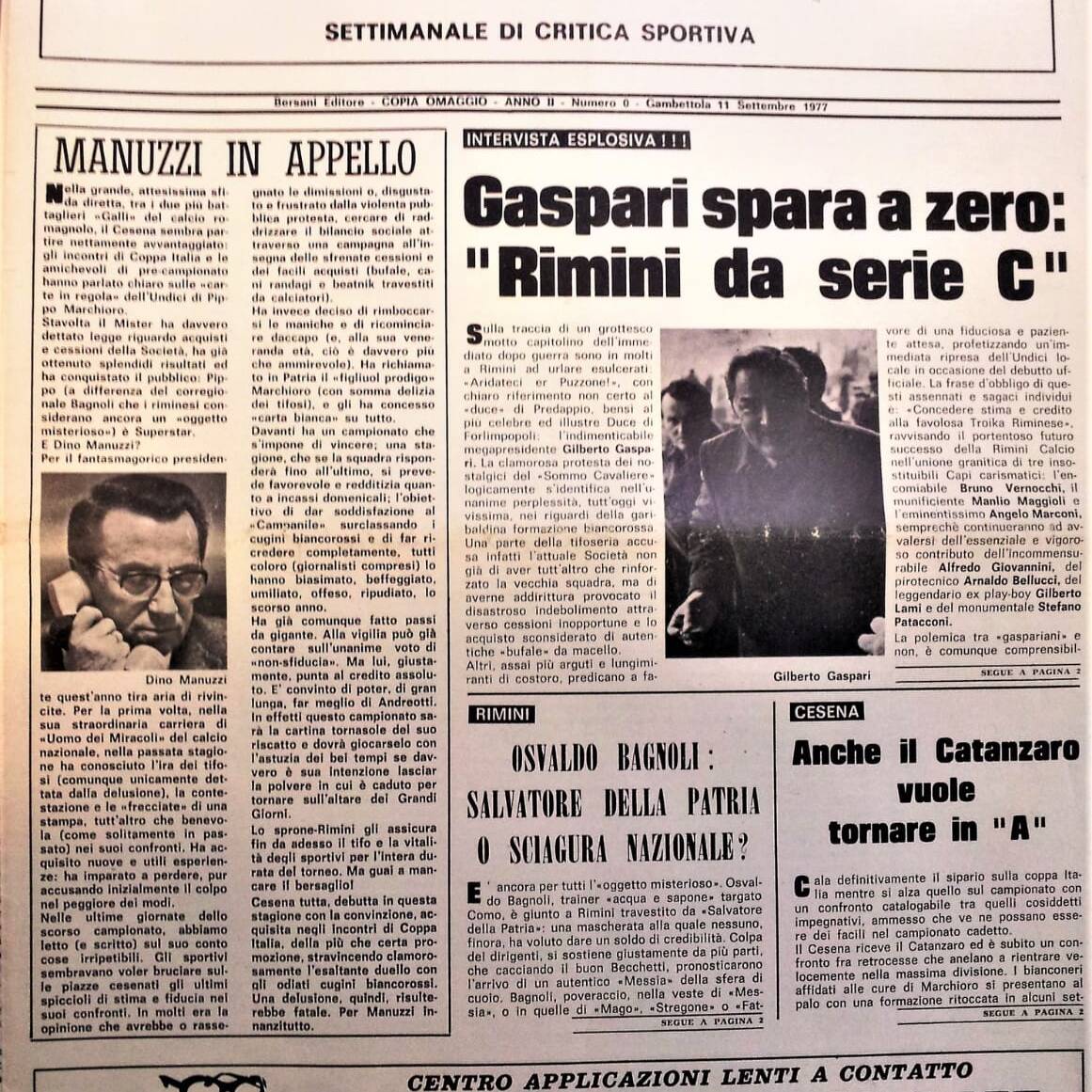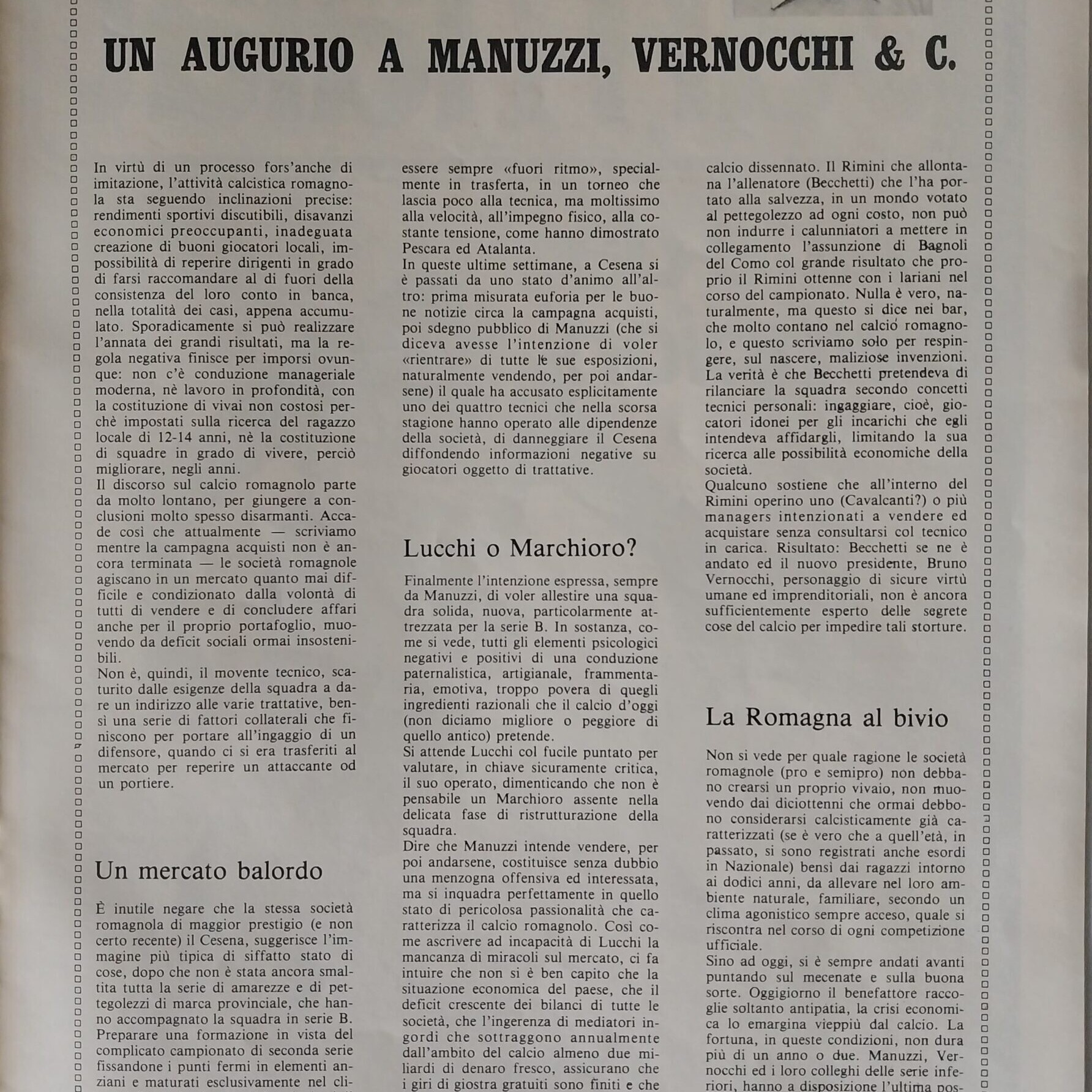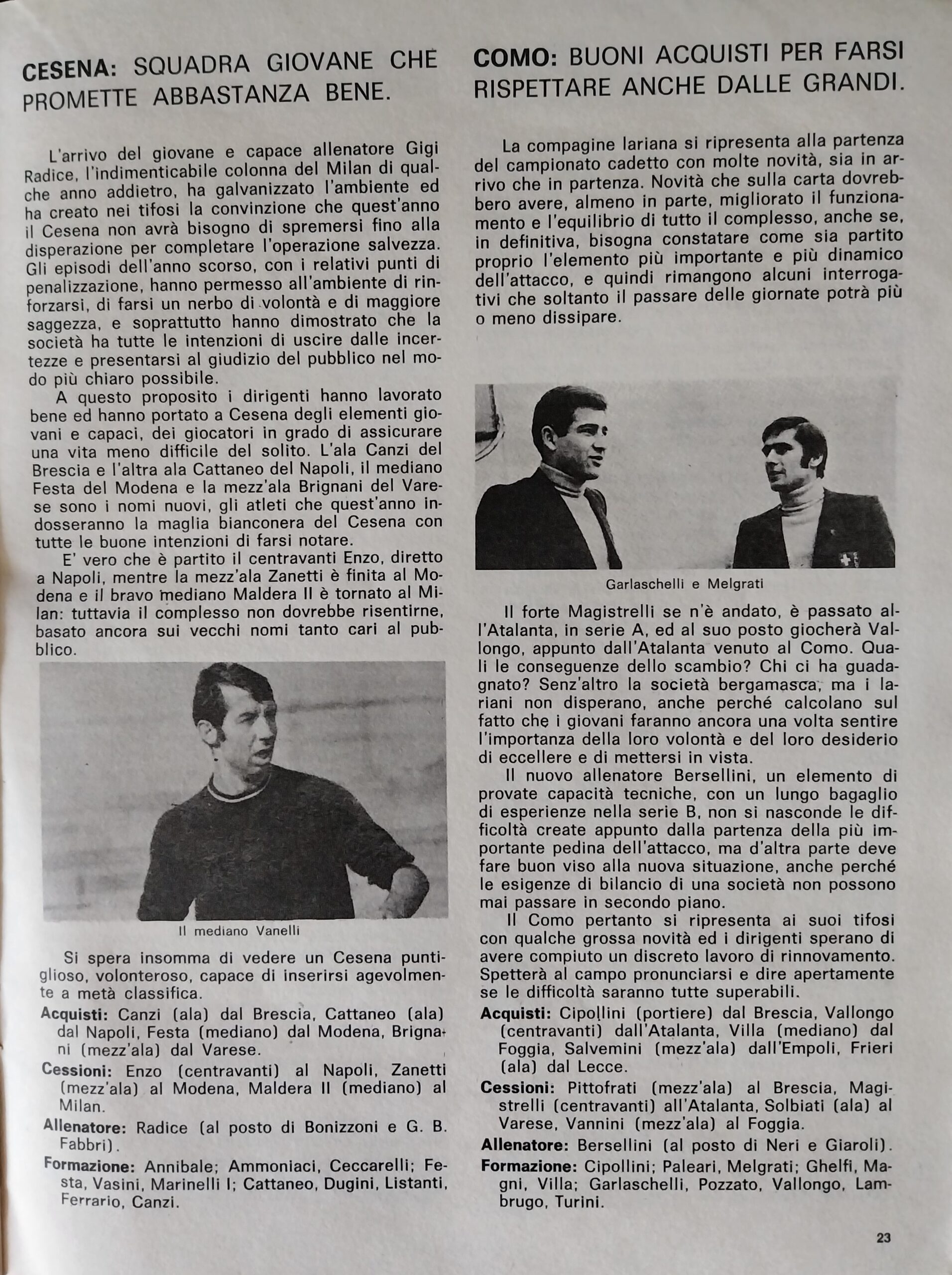 Romagna ottobre 1974, n. 10, p. 23, articolo Bersellini e Onesti 1974-75