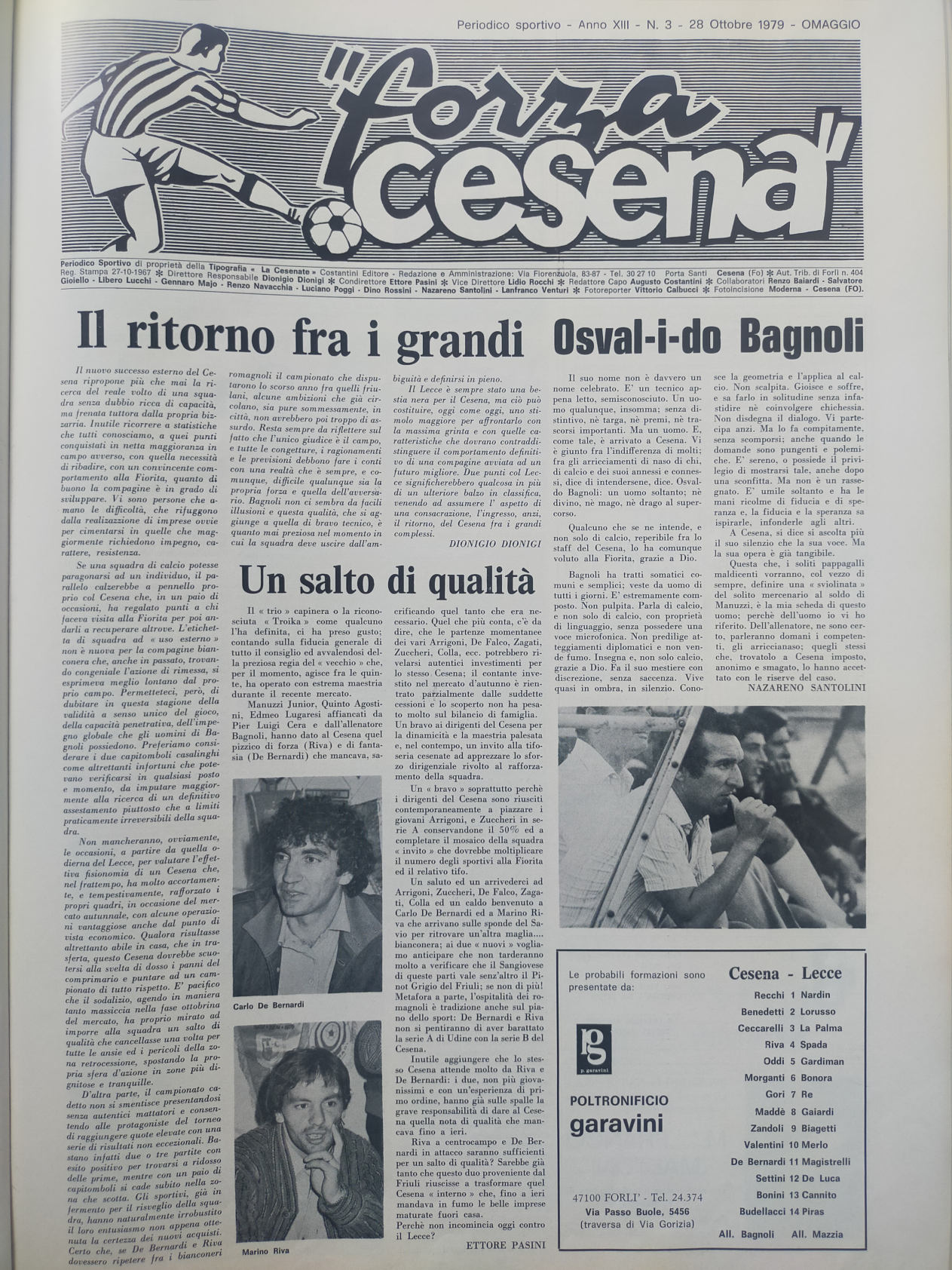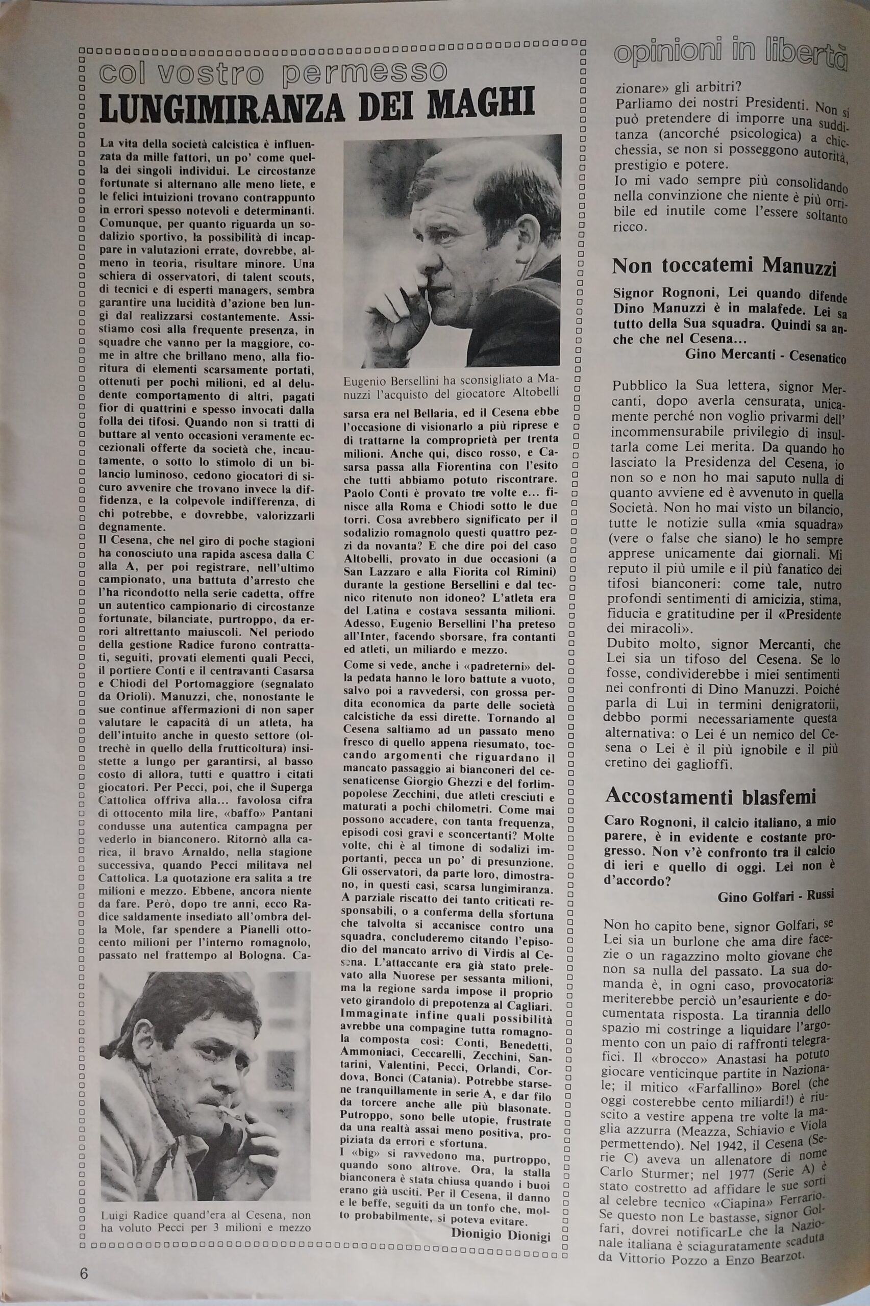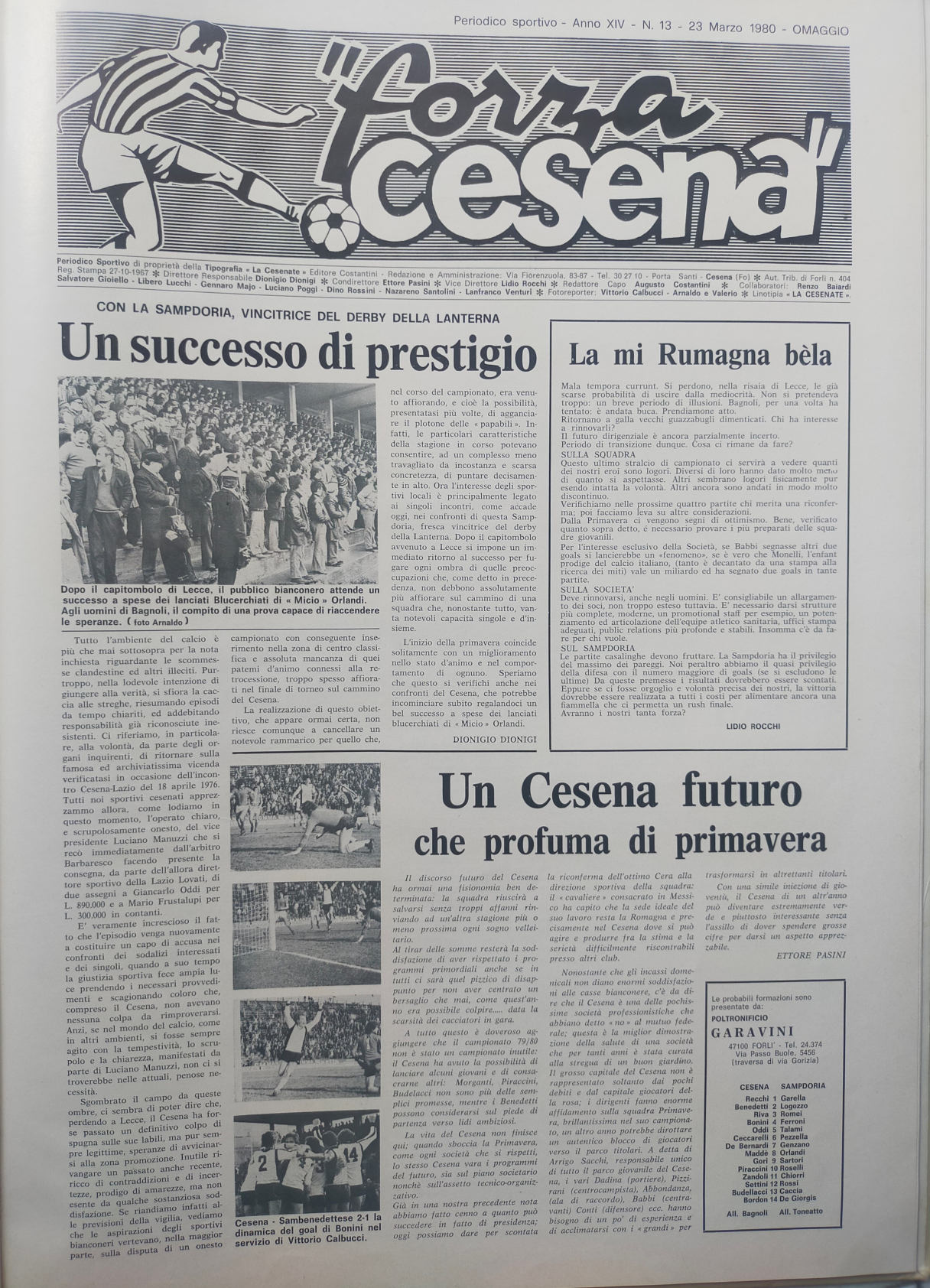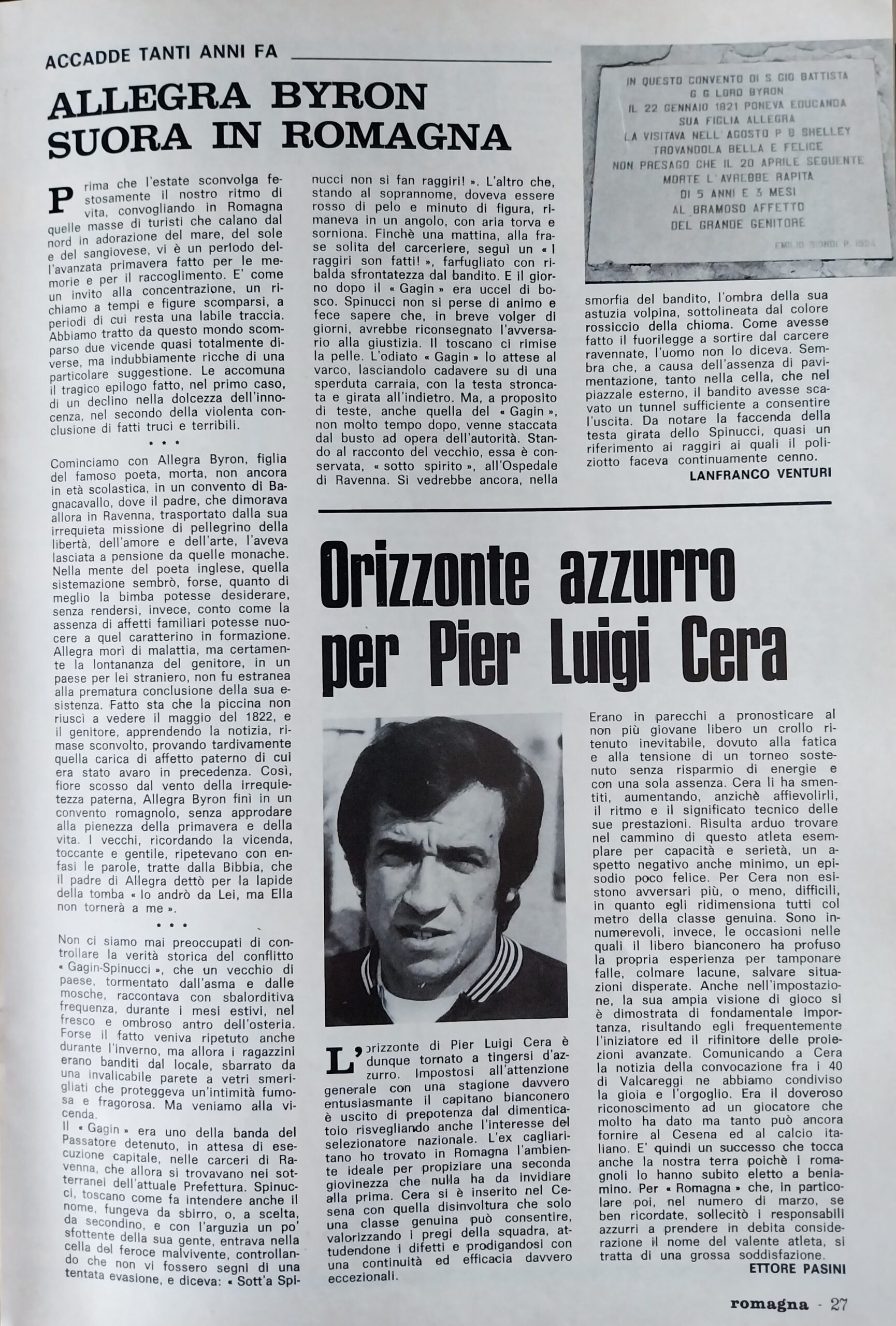 Romagna ottobre 1974, n. 10, p. 23, articolo Bersellini e Onesti 1974-75