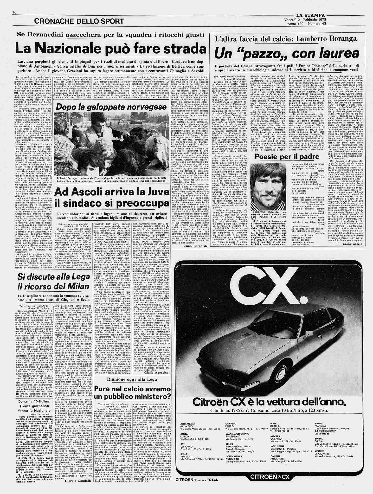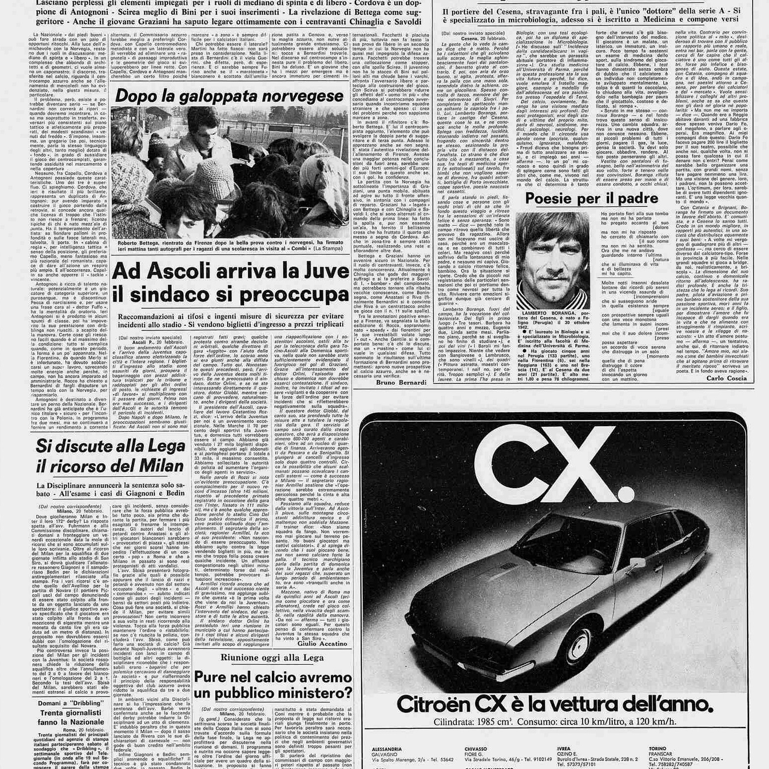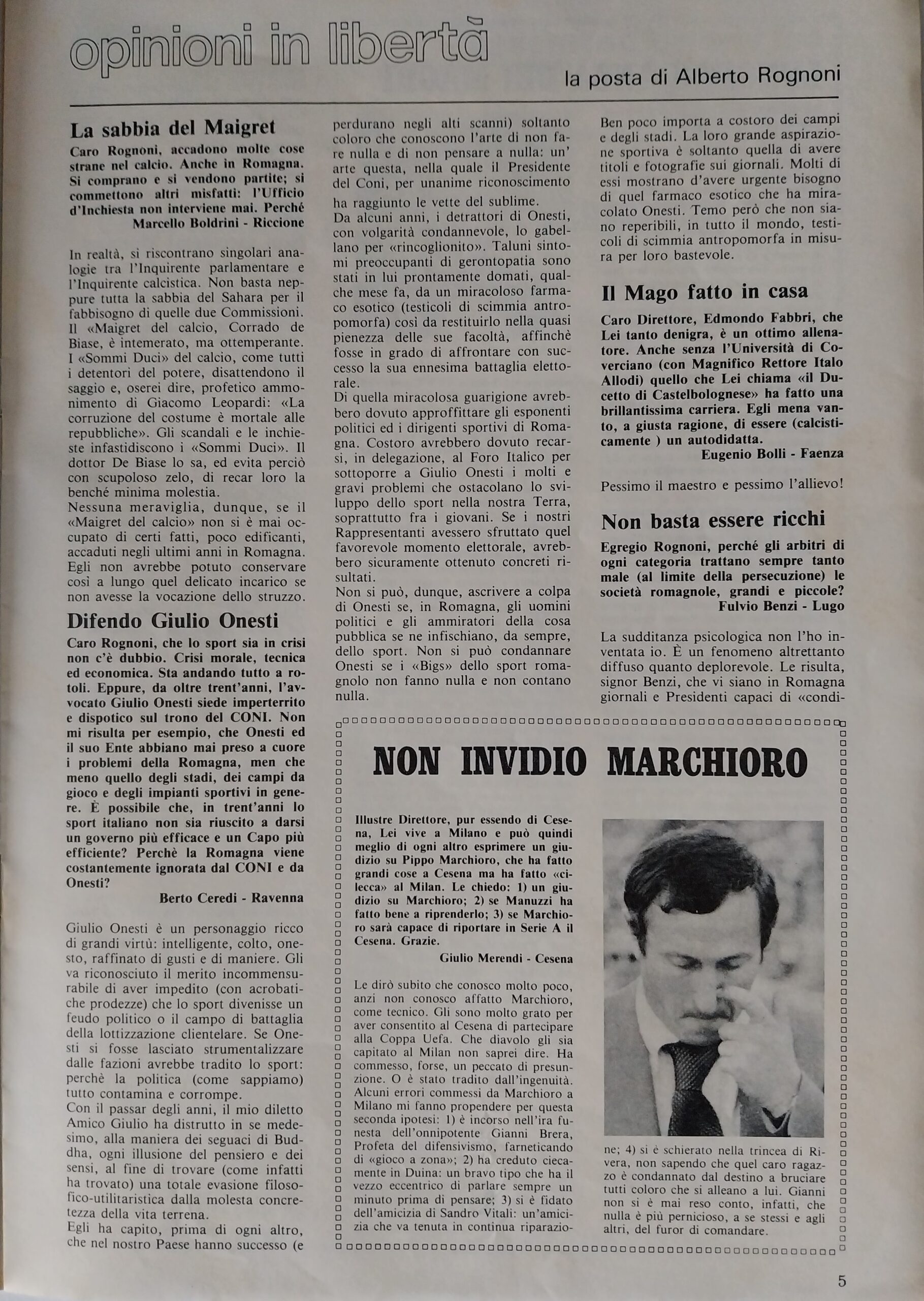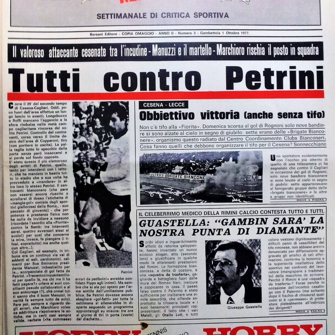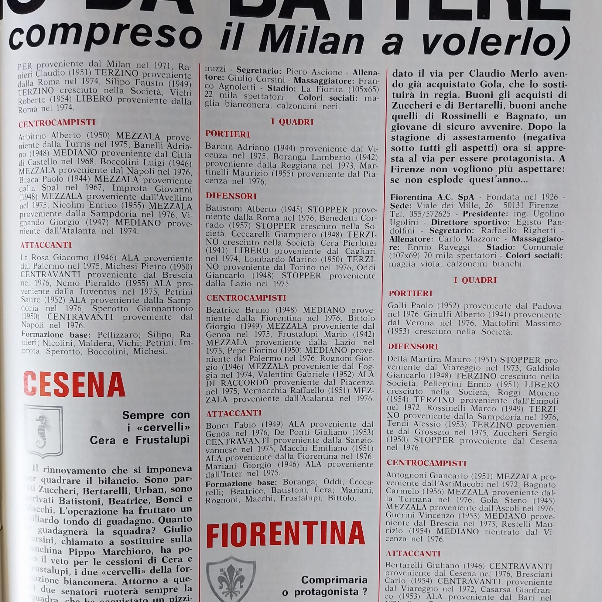 Romagna ottobre 1974, n. 10, p. 23, articolo Bersellini e Onesti 1974-75