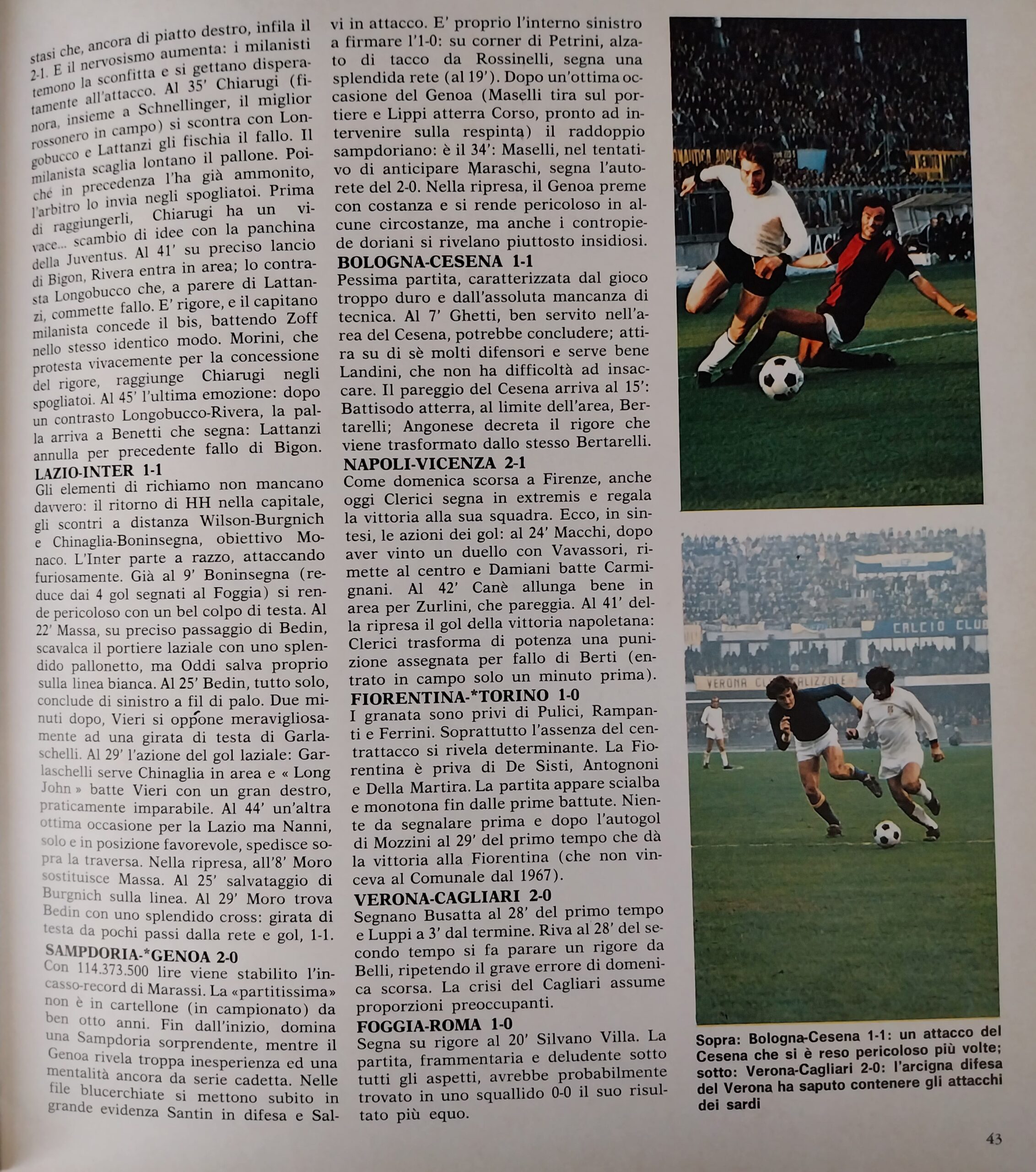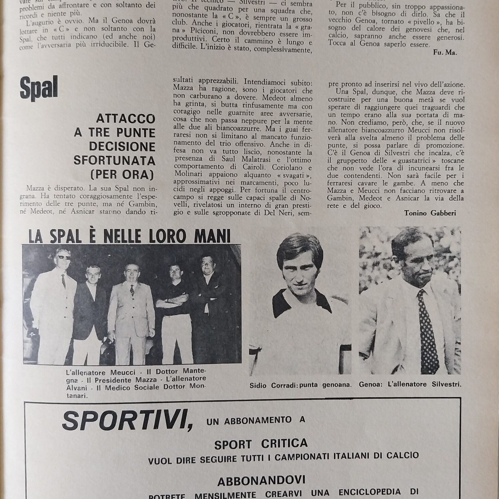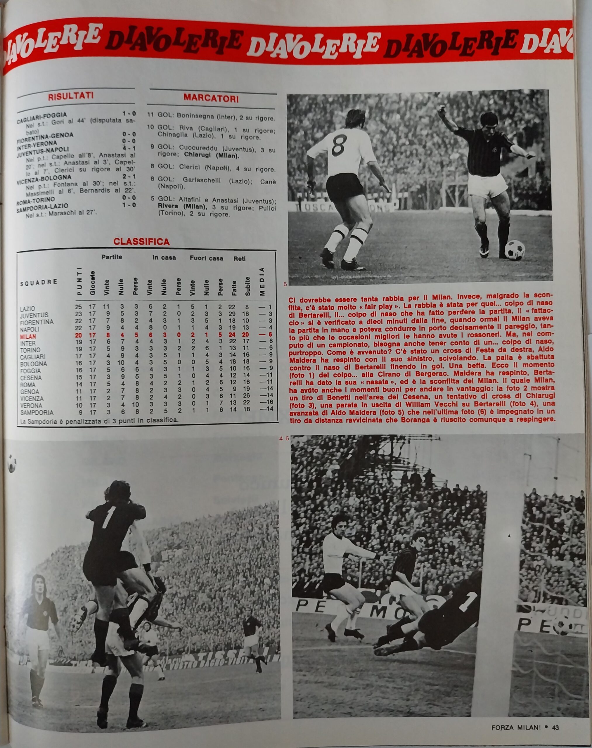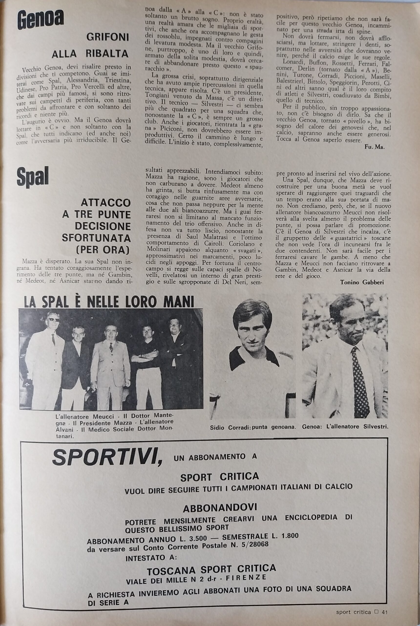 Sport Critica, ottobre 1970, n. 8, p. 41, 1970-71 con foto Corradi 1968-69