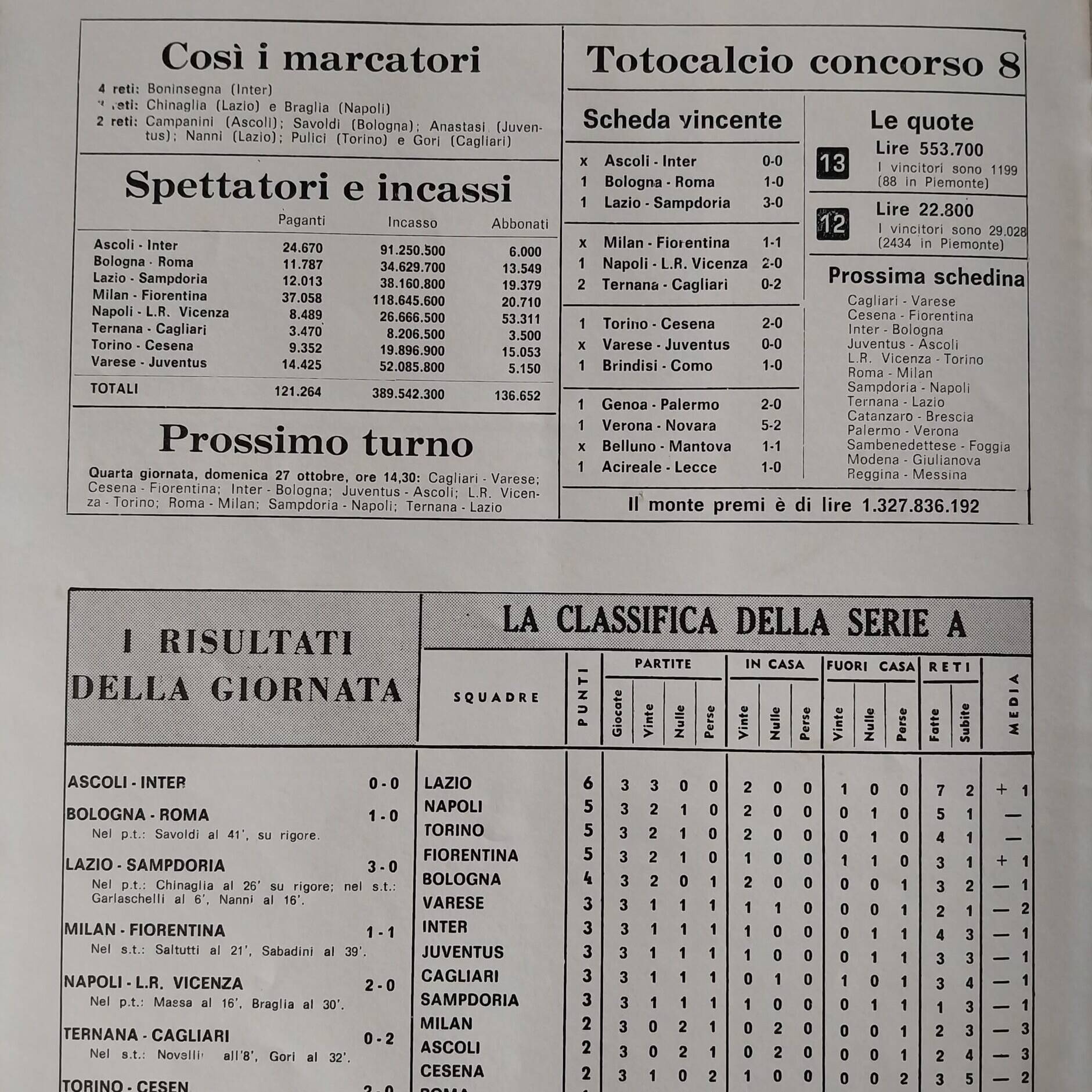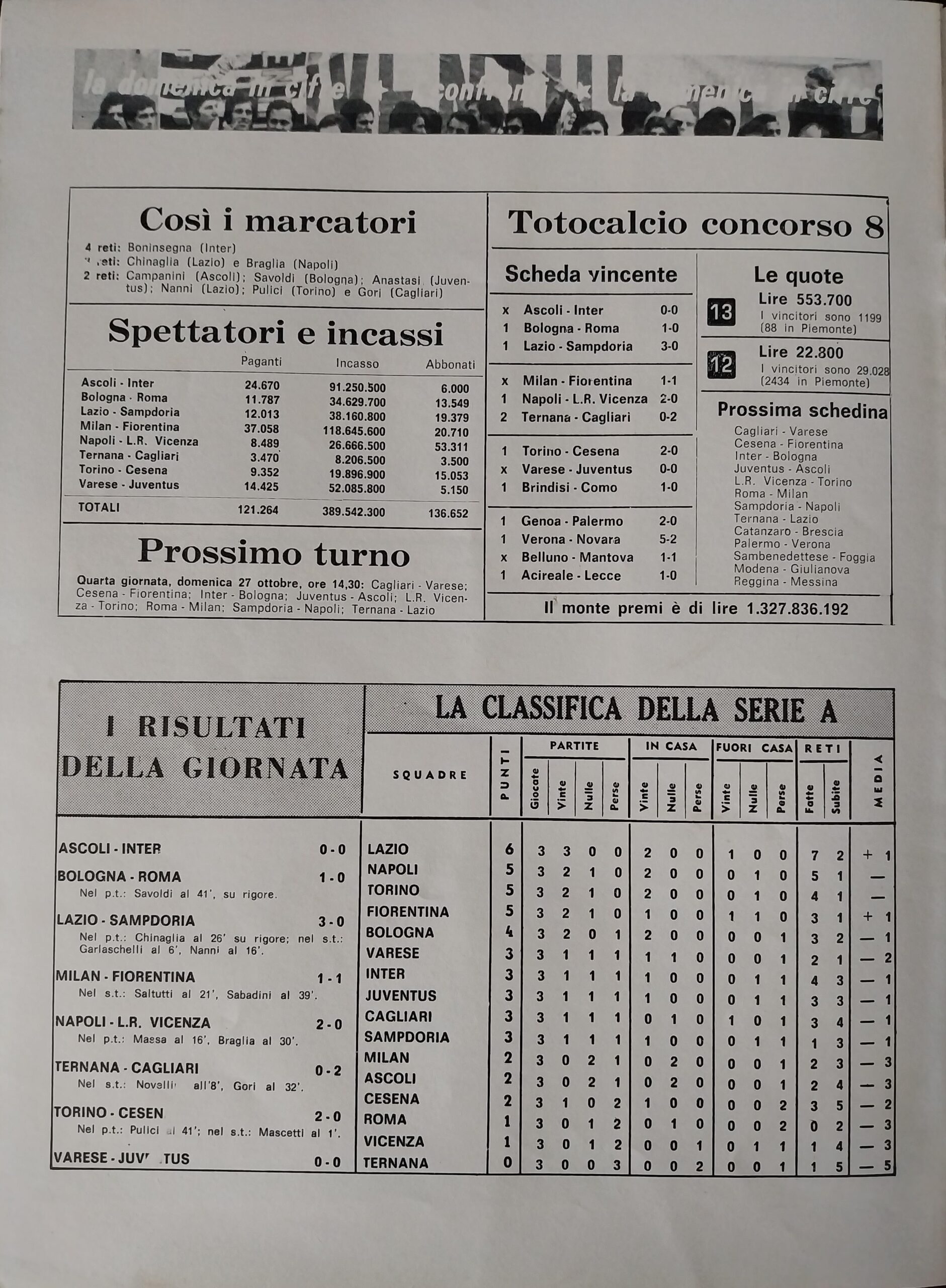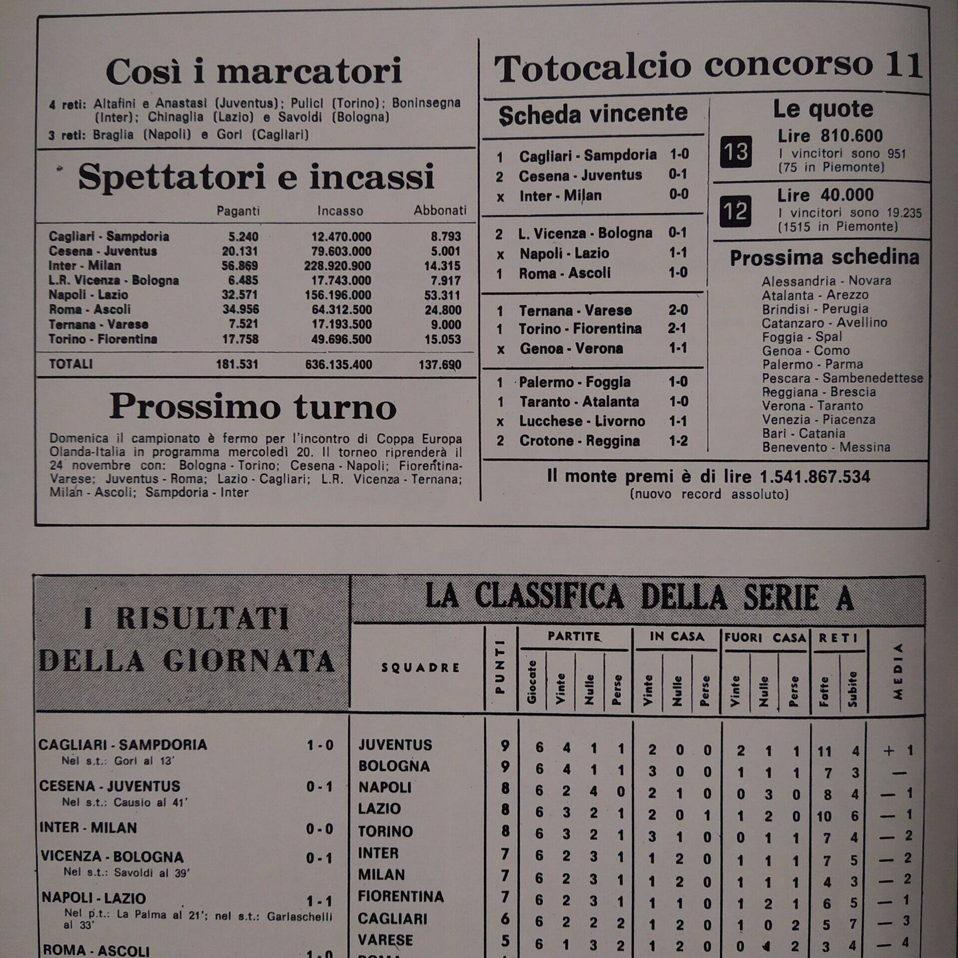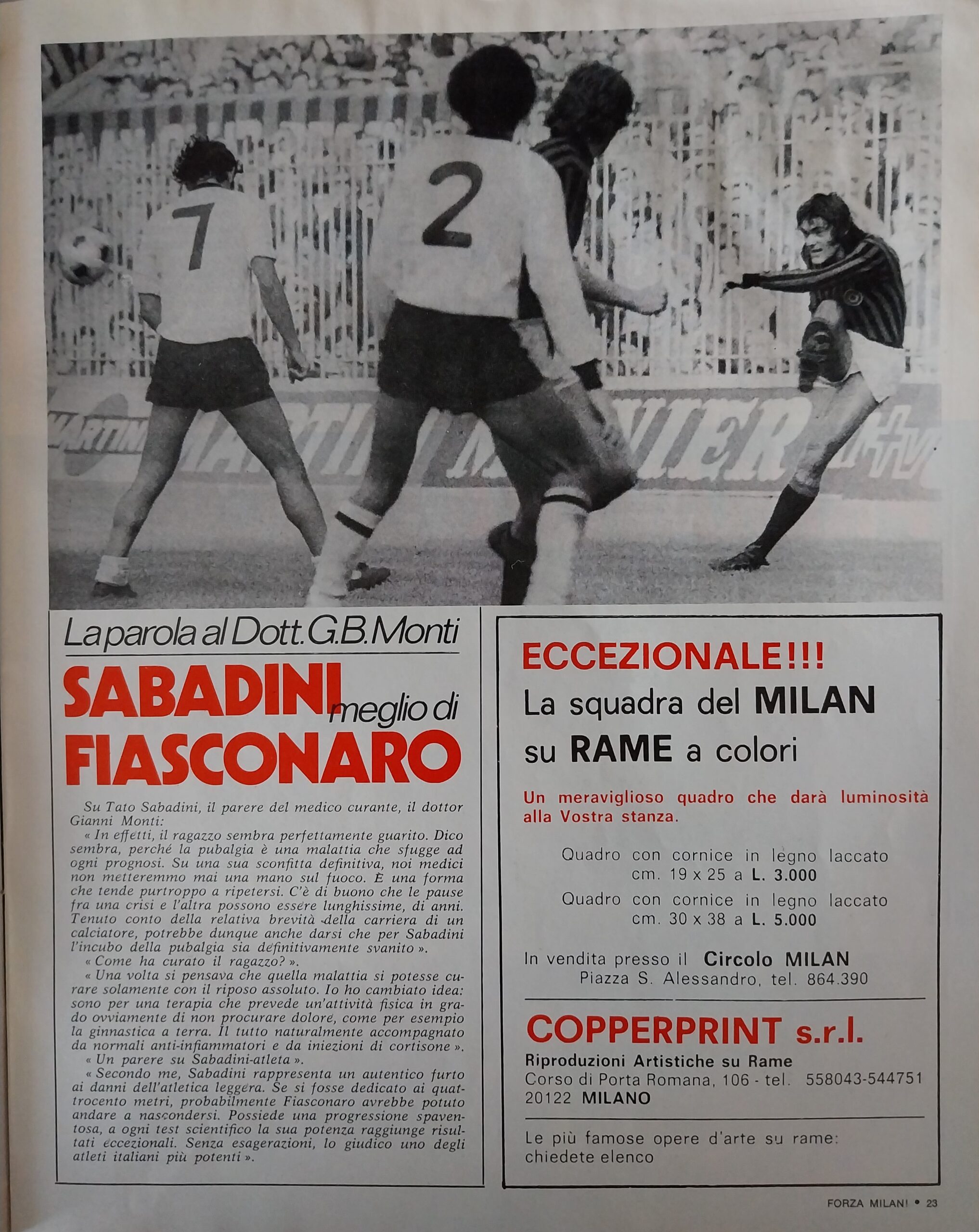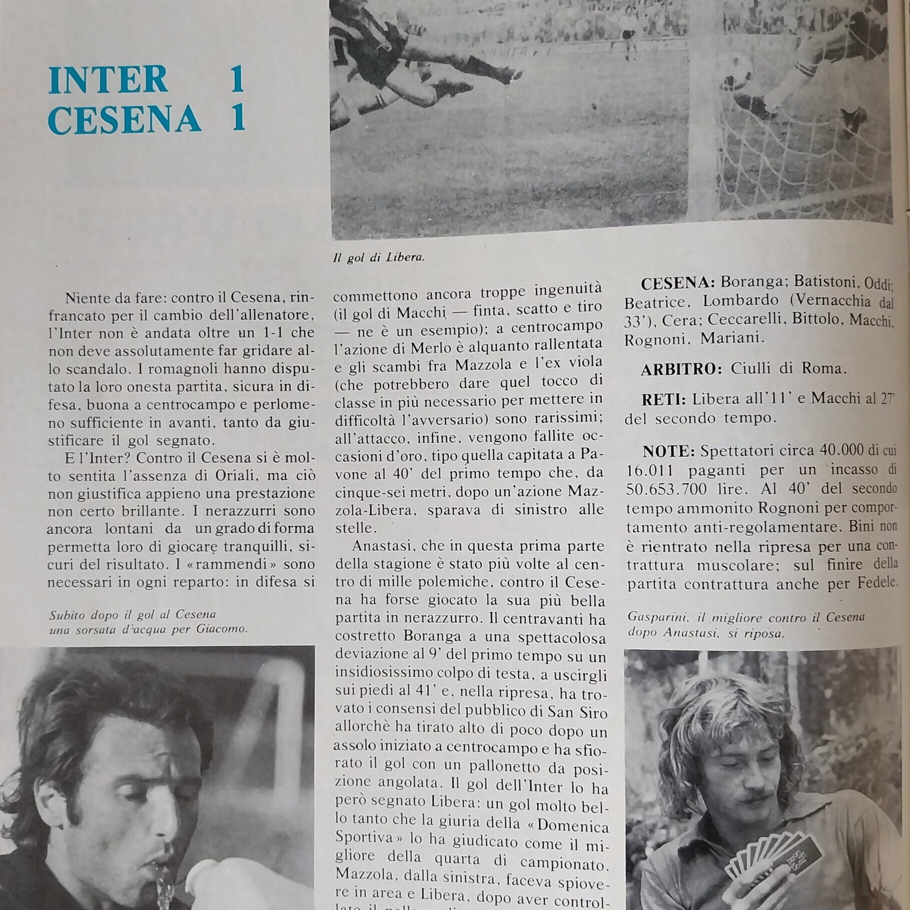 Sport Critica, ottobre 1970, n. 8, p. 41, 1970-71 con foto Corradi 1968-69