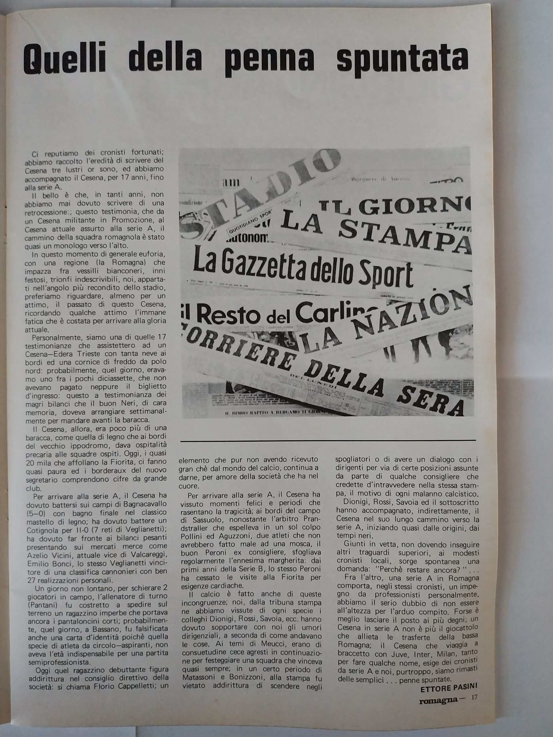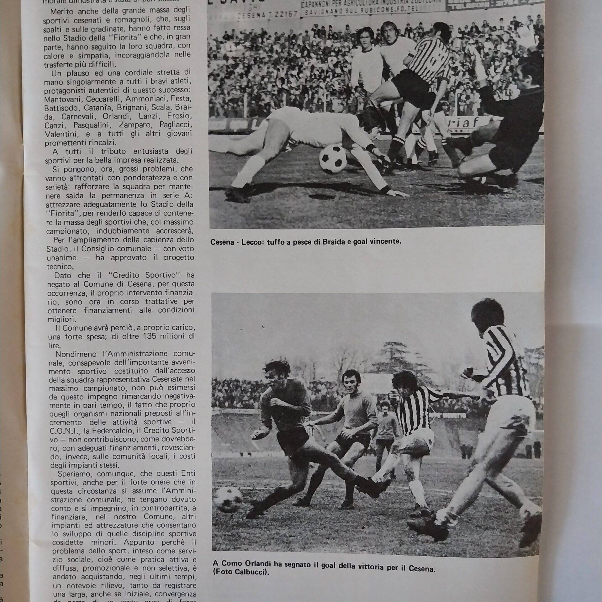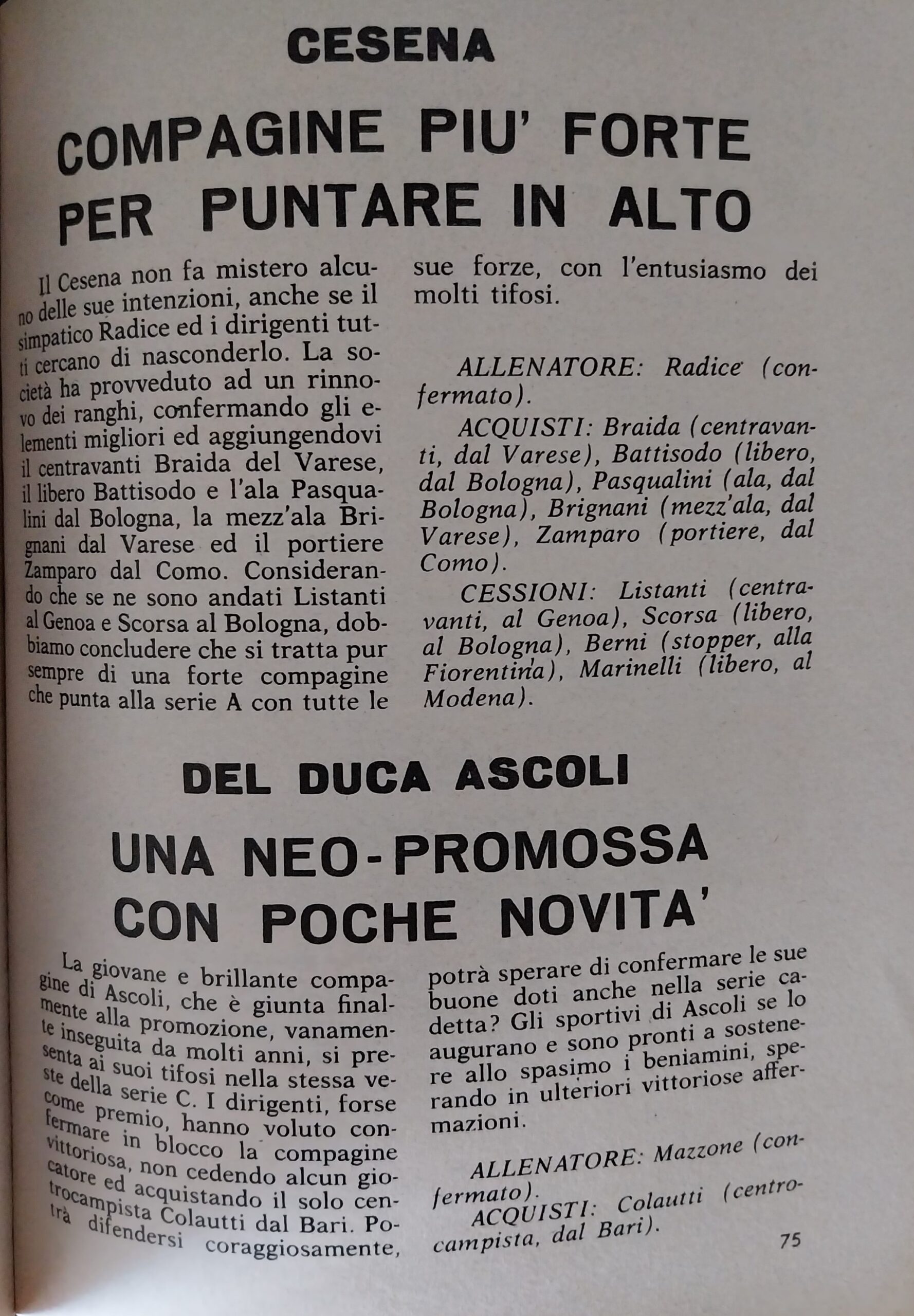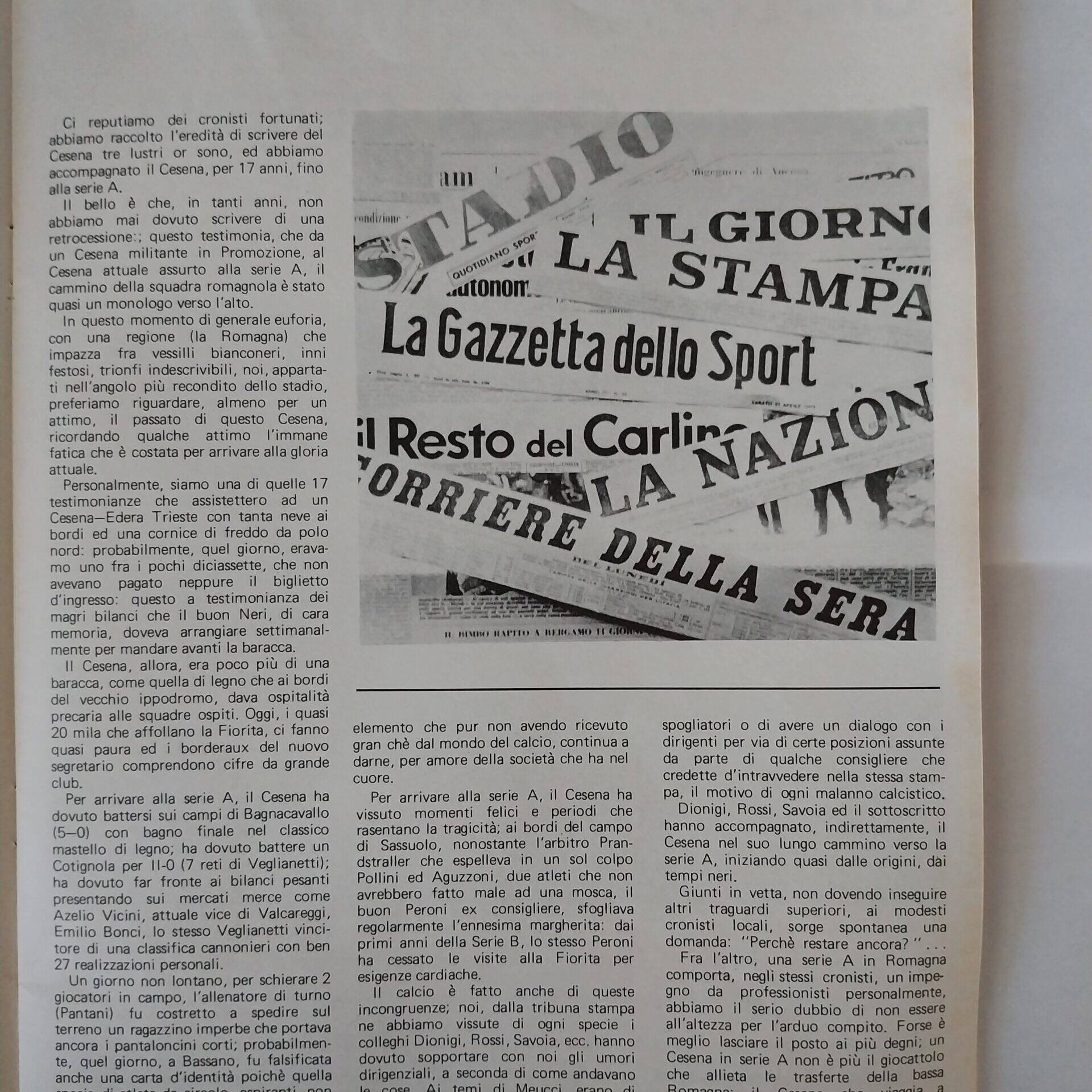 Romagna settembre 1974 articolo Cesena 1974-75