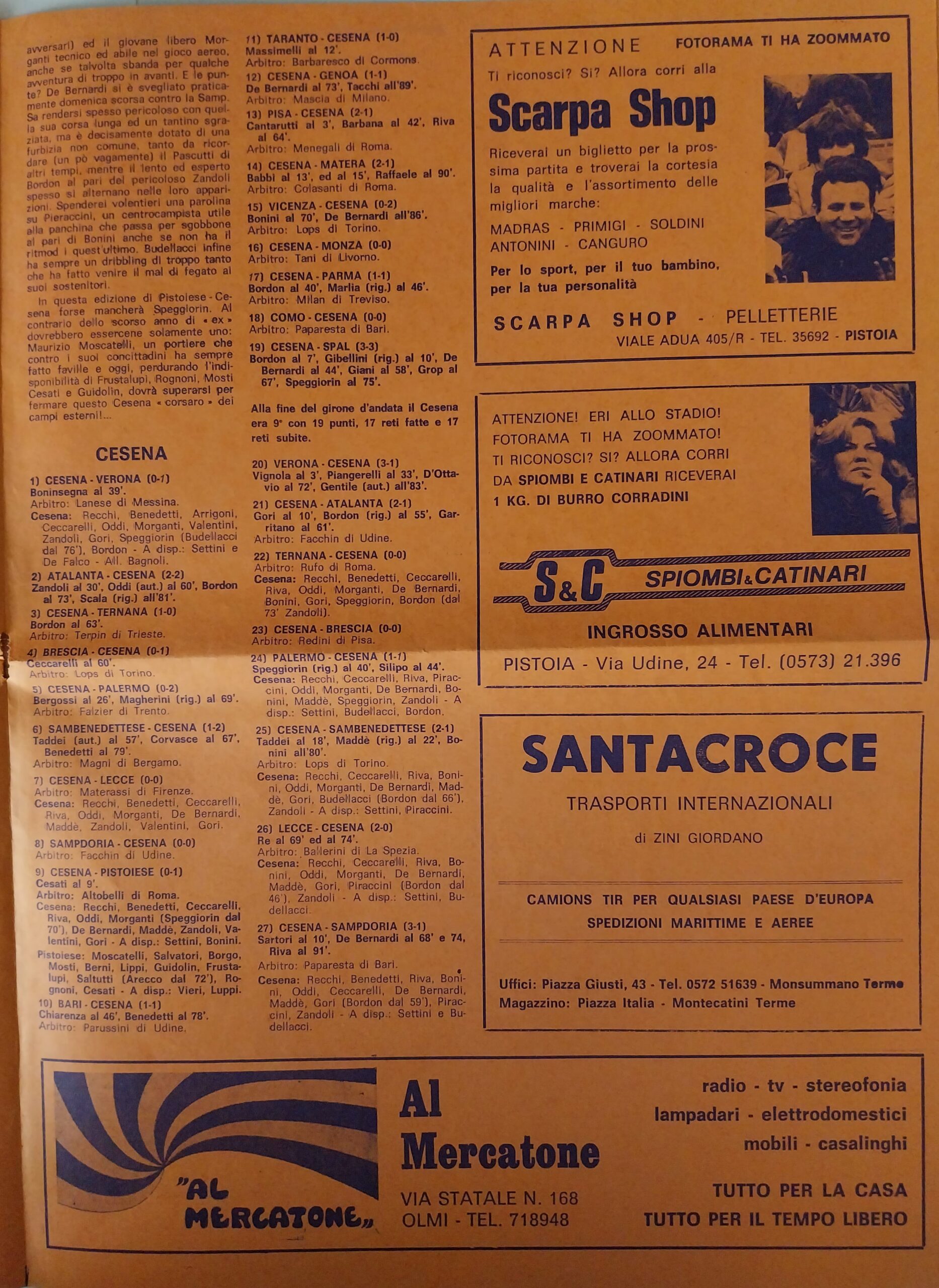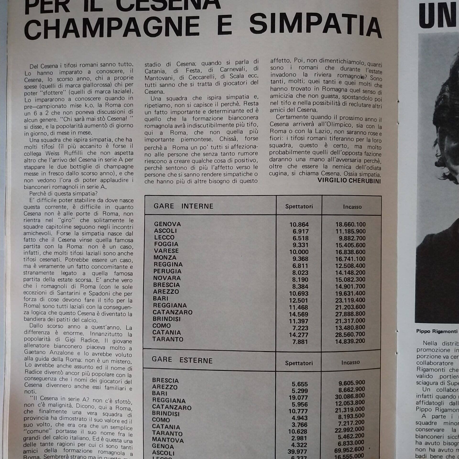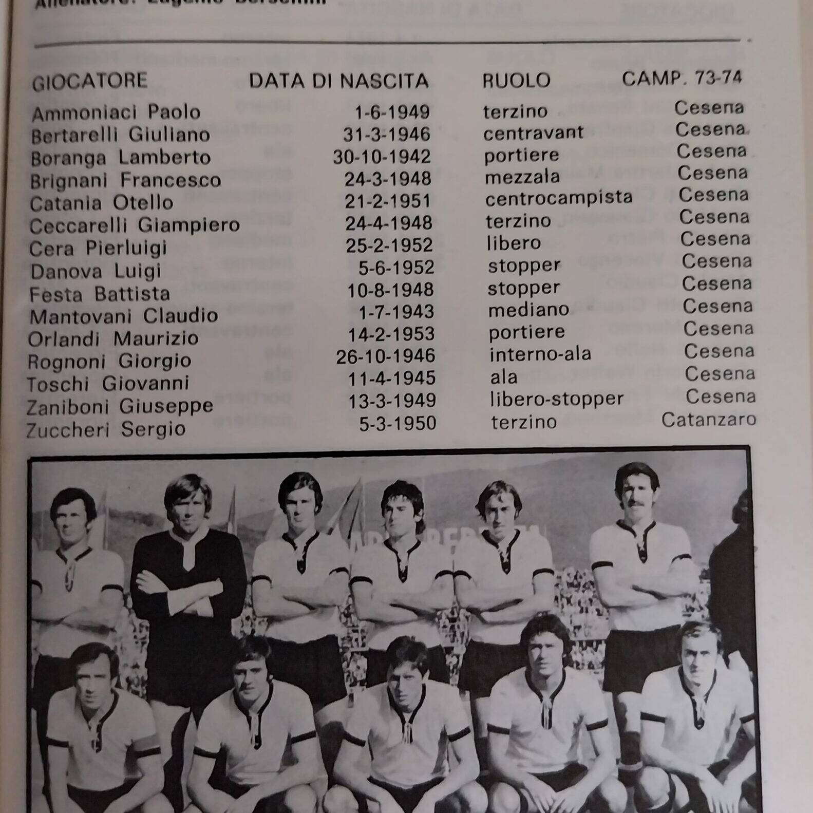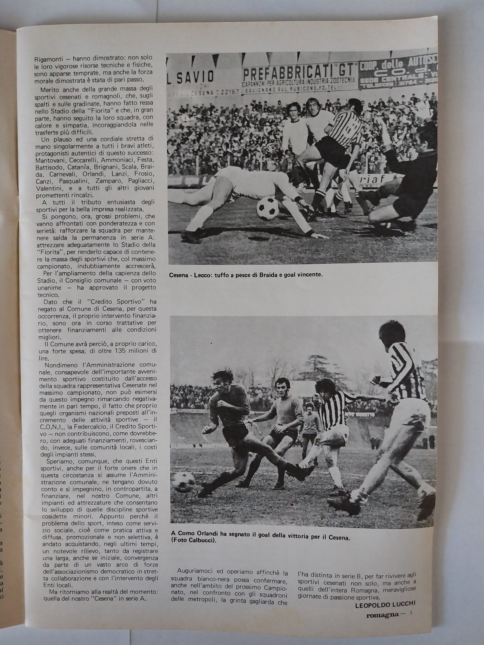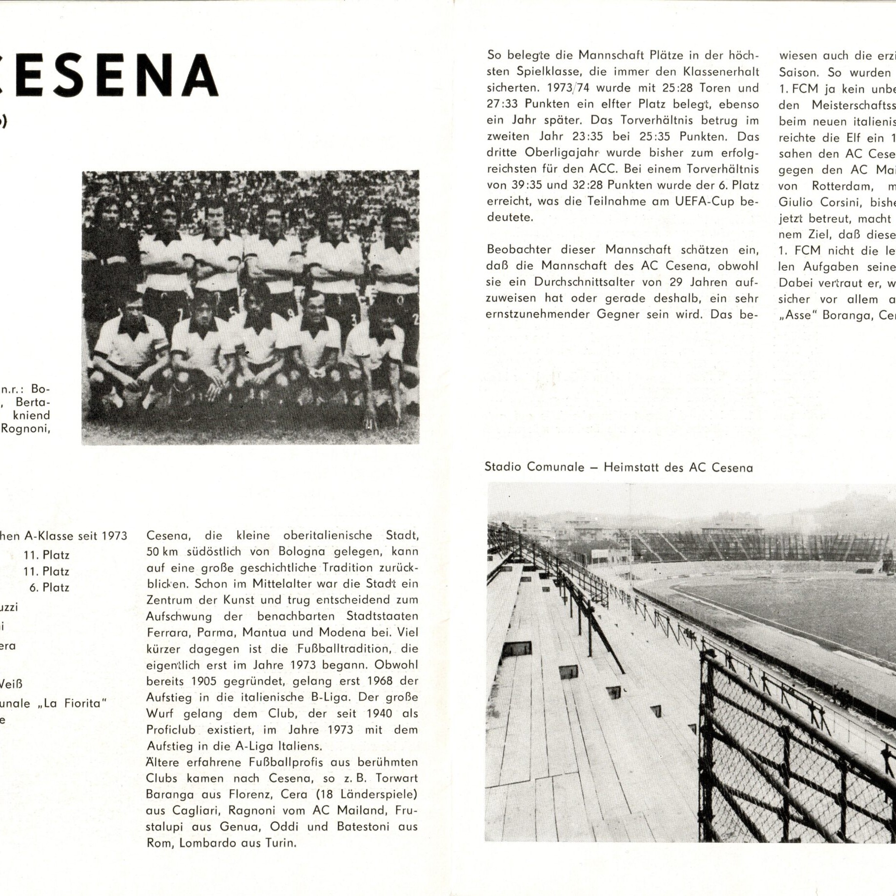 Romagna settembre 1974 articolo Cesena 1974-75