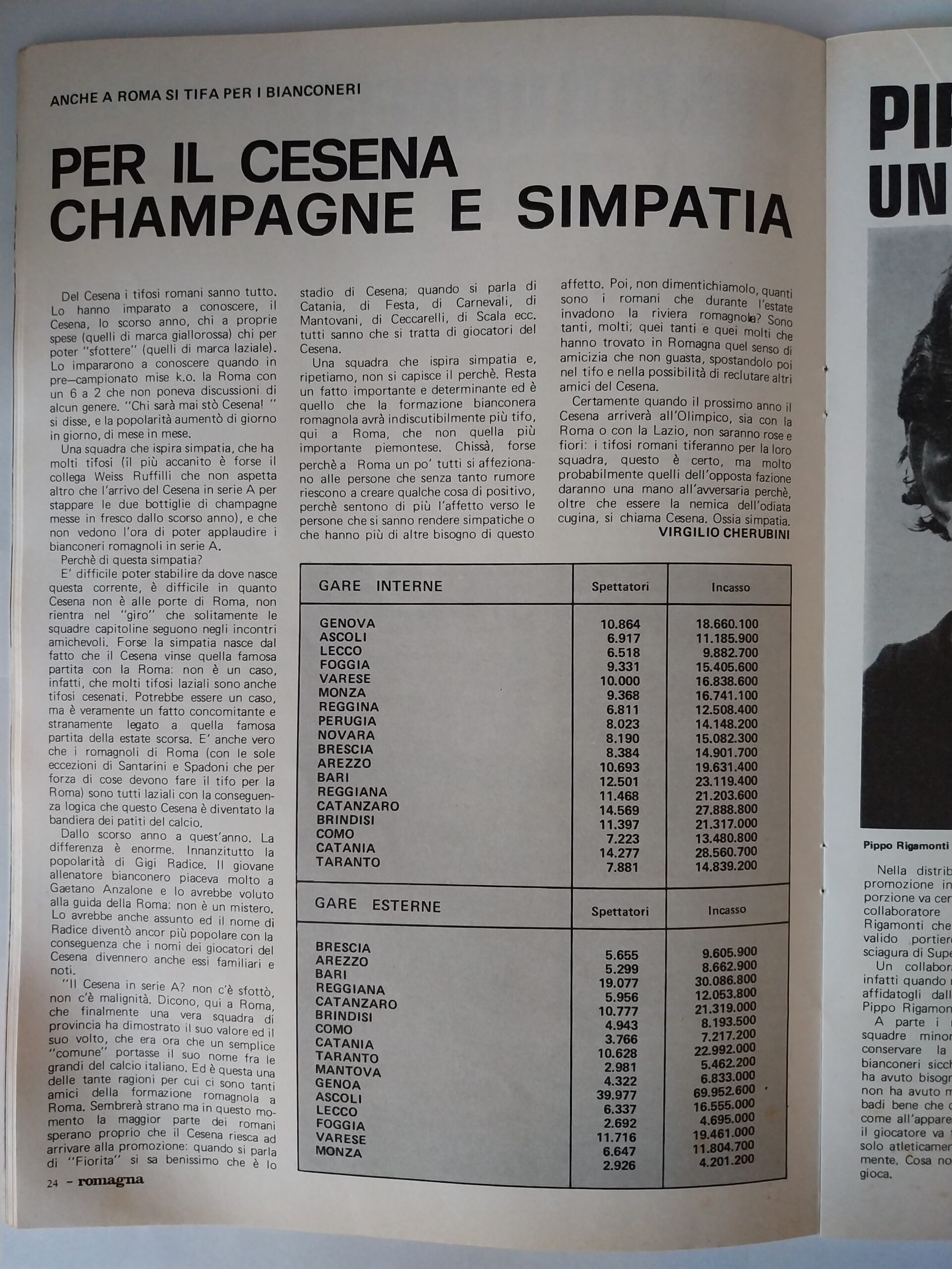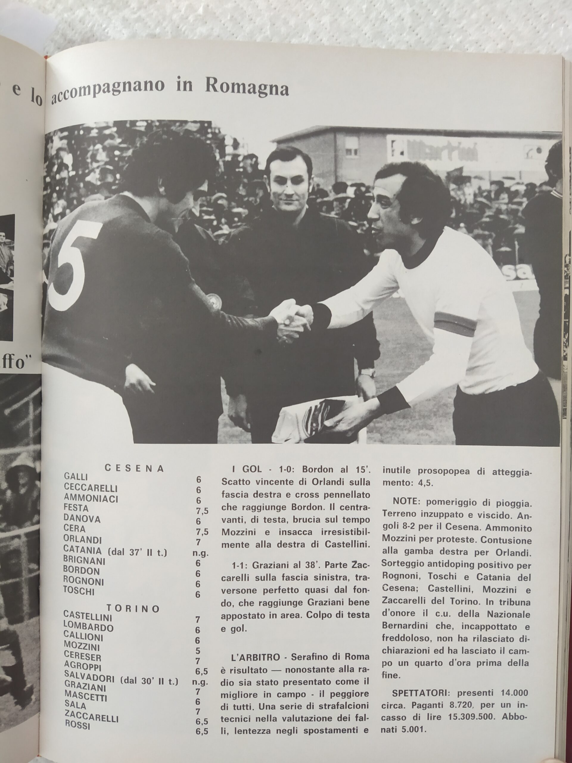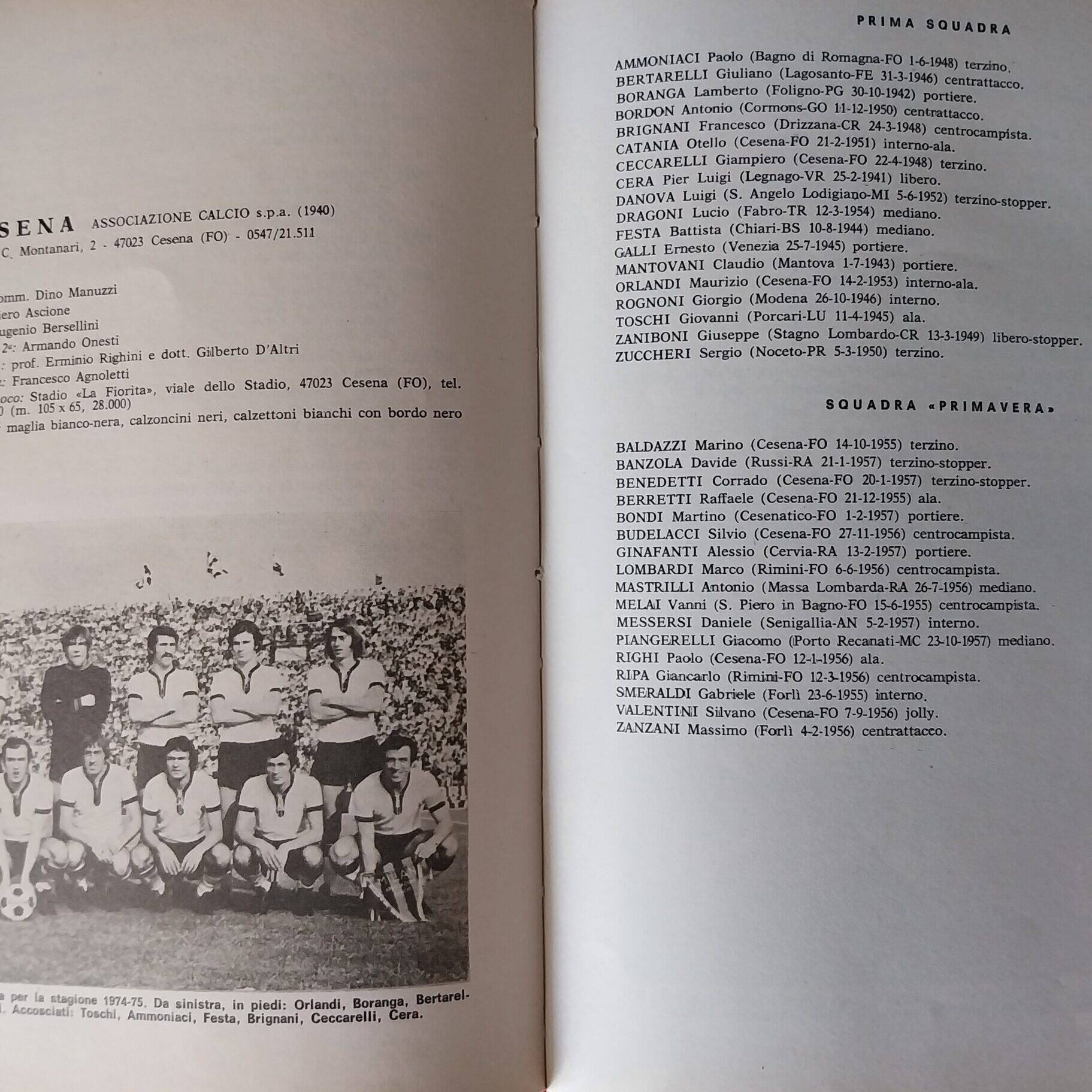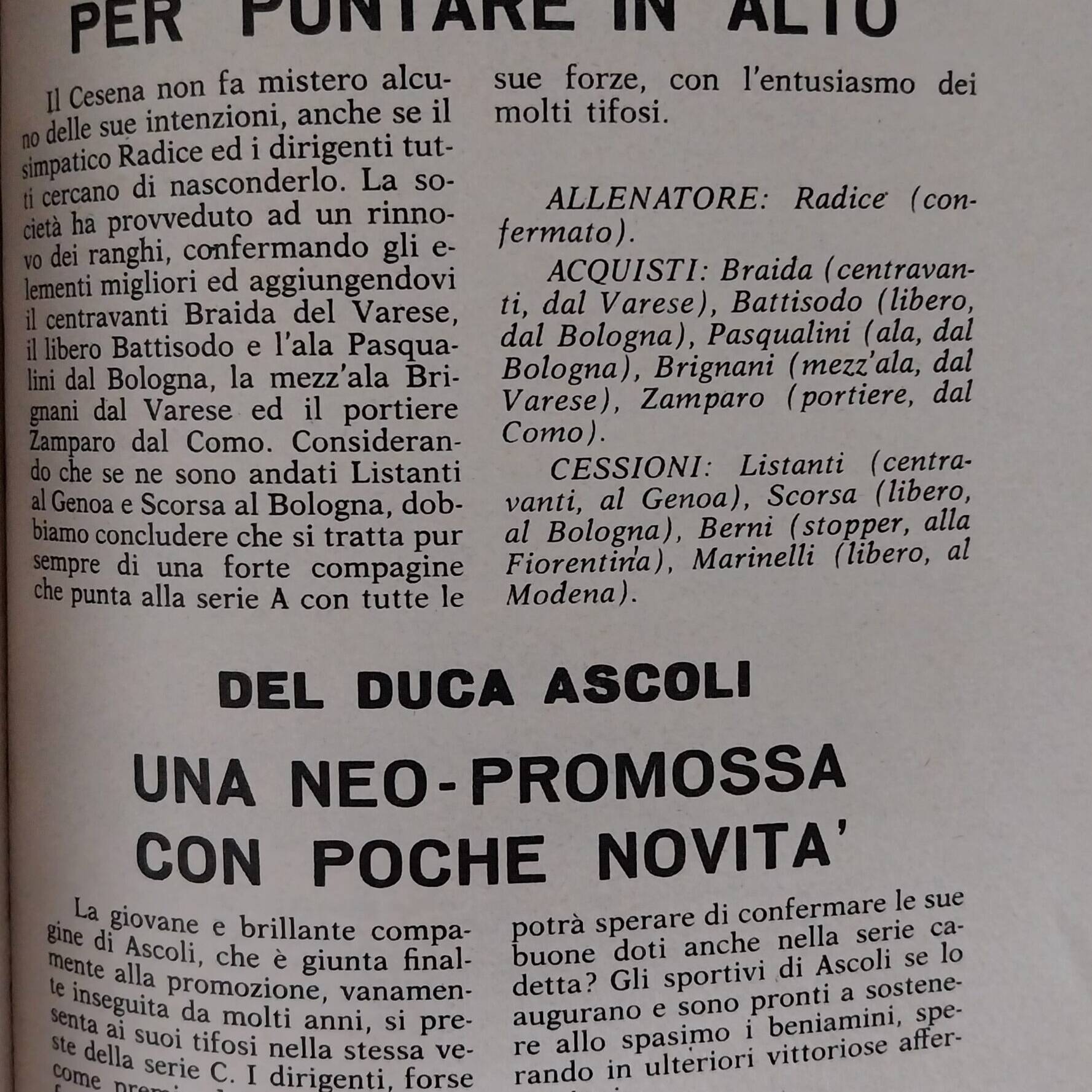 Romagna settembre 1974 articolo Cesena 1974-75