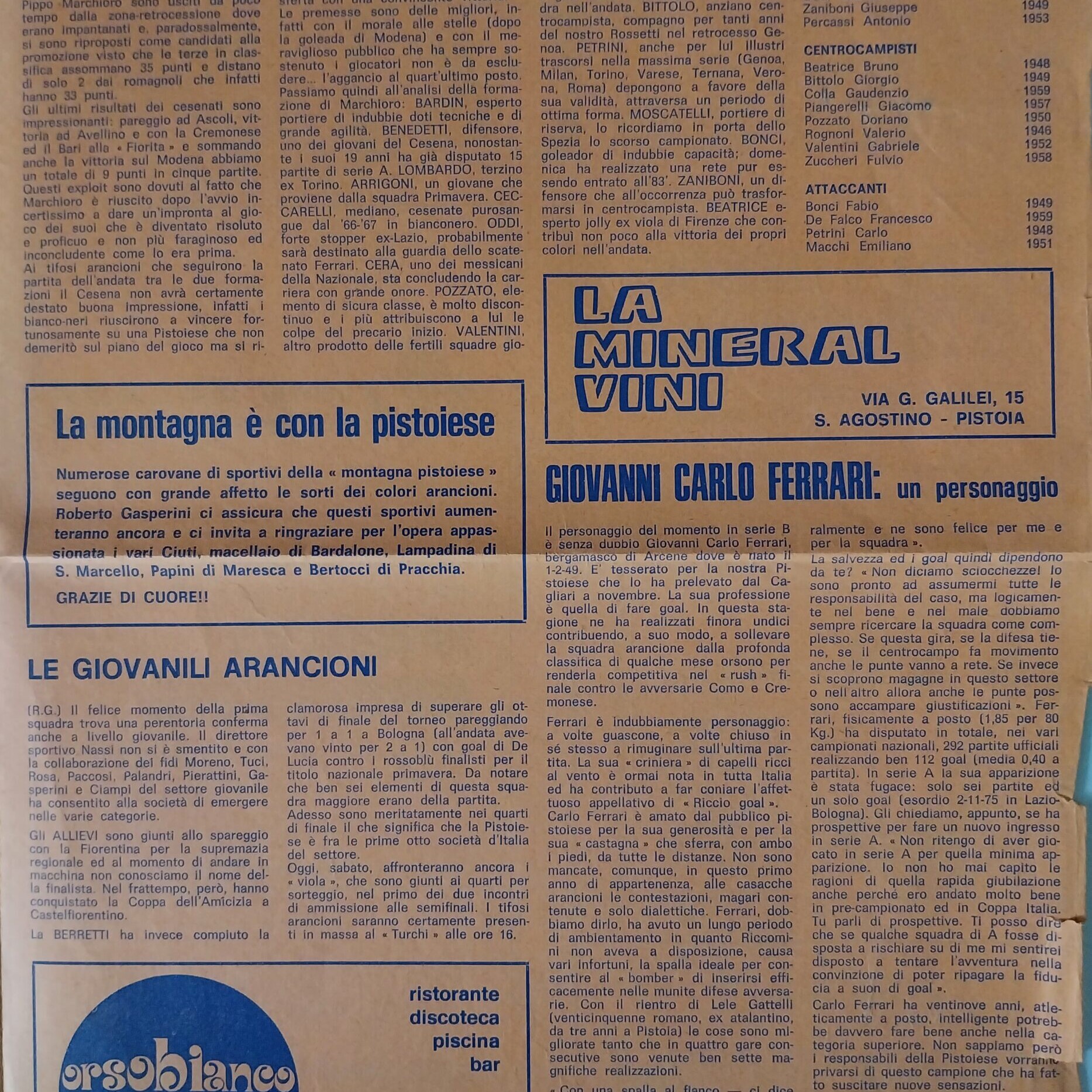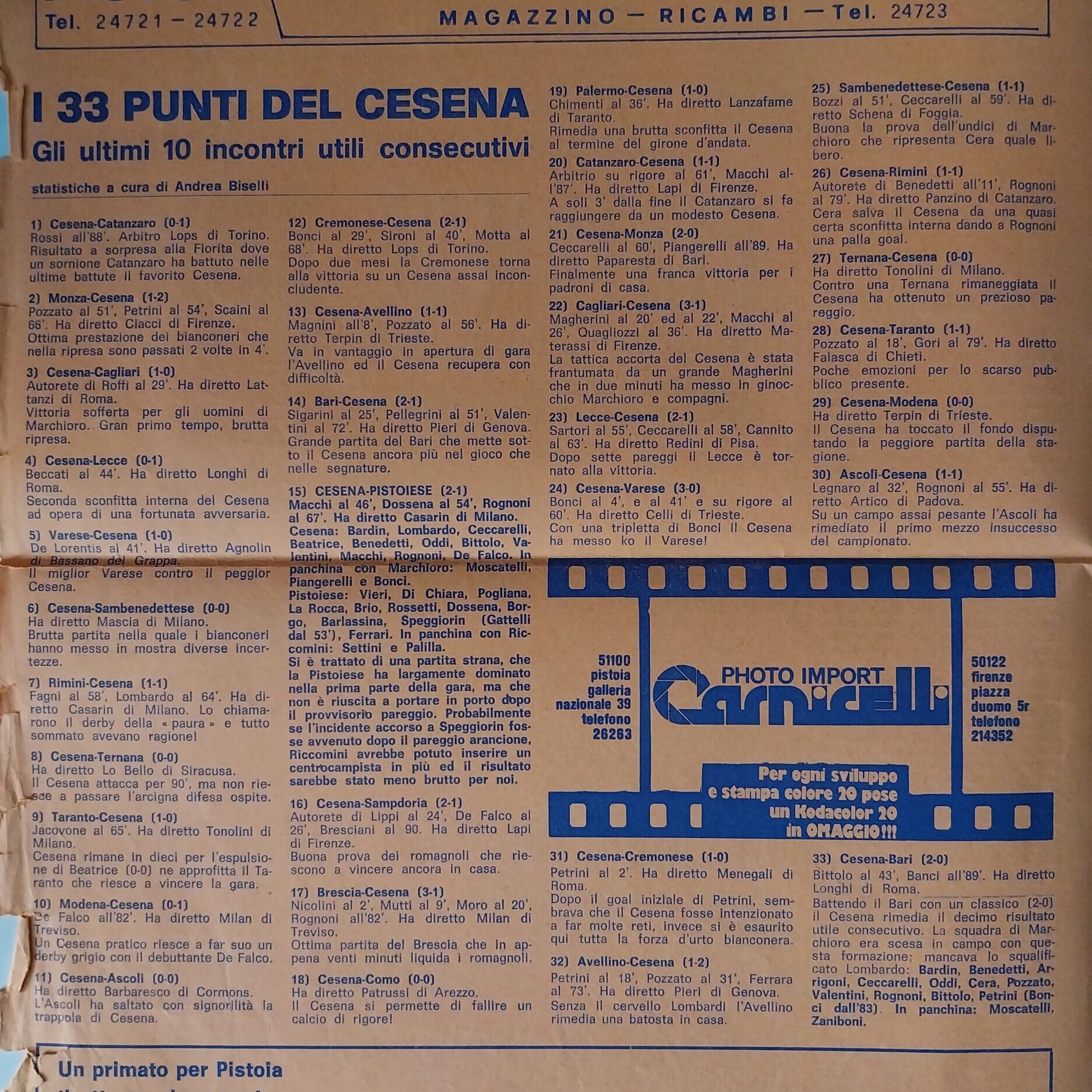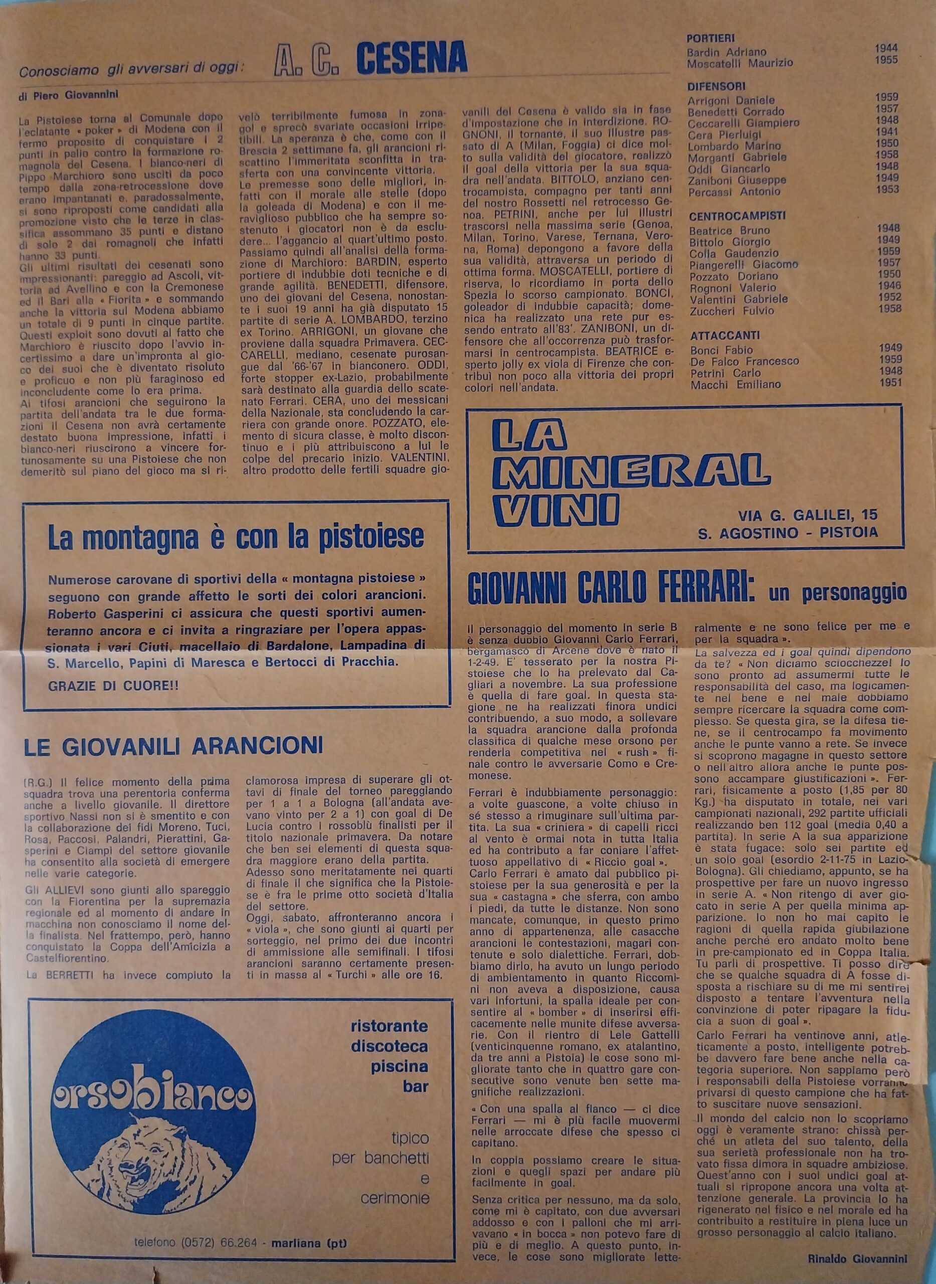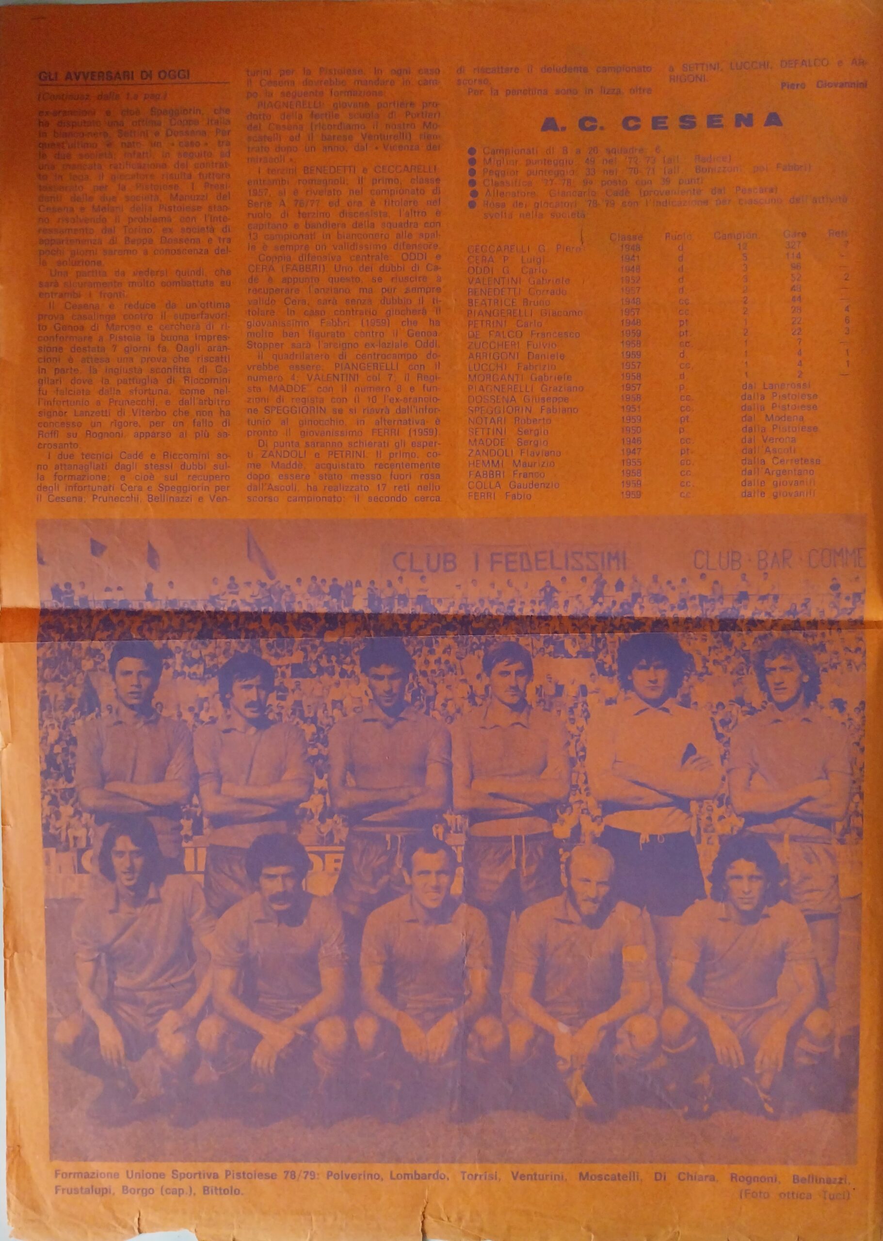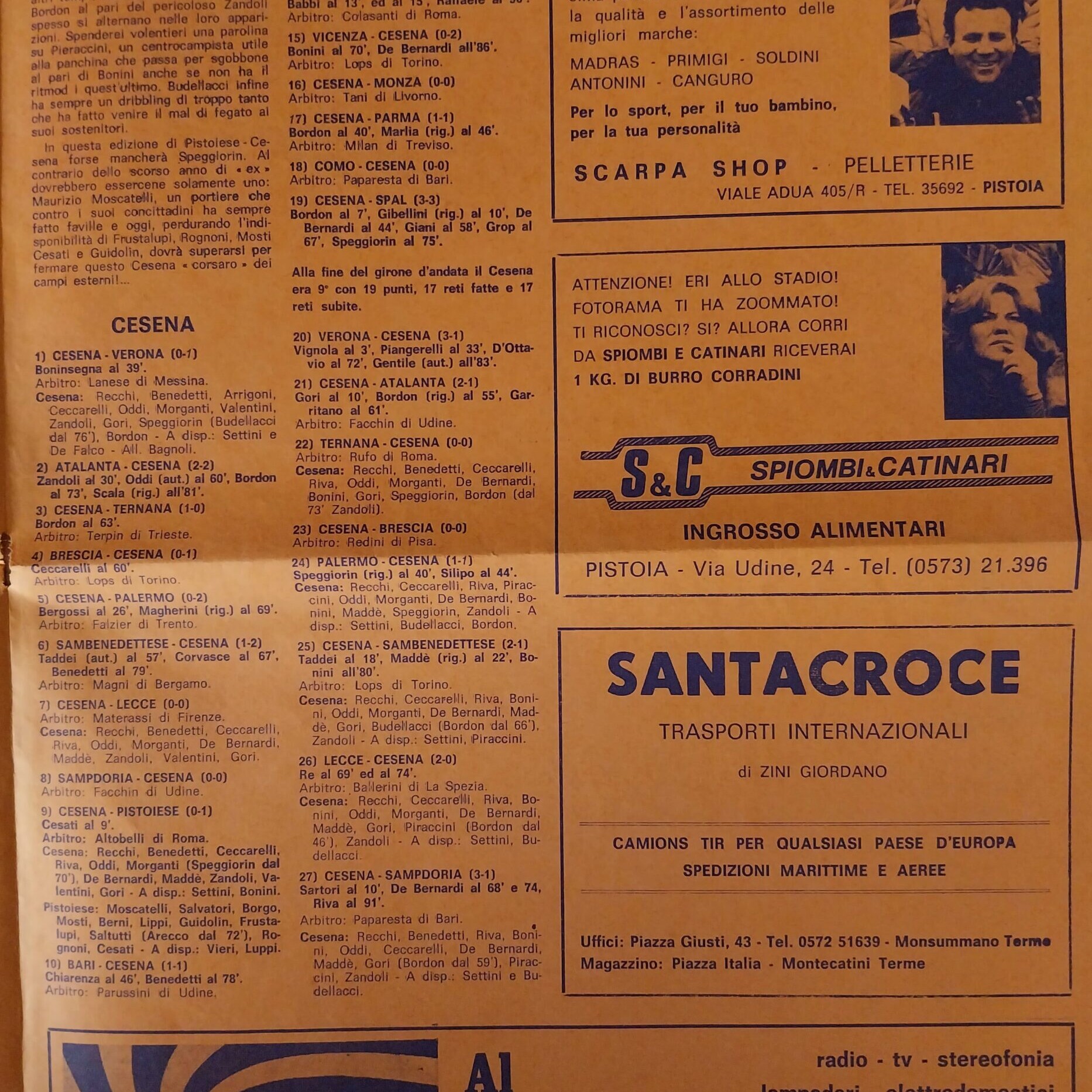 Romagna settembre 1974 articolo Cesena 1974-75