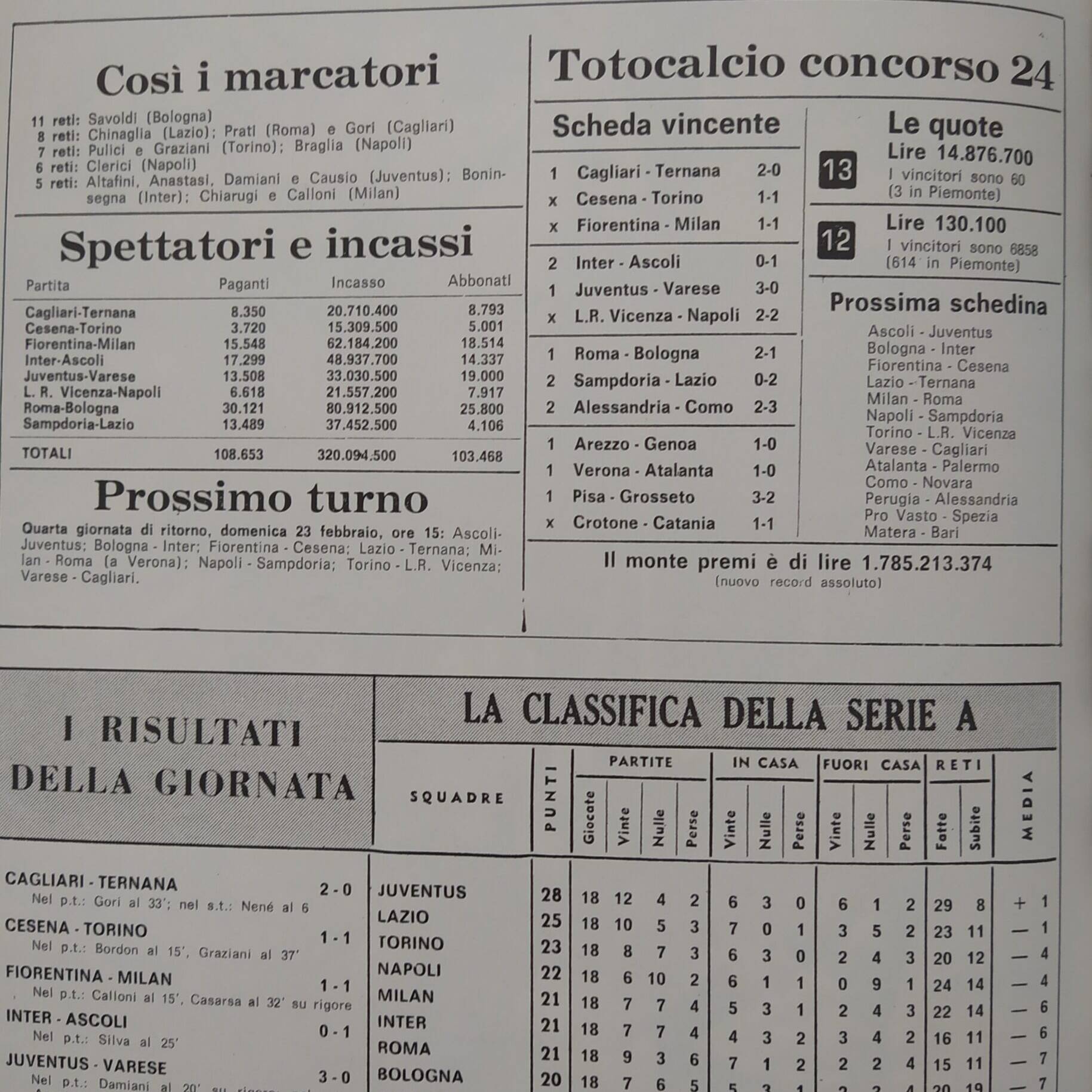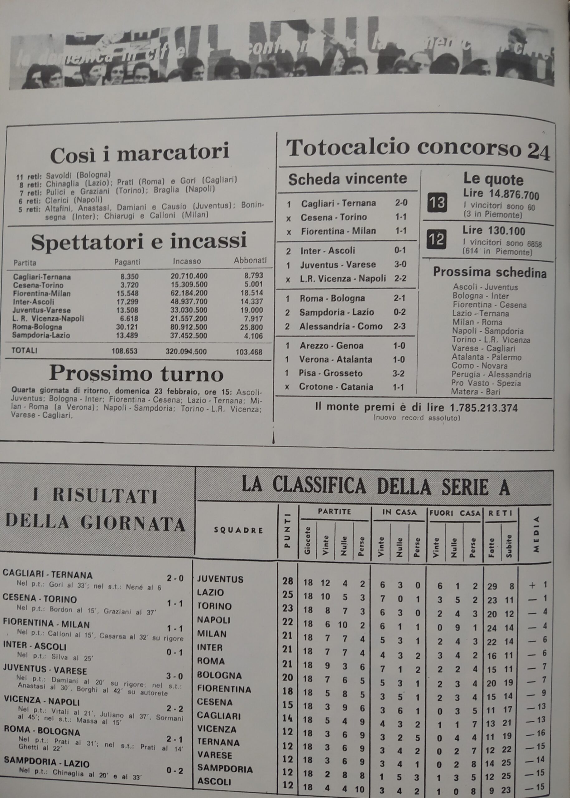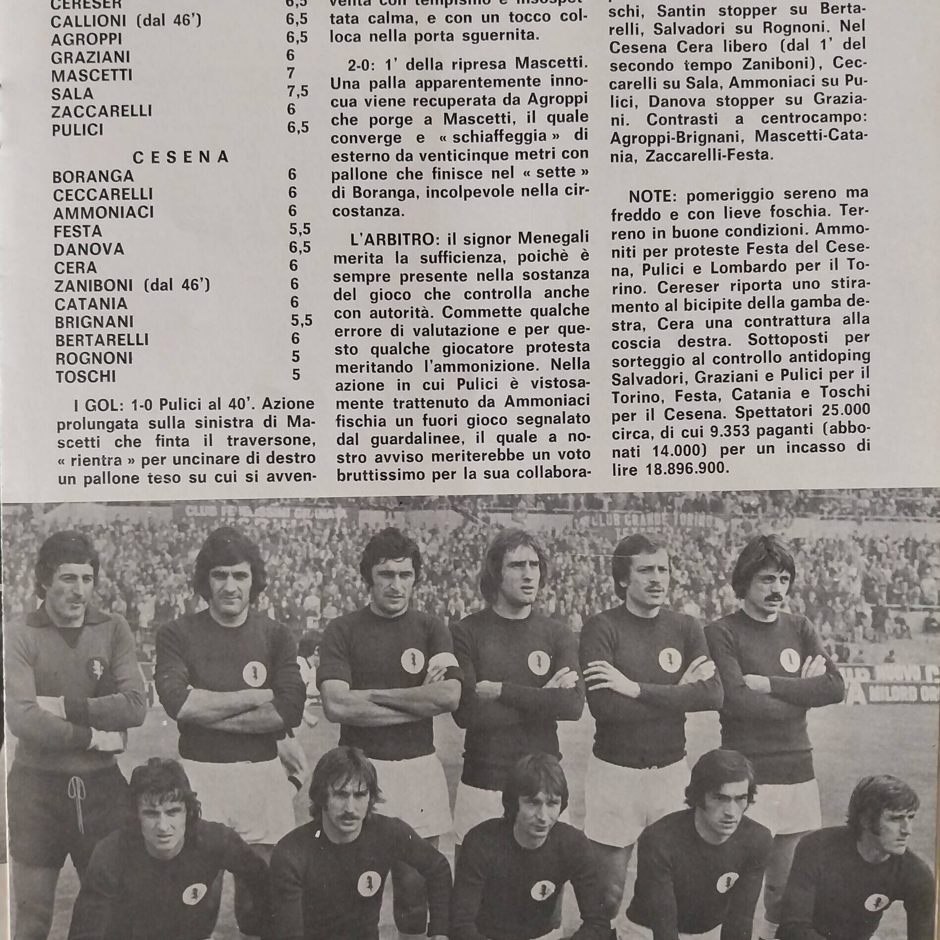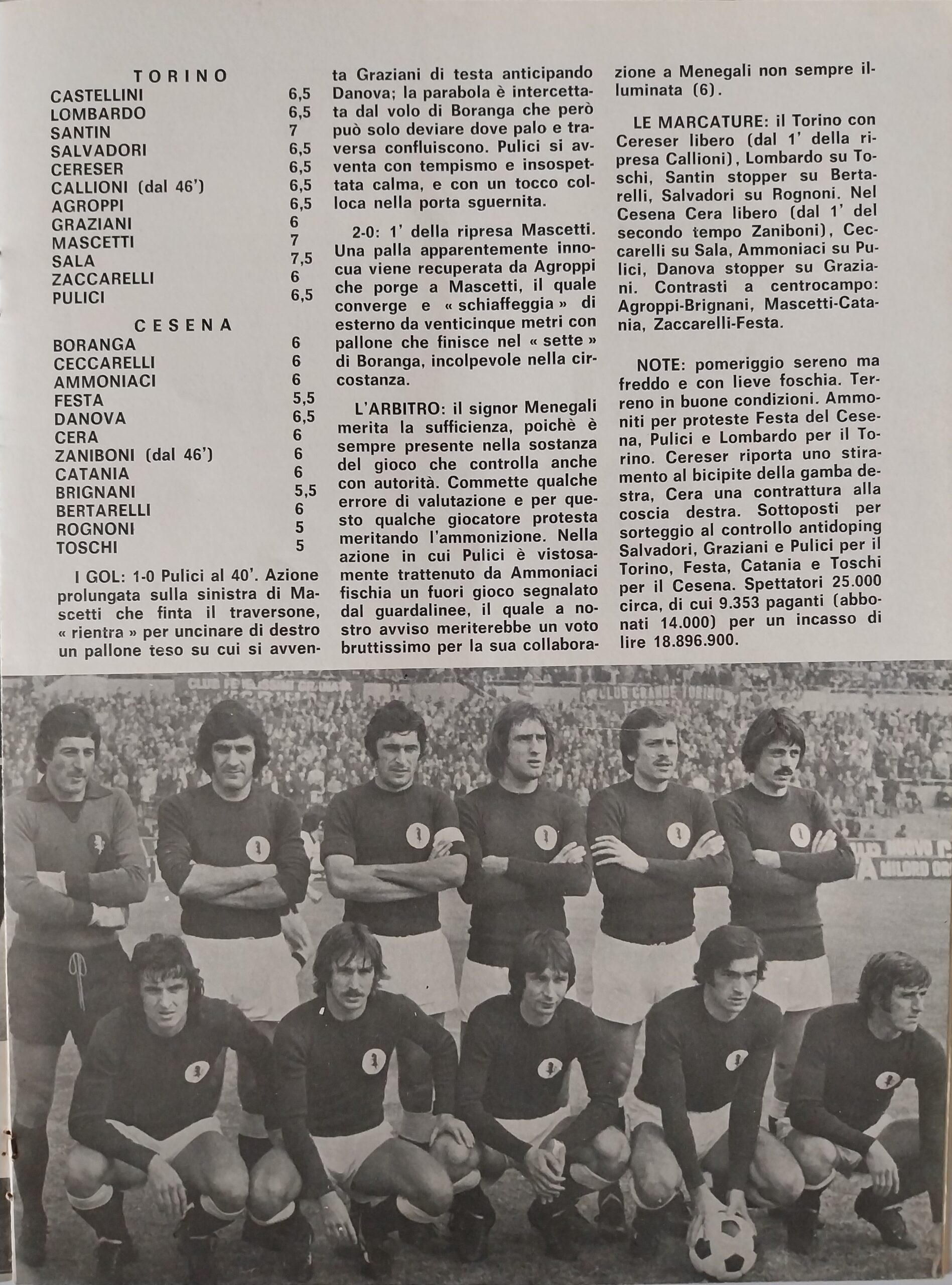 Alè Toro febbraio-marzo 1974, n. 2-3, p. 20, Torino-Cesena 1973-74