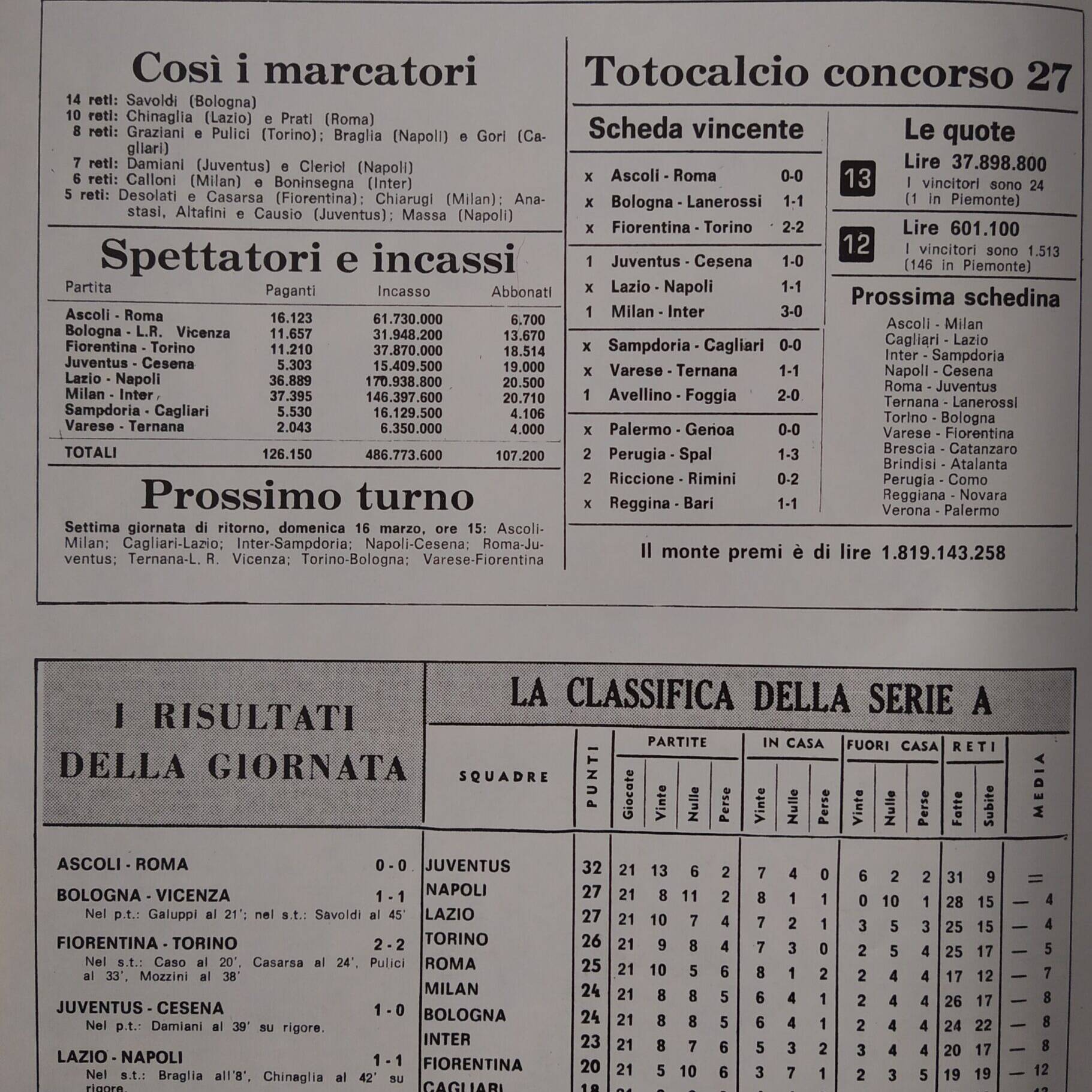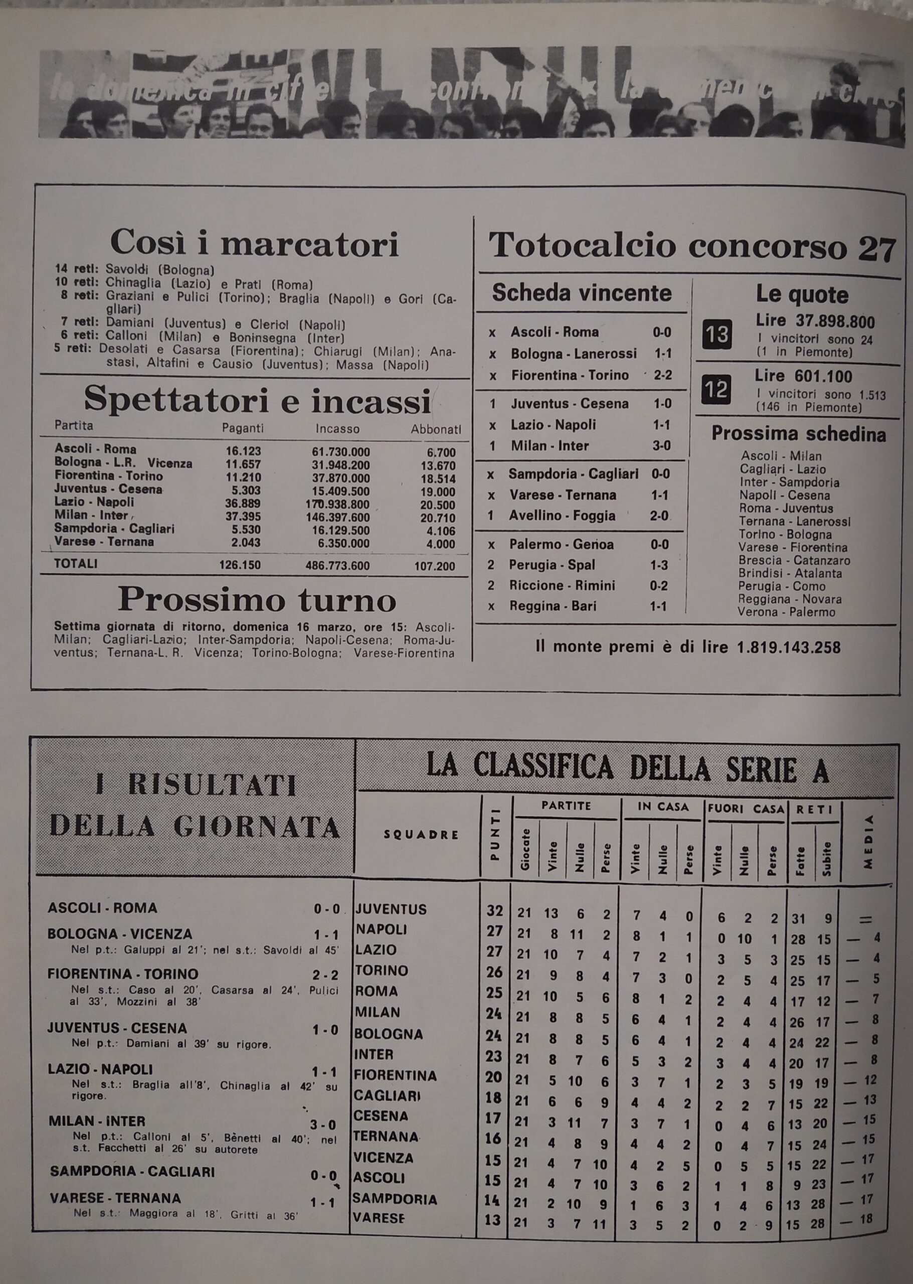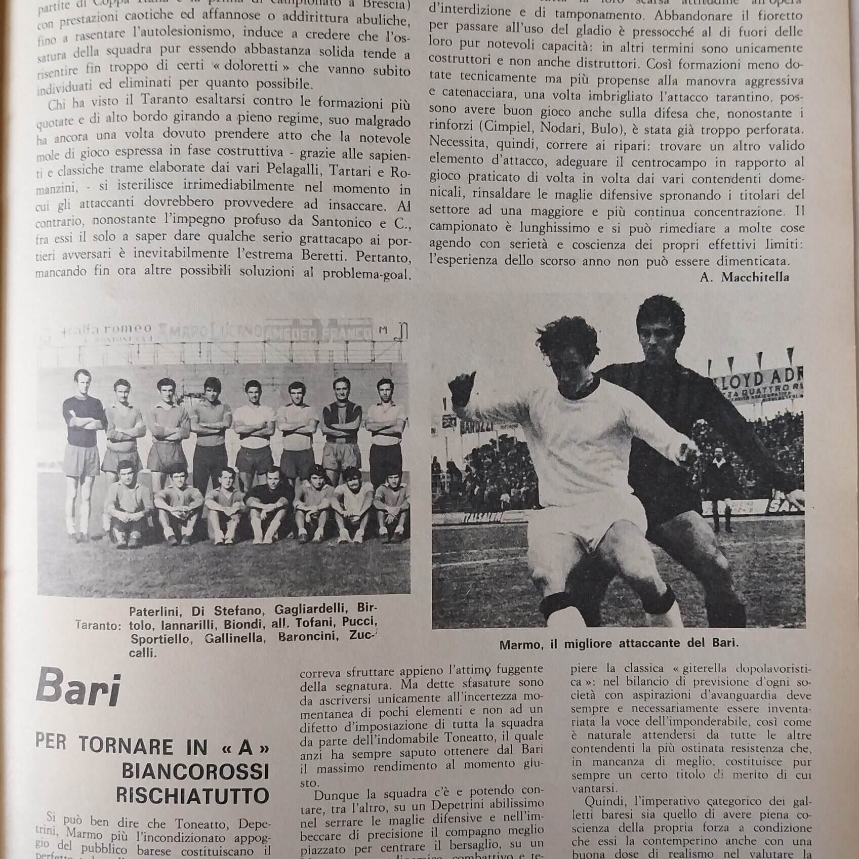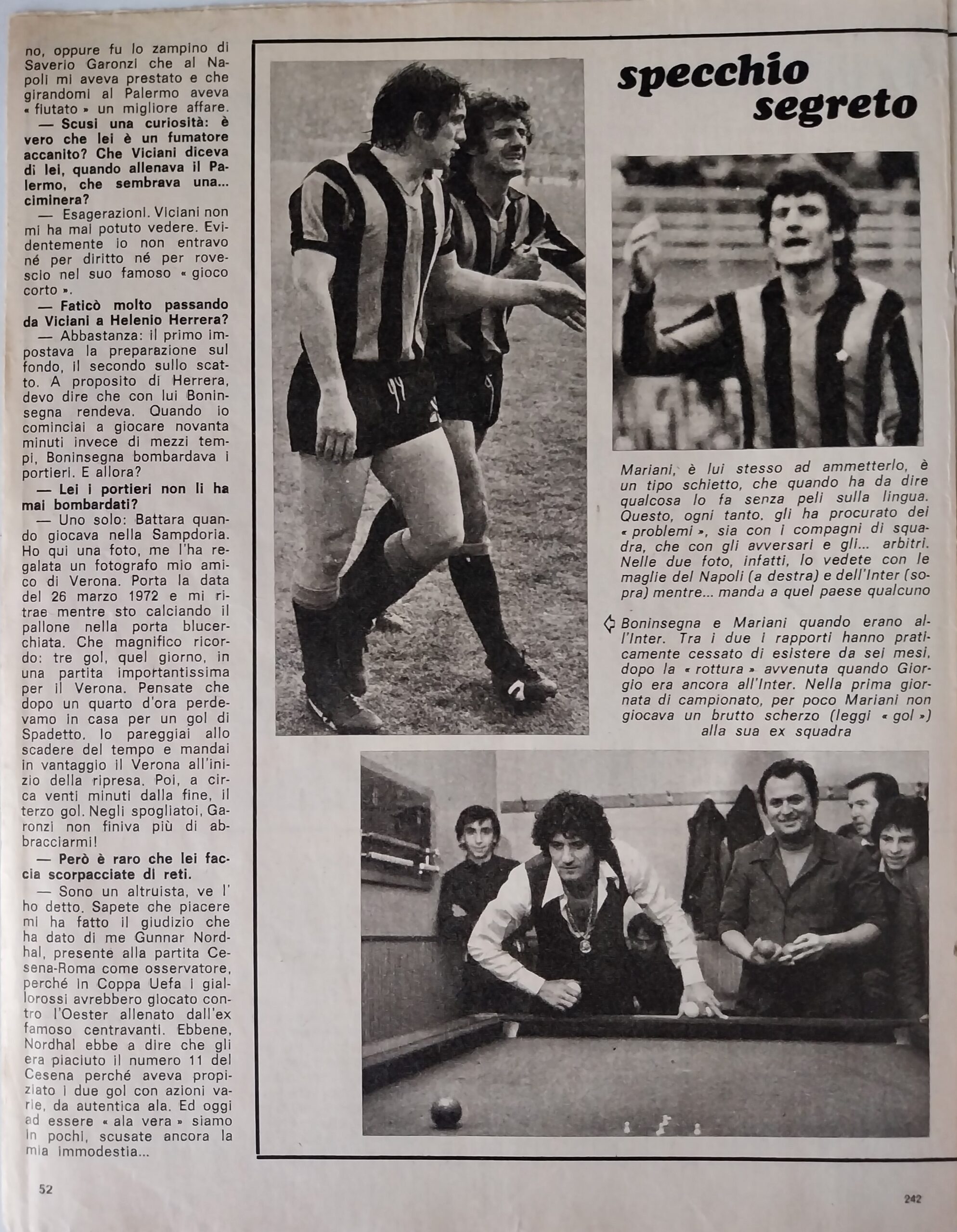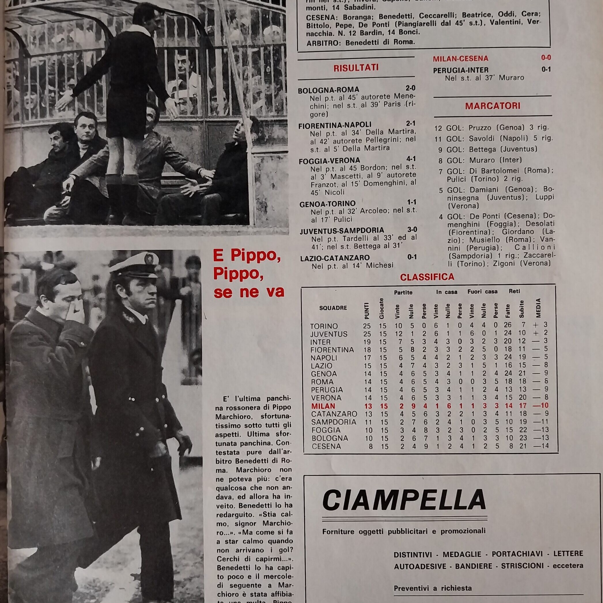 Sport Critica, ottobre 1970, n. 8, p. 31, 1970-71 con foto Marmo 1969-70