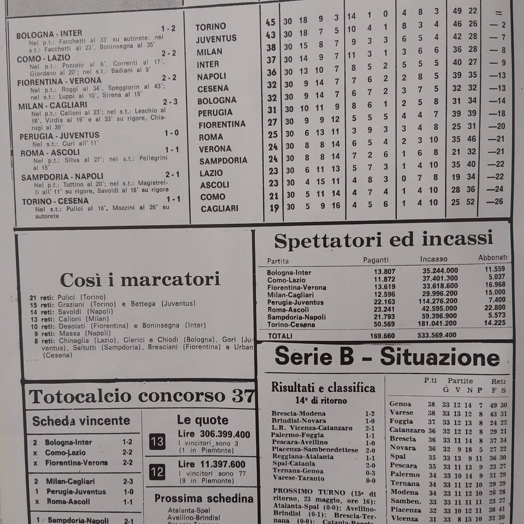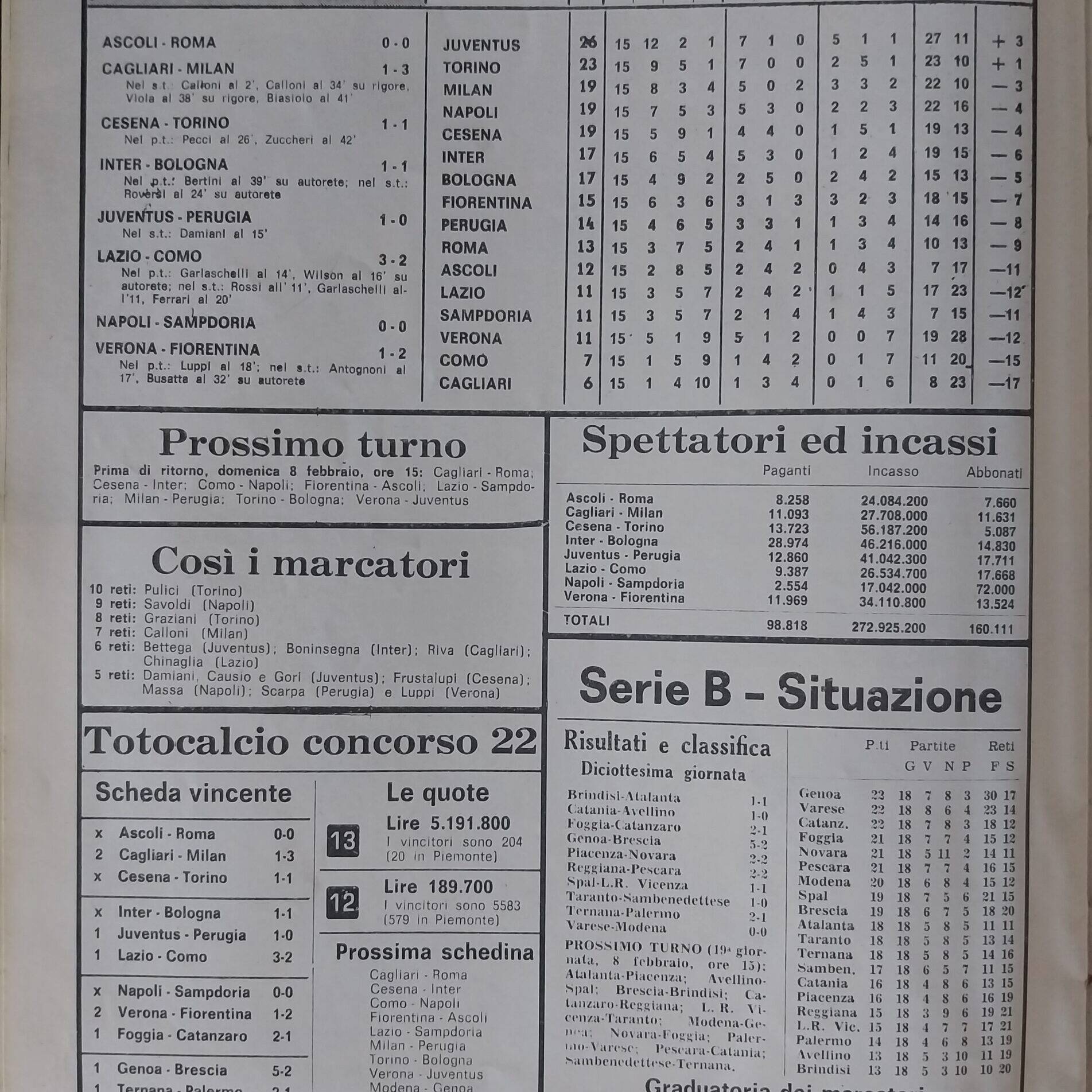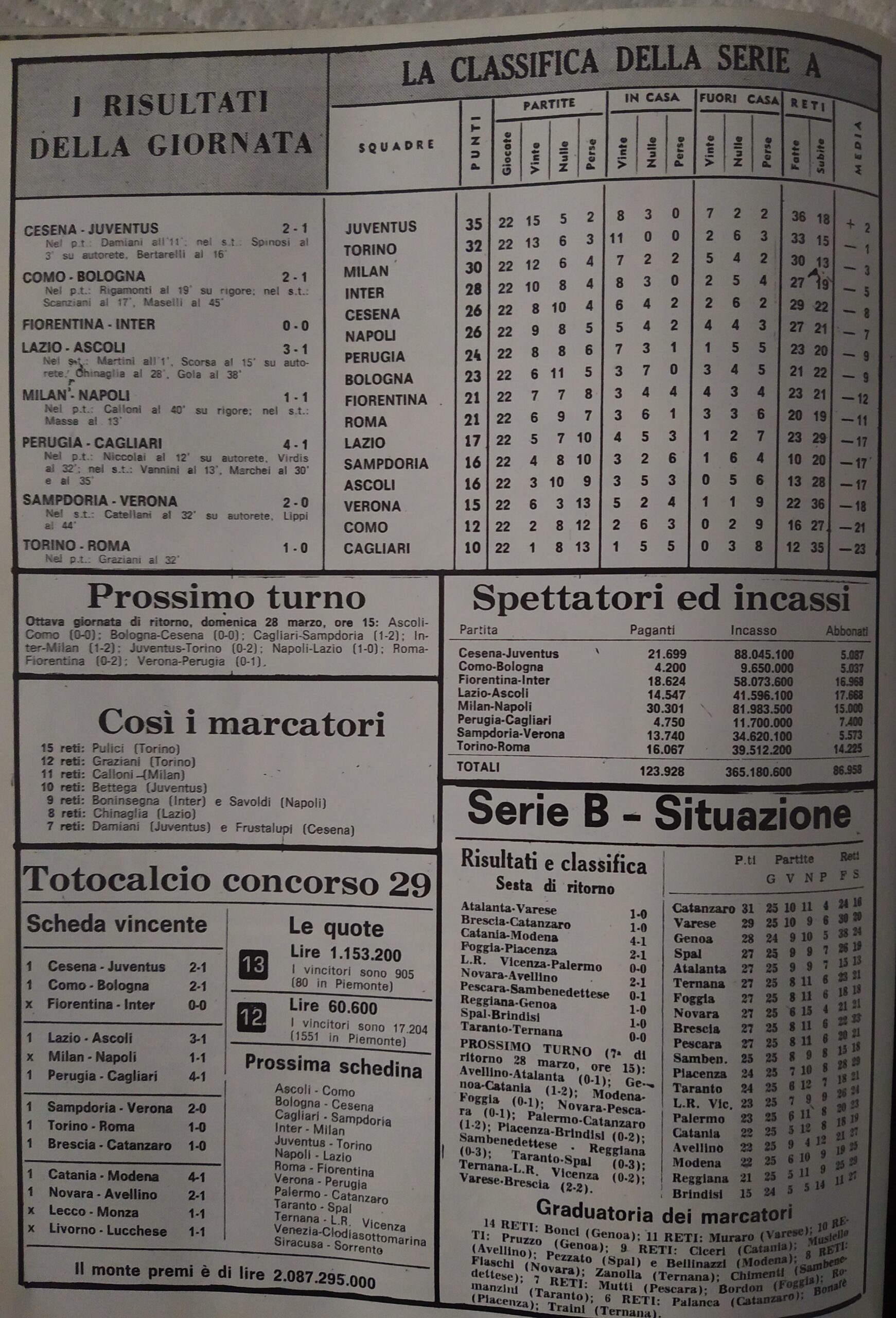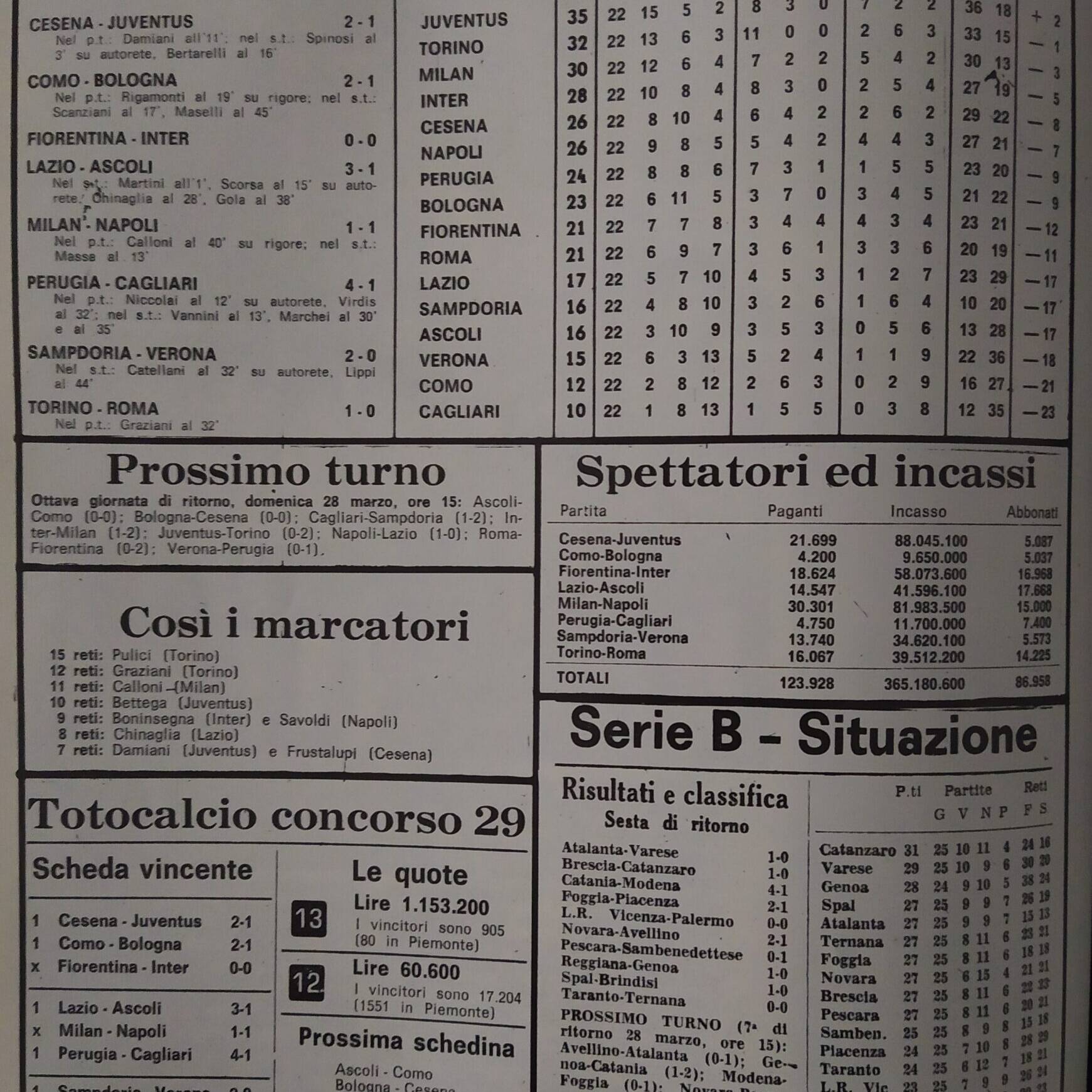 Alè Toro, Febbraio-marzo 1974, n. 2-3, p. 22, Torino-Cesena 1973-74