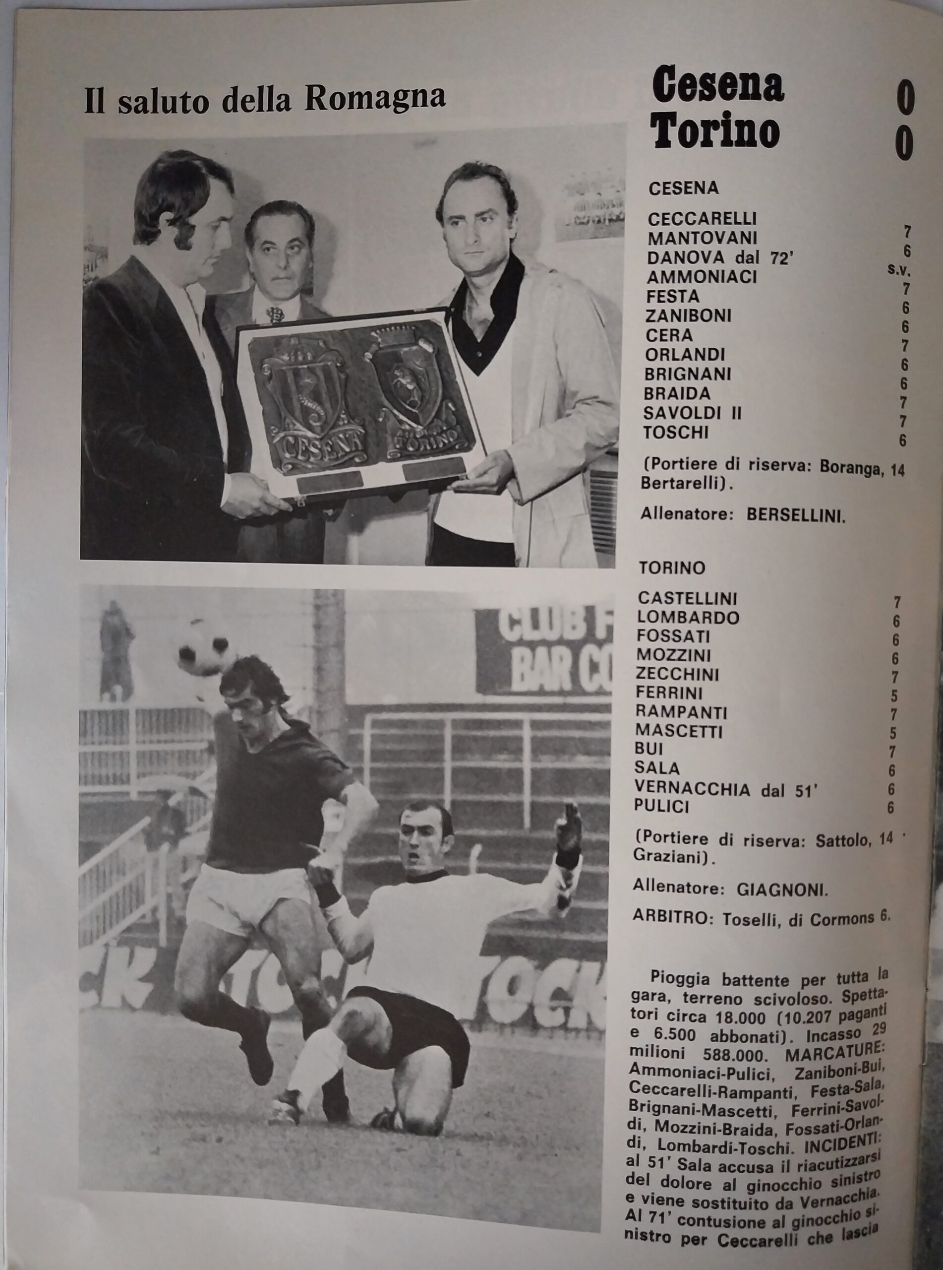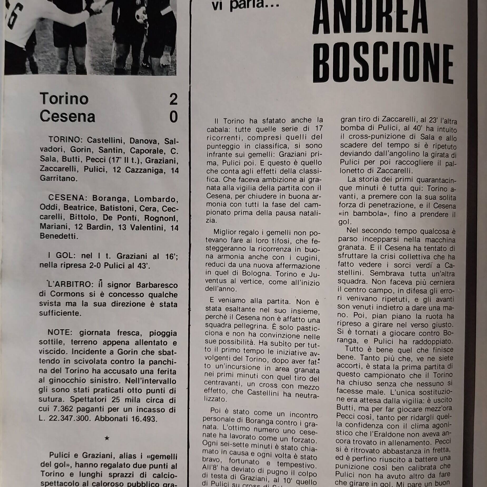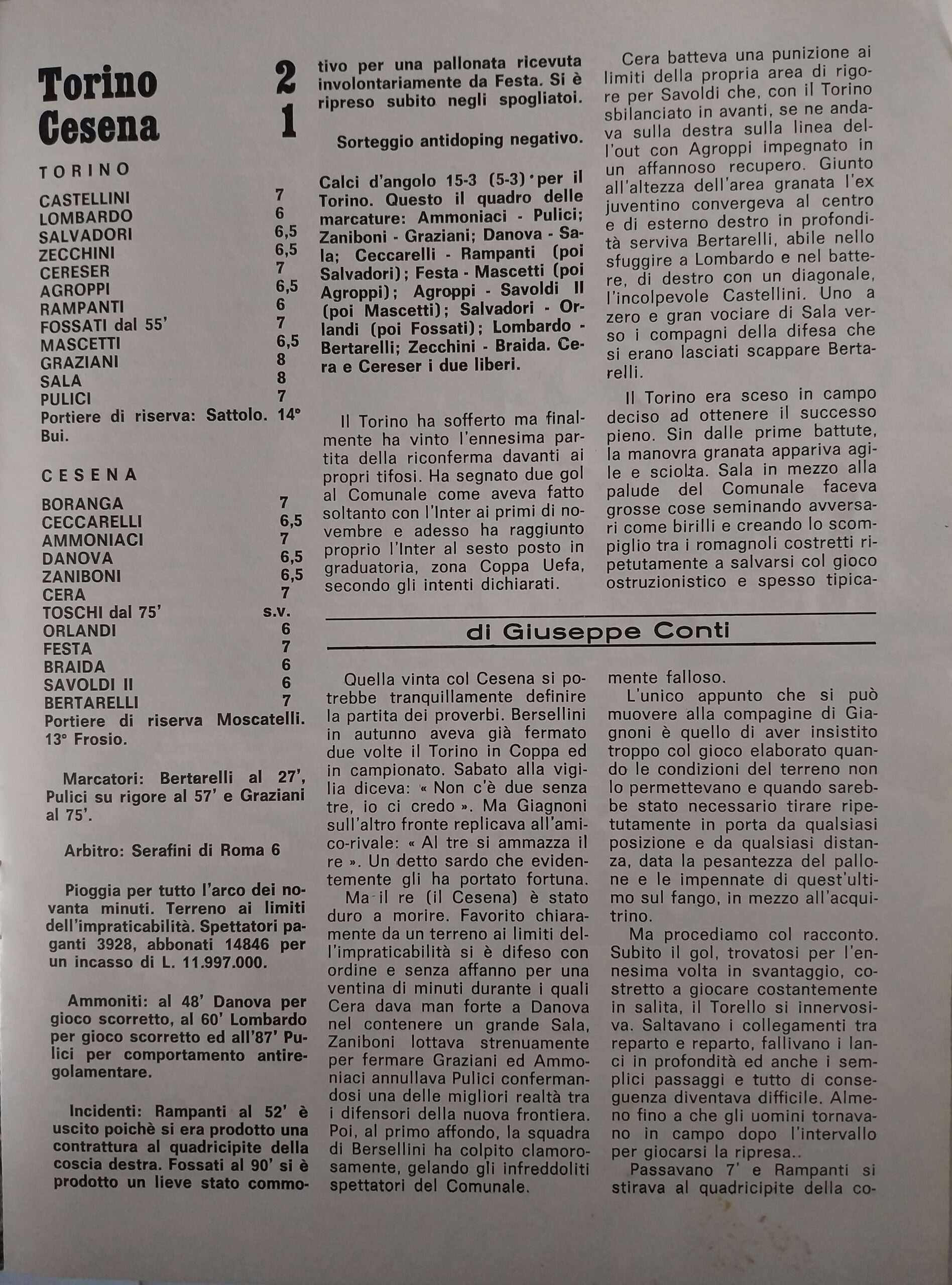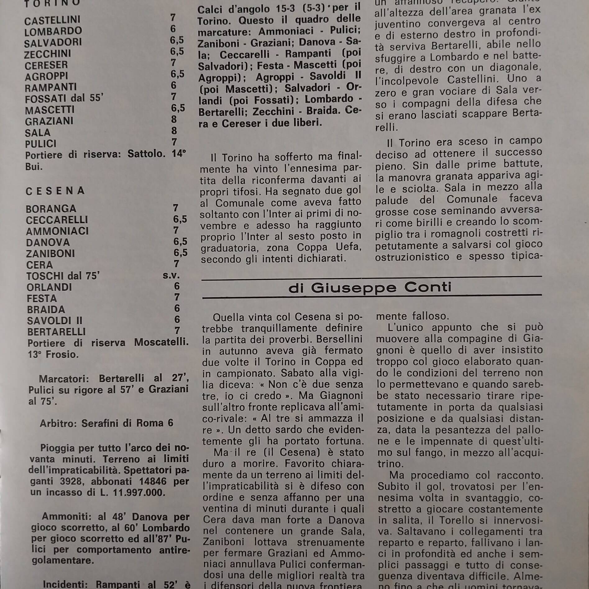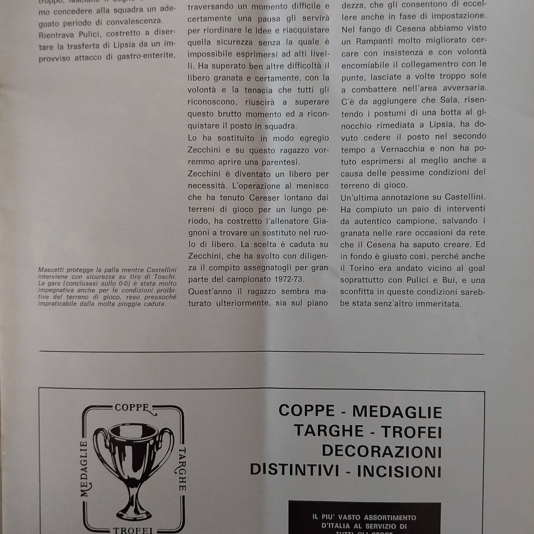 Alè Toro febbraio-marzo 1974, n. 2-3, p. 21, Torino-Cesena 1973-74