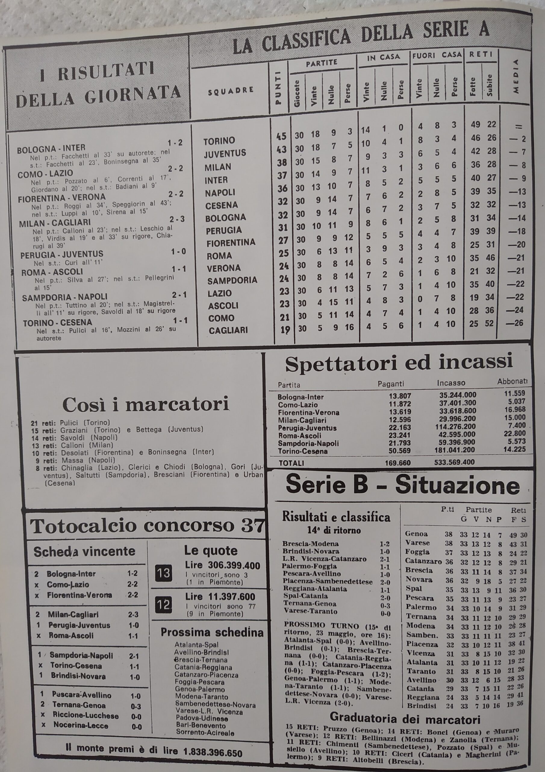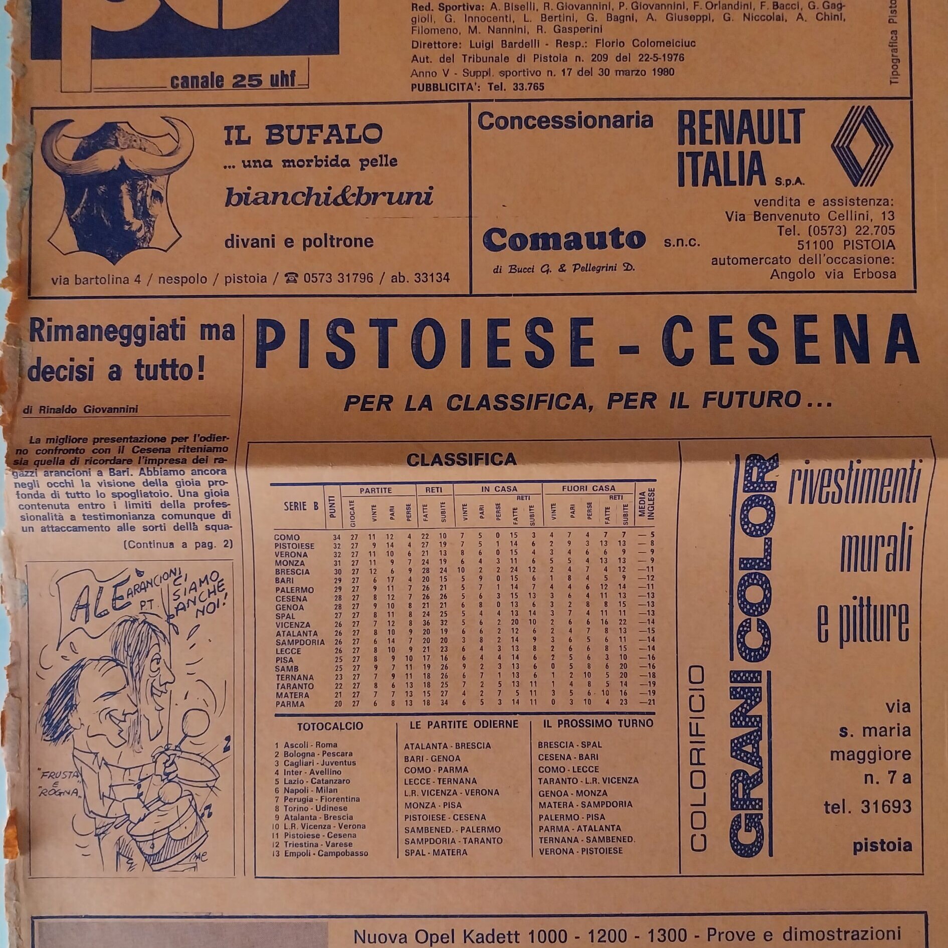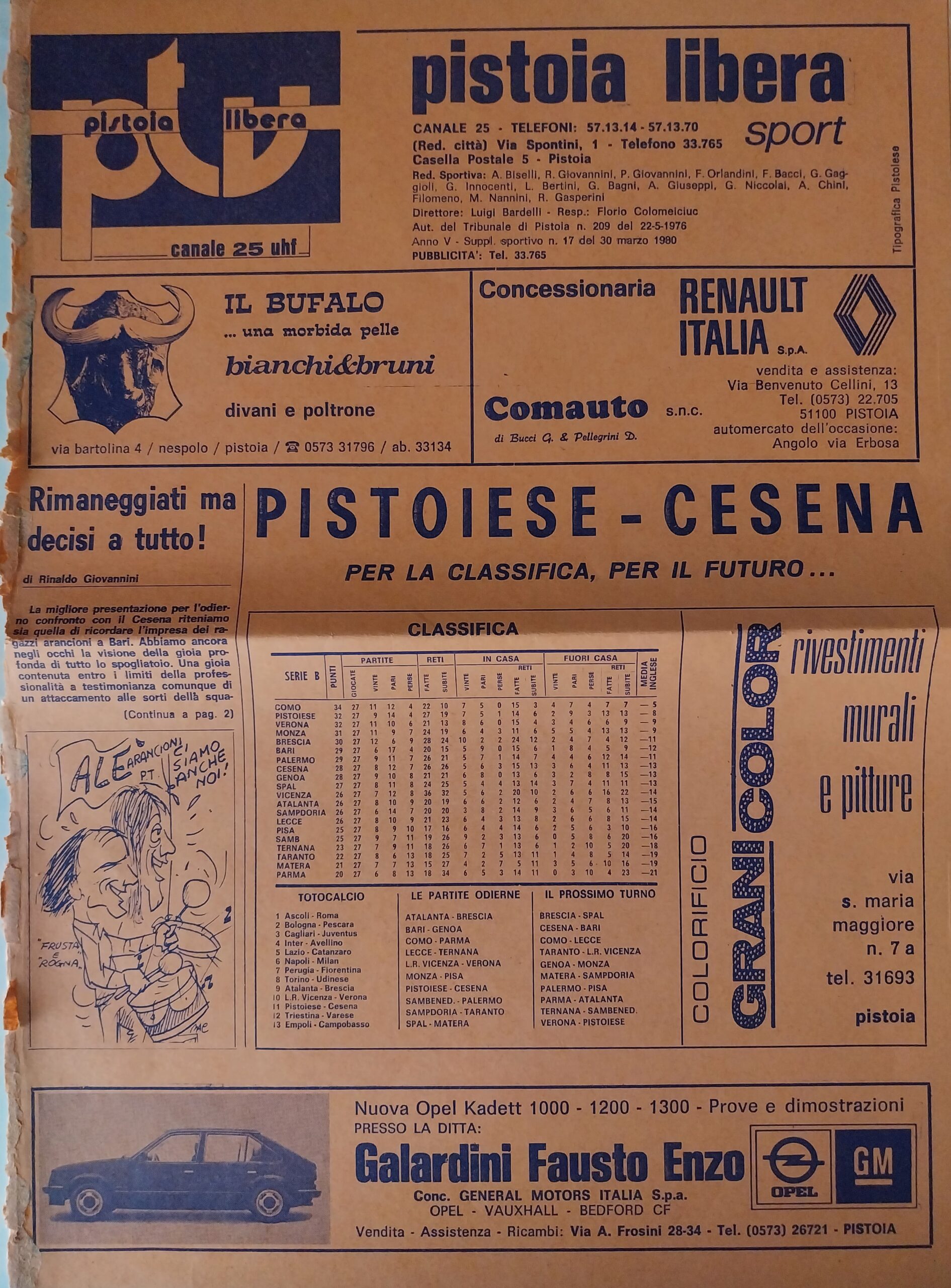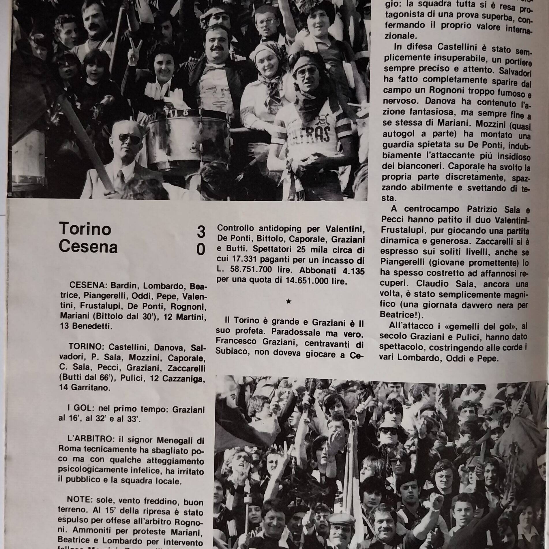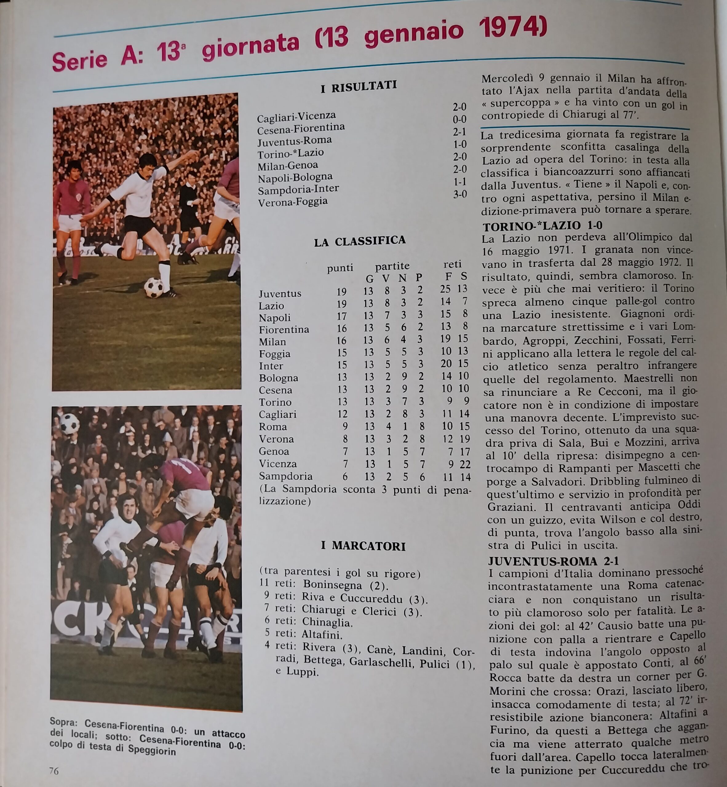 Alè Toro febbraio-marzo 1974, n. 2-3, p. 21, Torino-Cesena 1973-74