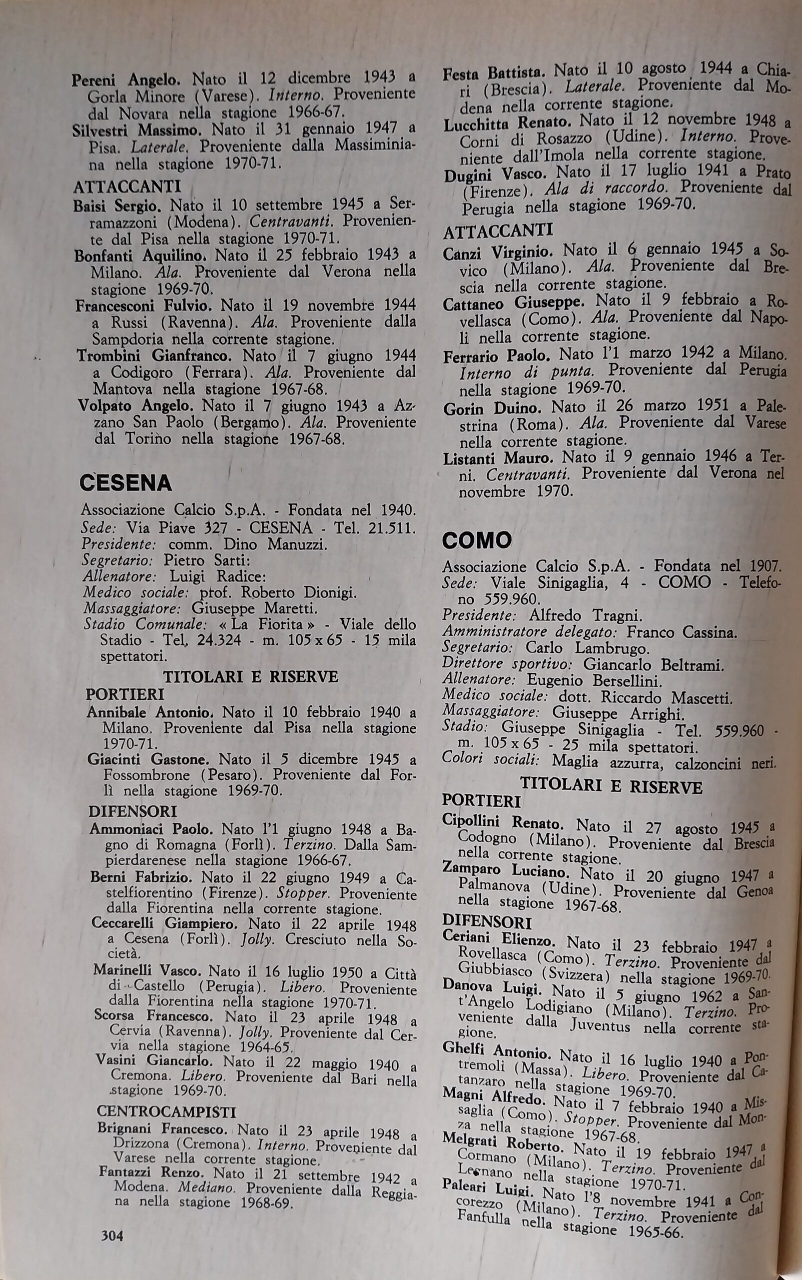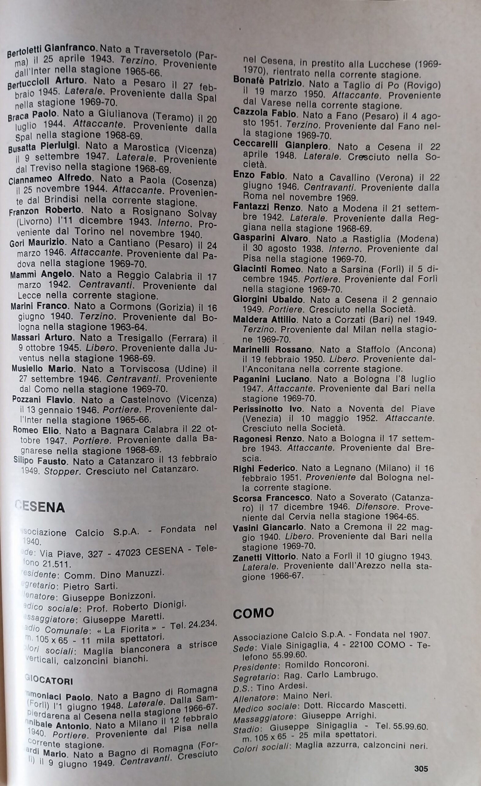 ABC Calcio 1971, p. 305, presentazione Cesena 1970-71