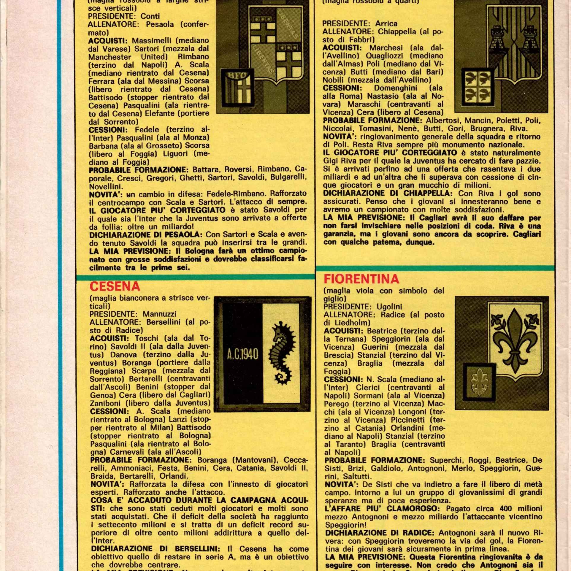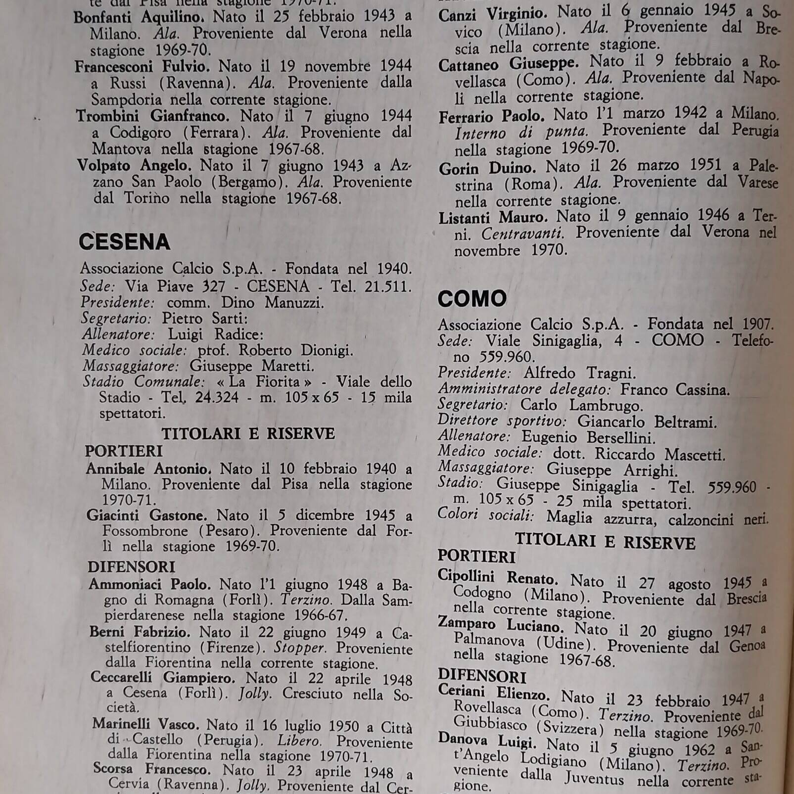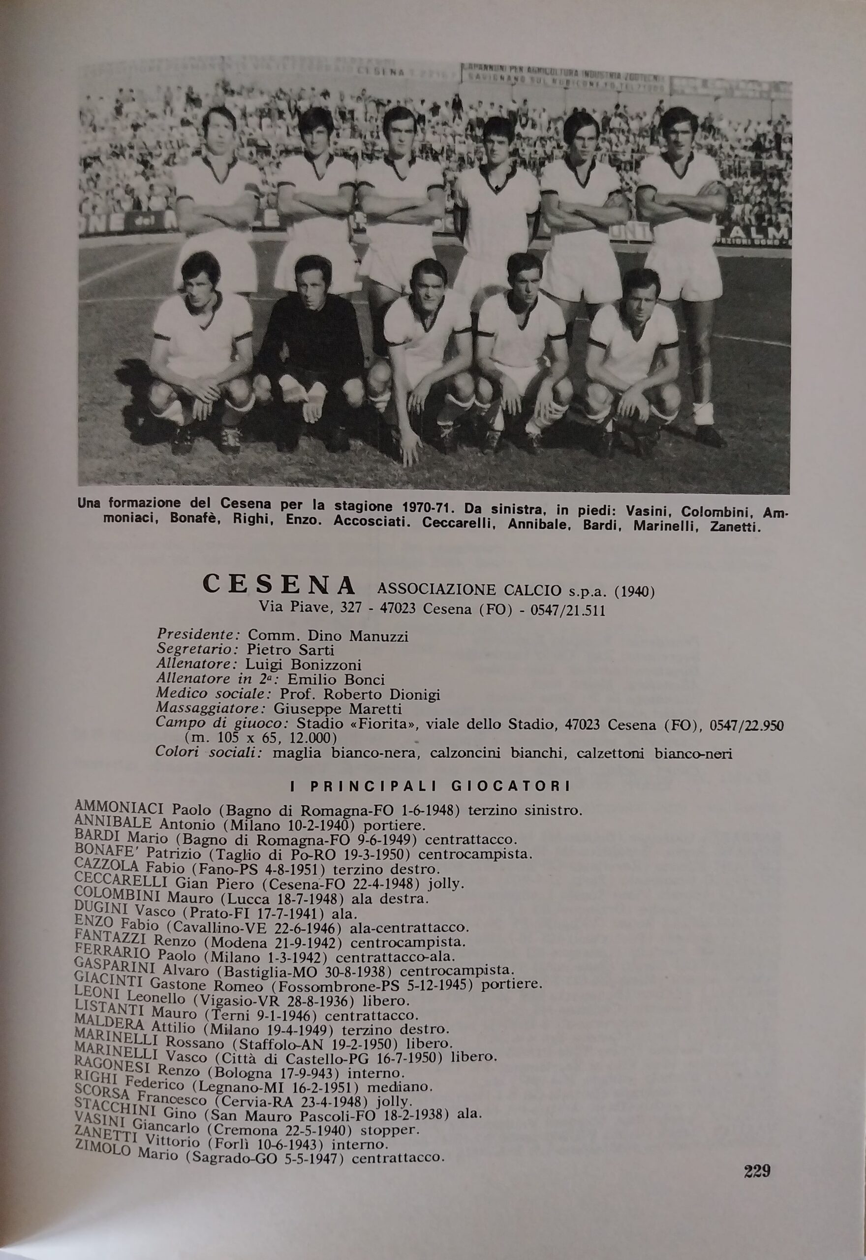 Almanacco del Calcio Panini 1971, p. 229, presentazione Cesena 1970-71