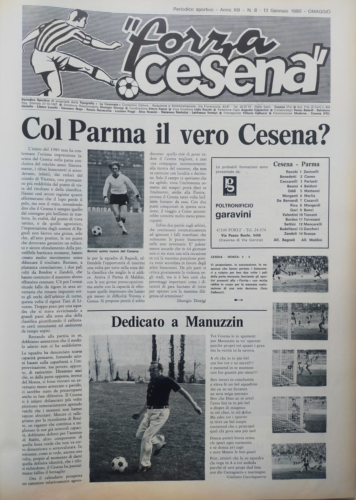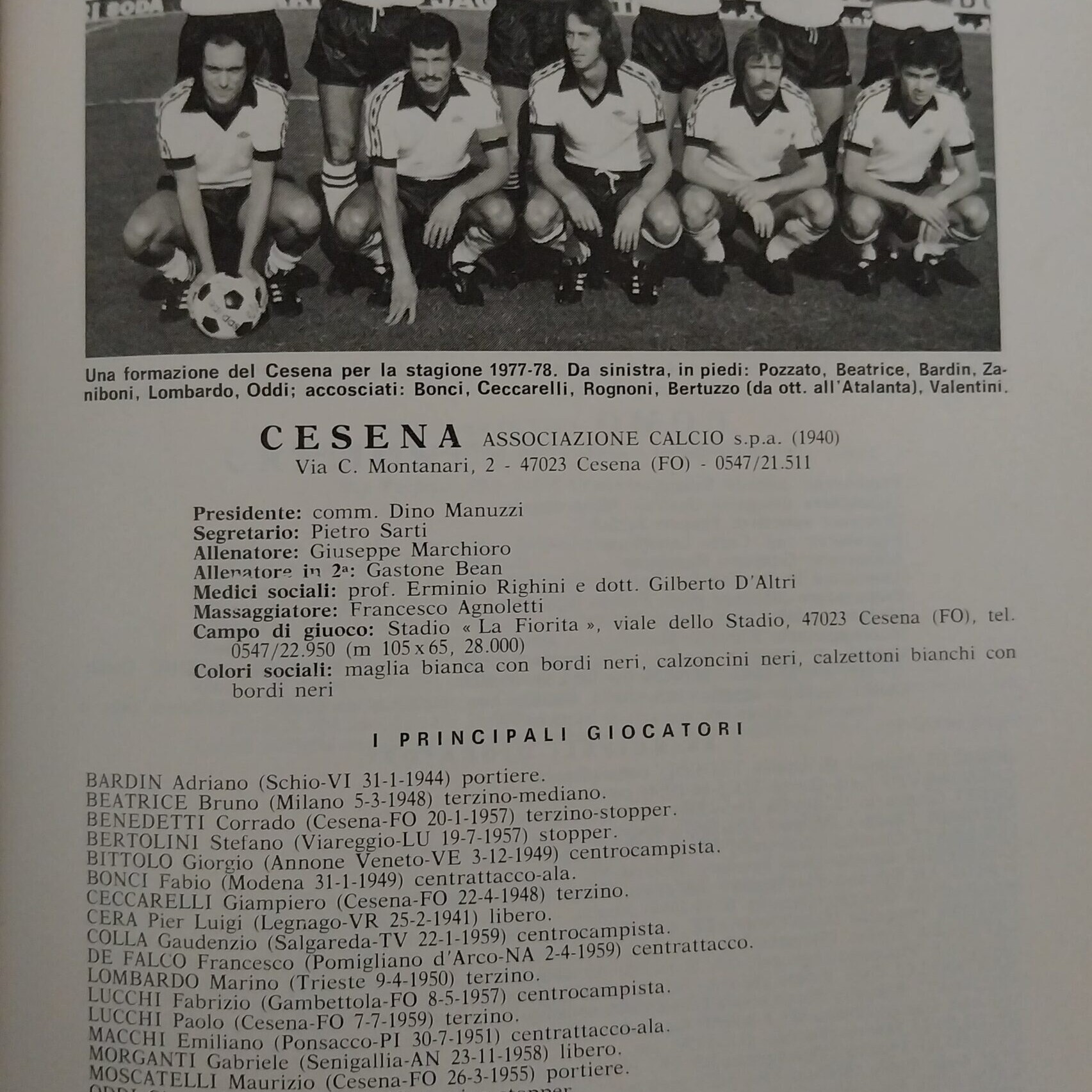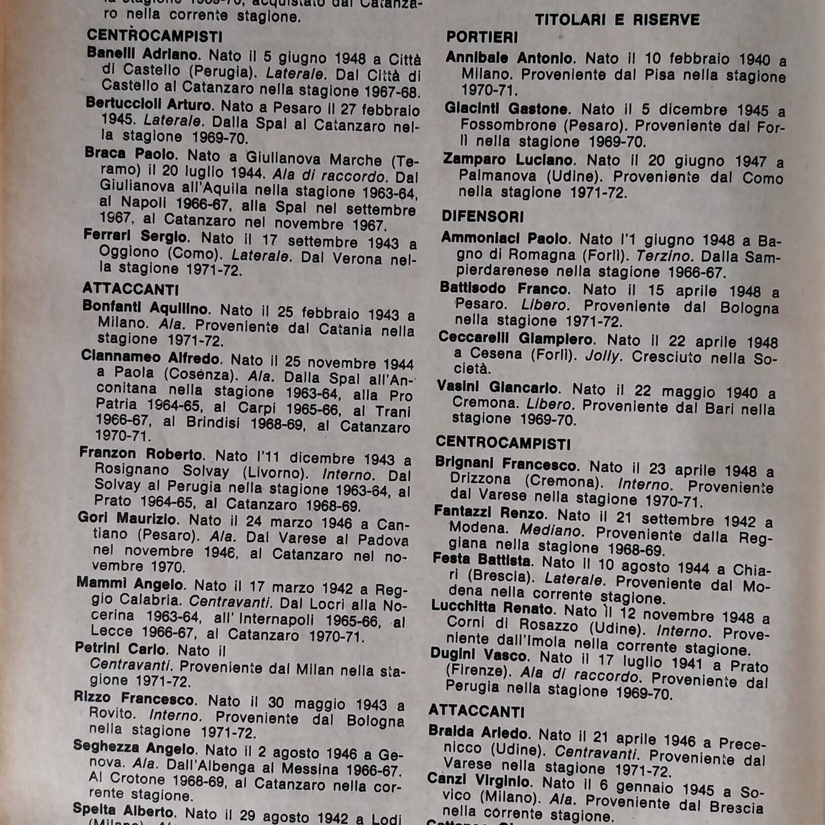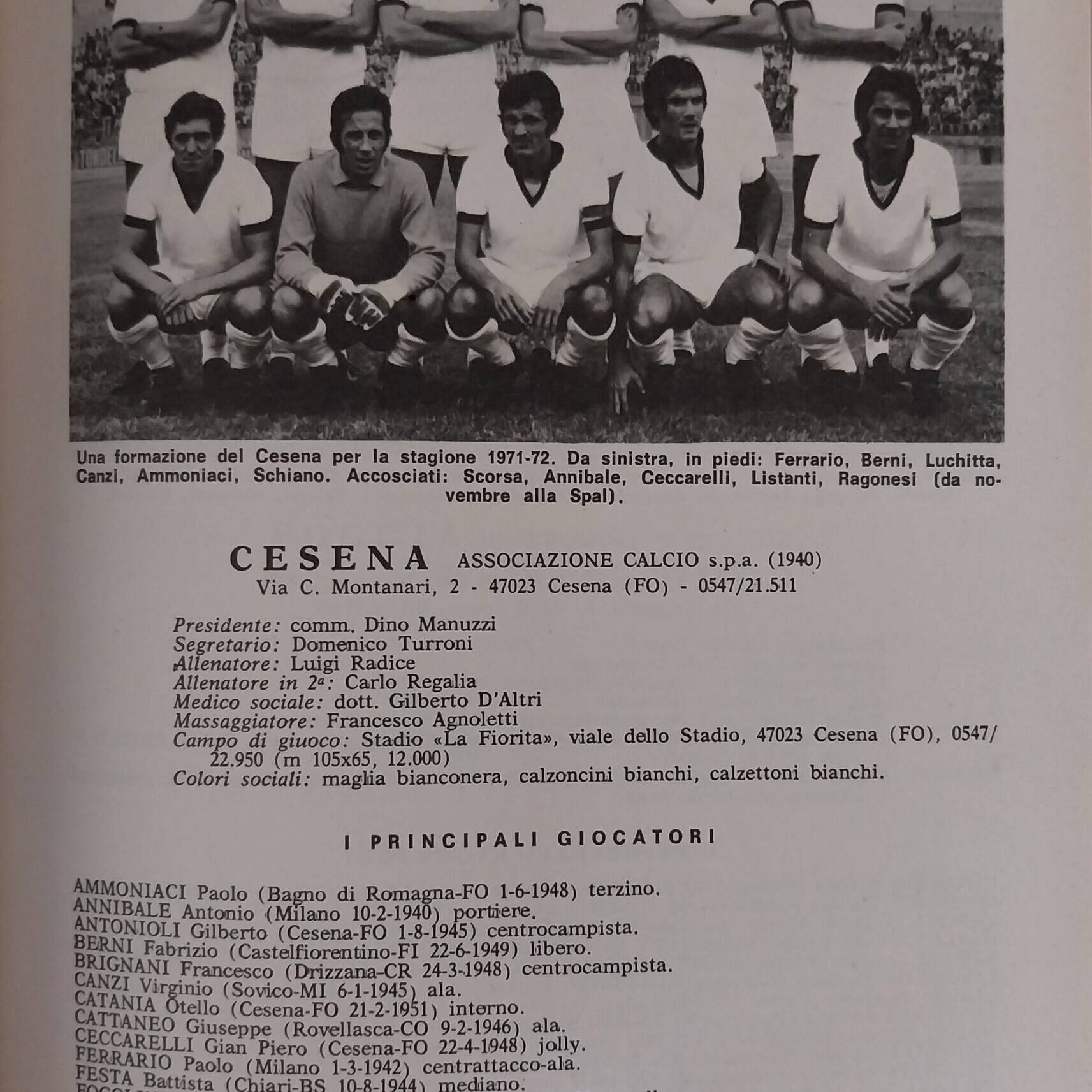 Almanacco Alè Cesena 1971-72, interno Manuzzi Dino