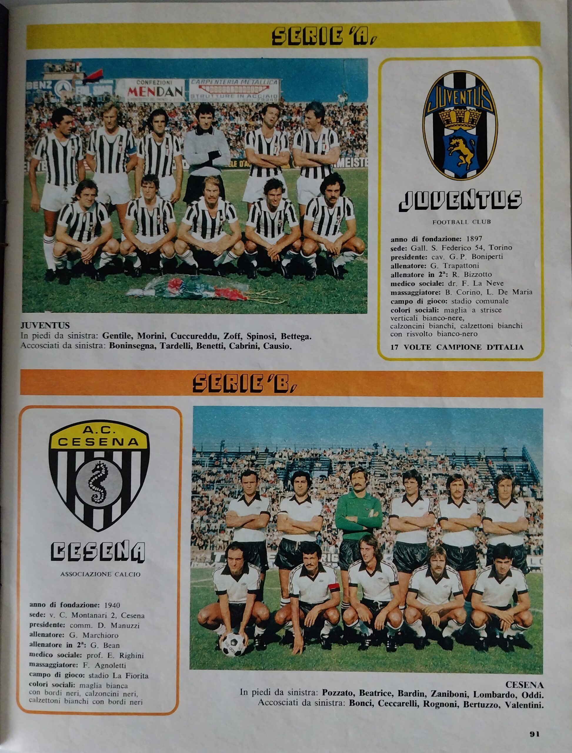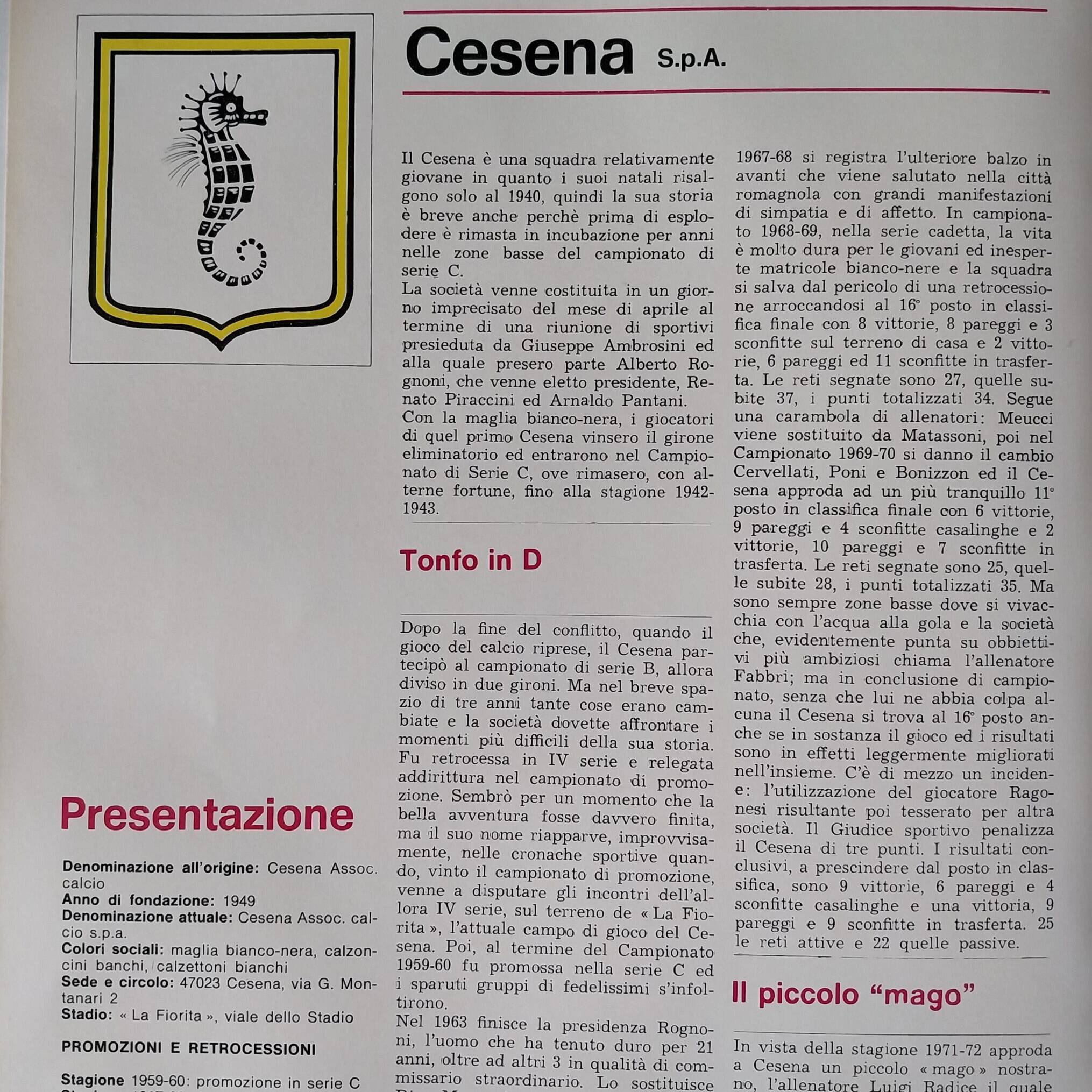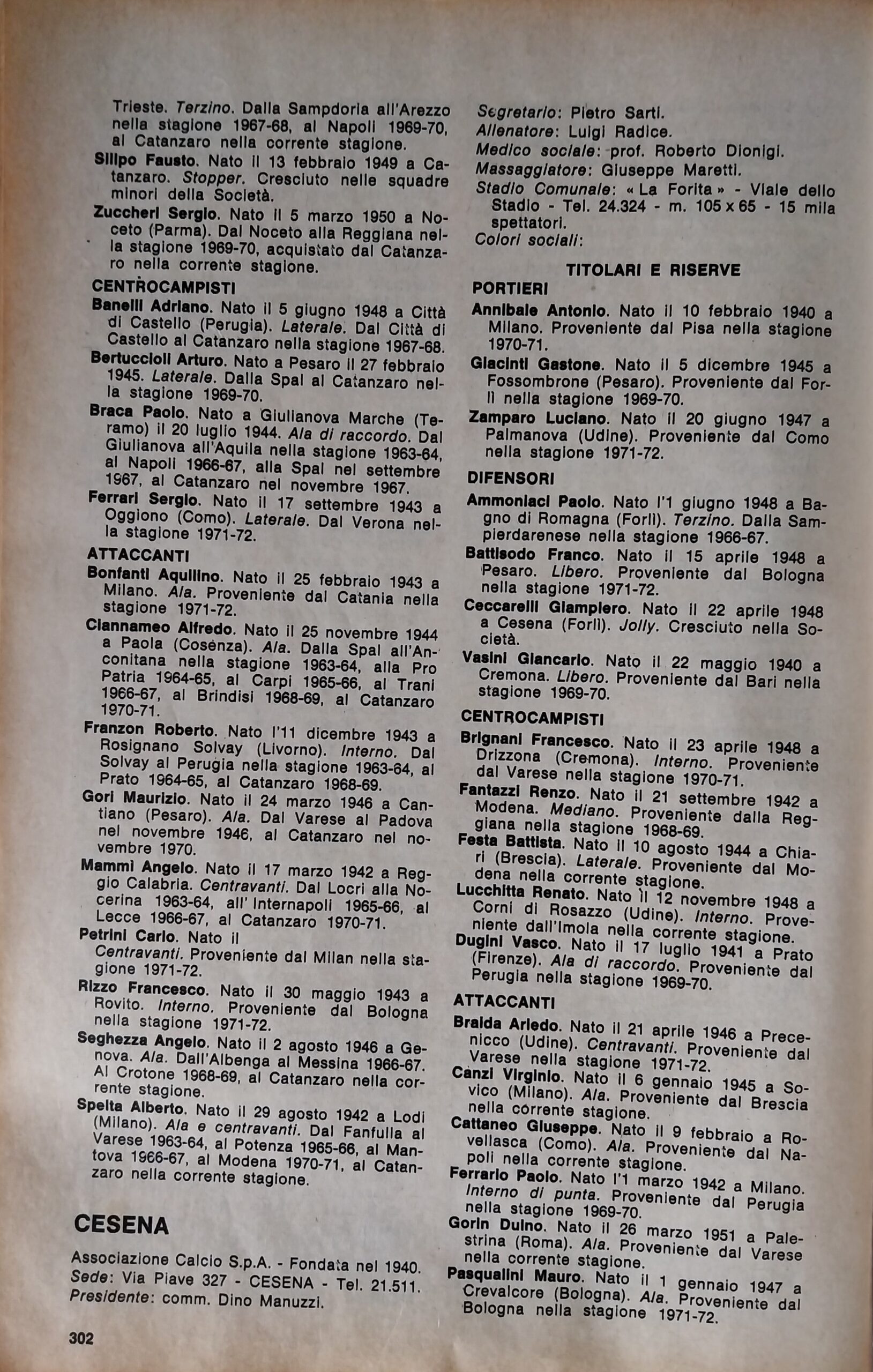 ABC Calcio 1972, p. 304, presentazione Cesena 1971-72