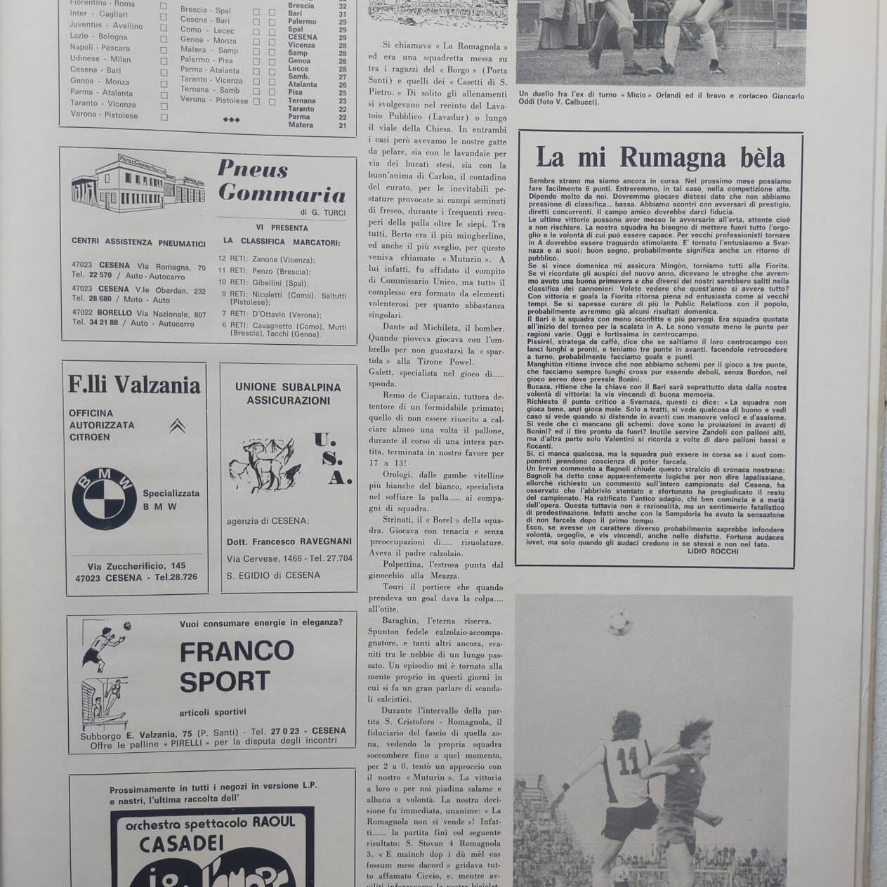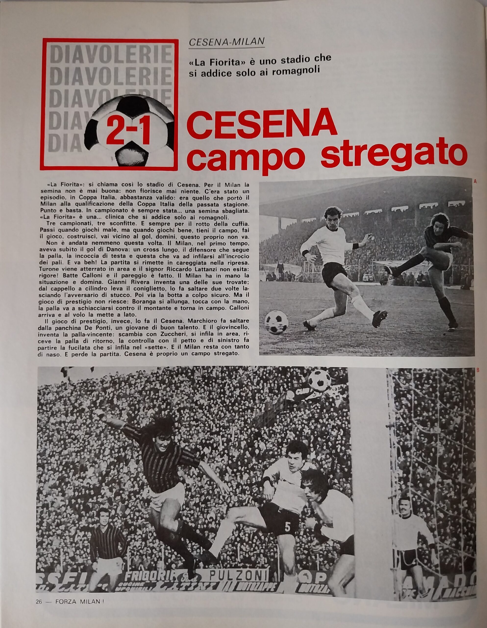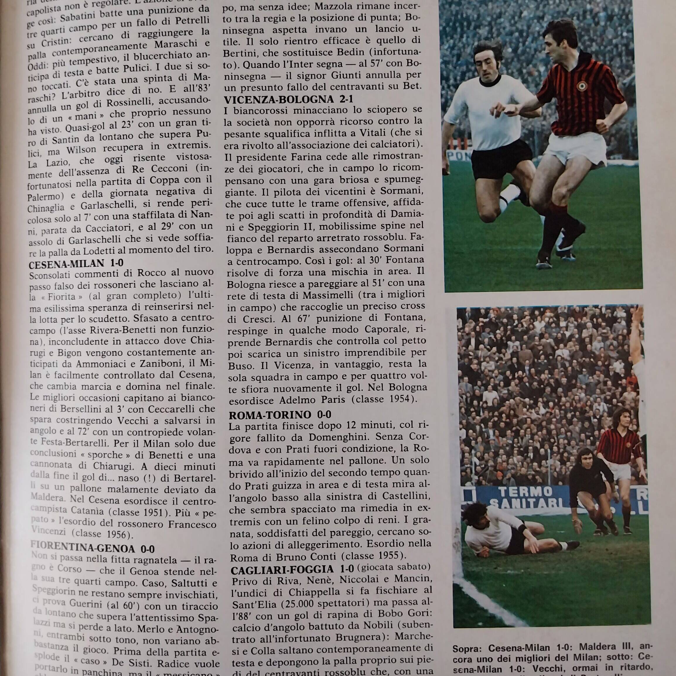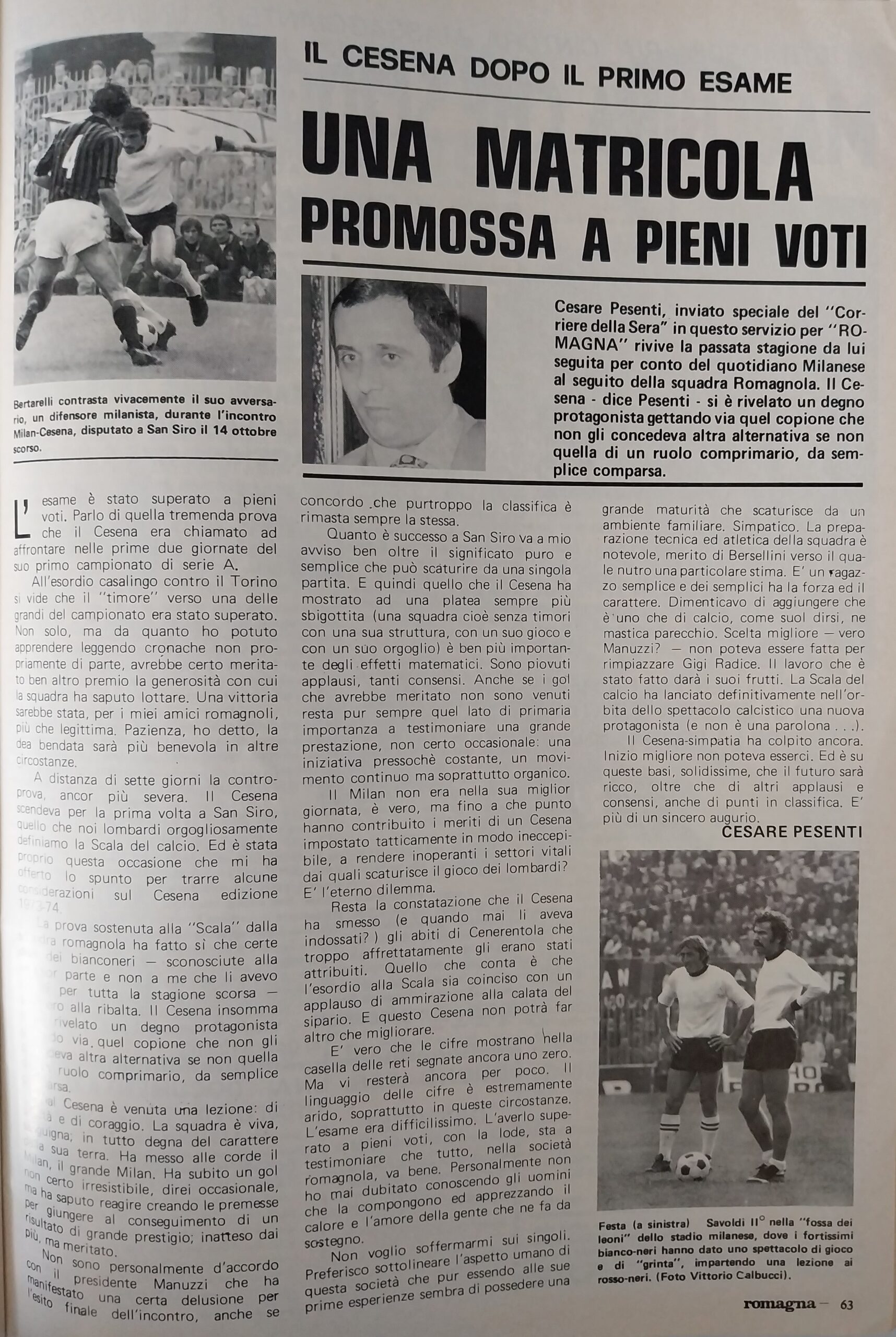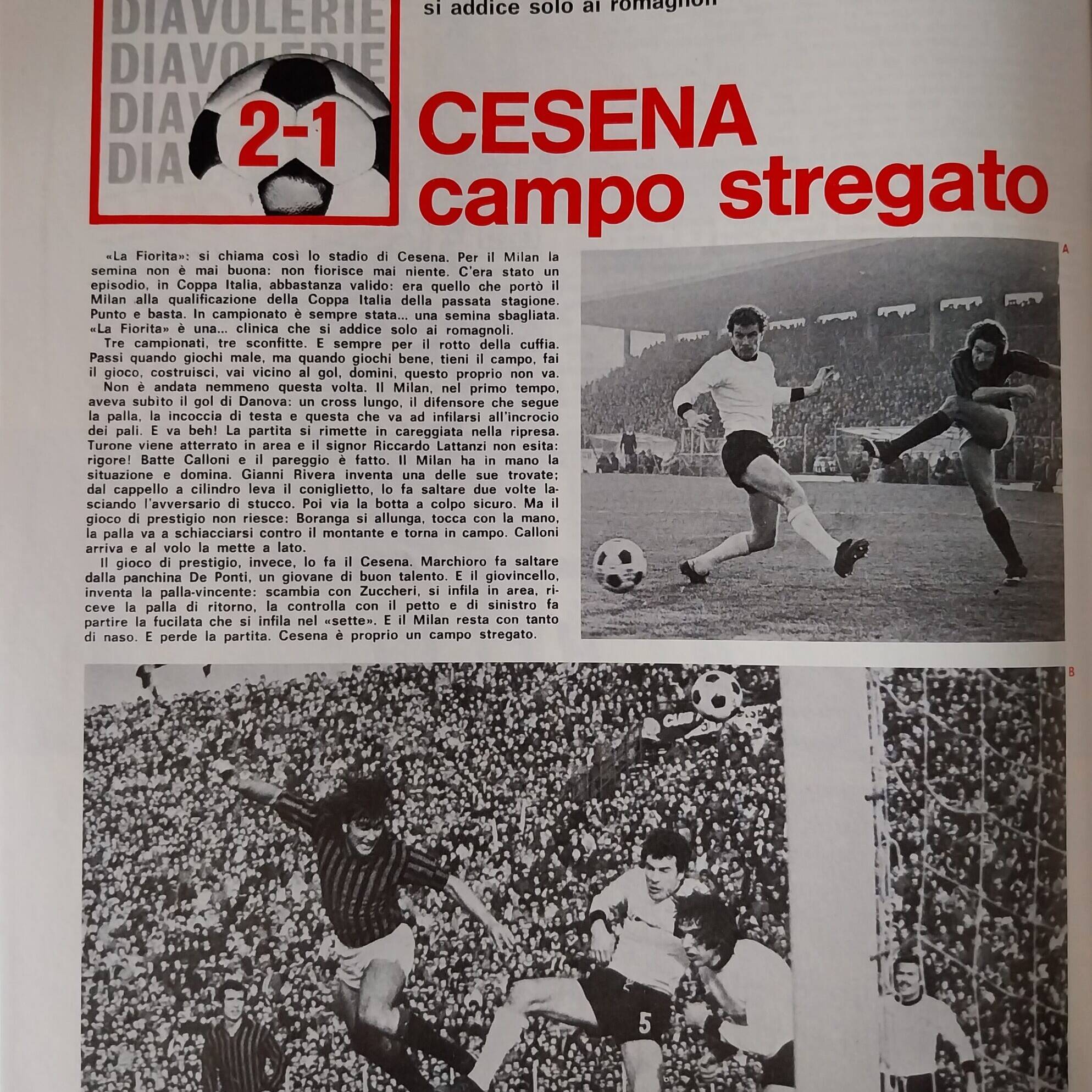 Romagna, Dicembre 1973, n. 11, p. 68, articolo Cesena con foto Milan-Cesena 1973-74
