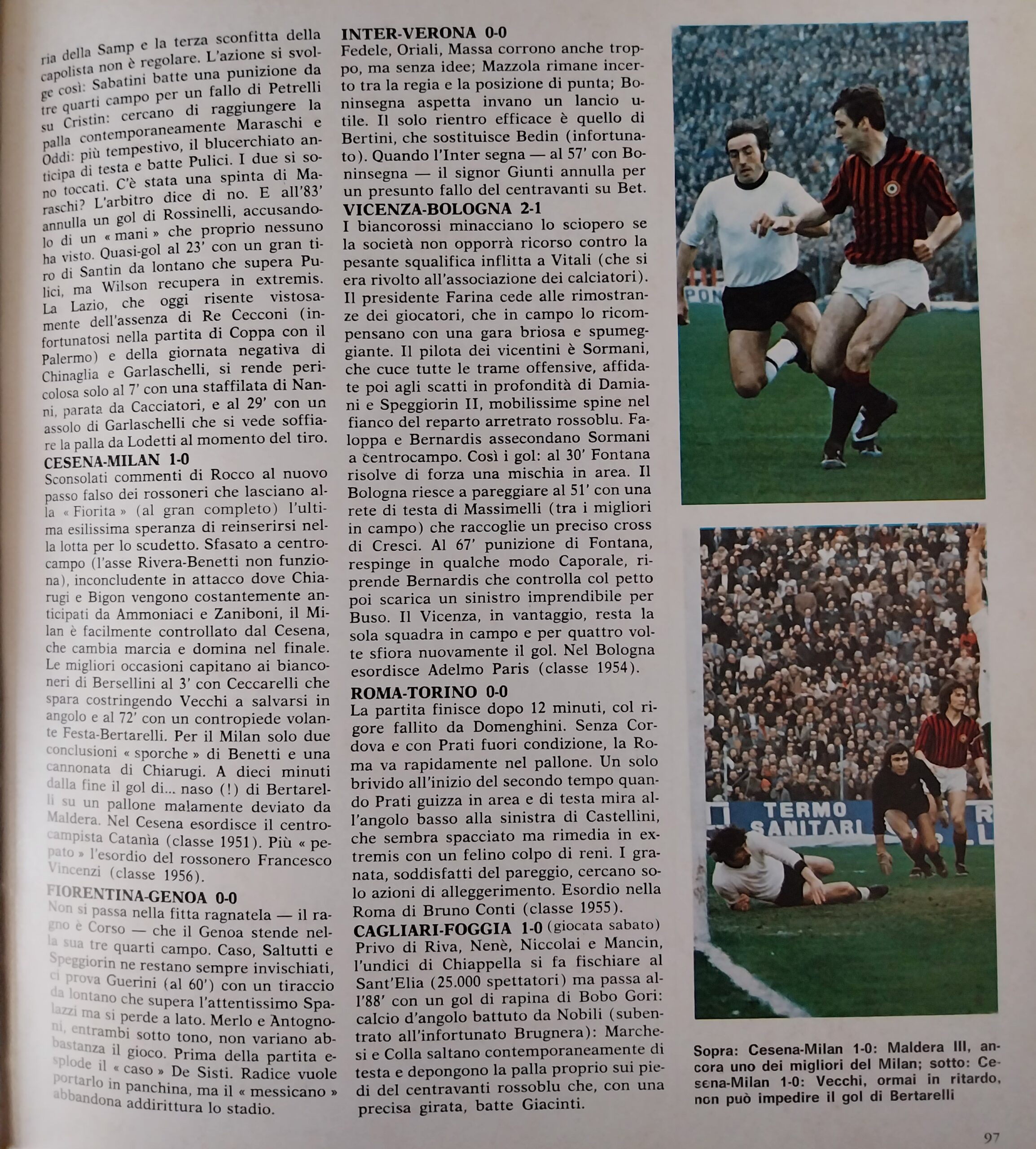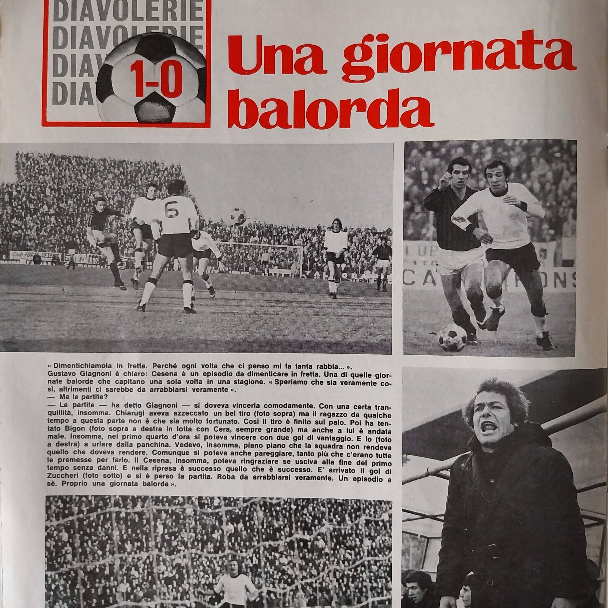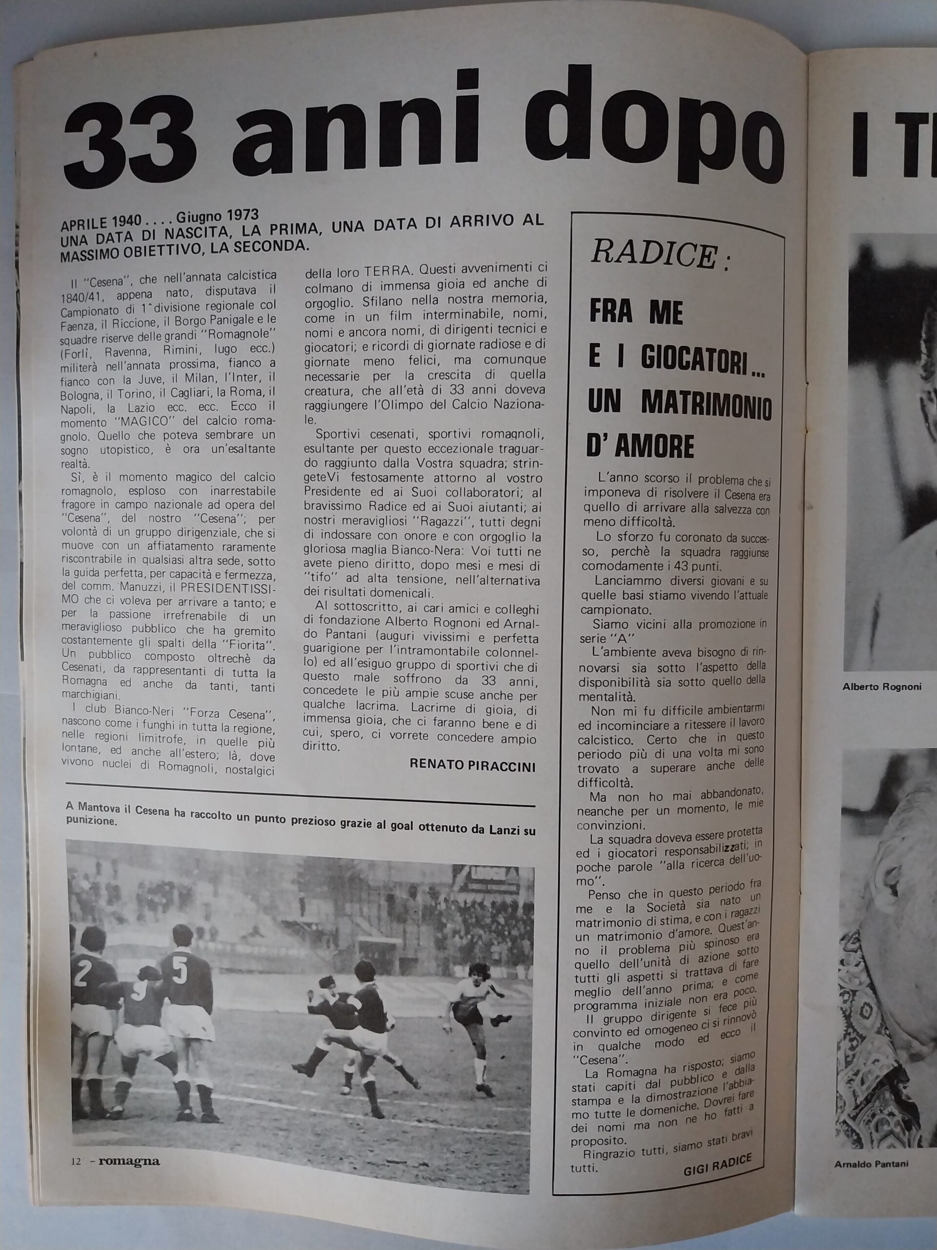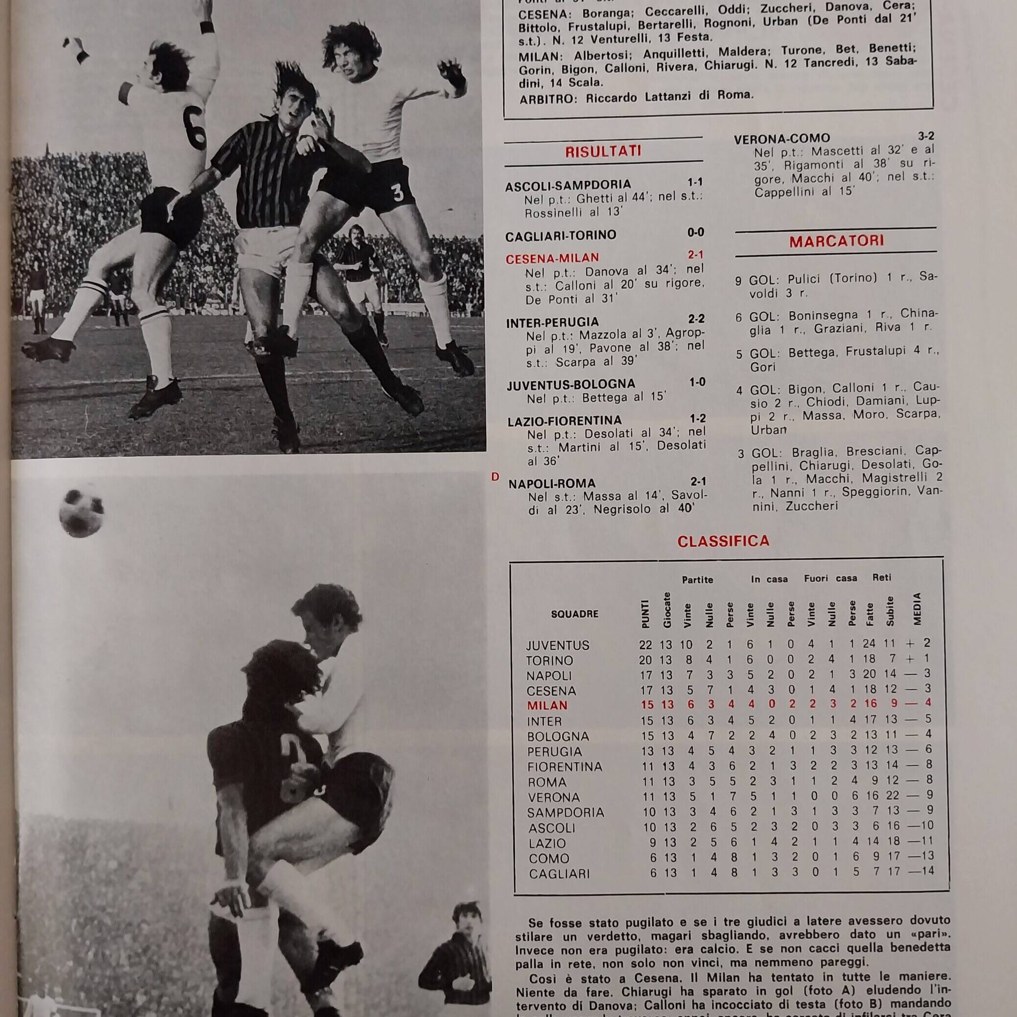 Romagna, Dicembre 1973, n. 11, p. 68, articolo Cesena con foto Milan-Cesena 1973-74