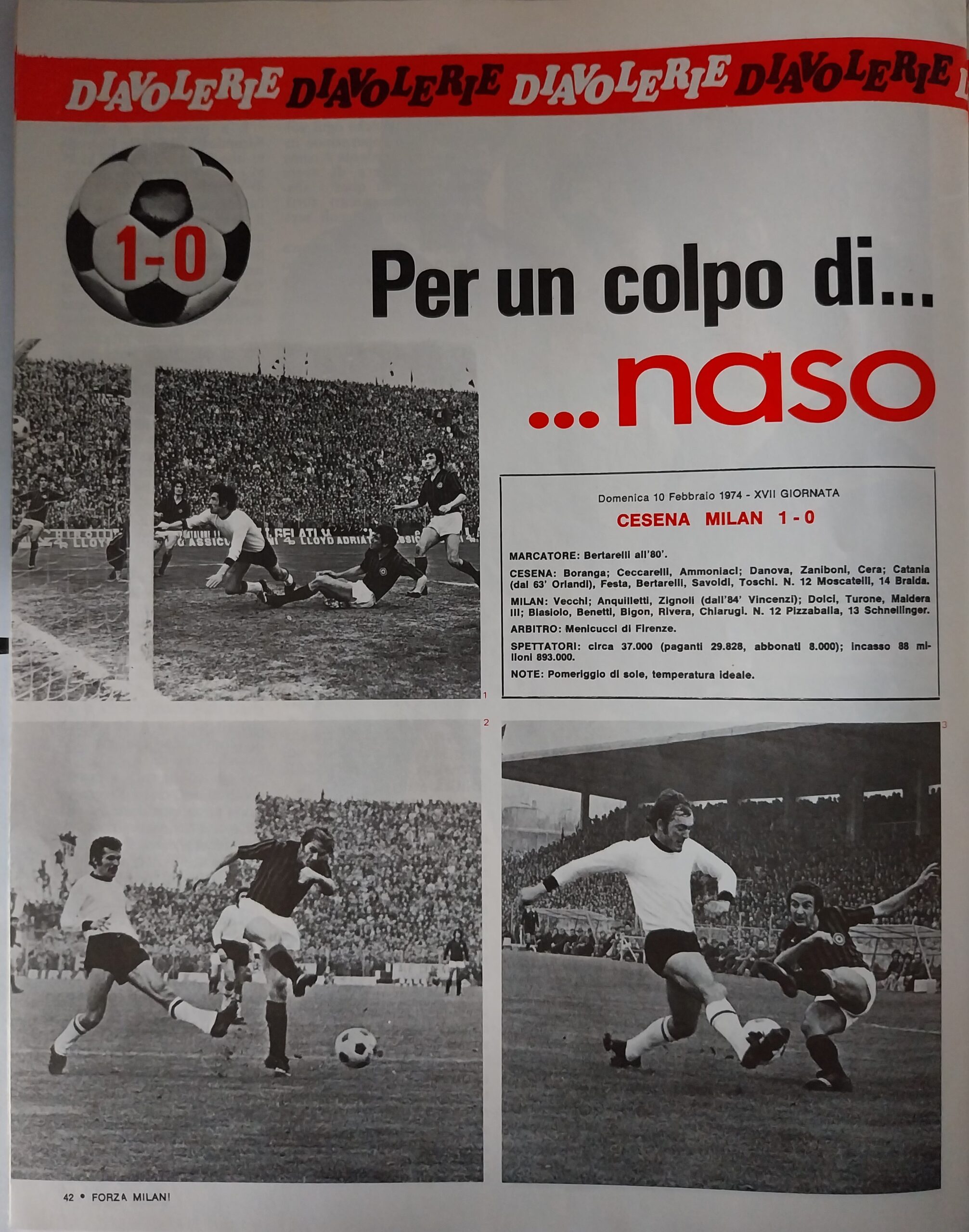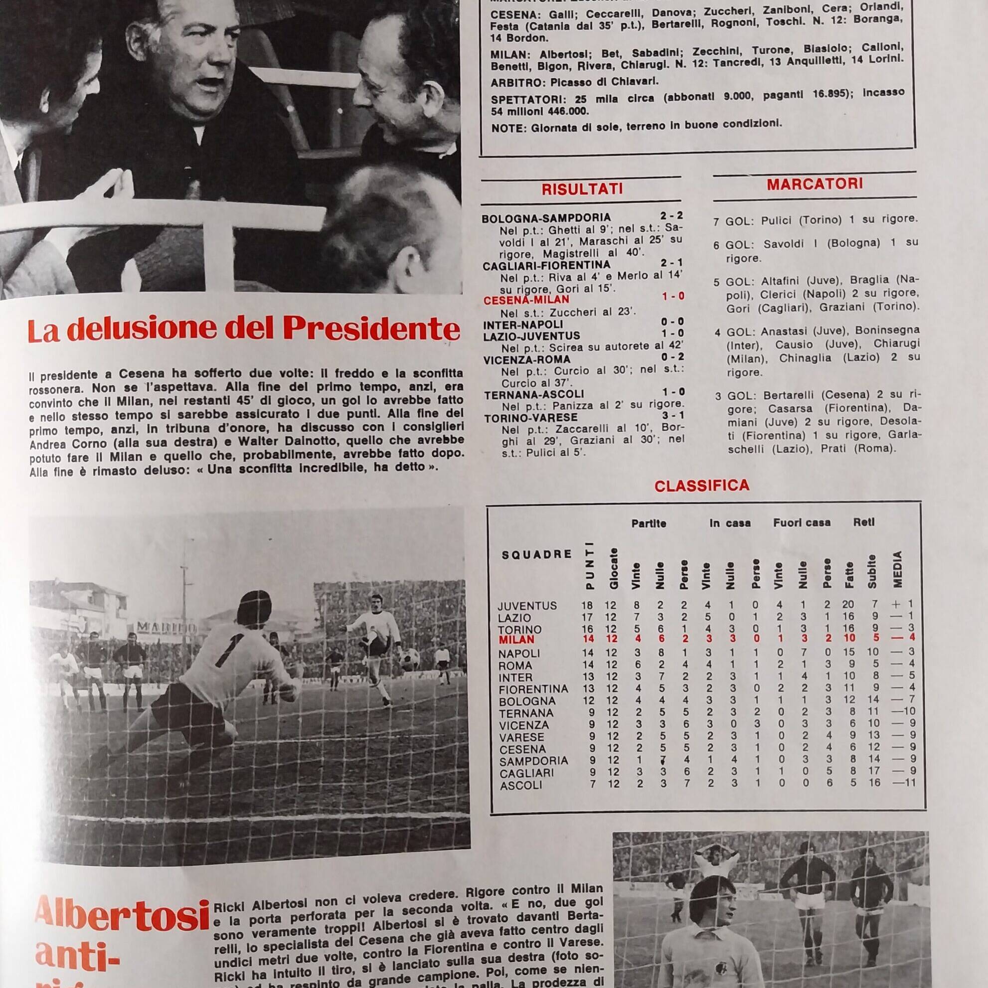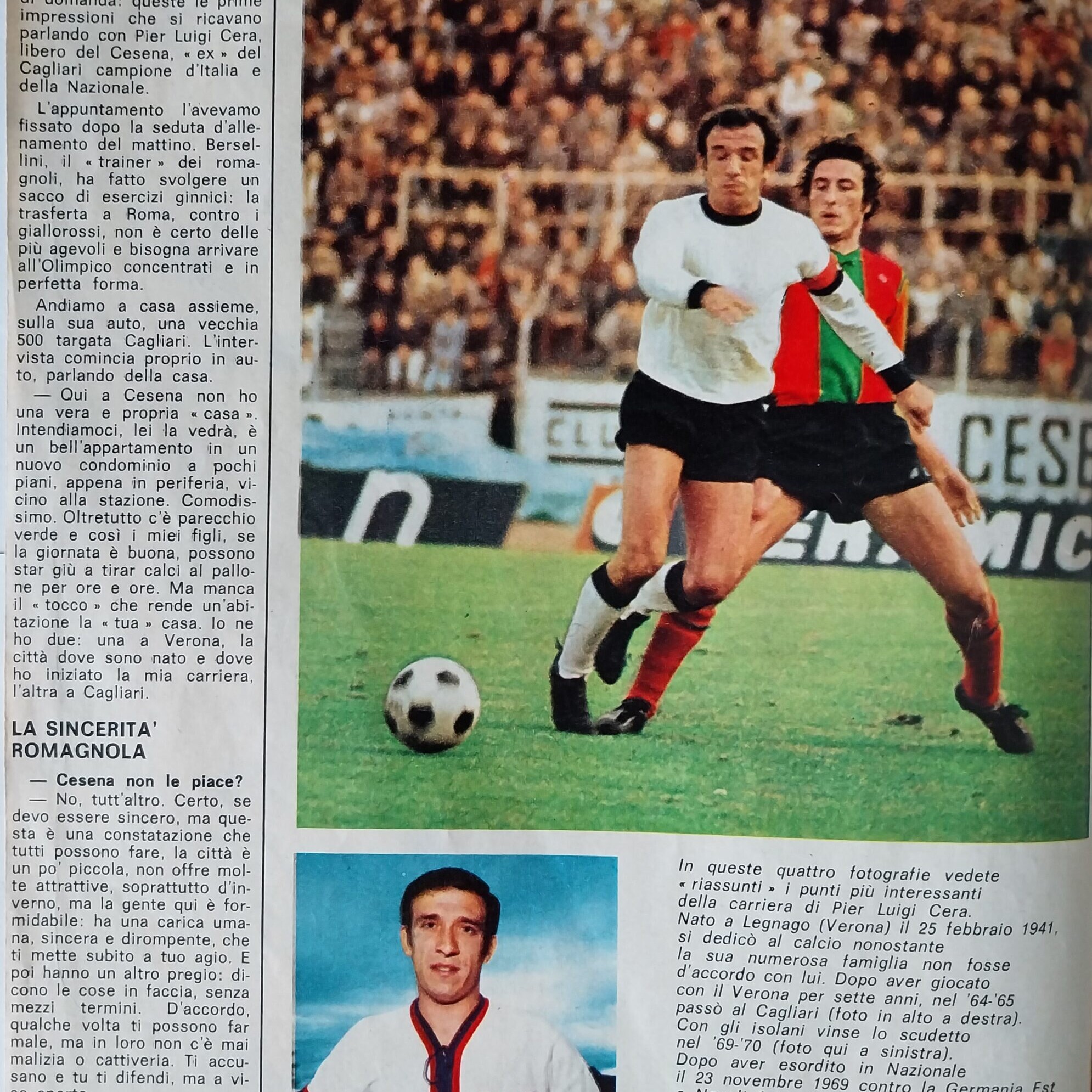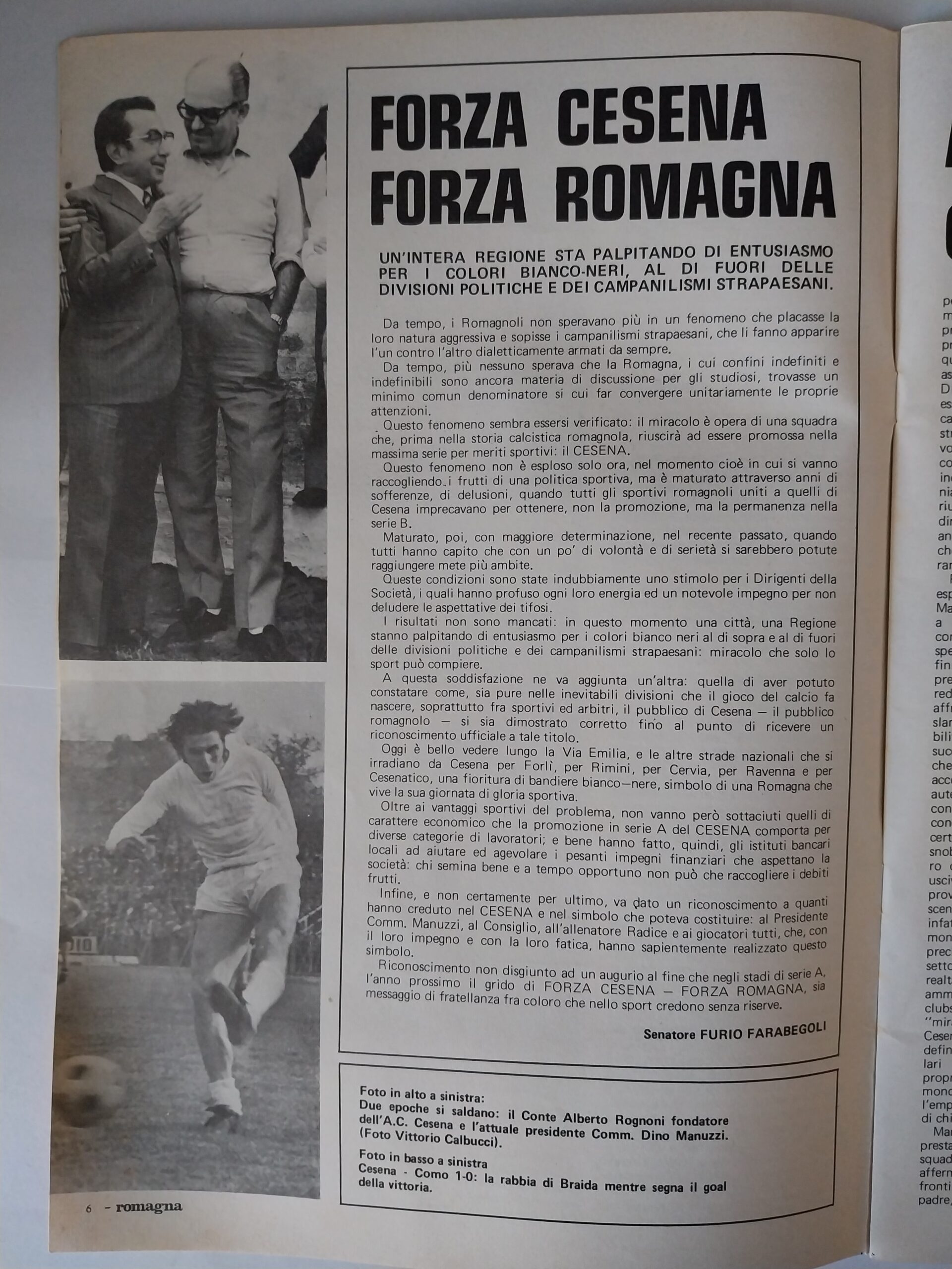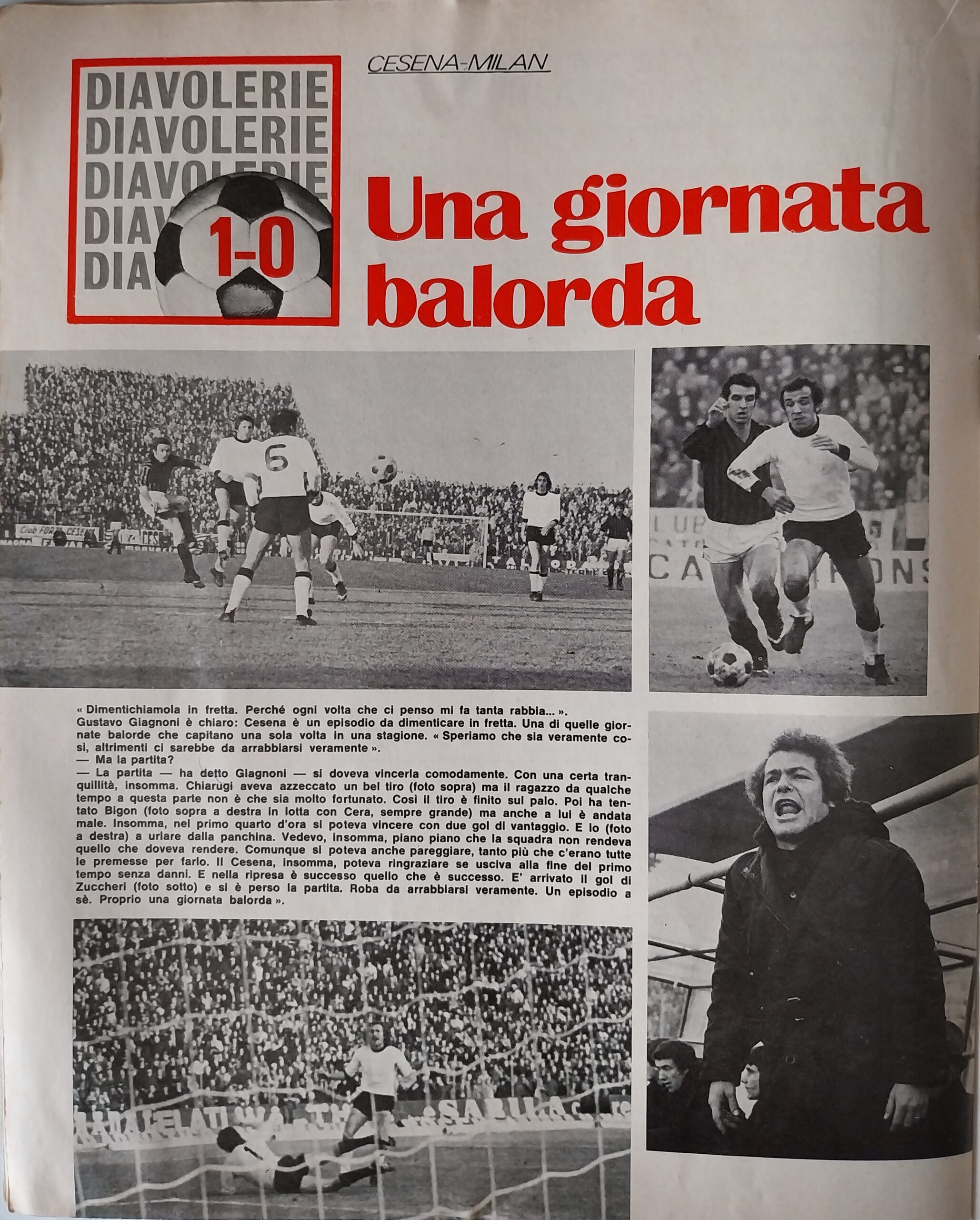 Romagna, Dicembre 1973, n. 11, p. 68, articolo Cesena con foto Milan-Cesena 1973-74