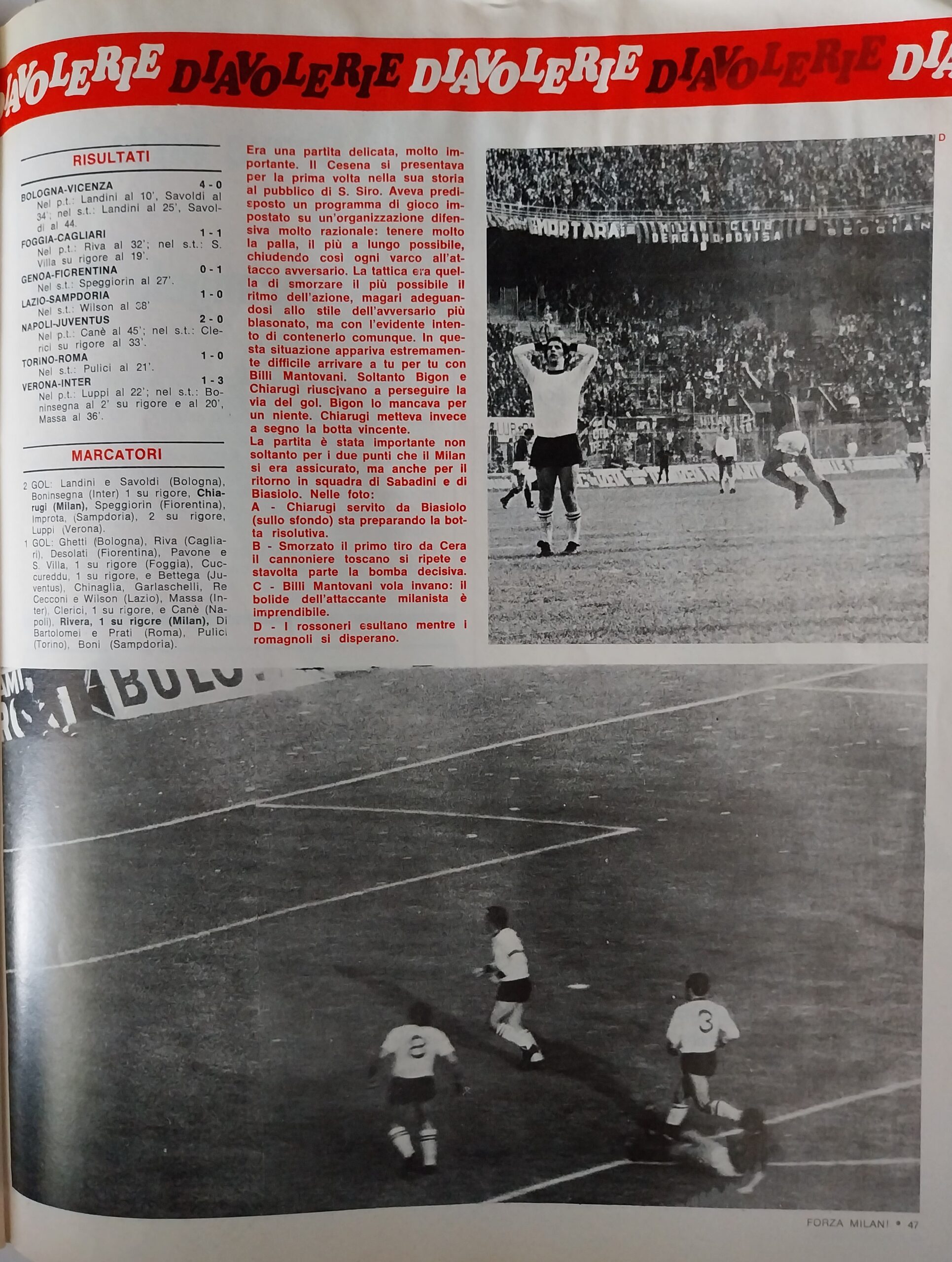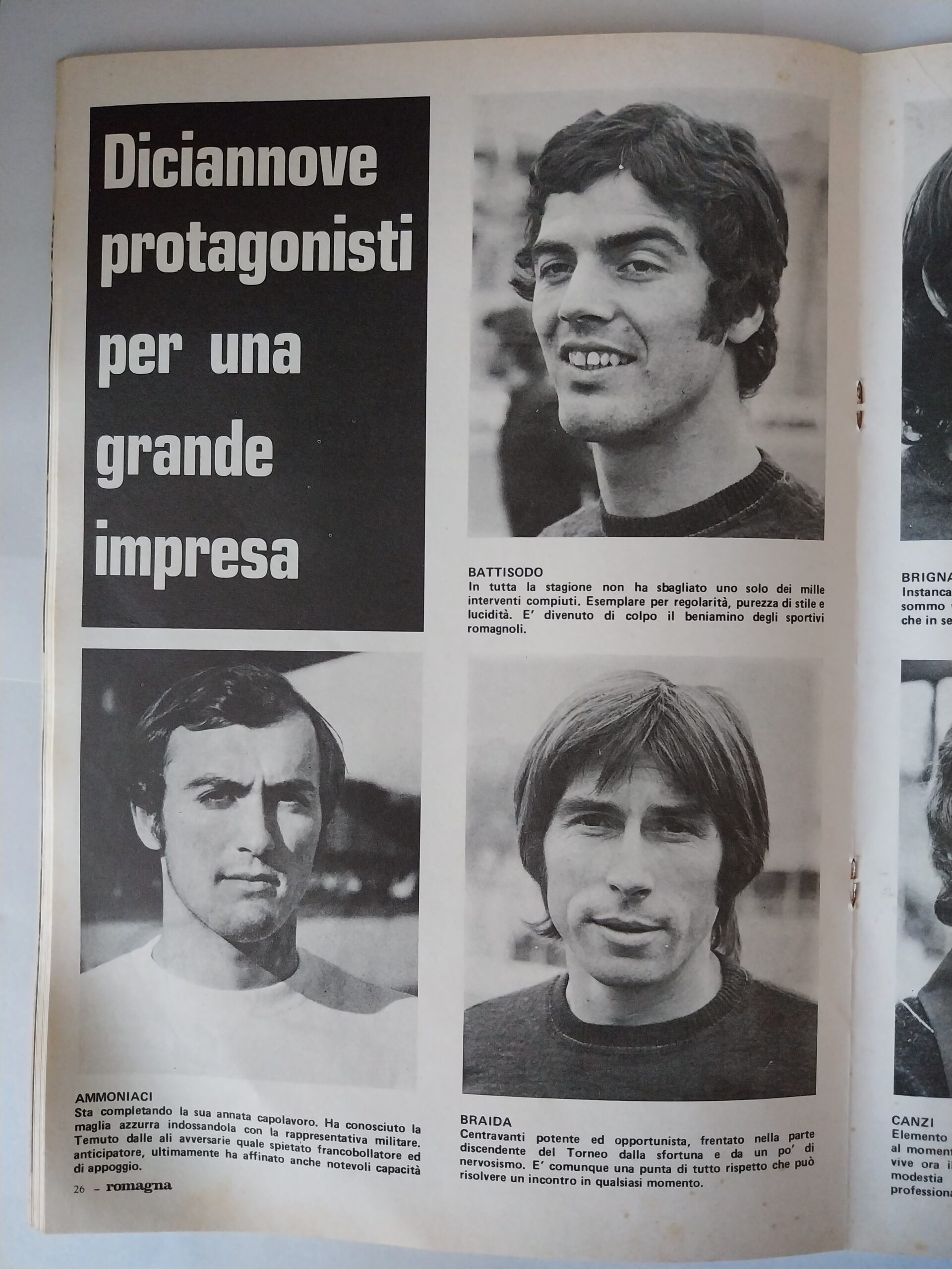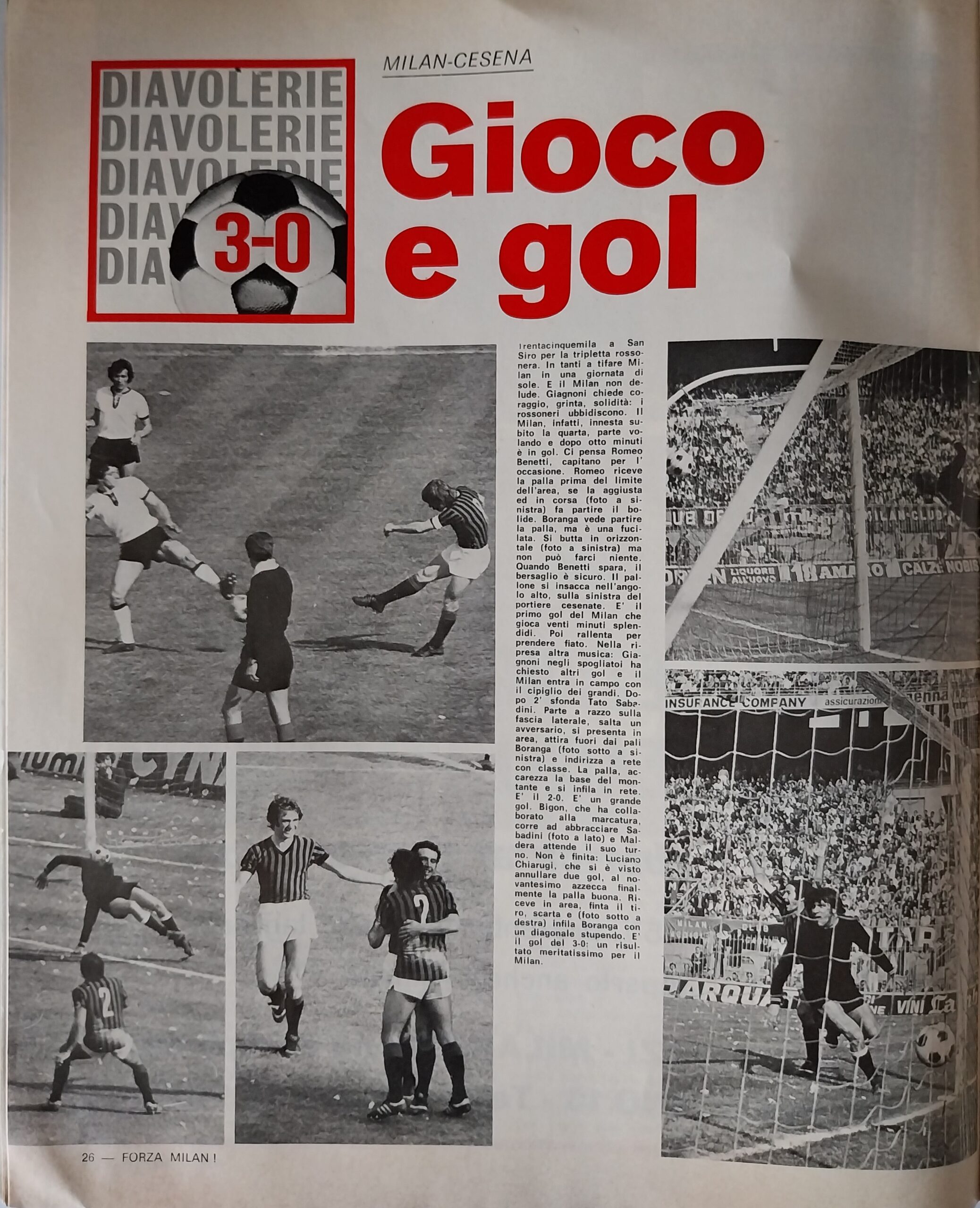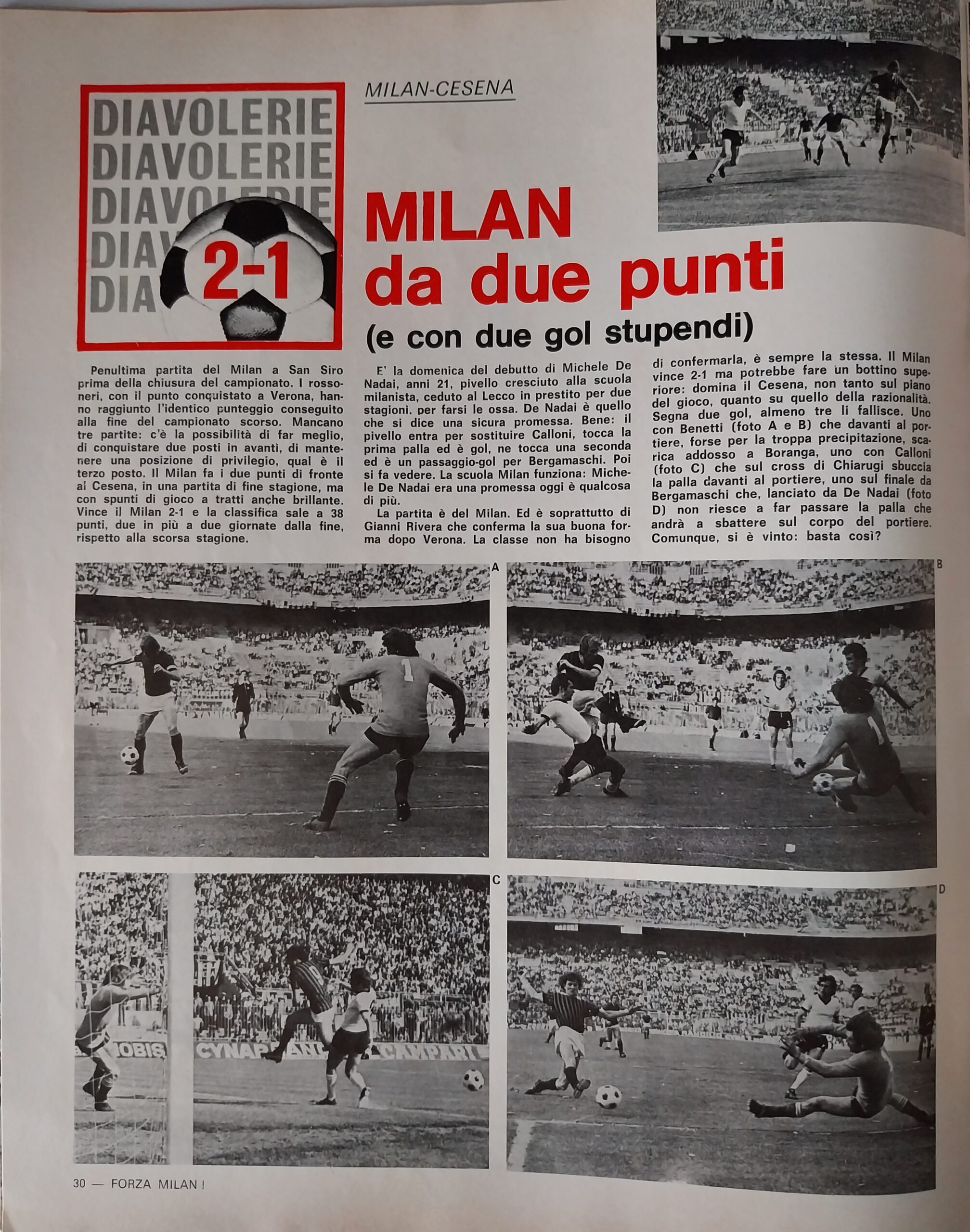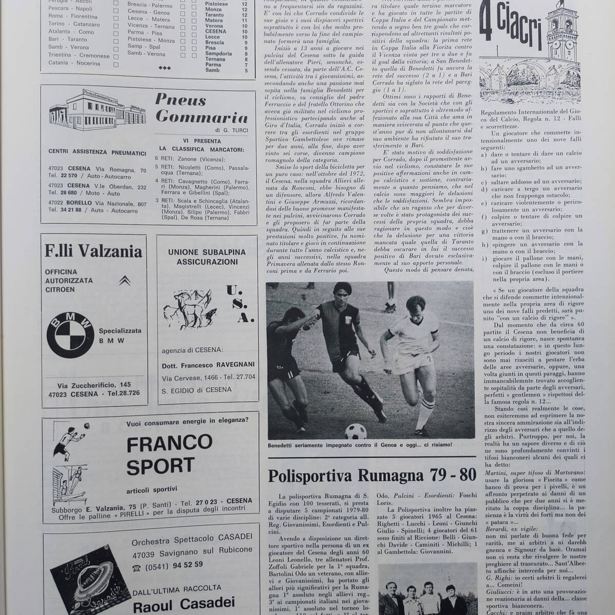Romagna, Dicembre 1973, n. 11, p. 68, articolo Cesena con foto Milan-Cesena 1973-74