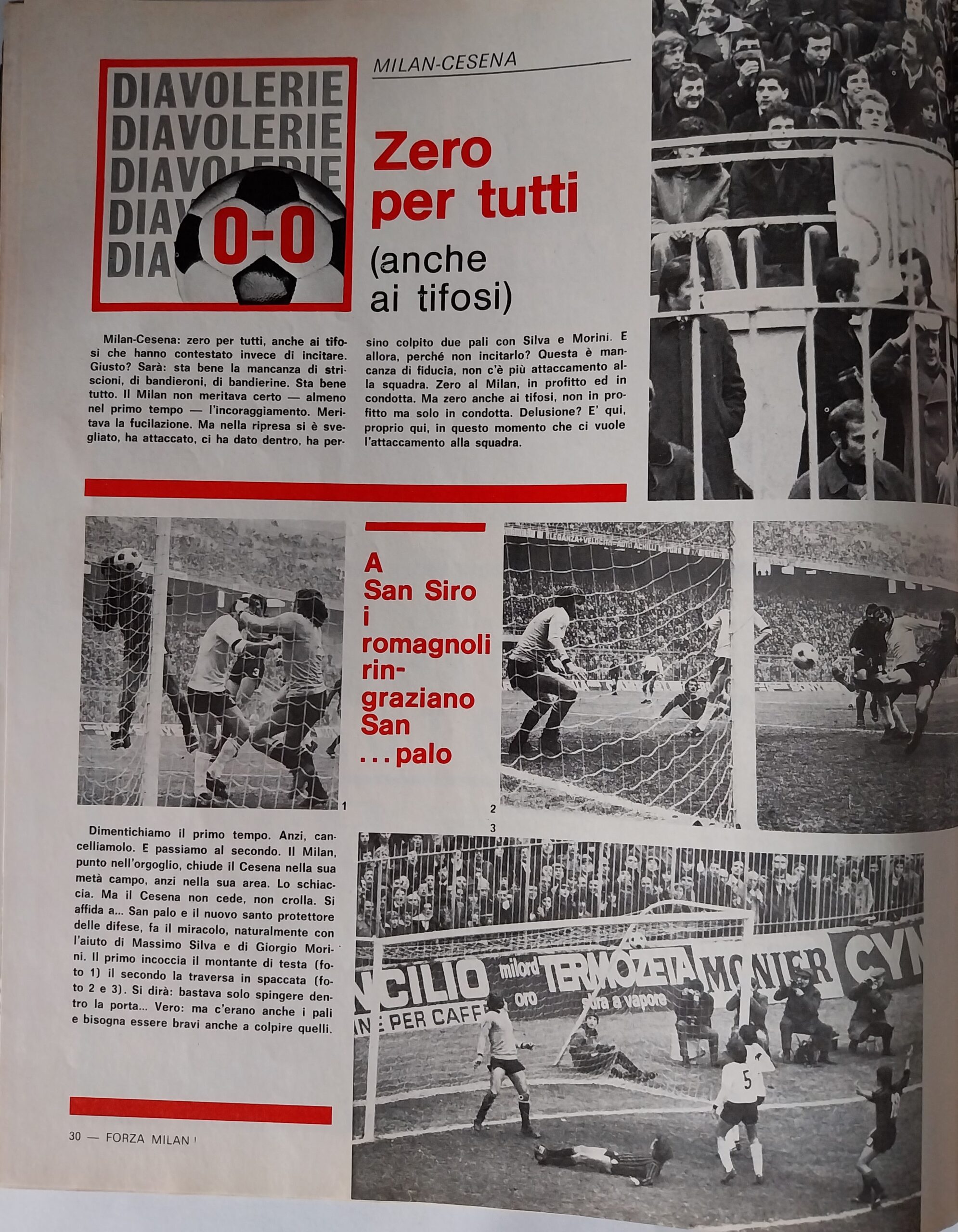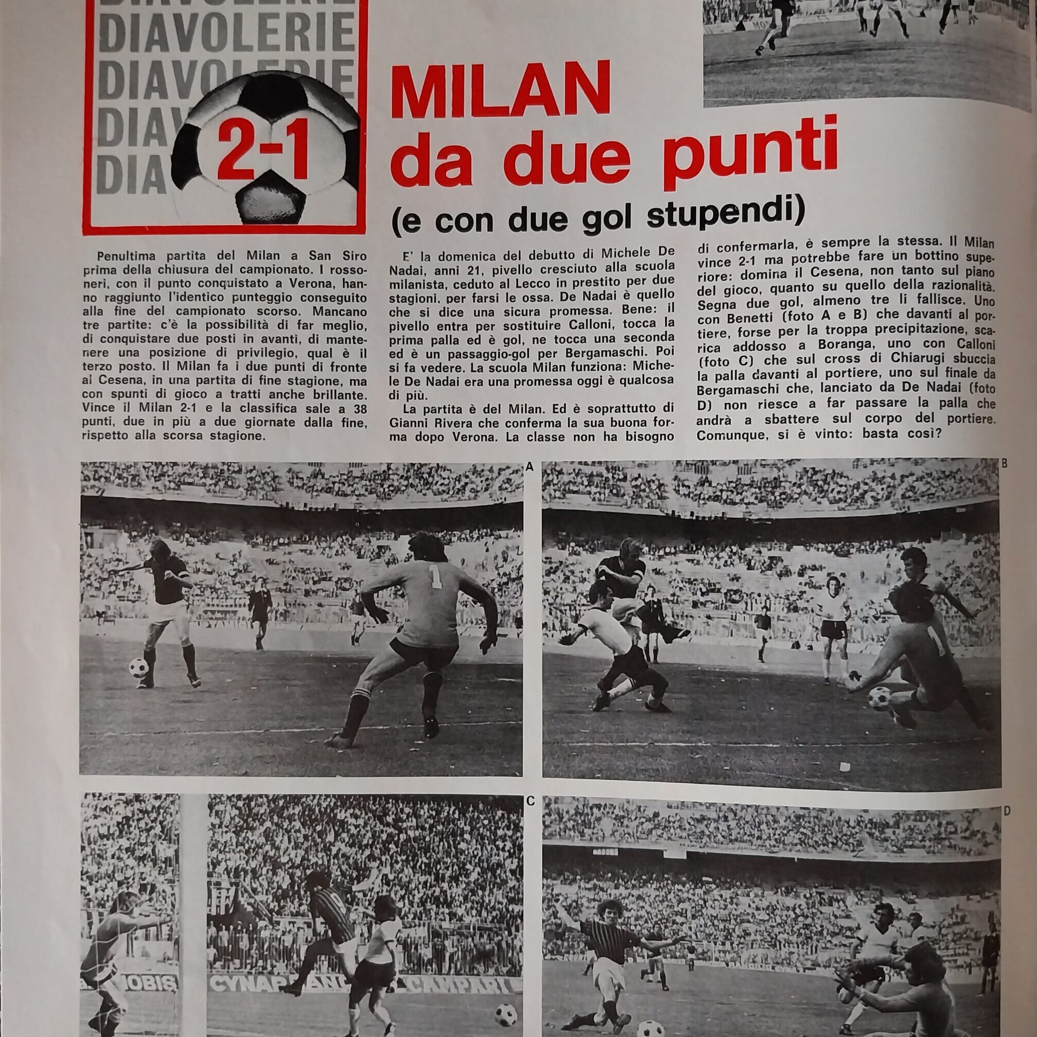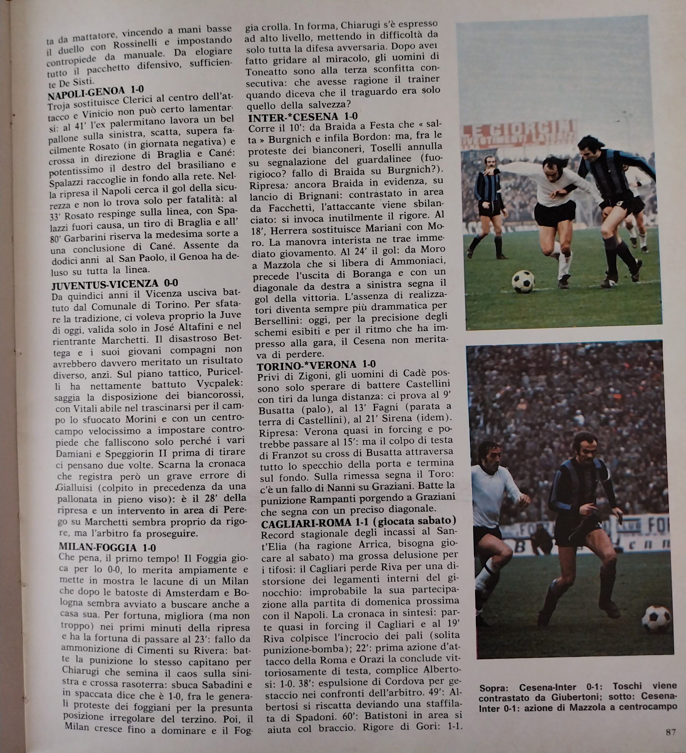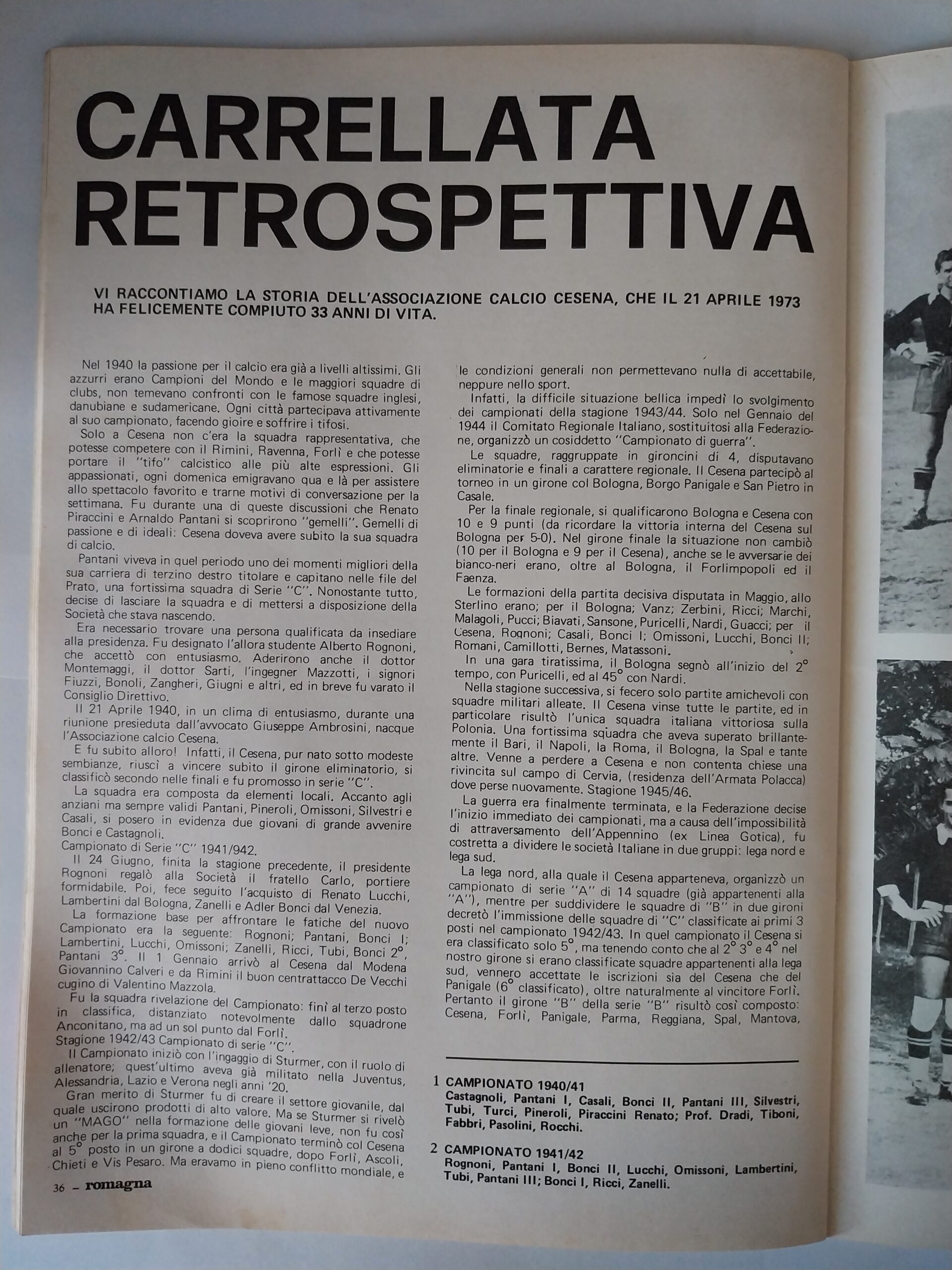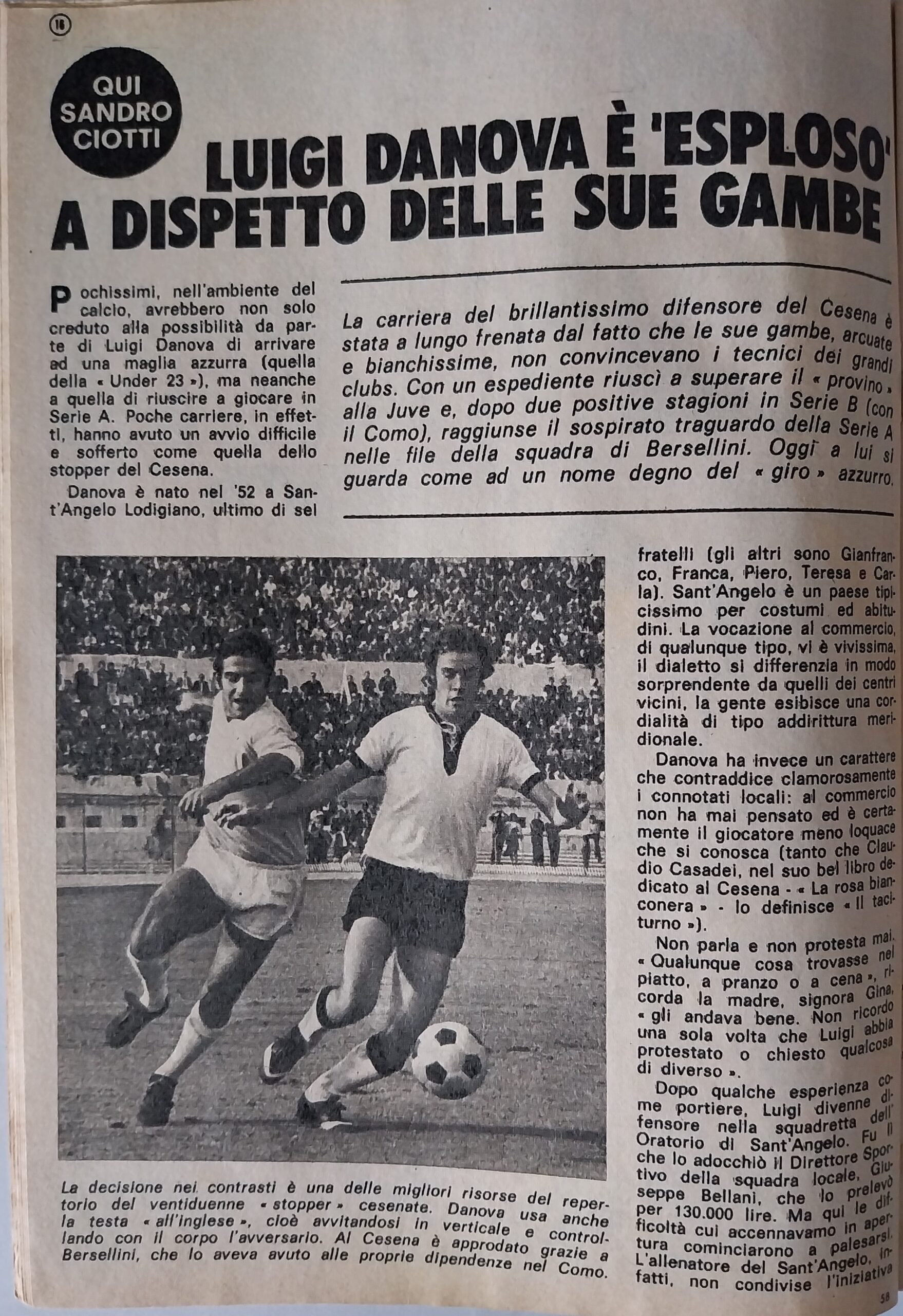Romagna, Dicembre 1973, n. 11, p. 68, articolo Cesena con foto Milan-Cesena 1973-74