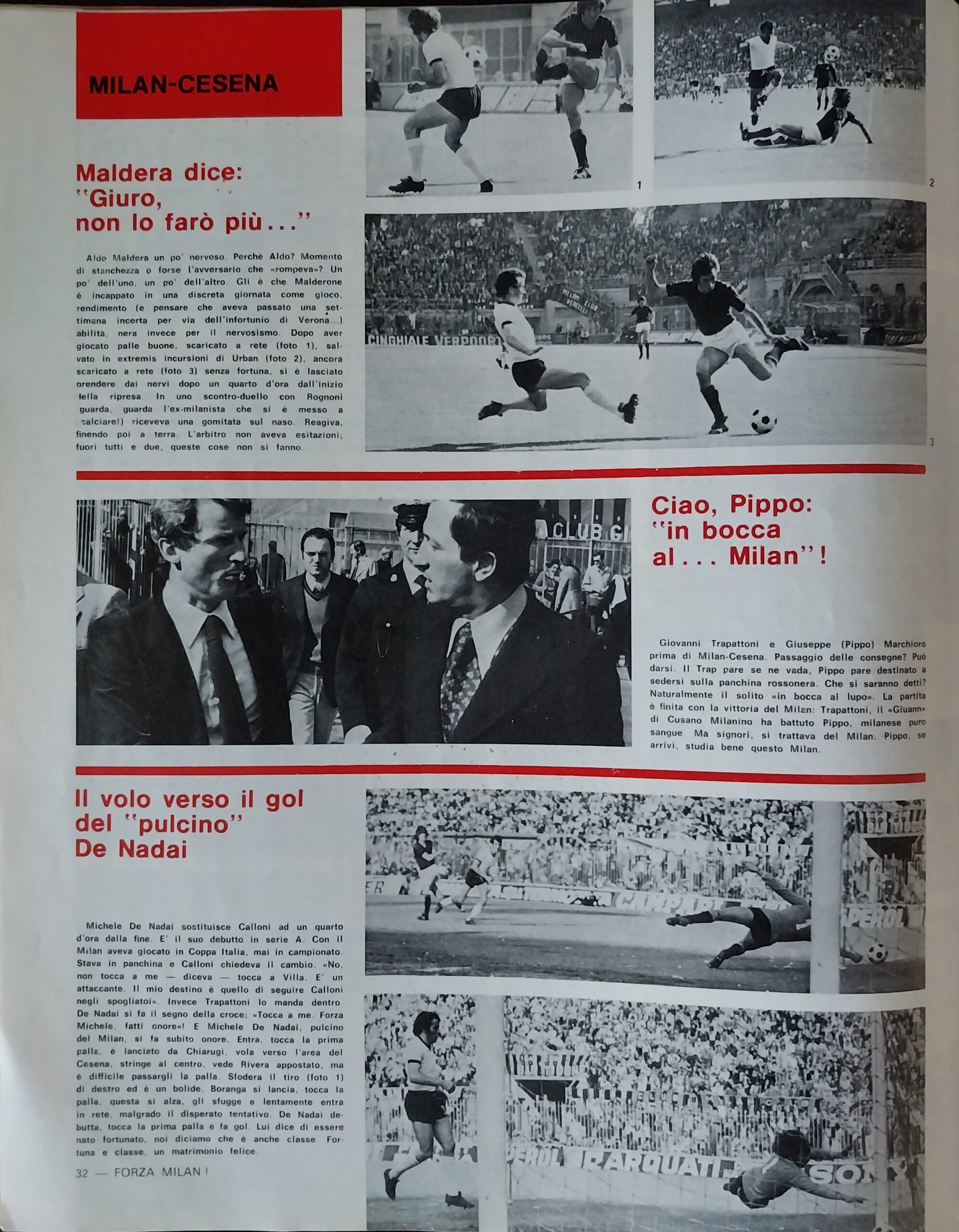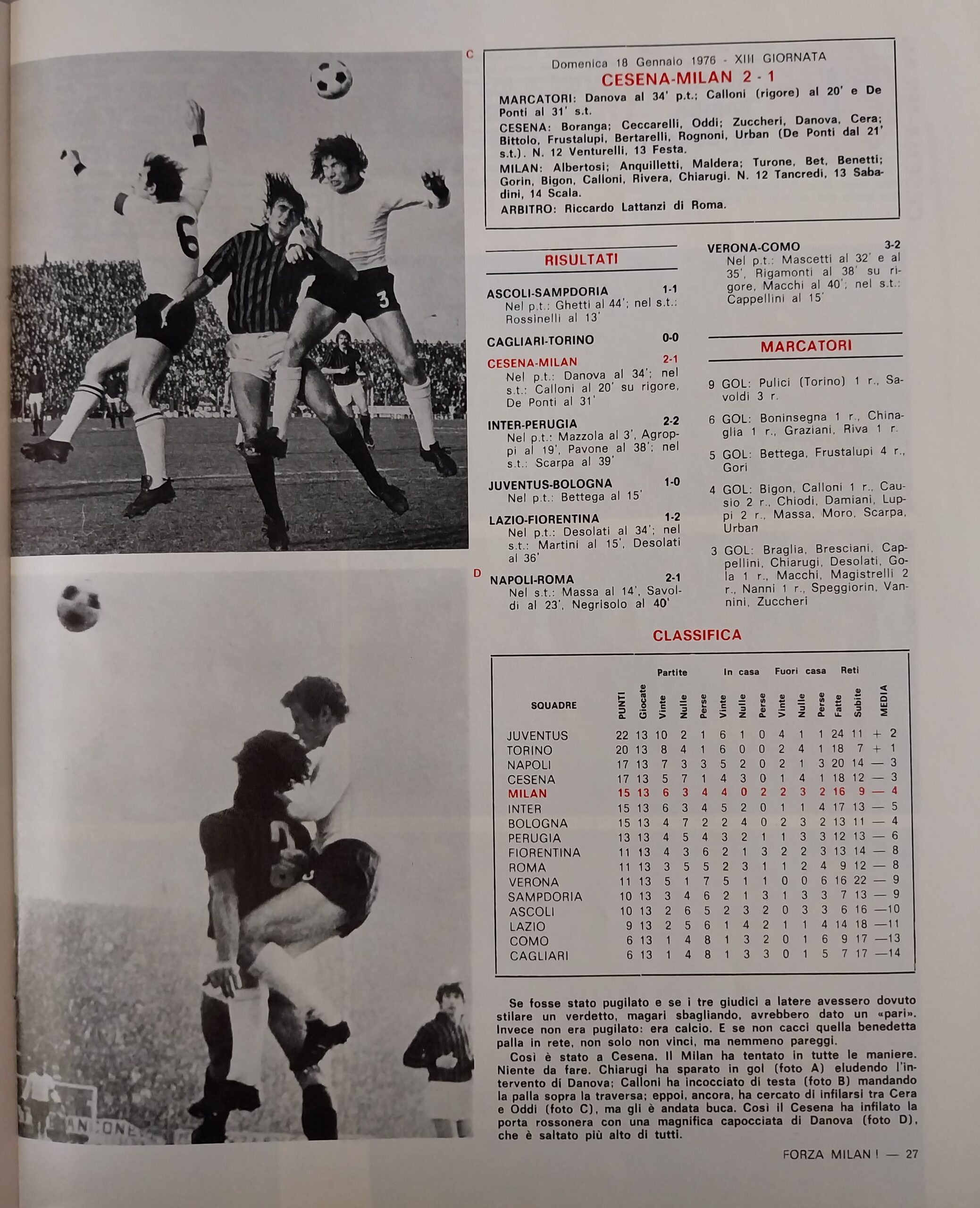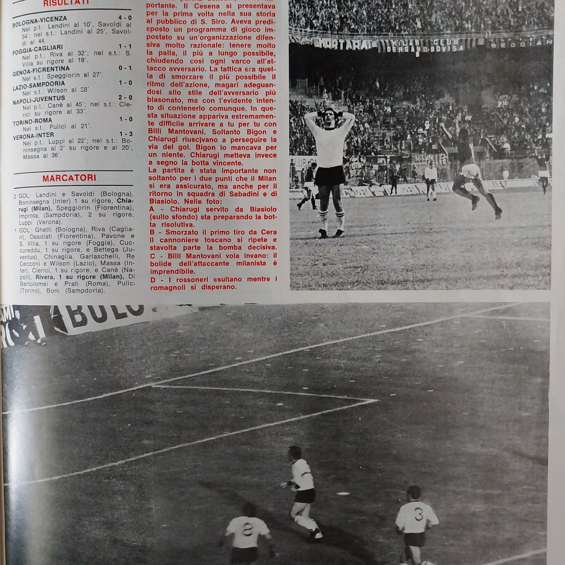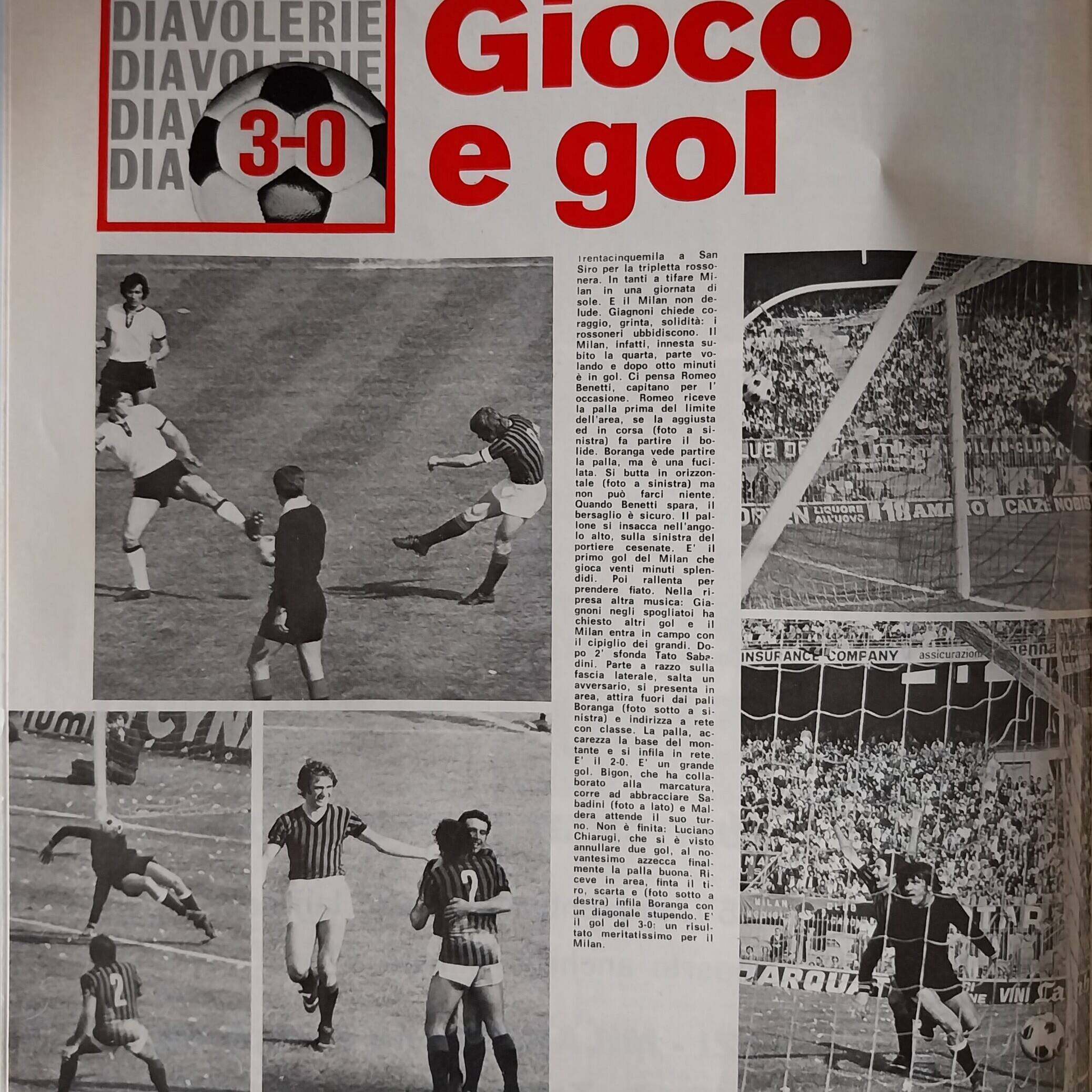 Romagna, Dicembre 1973, n. 11, p. 68, articolo Cesena con foto Milan-Cesena 1973-74