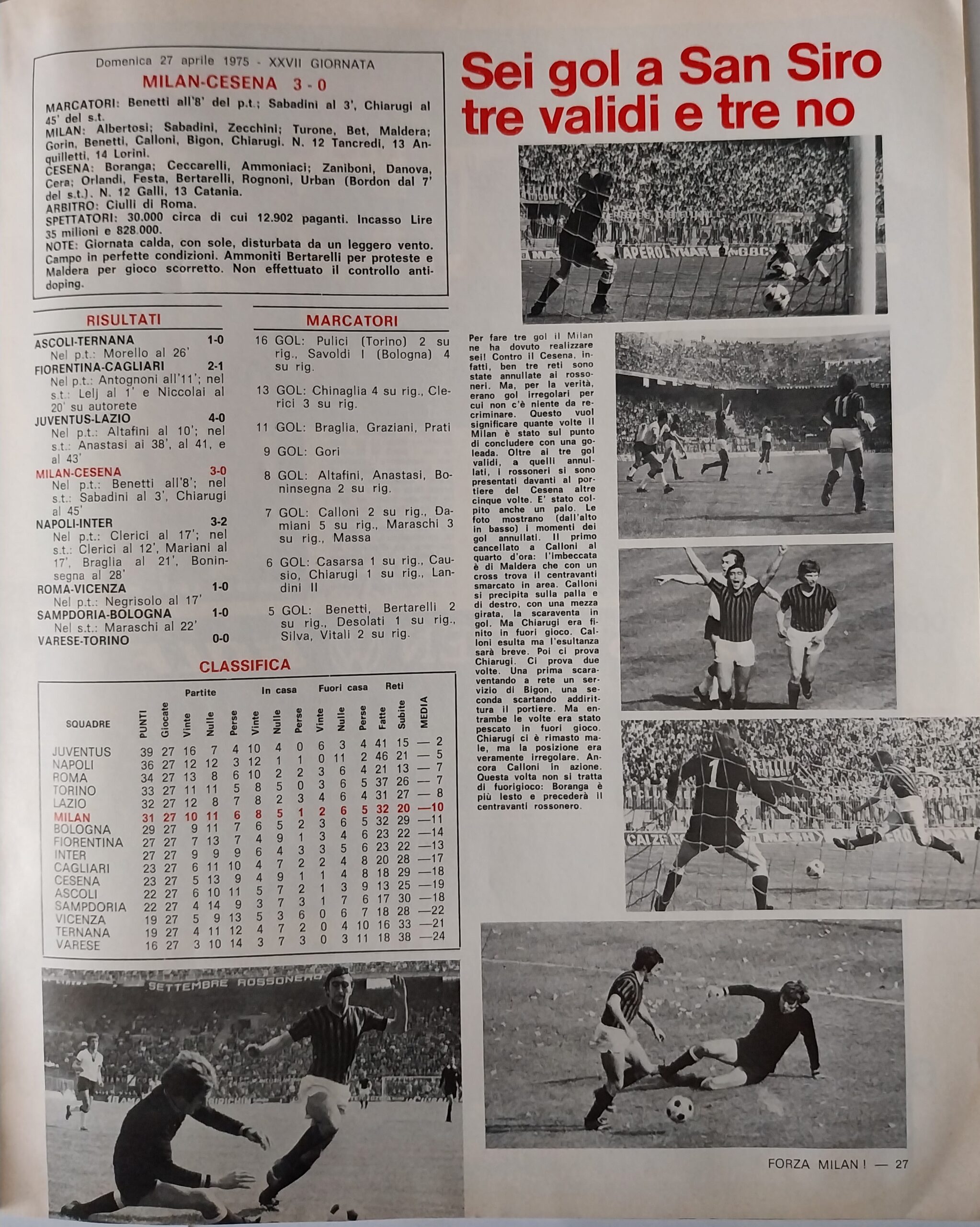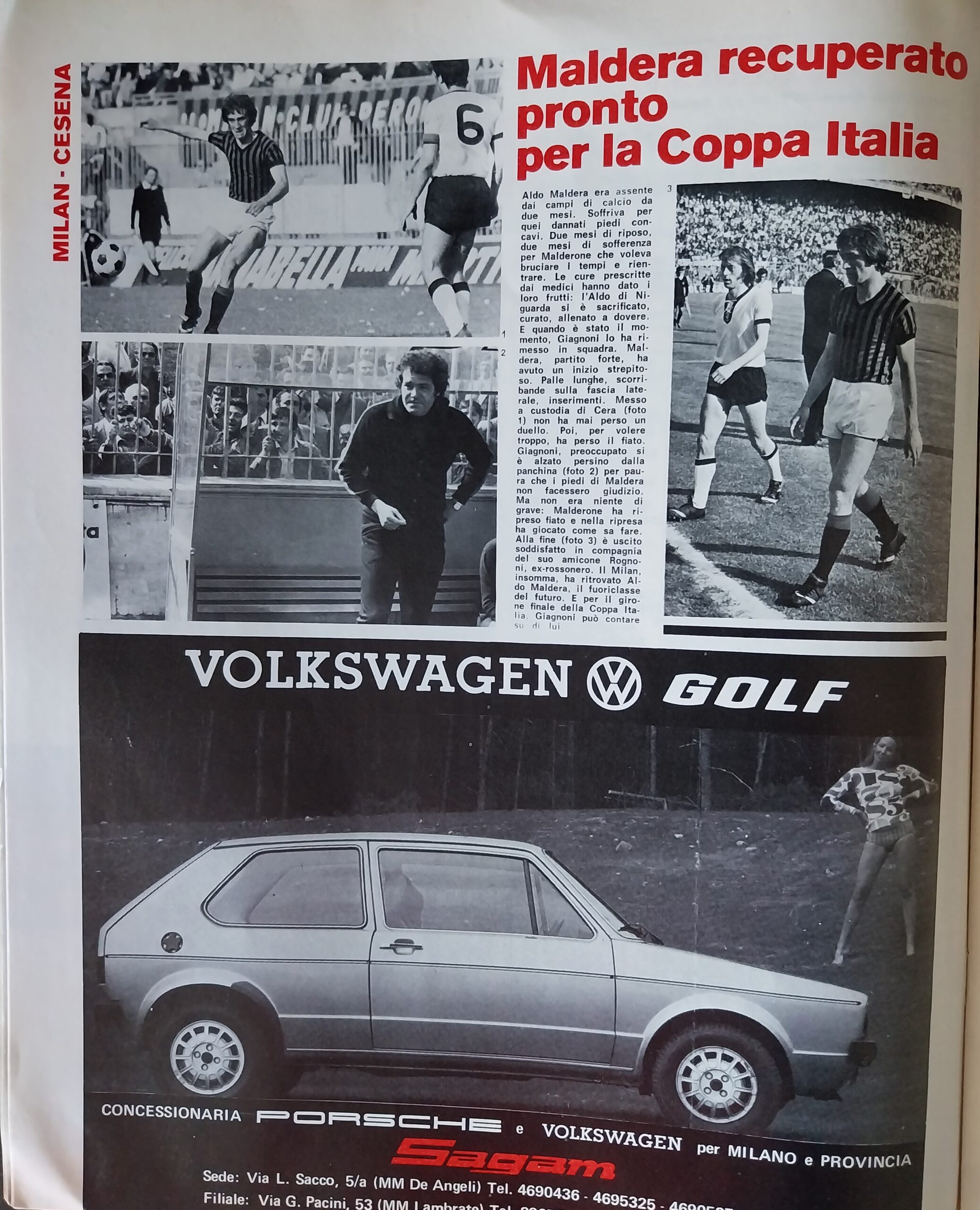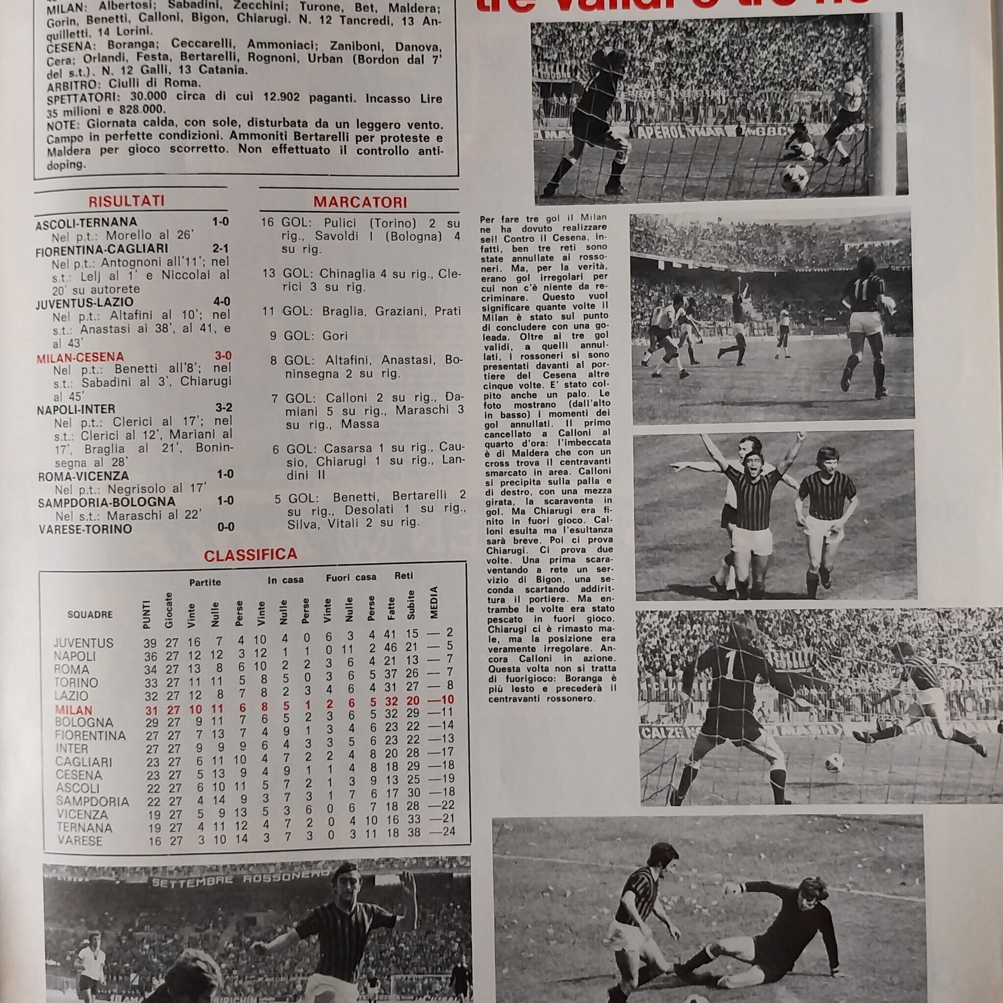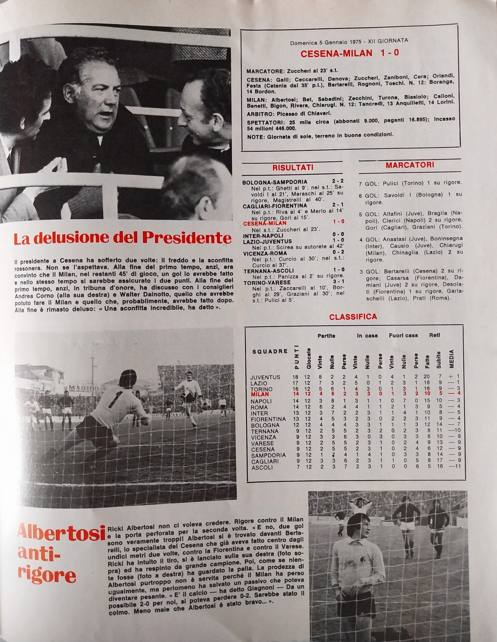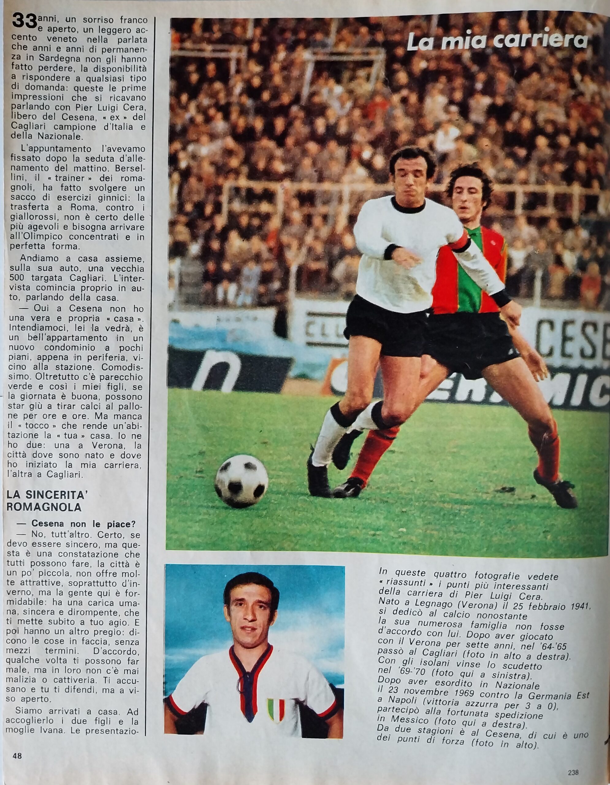 Romagna, Dicembre 1973, n. 11, p. 68, articolo Cesena con foto Milan-Cesena 1973-74