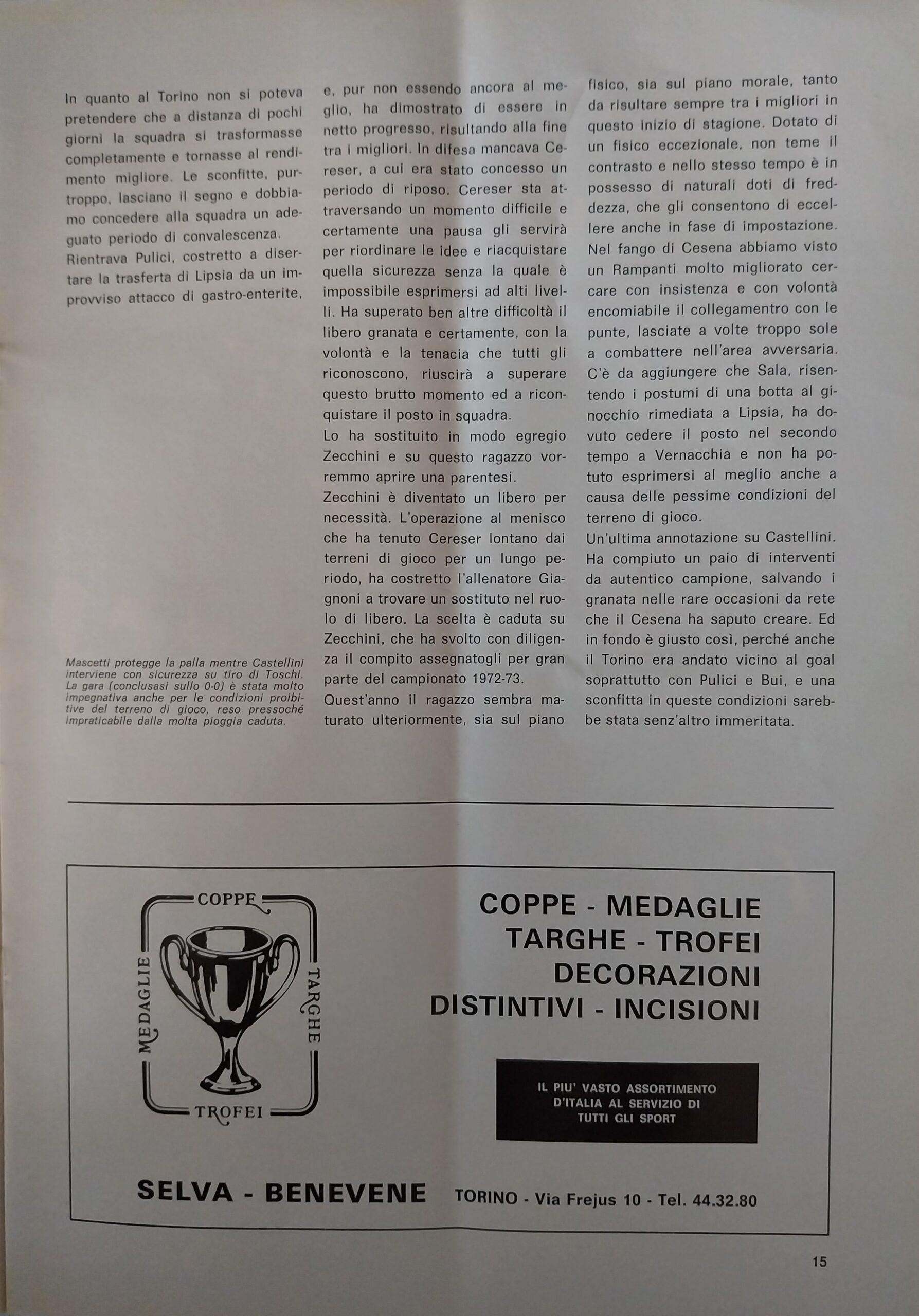 Alè Toro novembre 1973, n. 11, p. 15, Cesena-Torino 1973-74