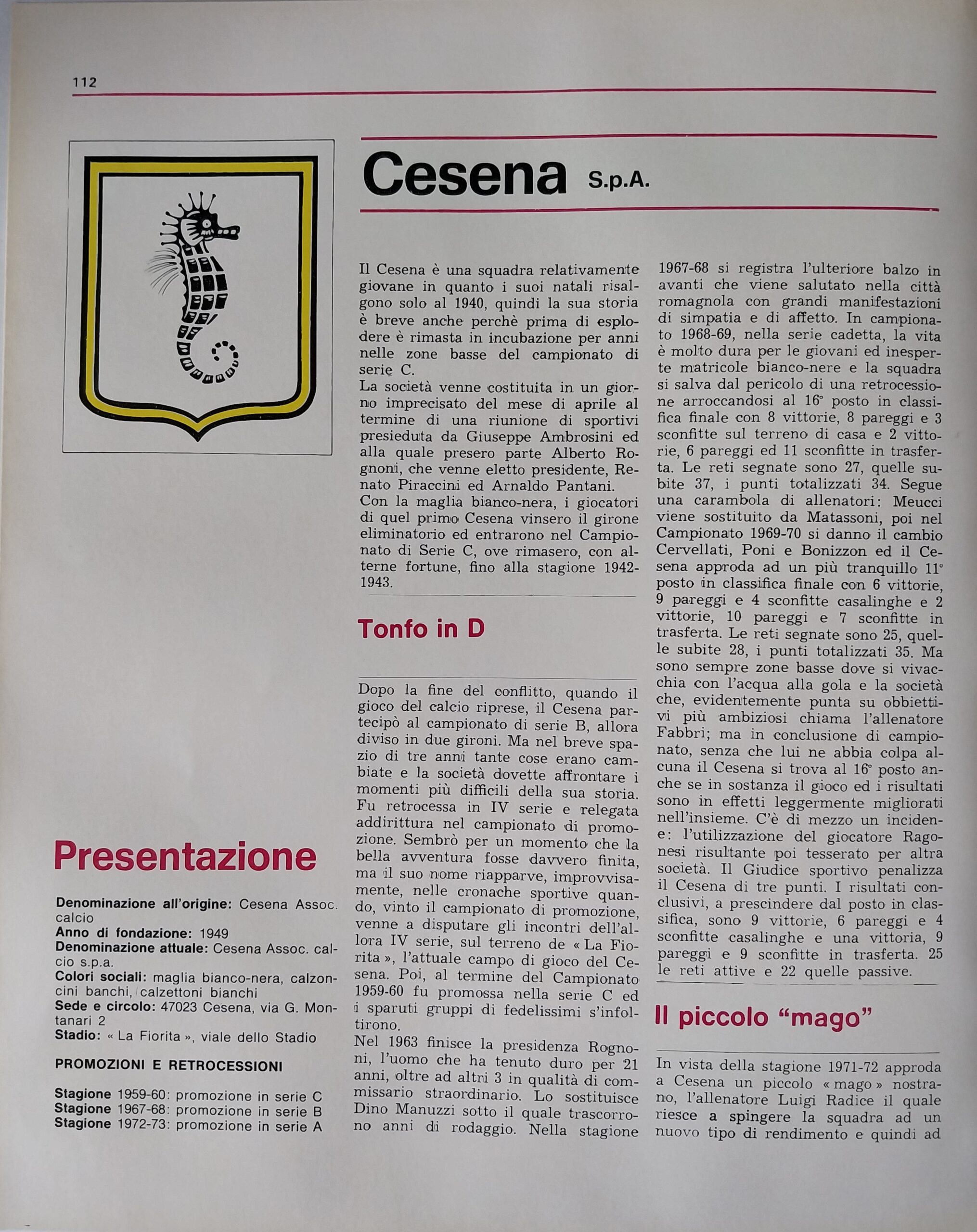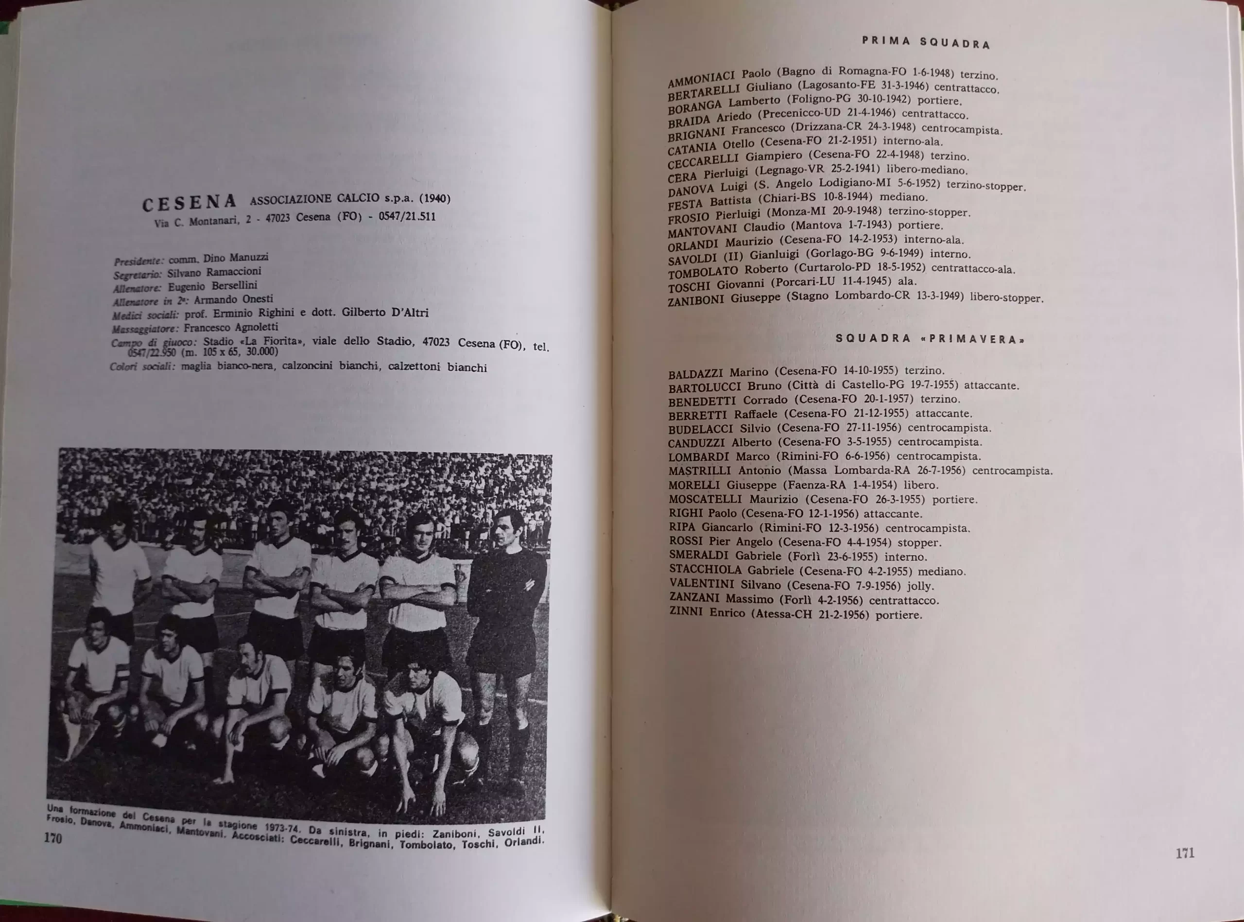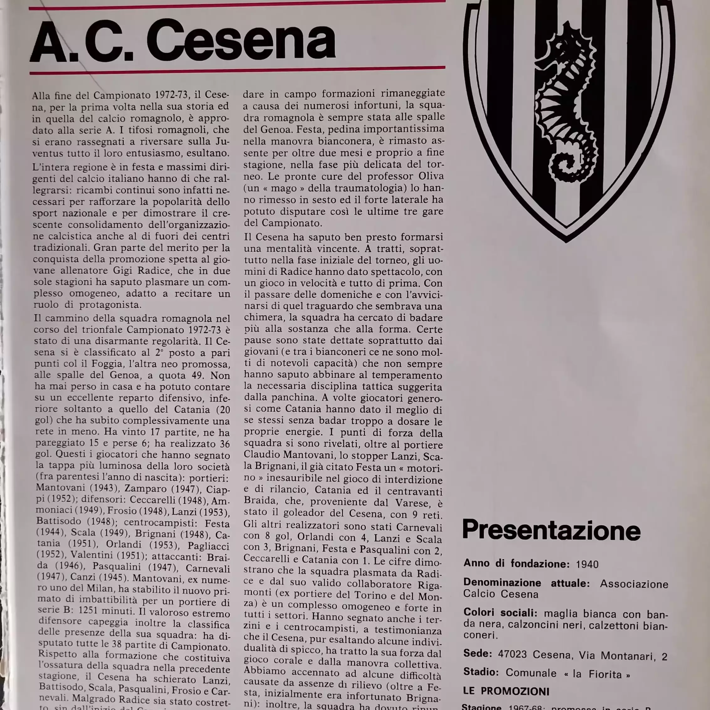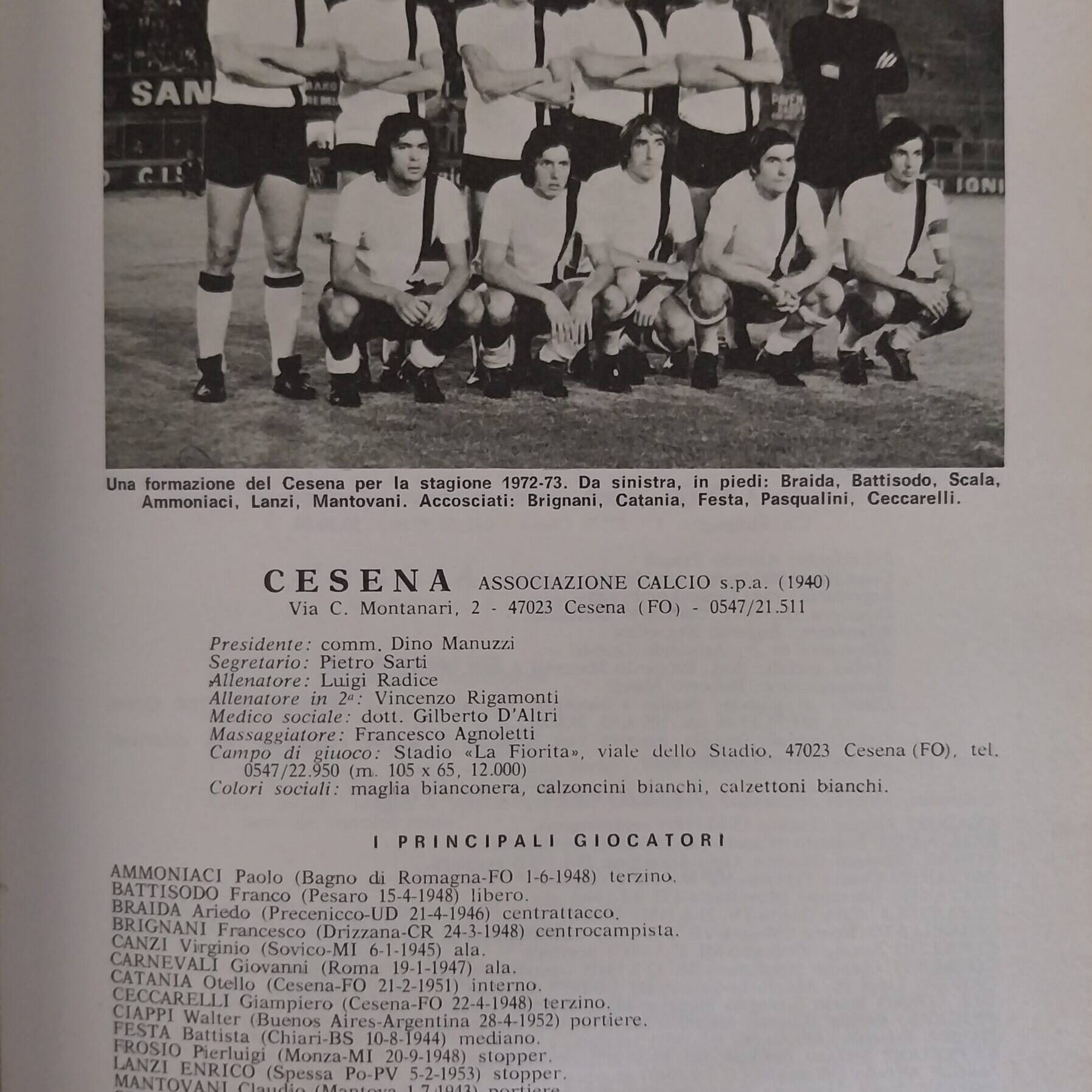 ABC Calcio 1973, p. 302, presentazione Cesena 1972-73