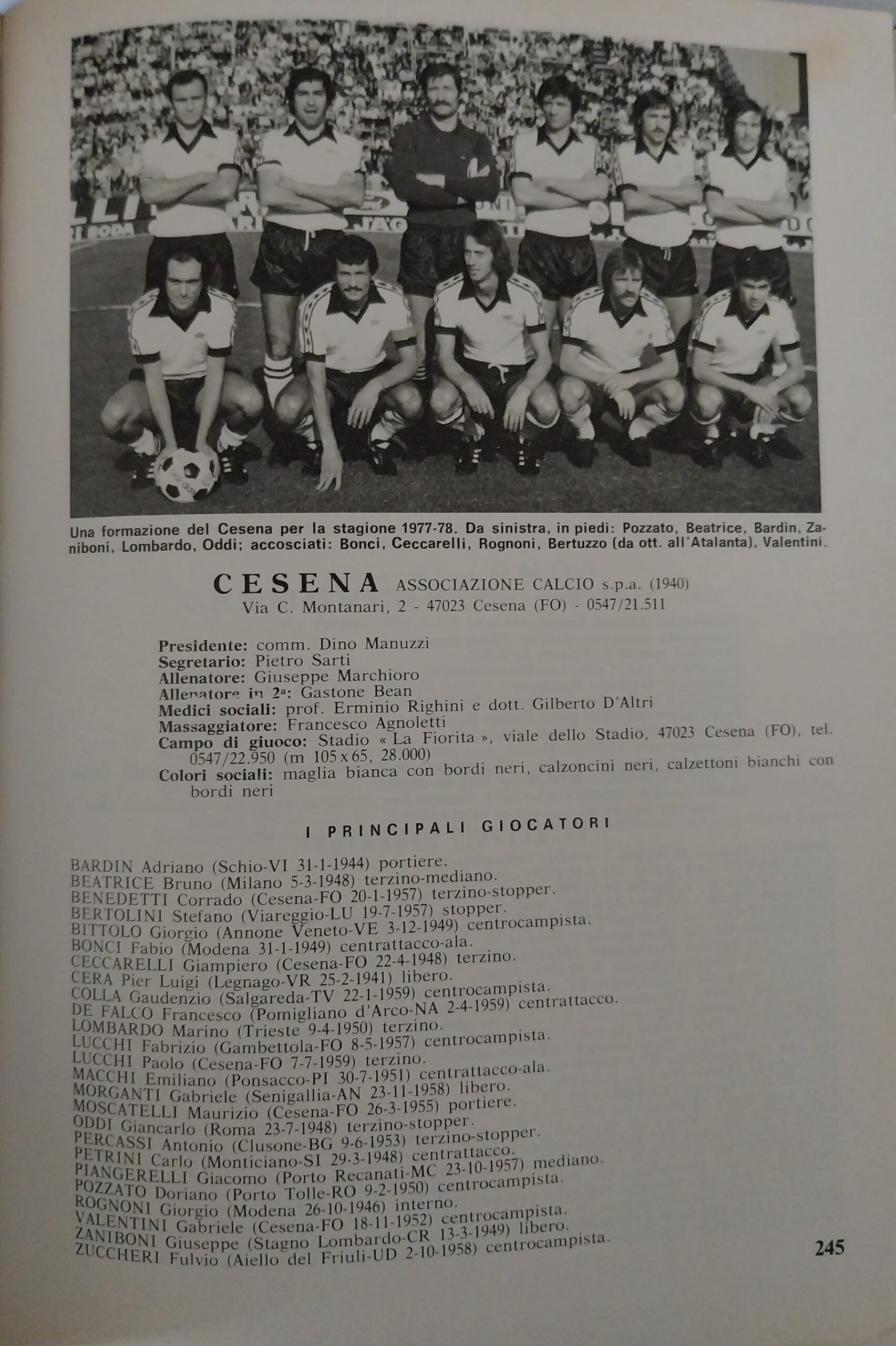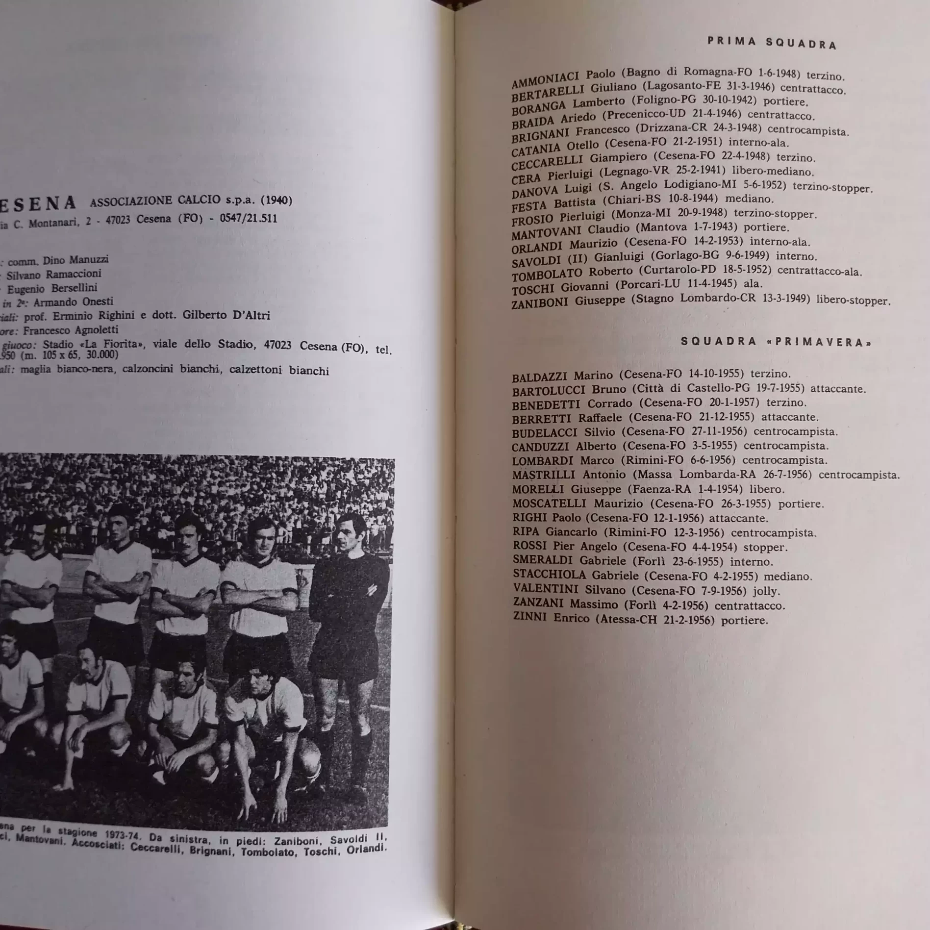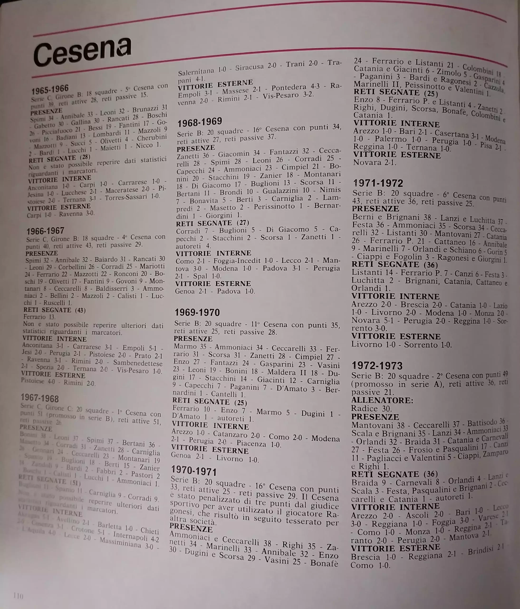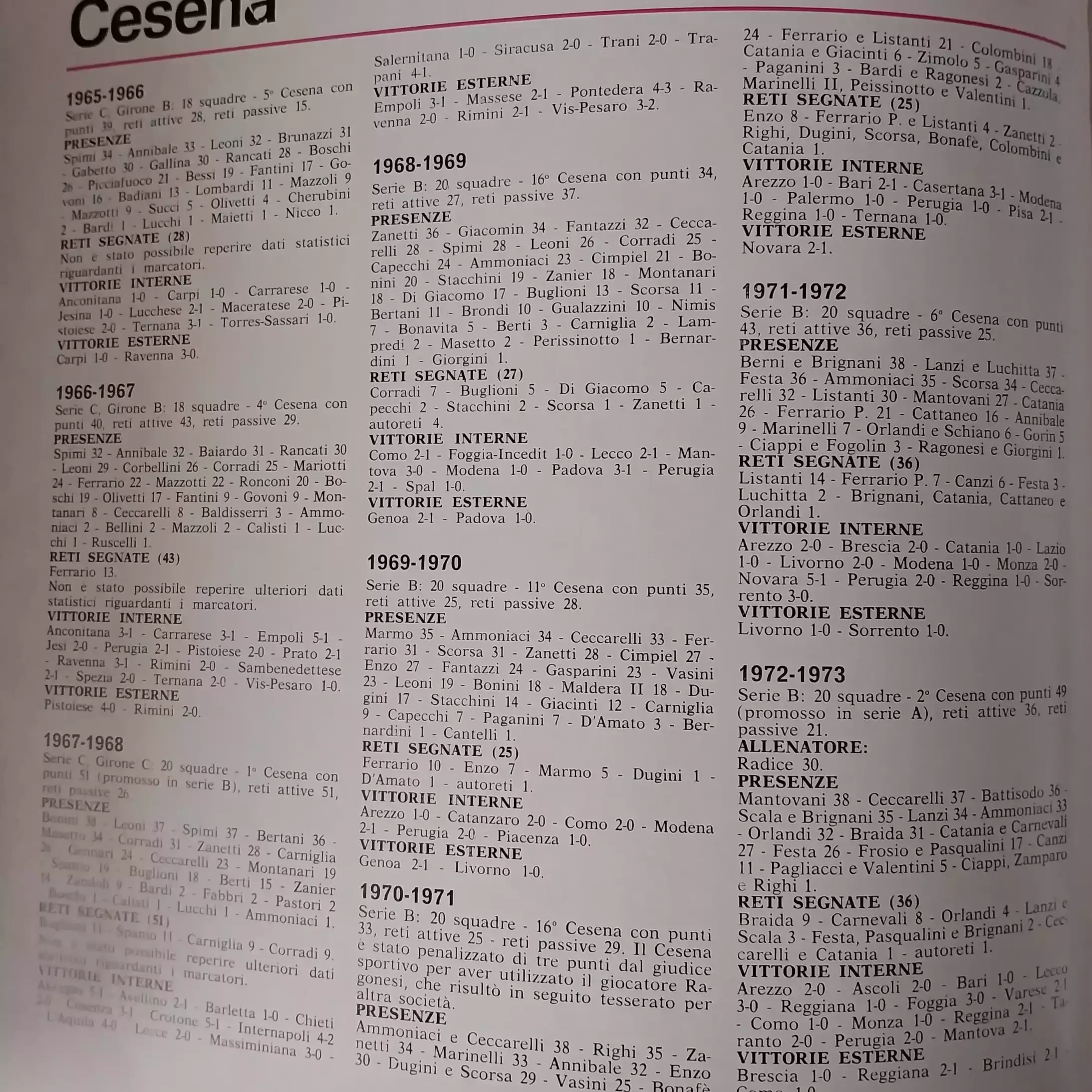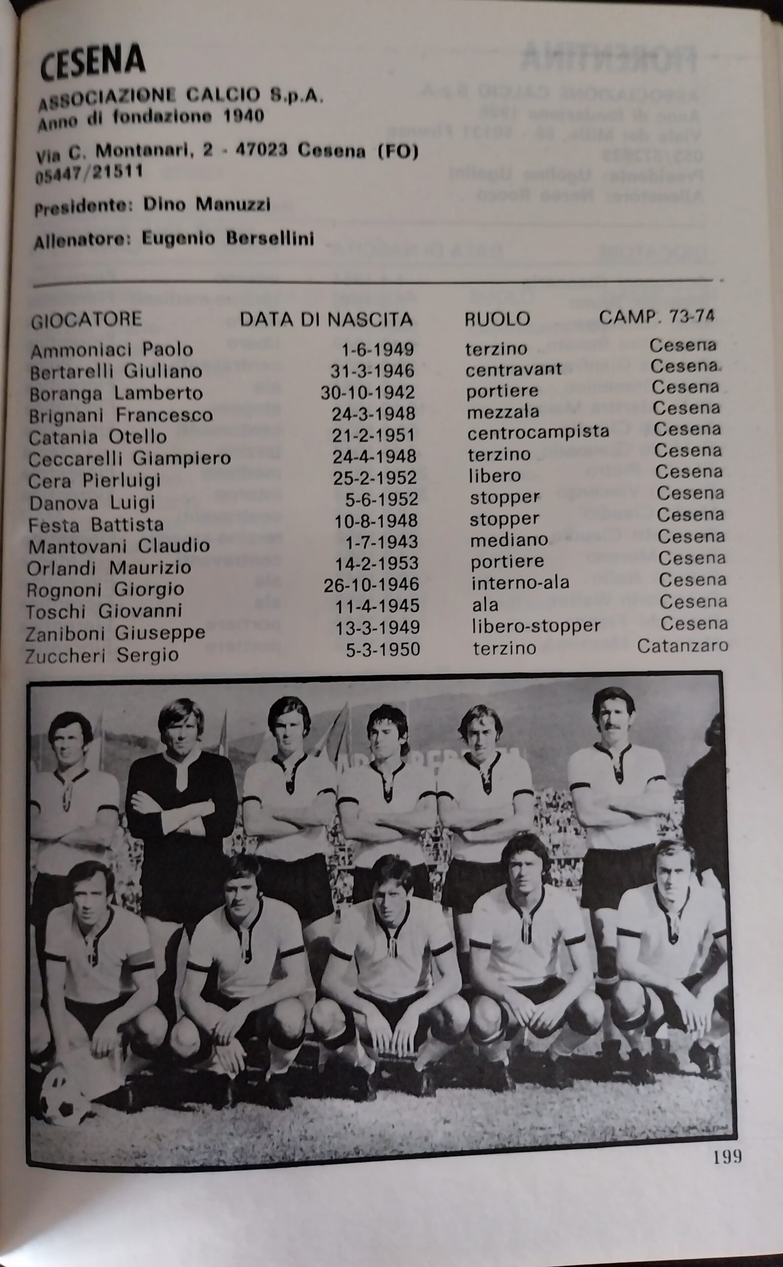 ABC Calcio 1973, p. 302, presentazione Cesena 1972-73
