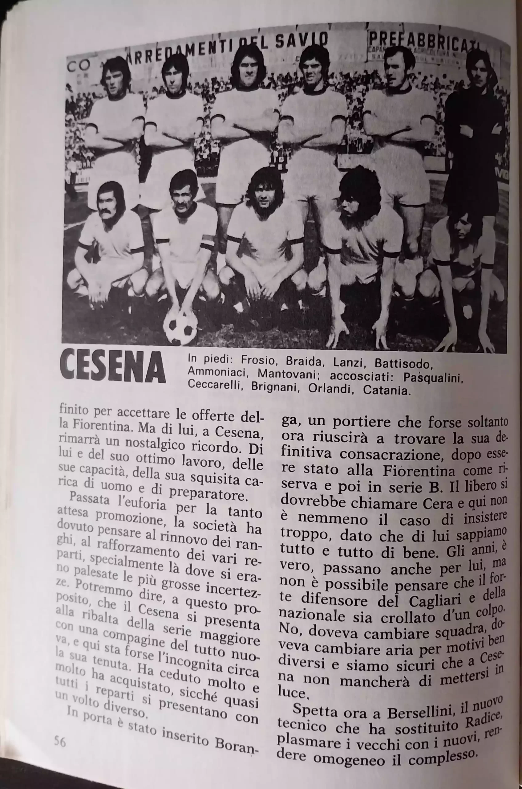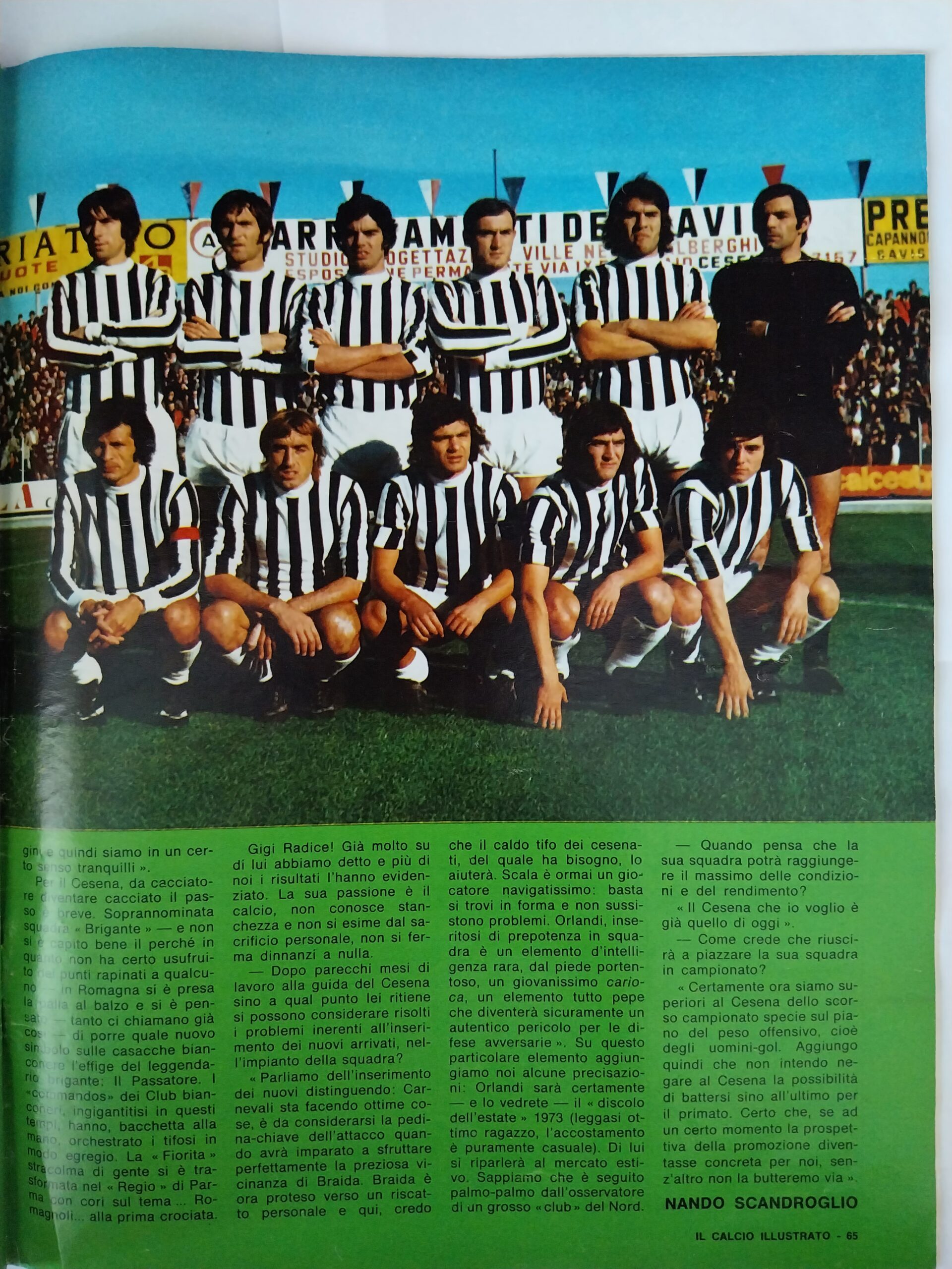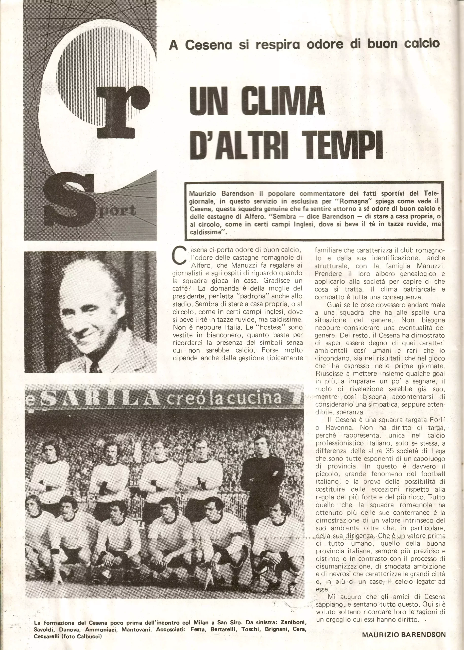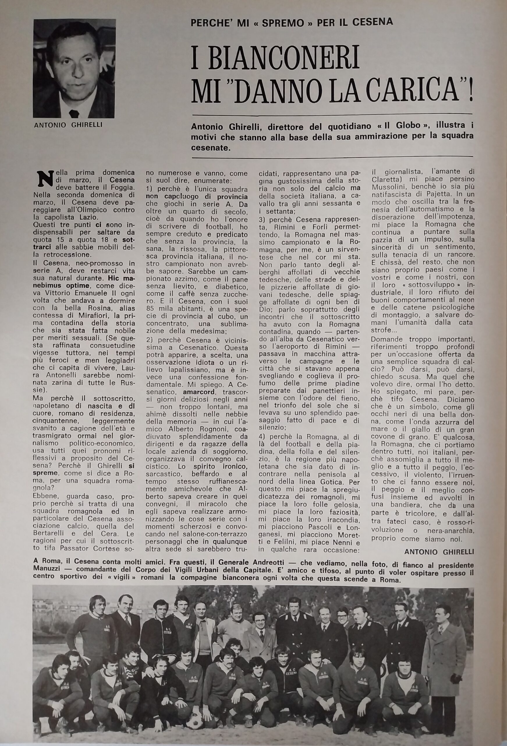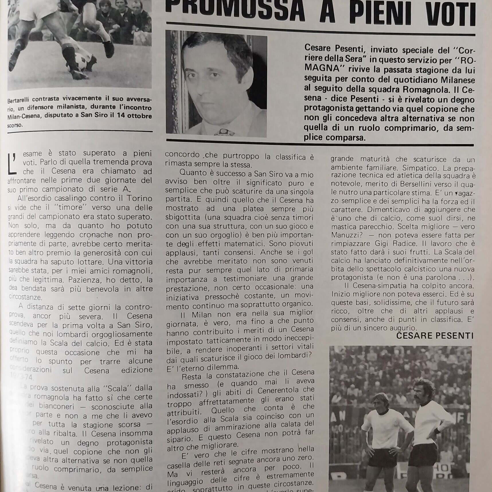 Calcio 74 Gianni Brera, Ottobre 1973, presentazione Cesena 1973-74