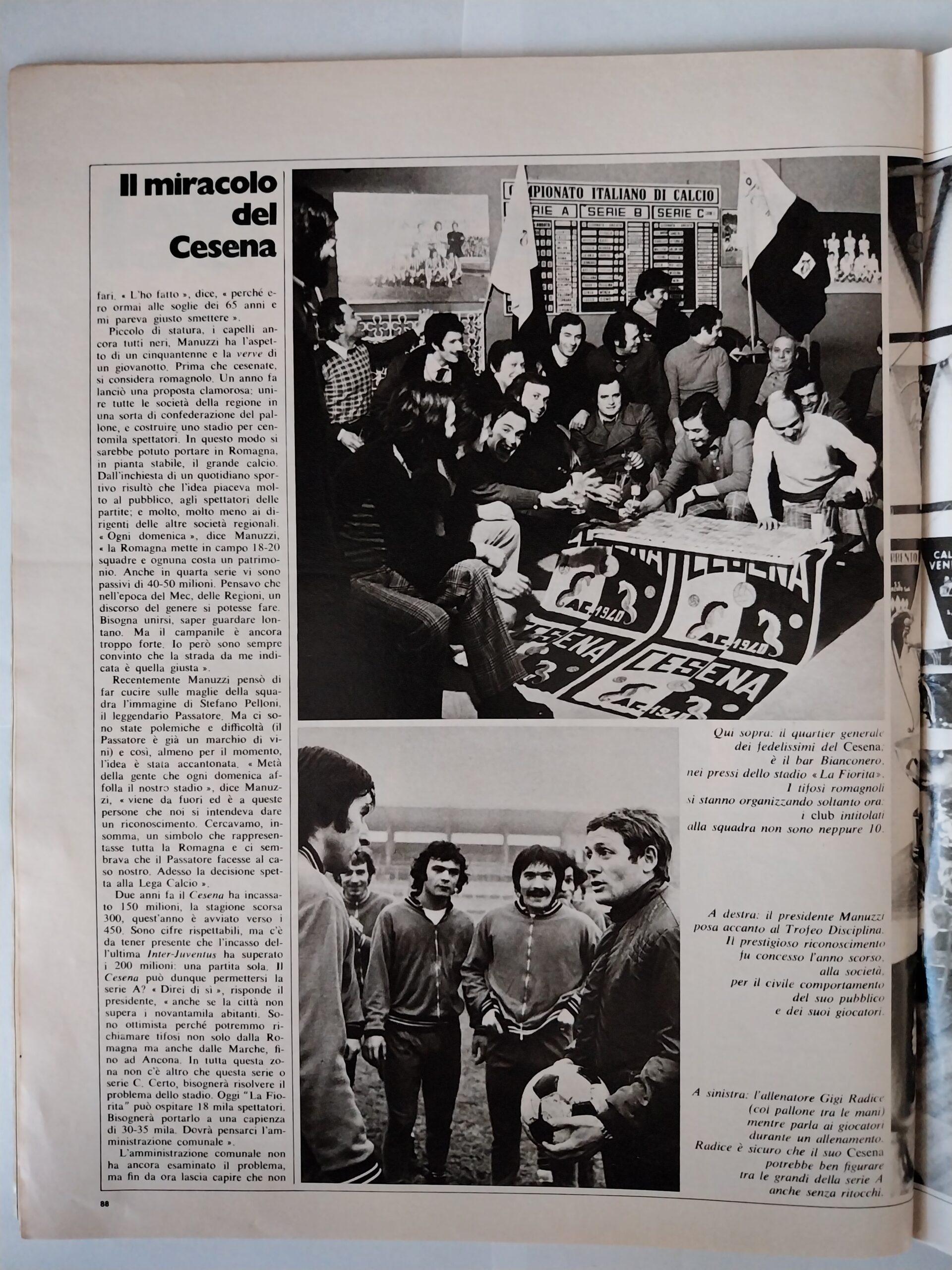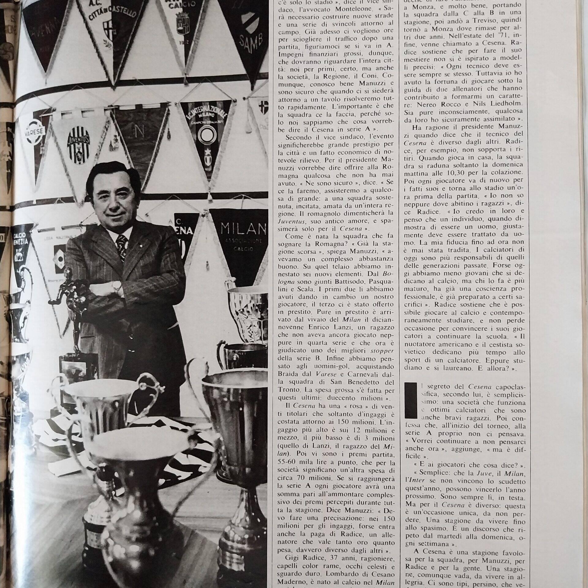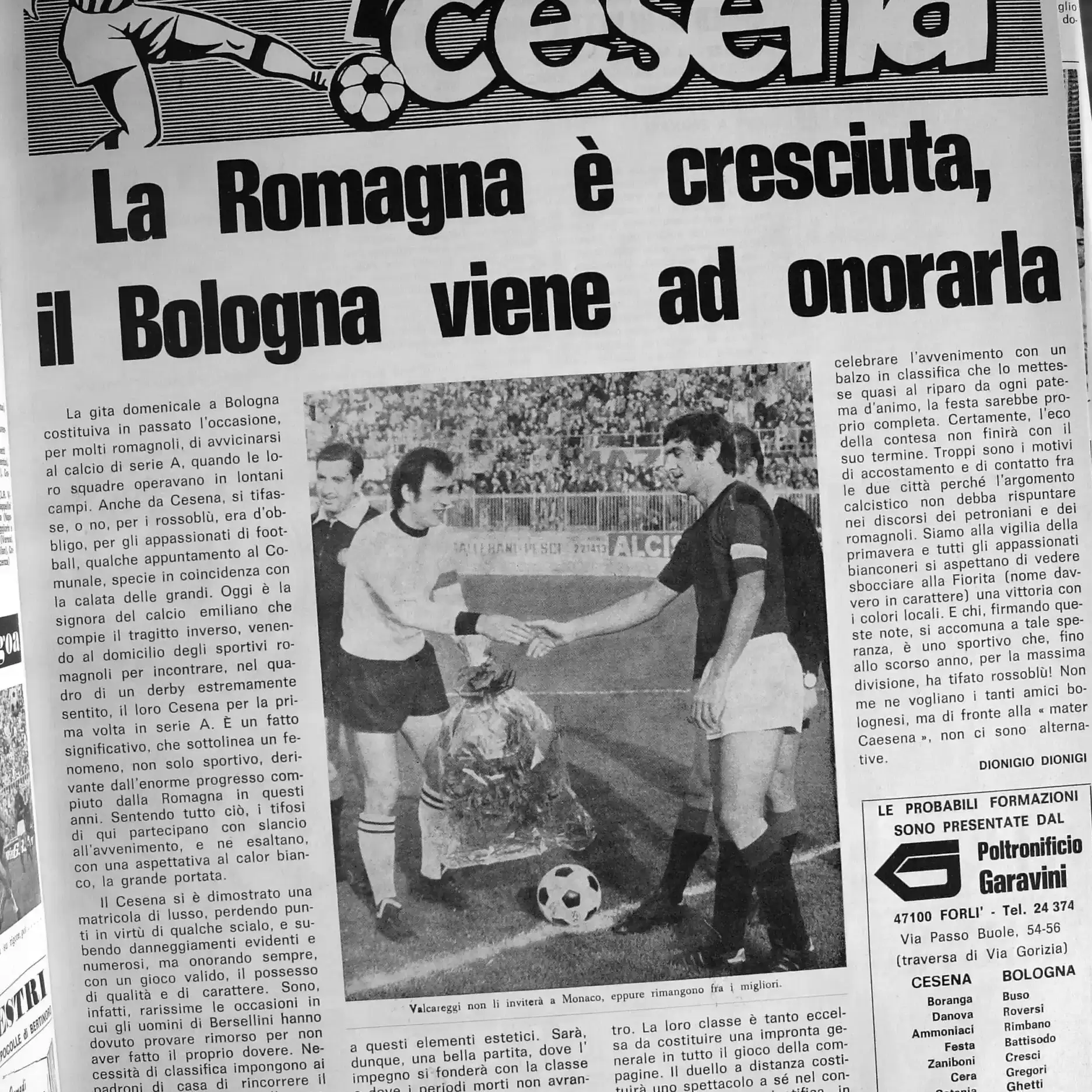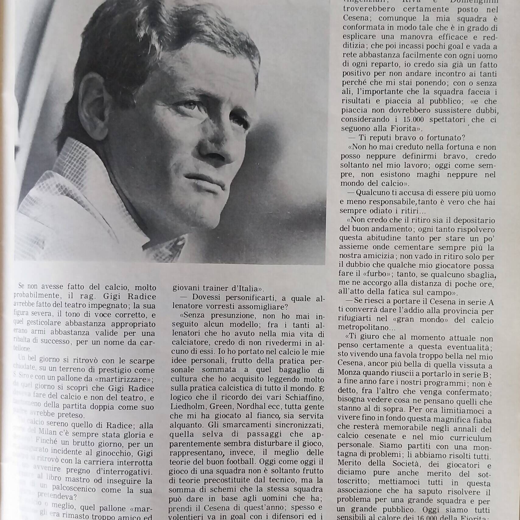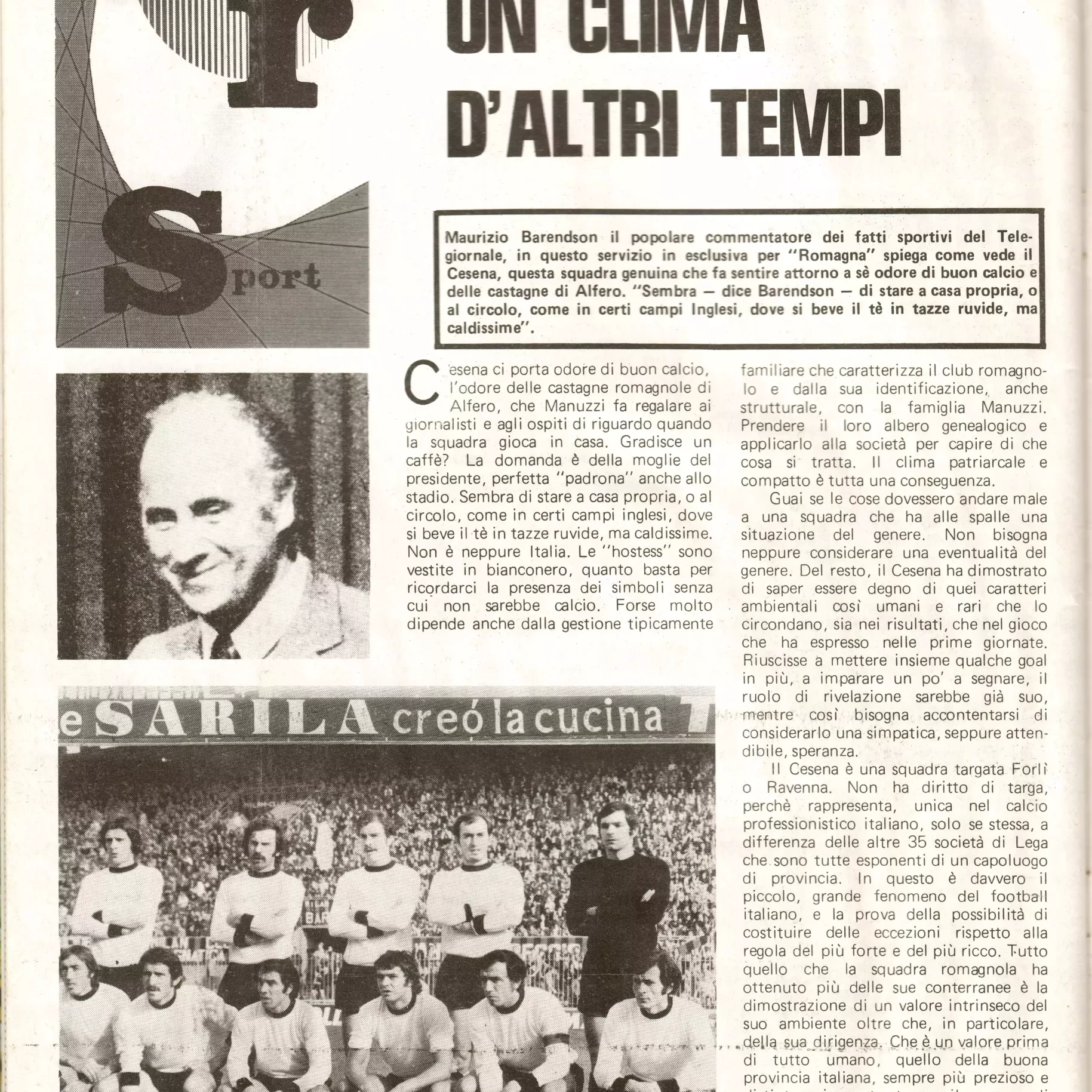 Calcio 74 Gianni Brera, Ottobre 1973, presentazione Cesena 1973-74
