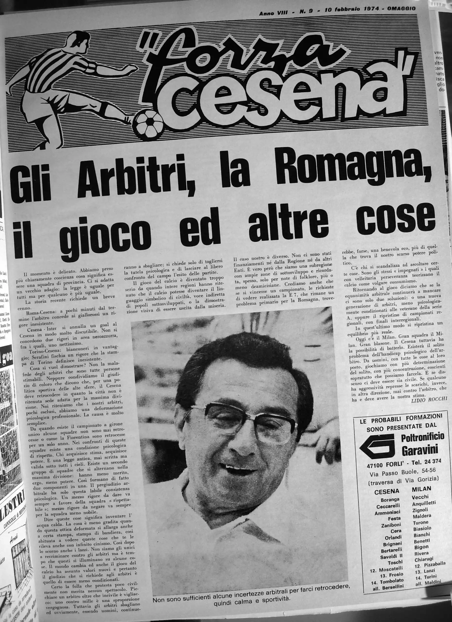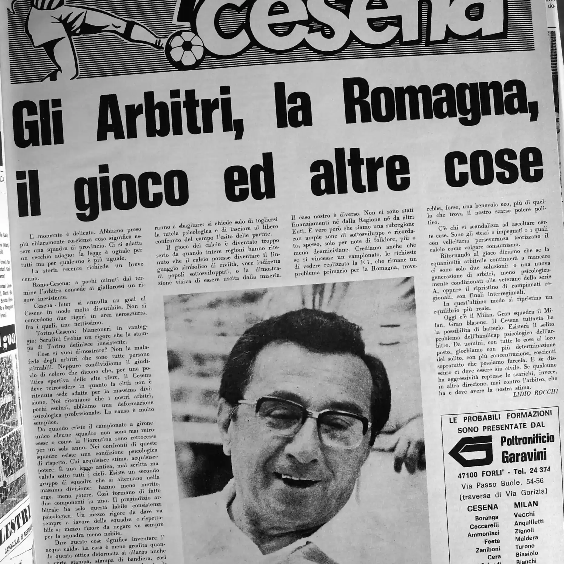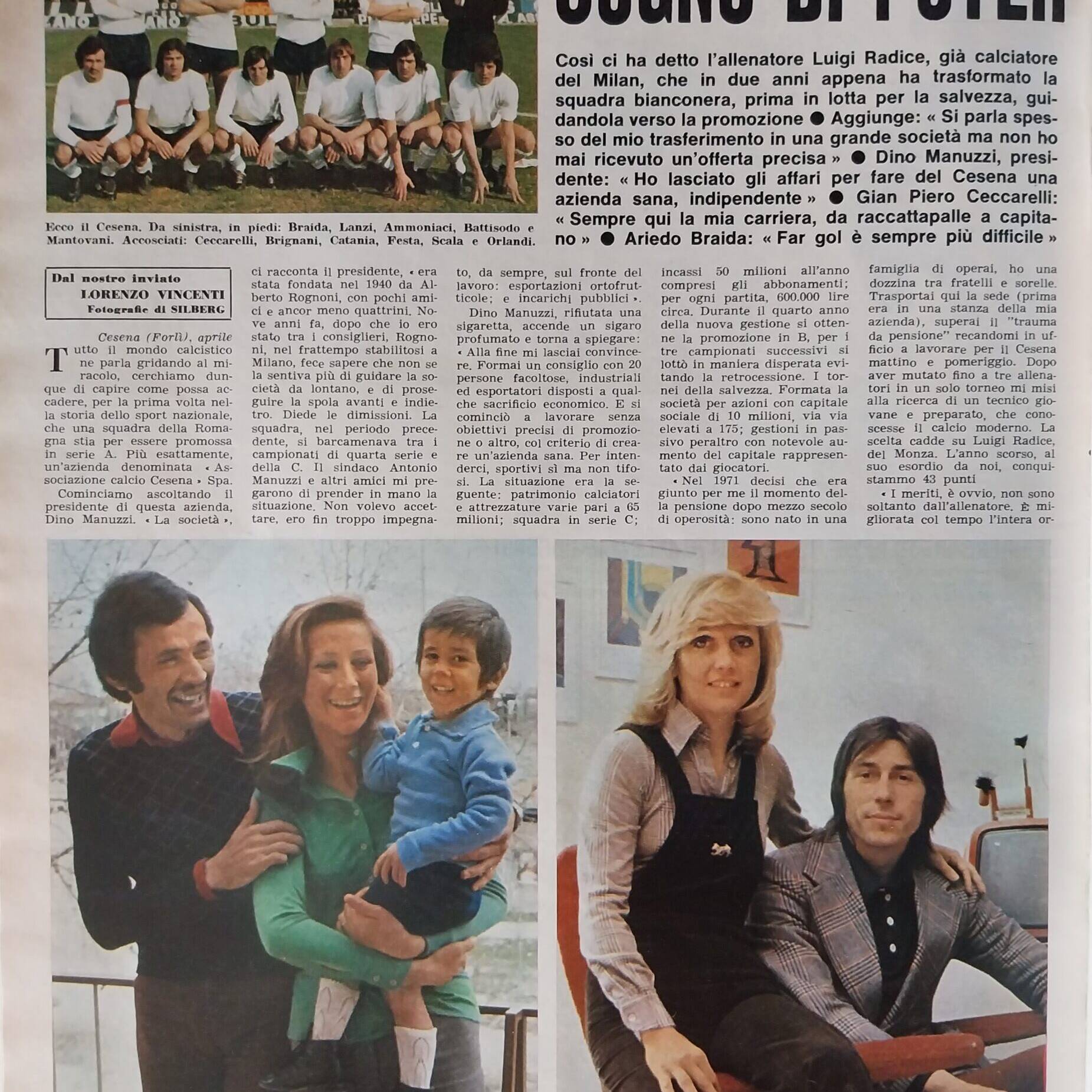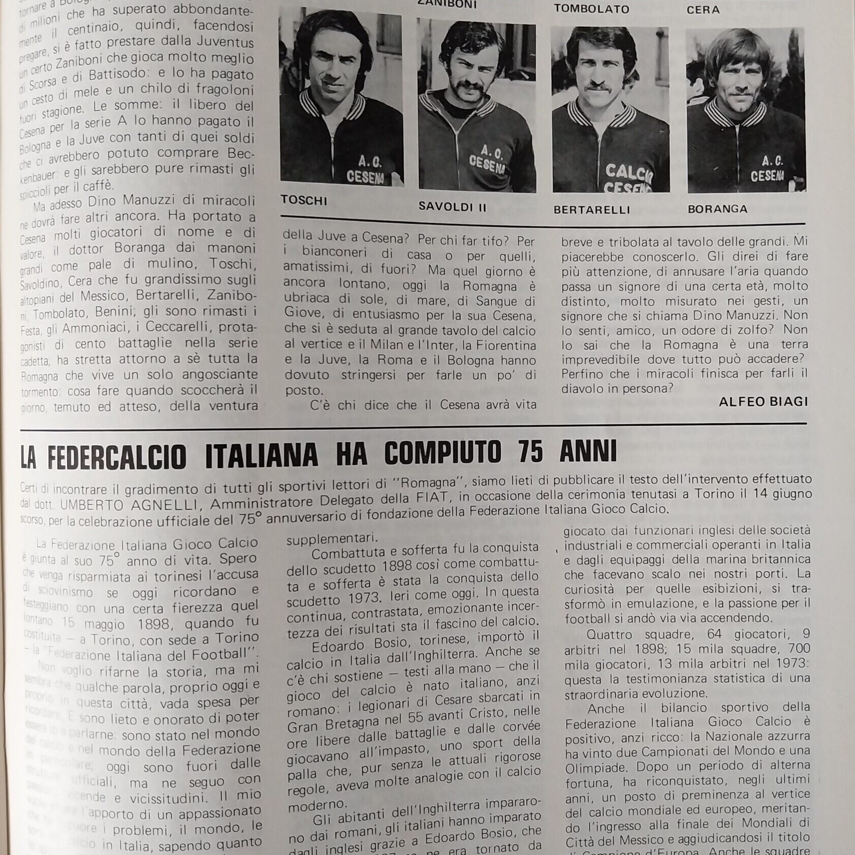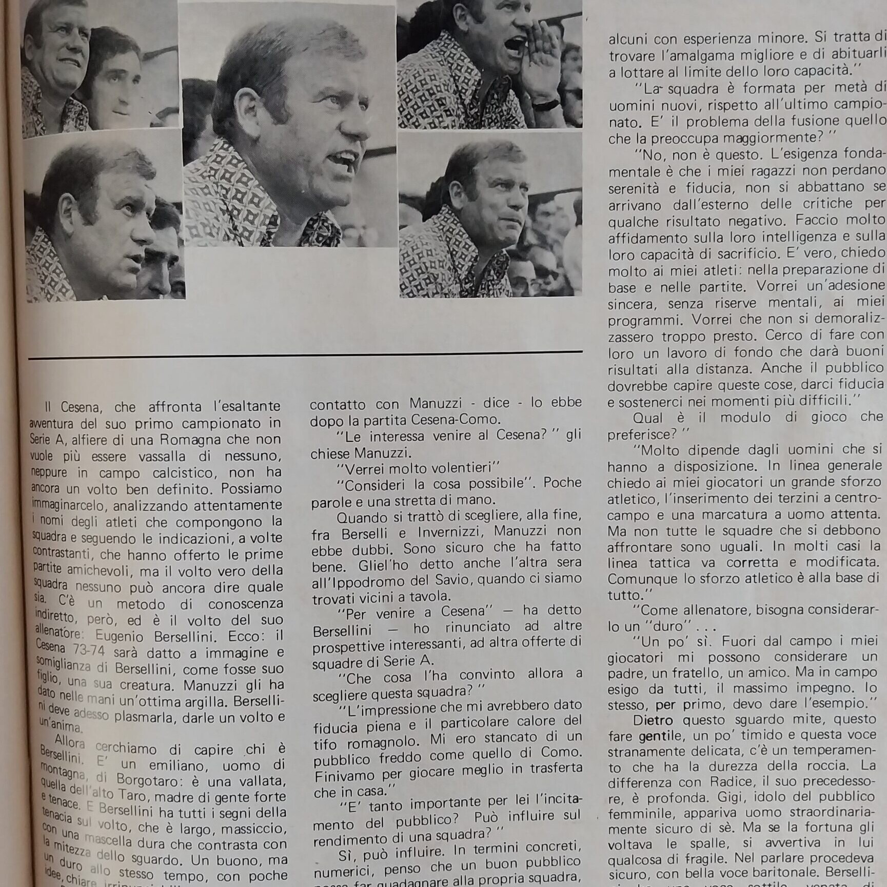 Calcio 74 Gianni Brera, Ottobre 1973, presentazione Cesena 1973-74
