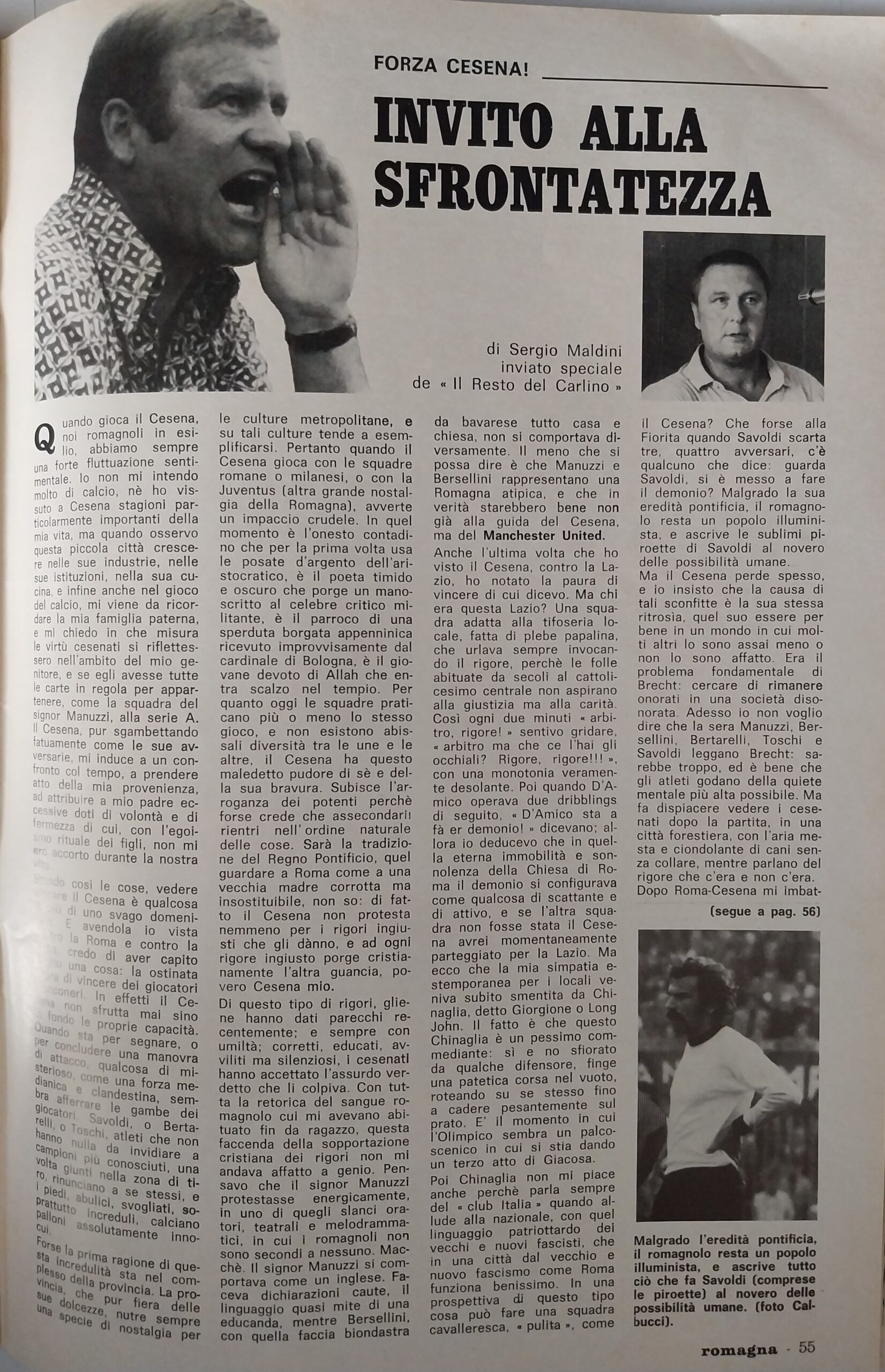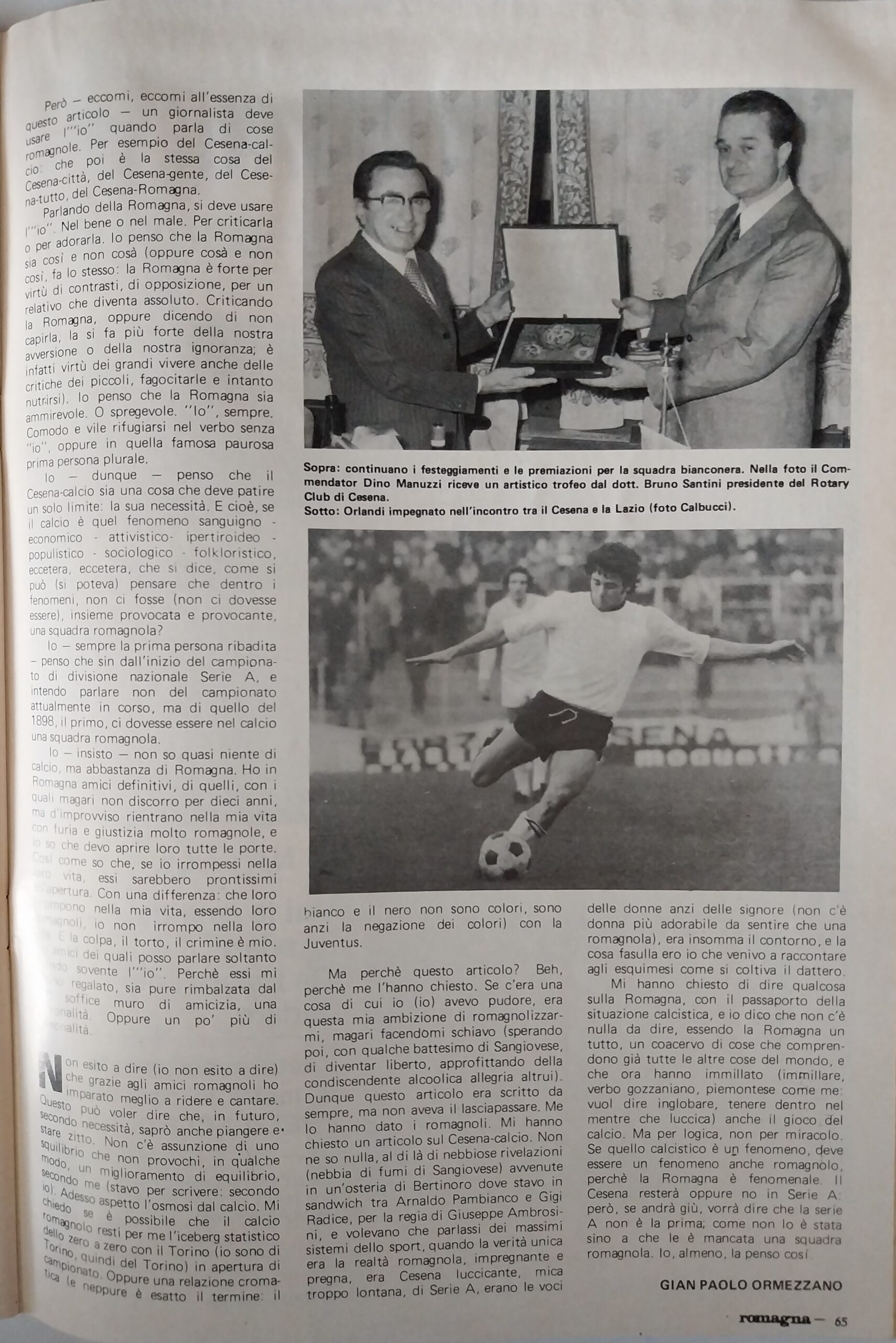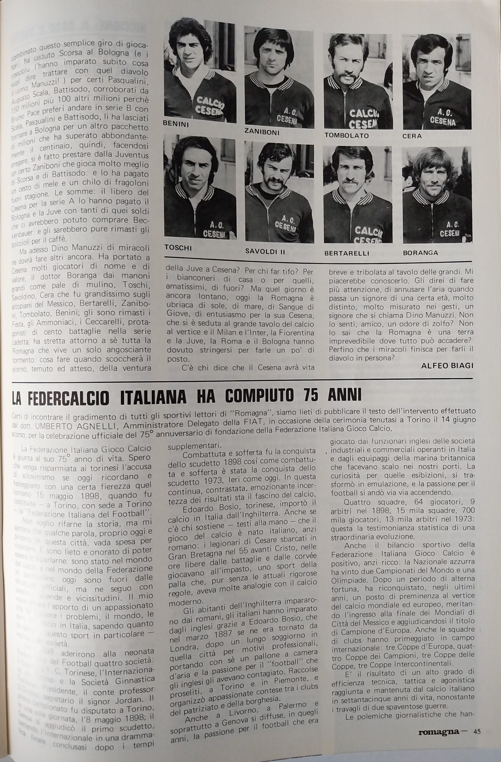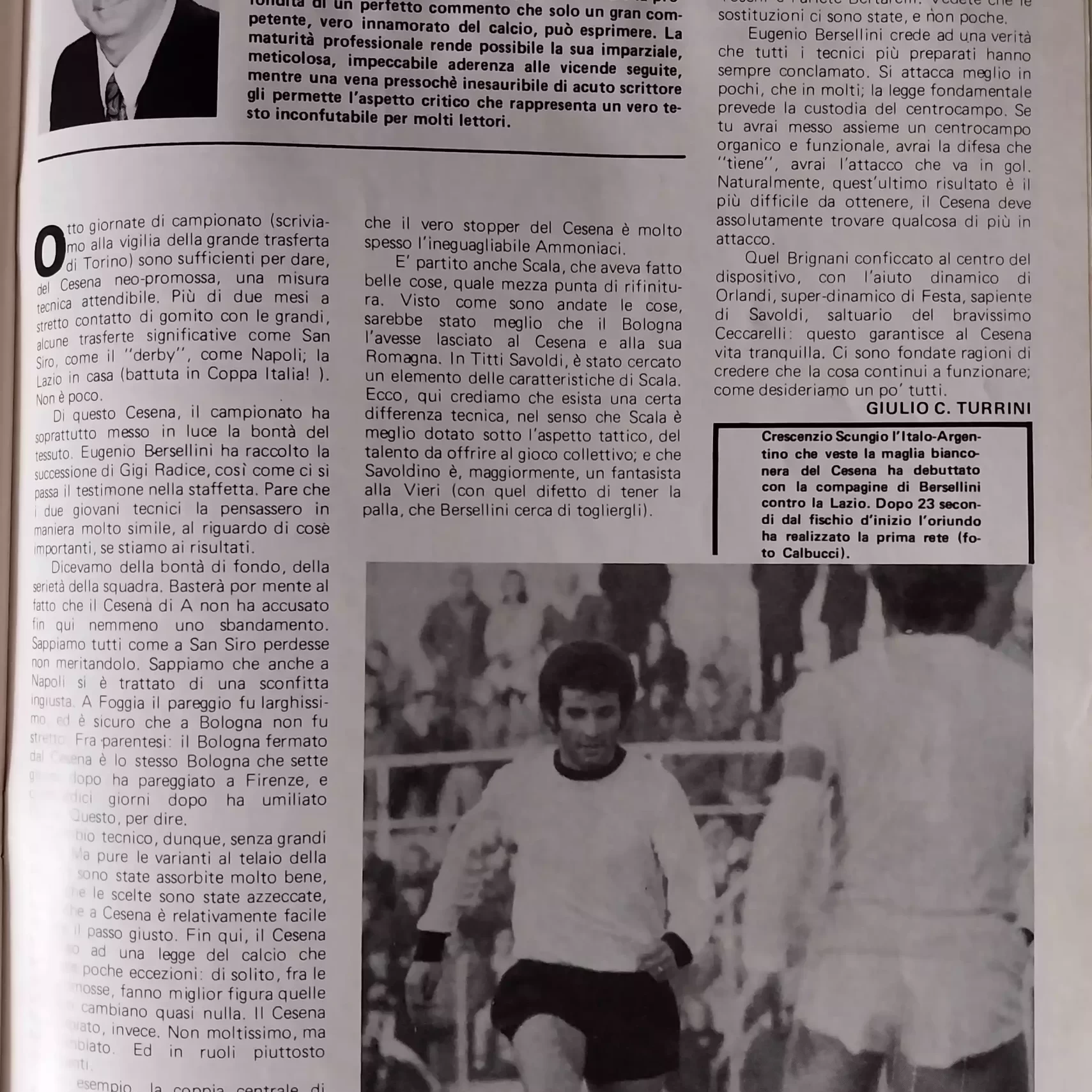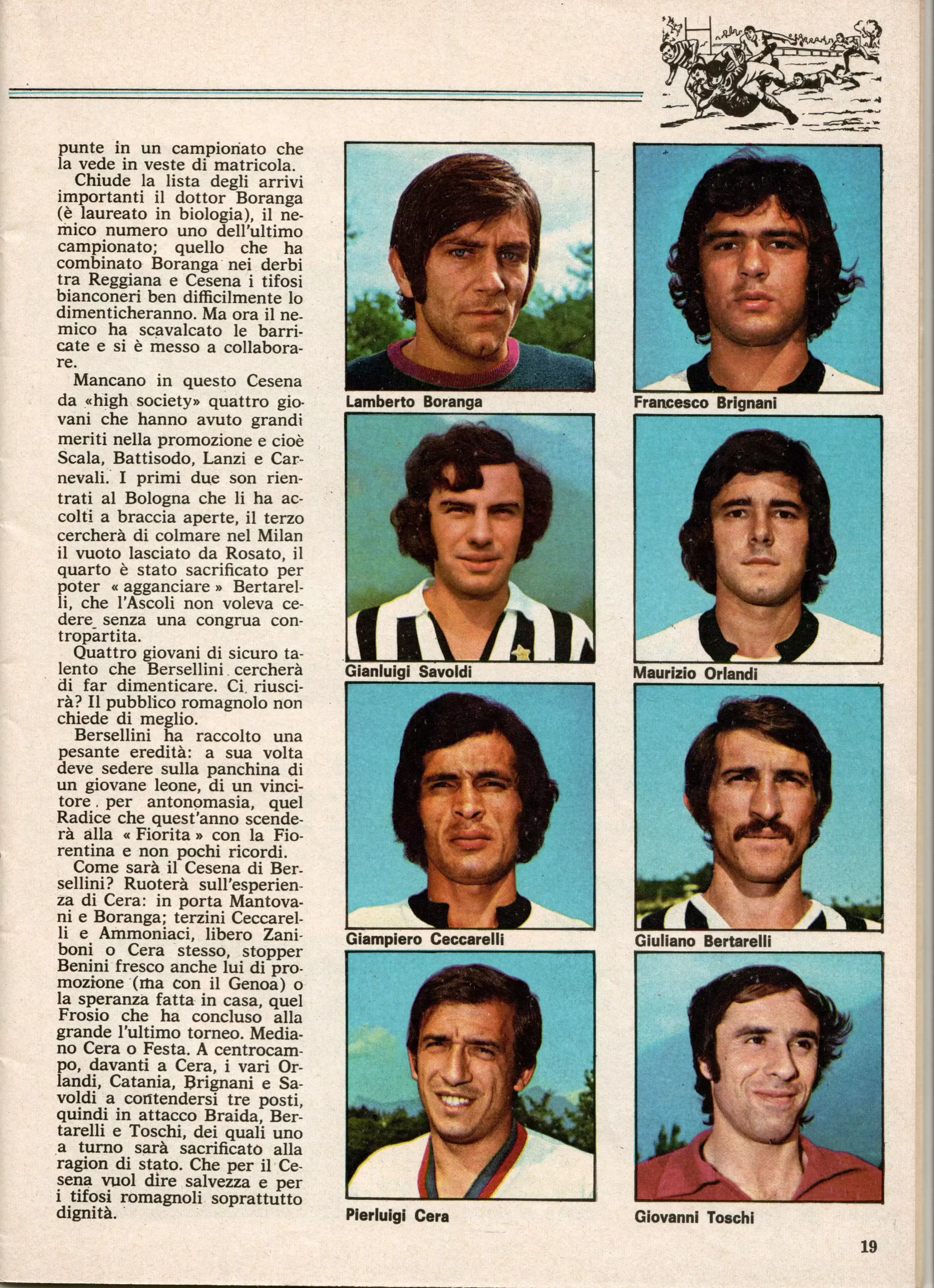 Calcio 74 Gianni Brera, Ottobre 1973, presentazione Cesena 1973-74