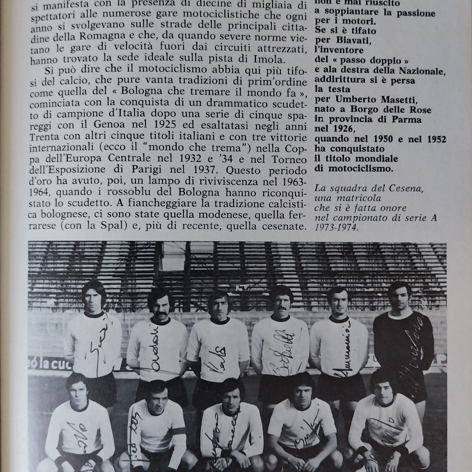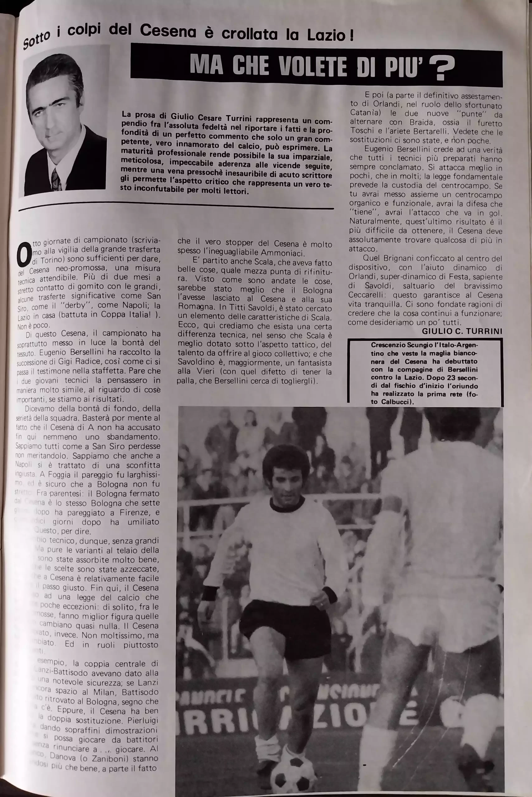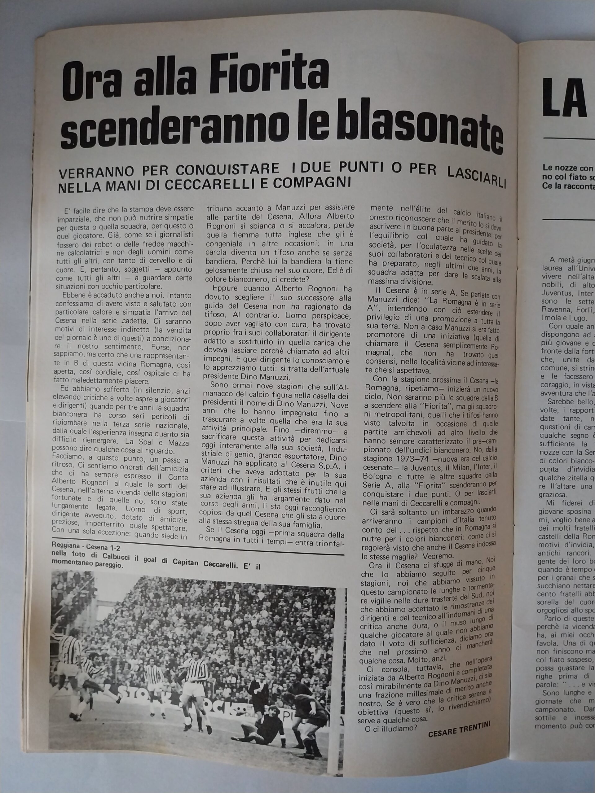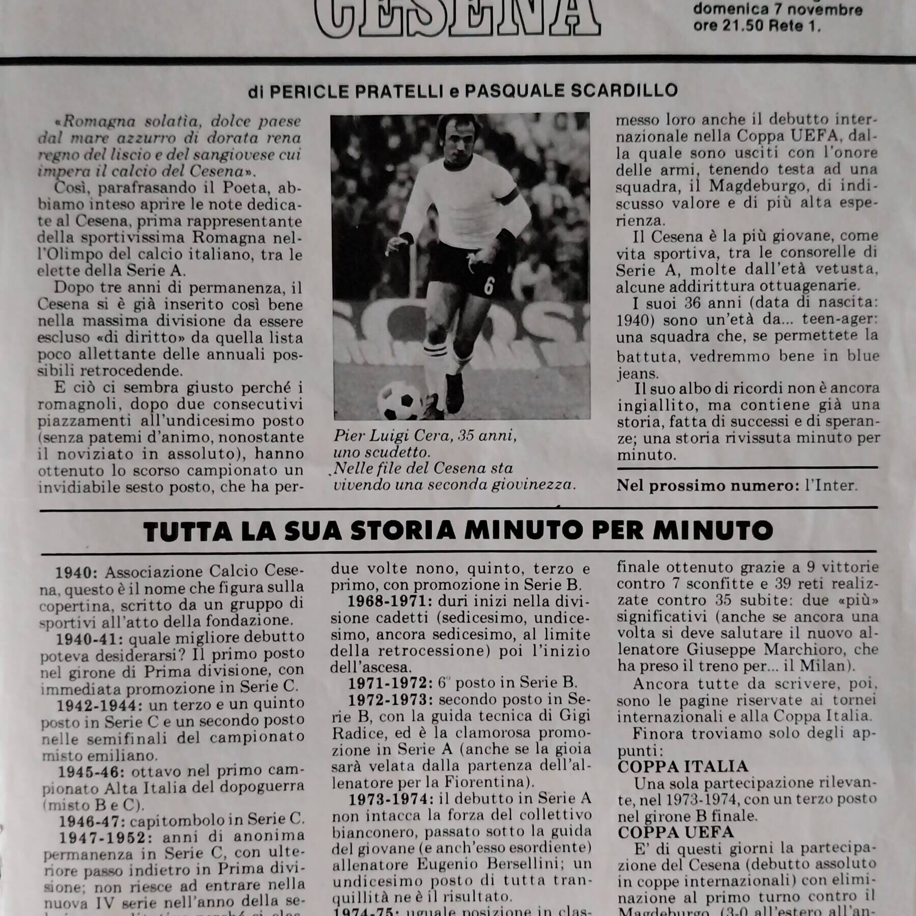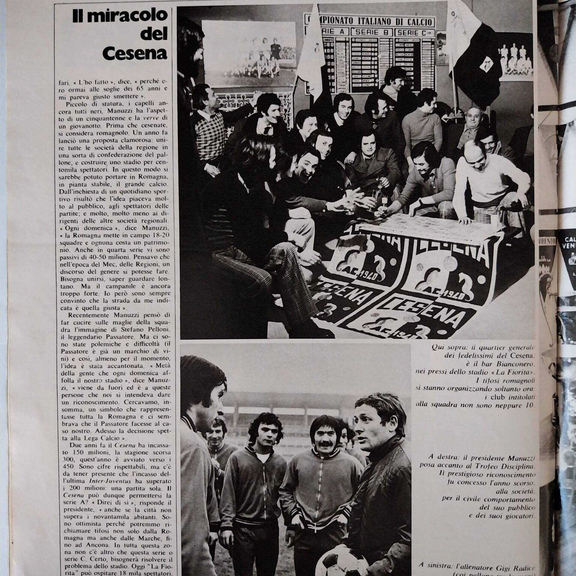 Calcio 74 Gianni Brera, Ottobre 1973, presentazione Cesena 1973-74