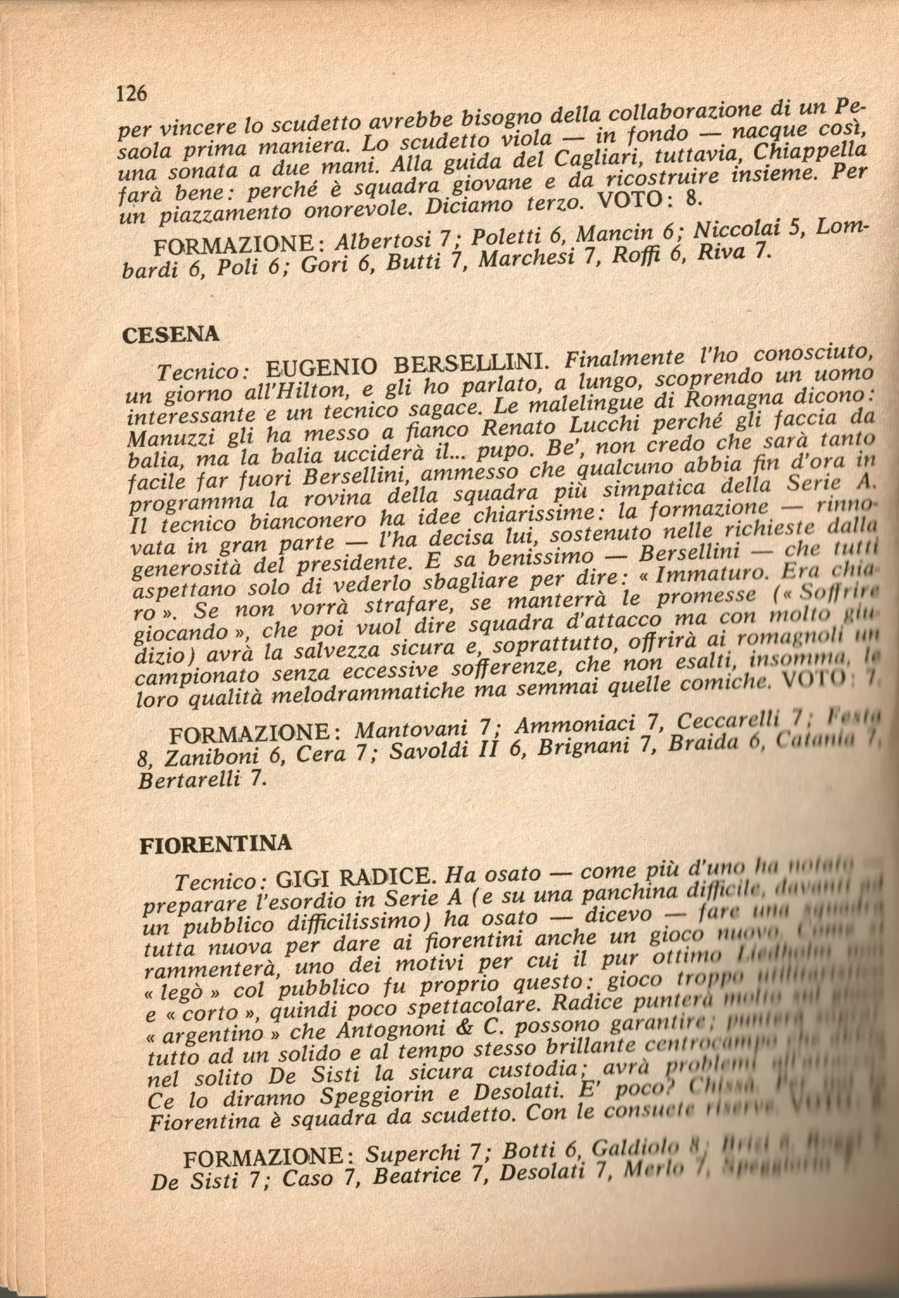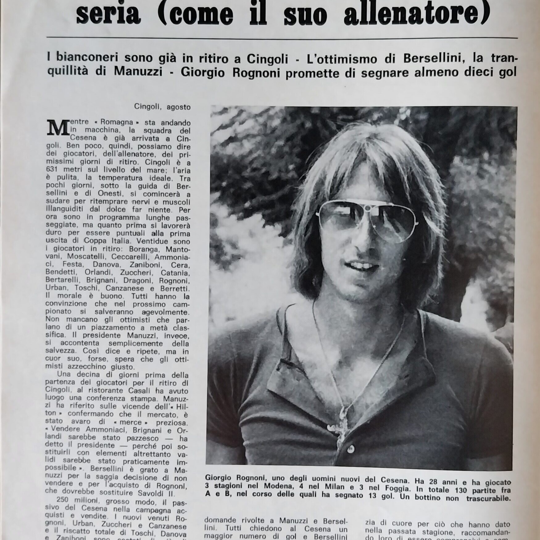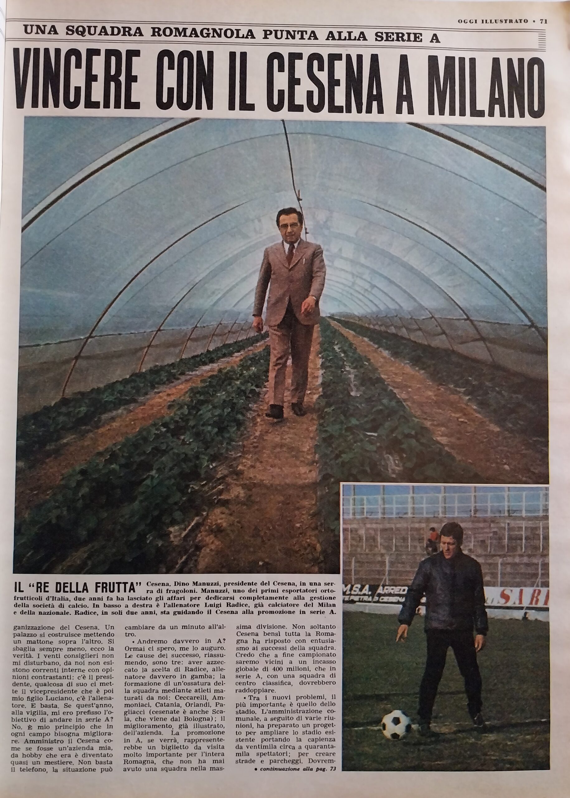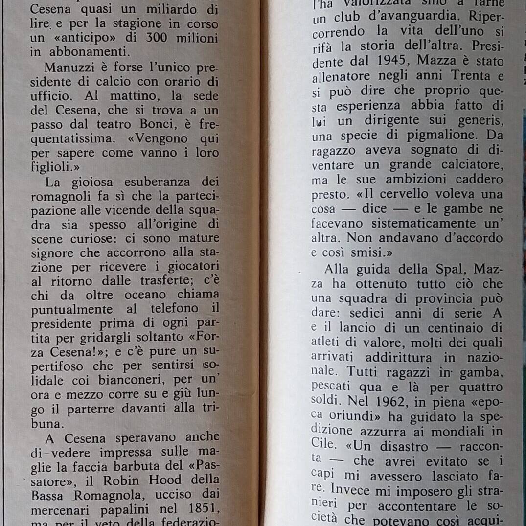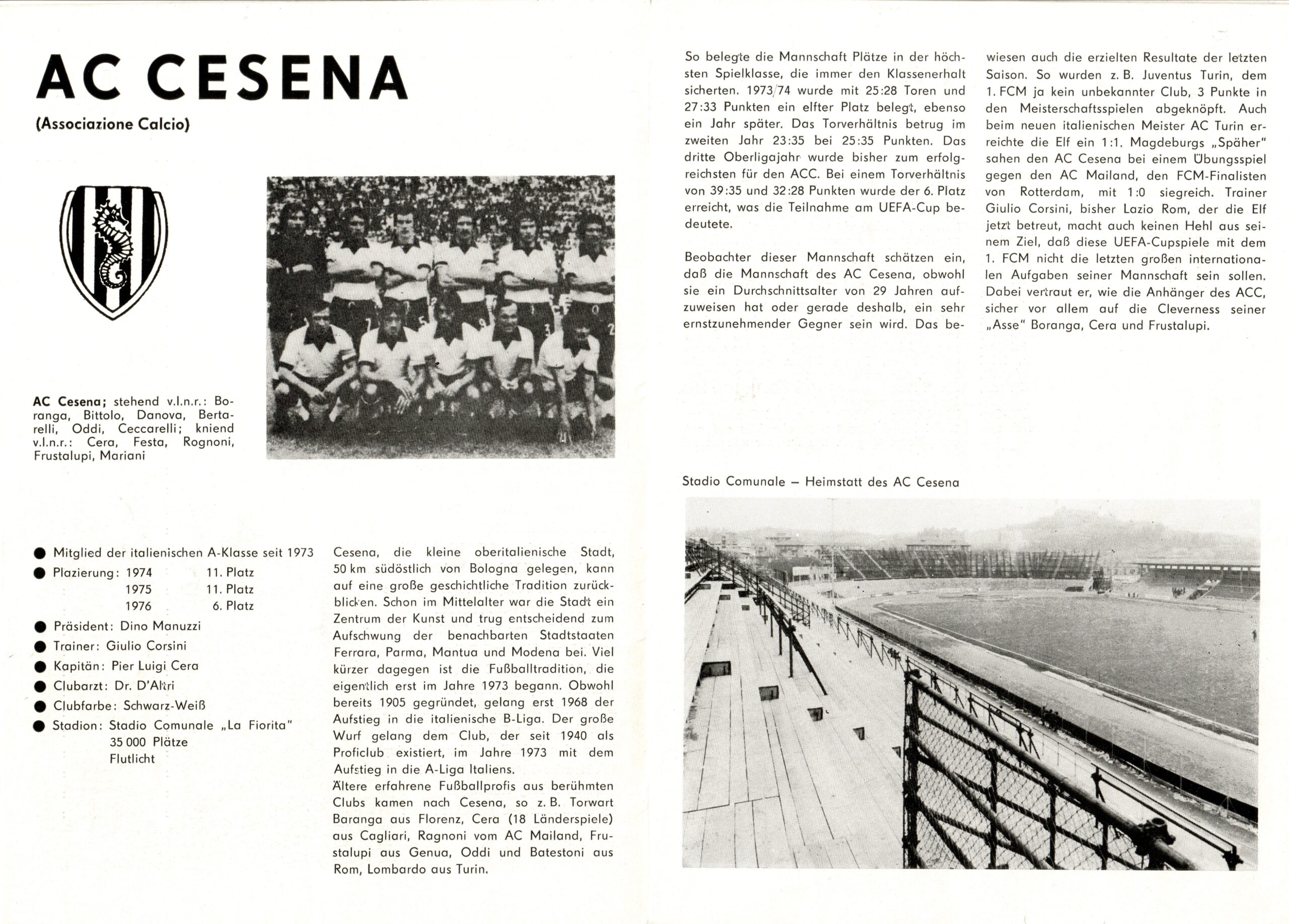 Calcio 74 Gianni Brera, Ottobre 1973, presentazione Cesena 1973-74