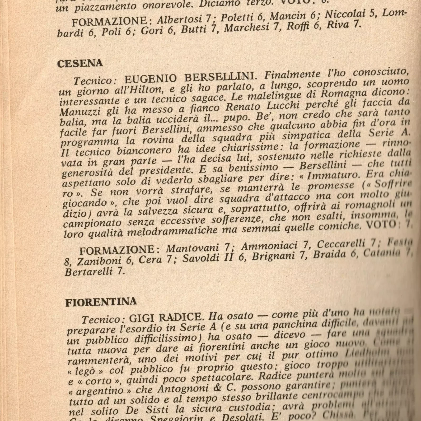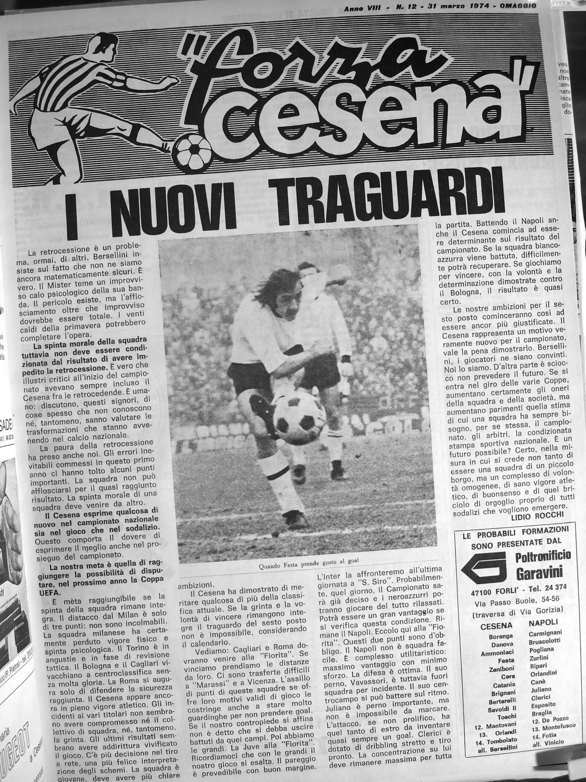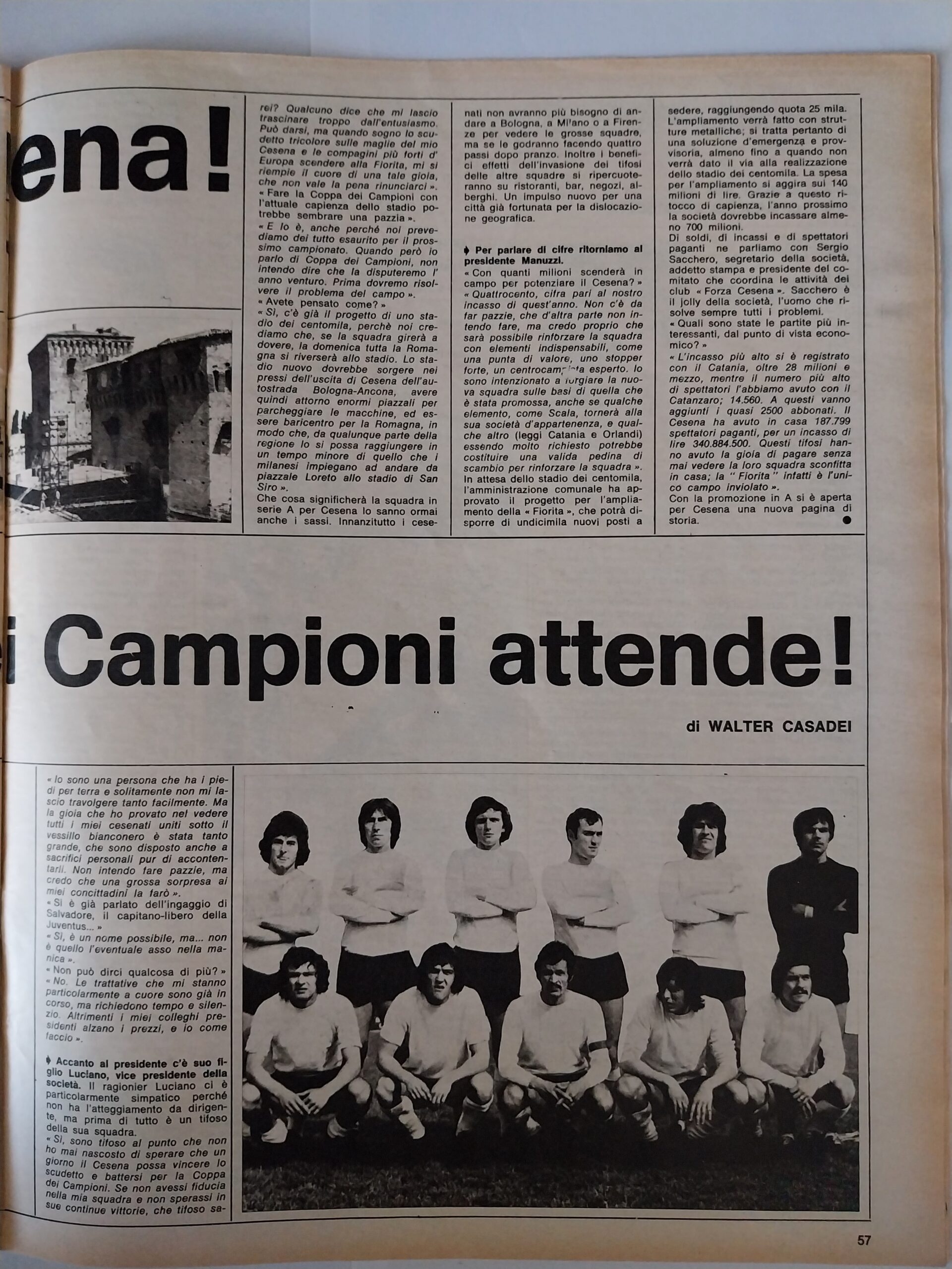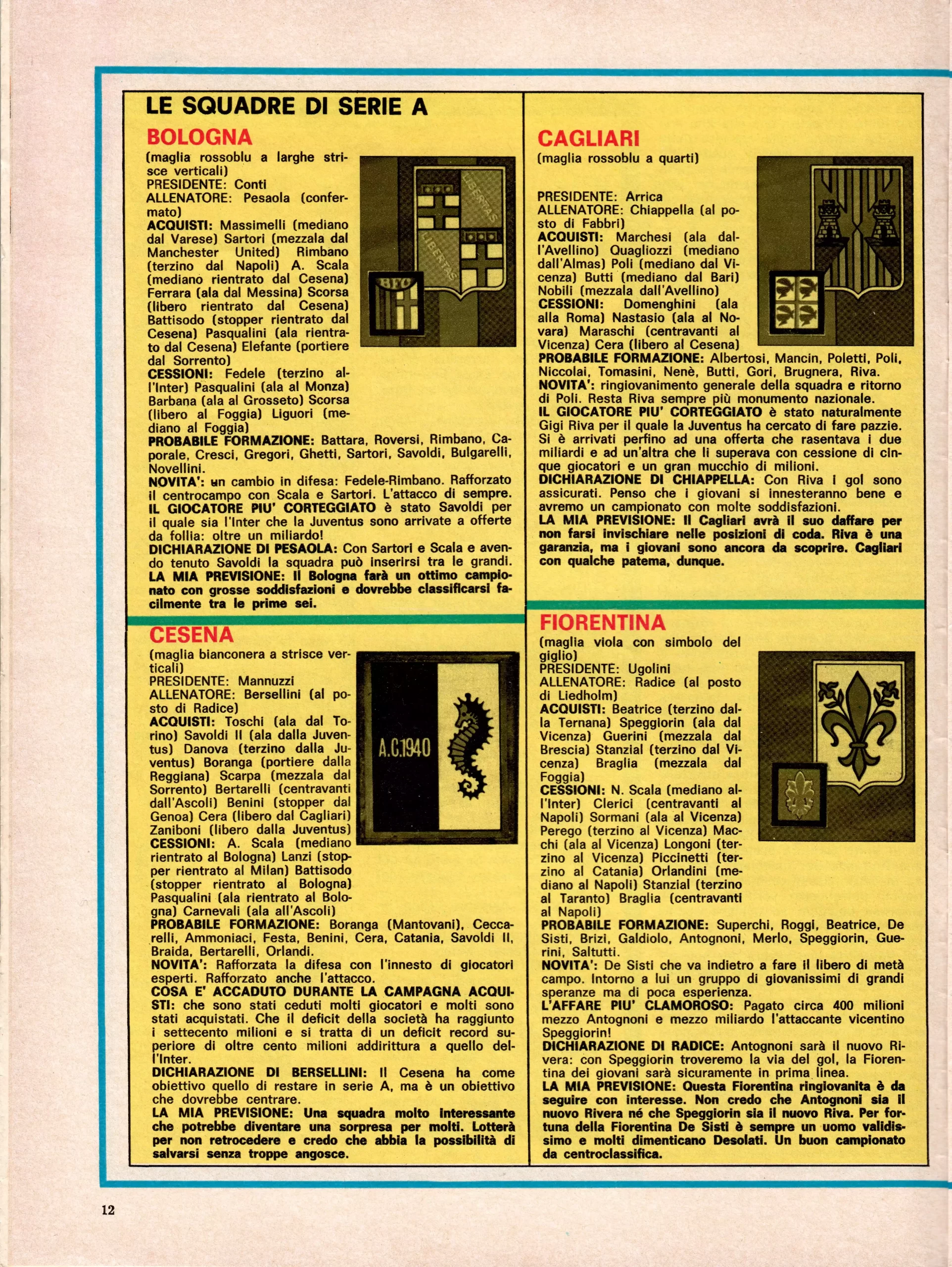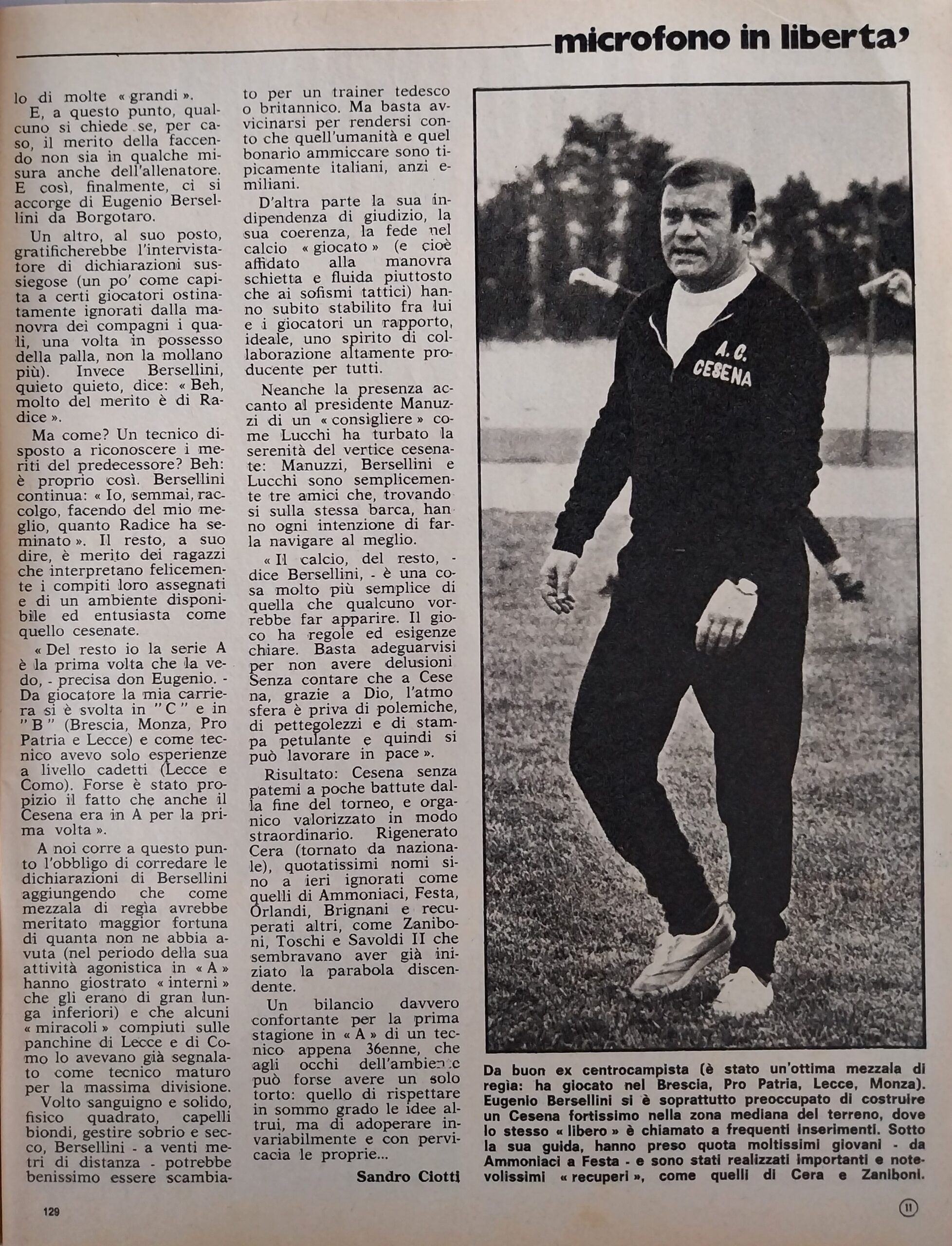 Calcio 74 Gianni Brera, Ottobre 1973, presentazione Cesena 1973-74