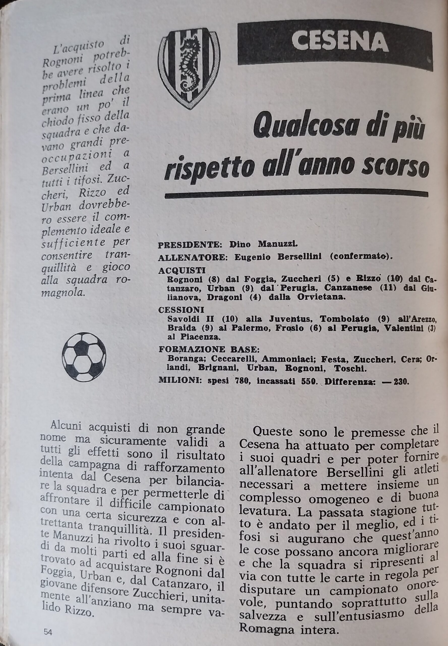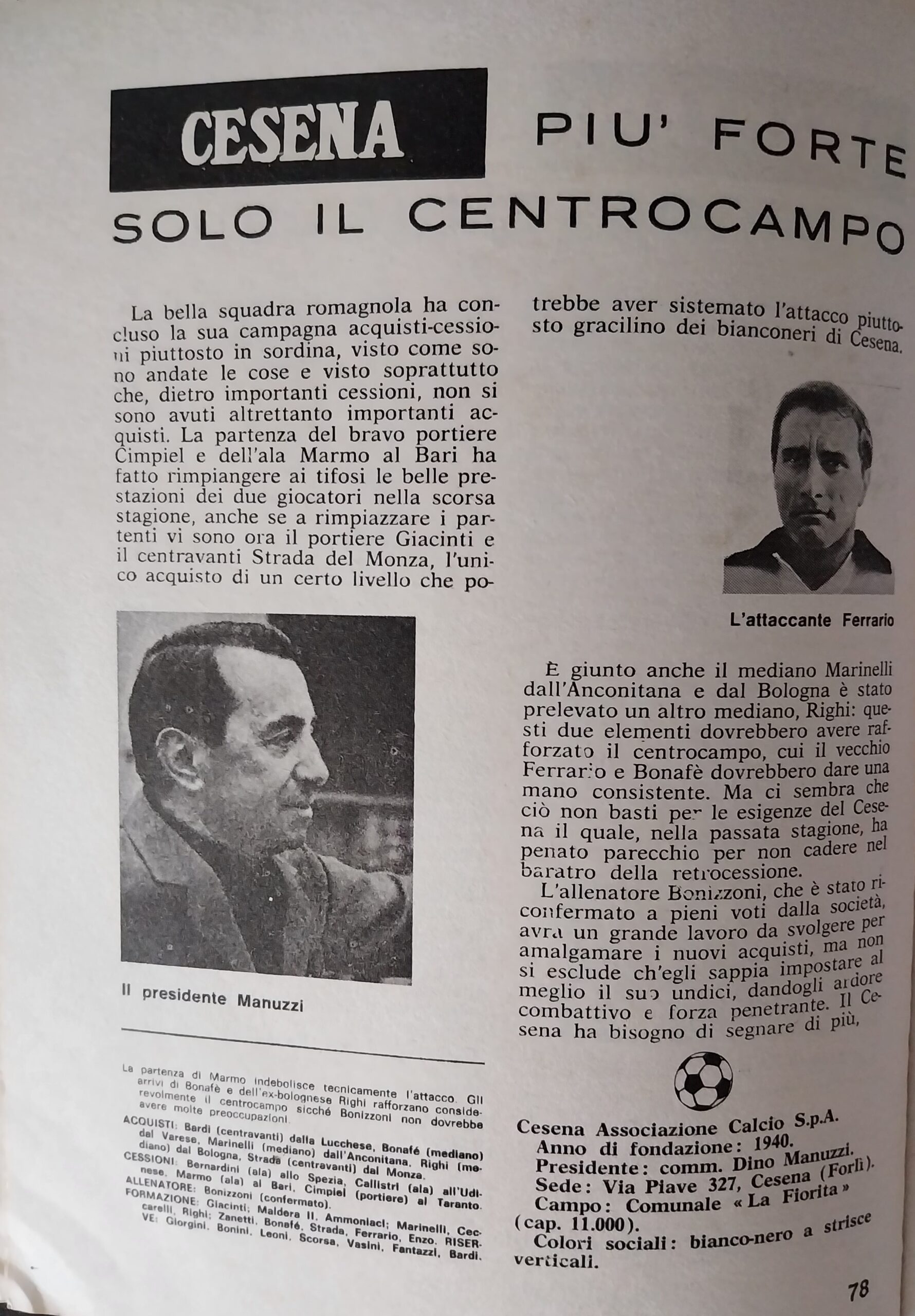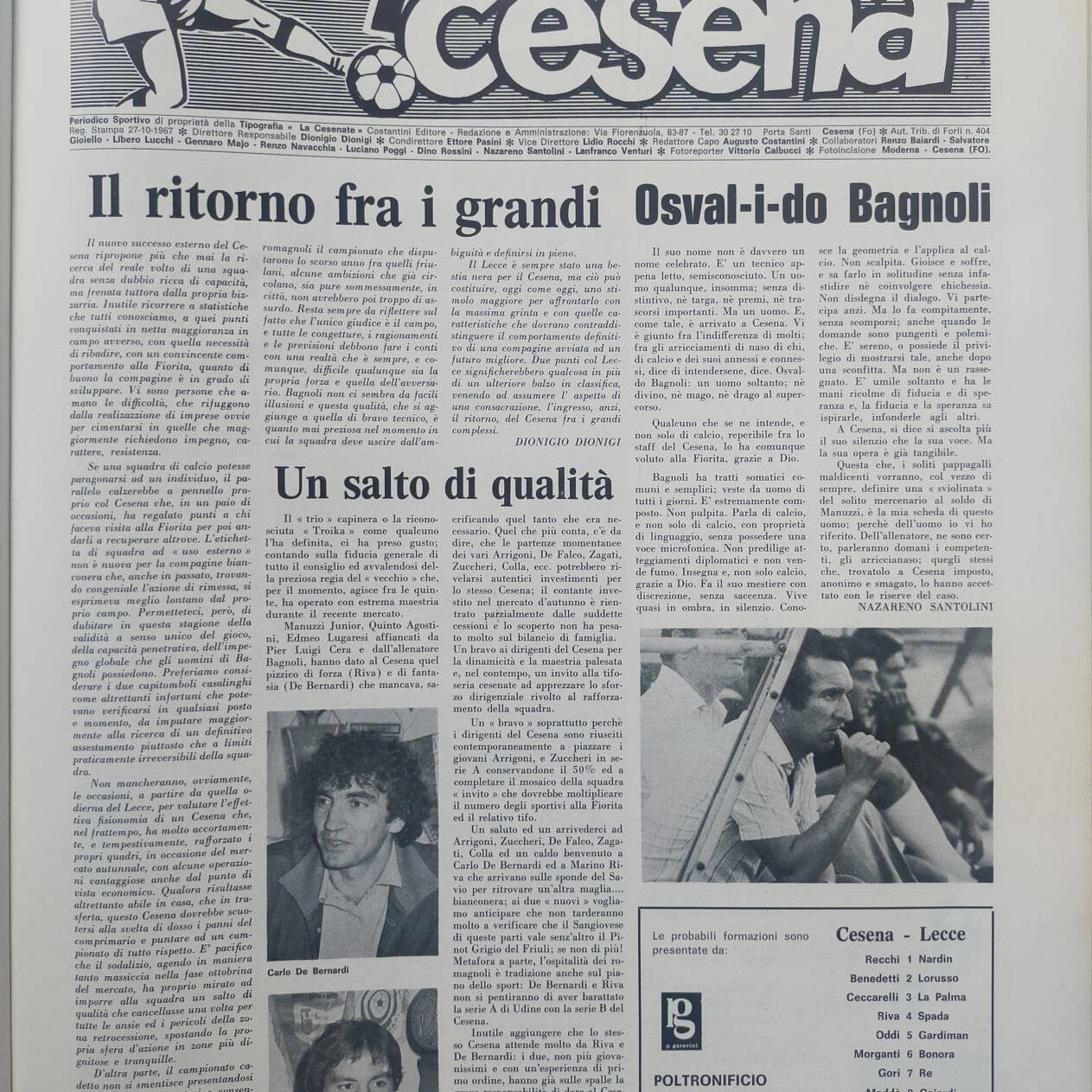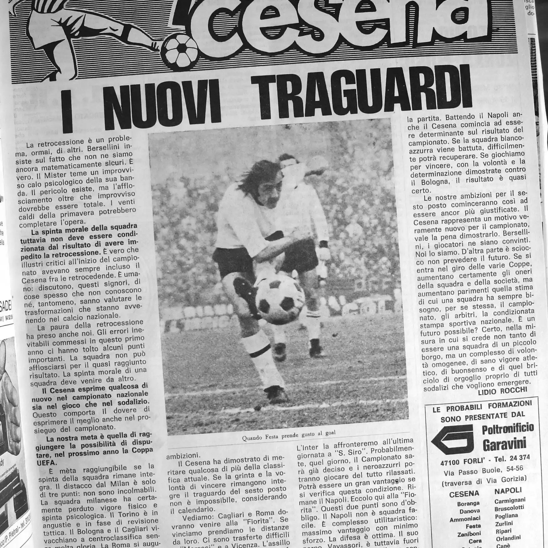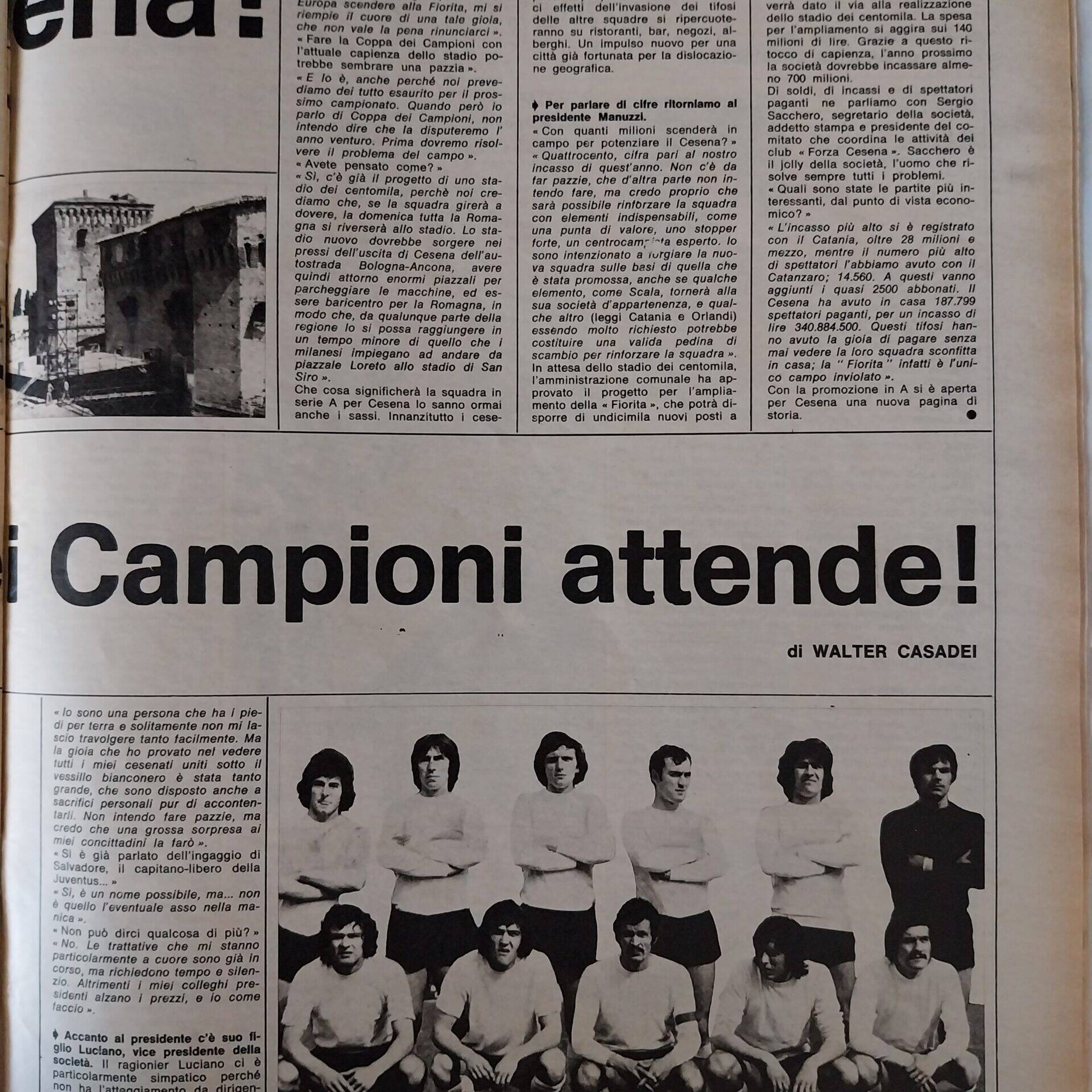 Calcio 74 Gianni Brera, Ottobre 1973, presentazione Cesena 1973-74