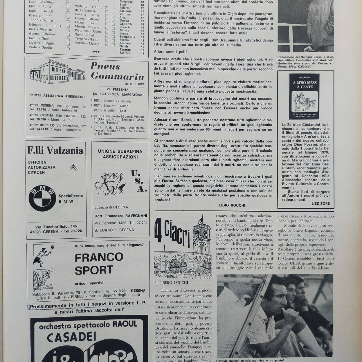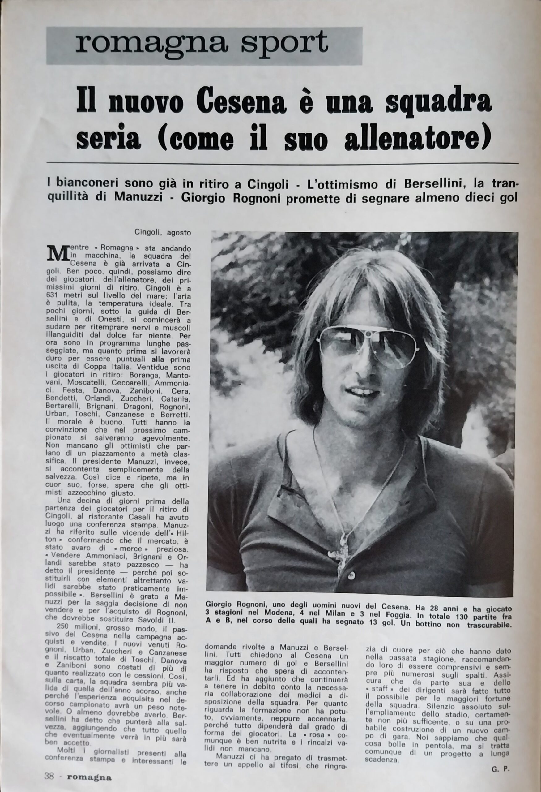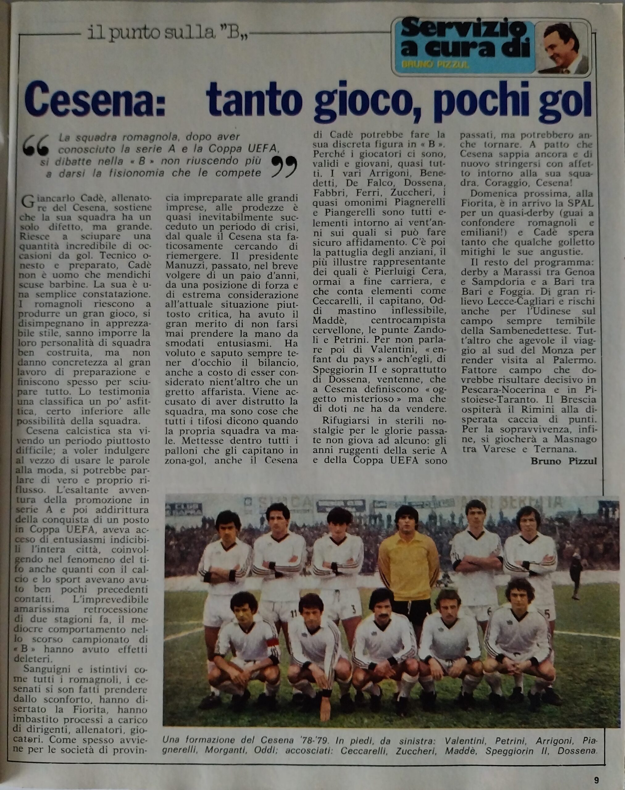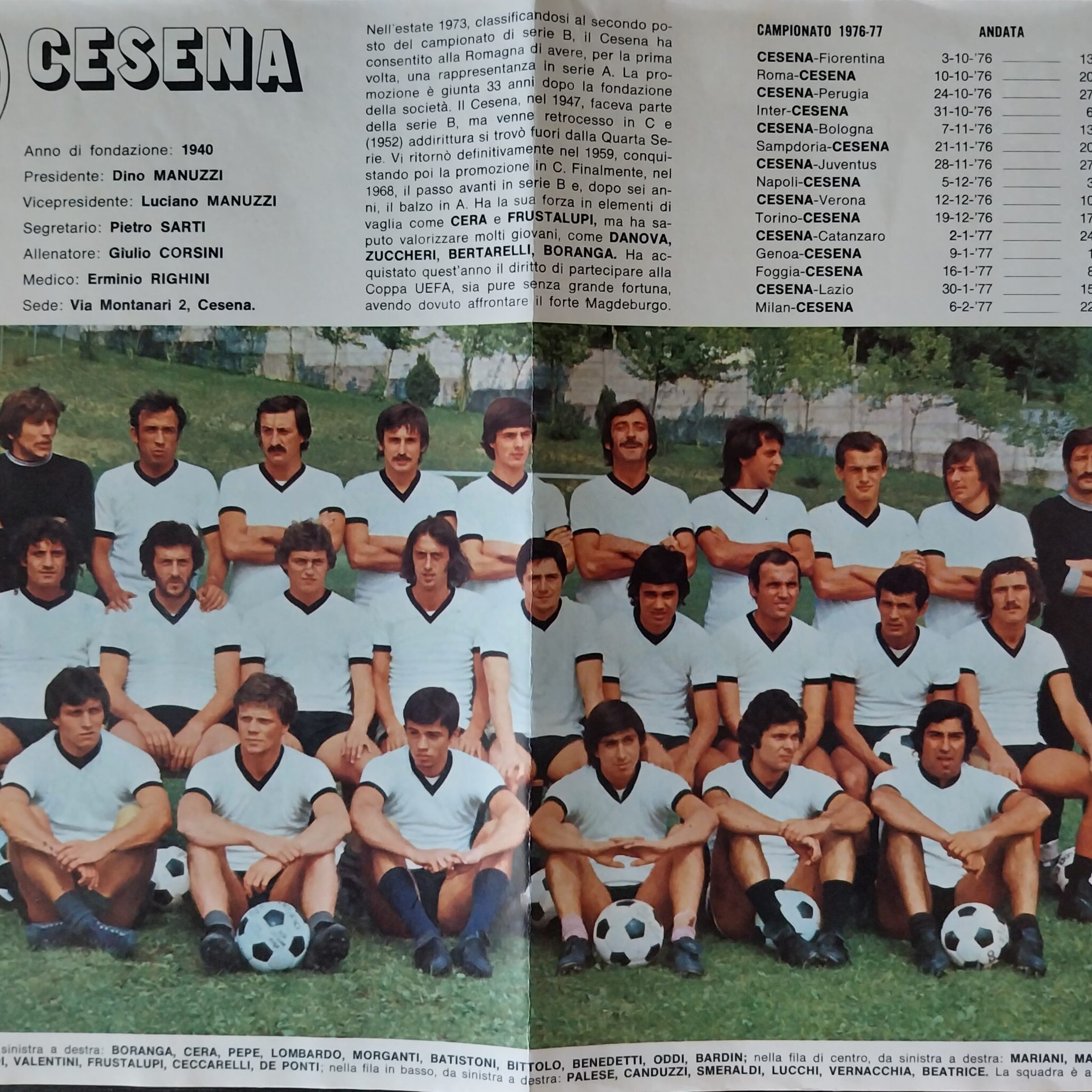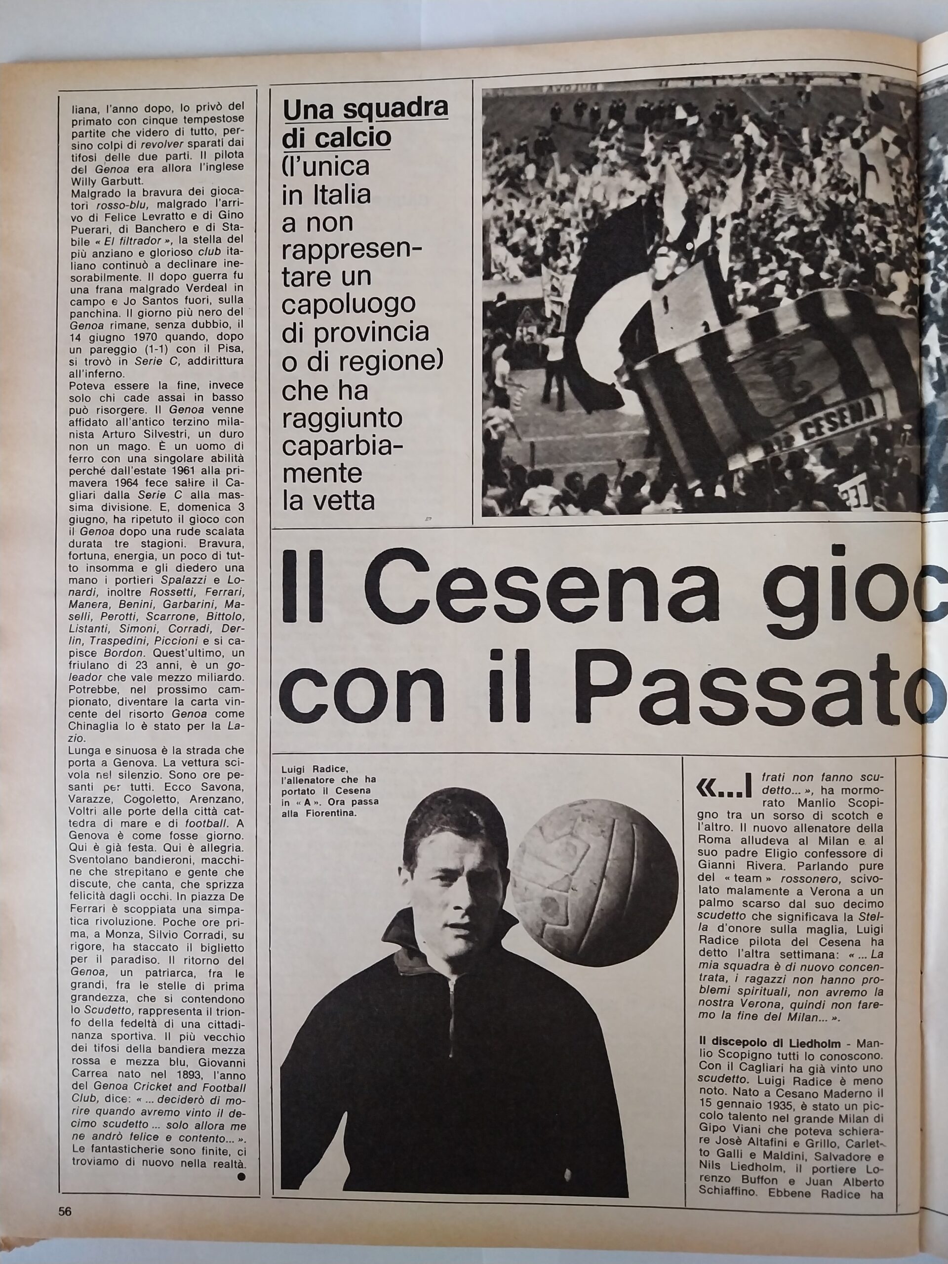 Calcio 74 Gianni Brera, Ottobre 1973, presentazione Cesena 1973-74